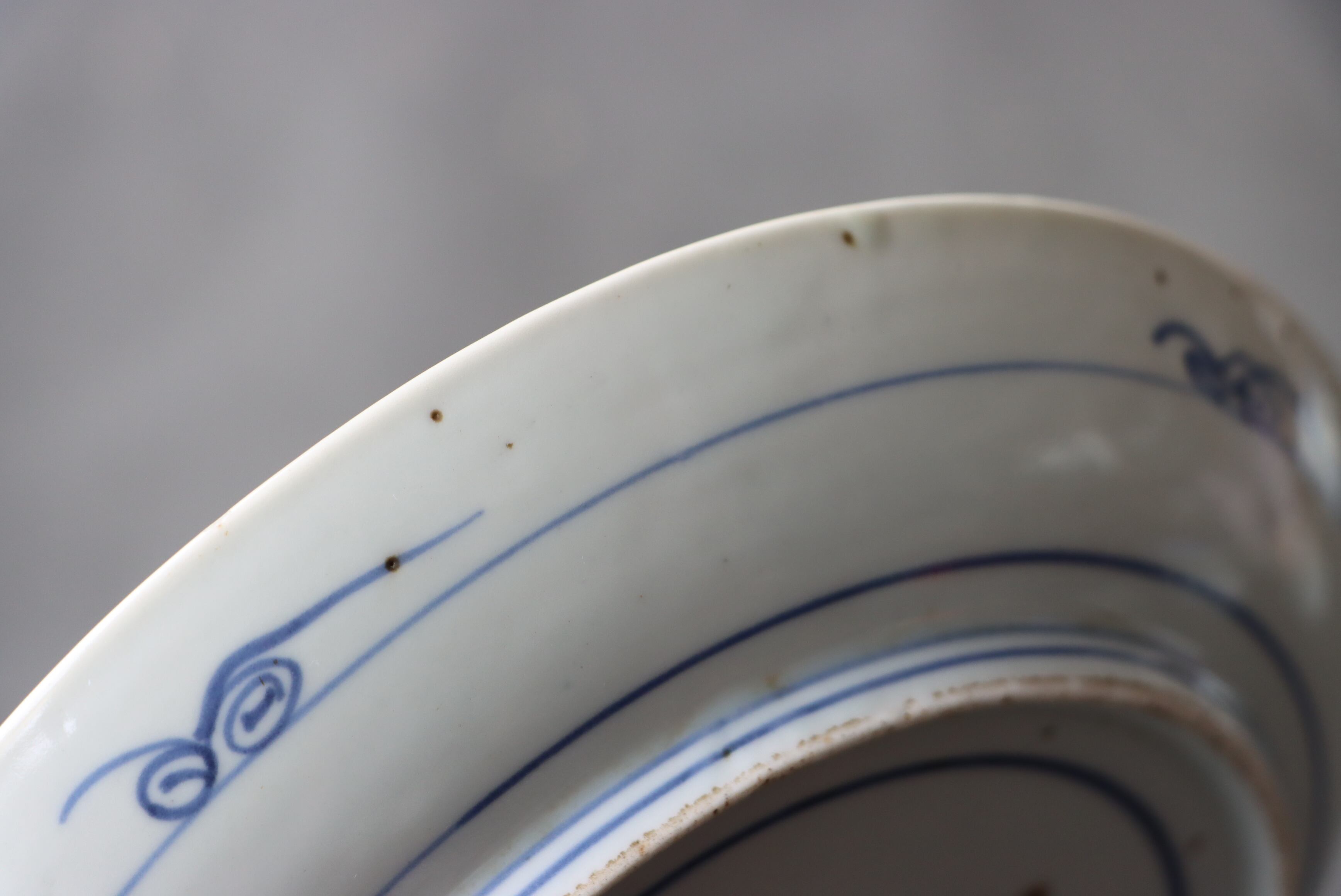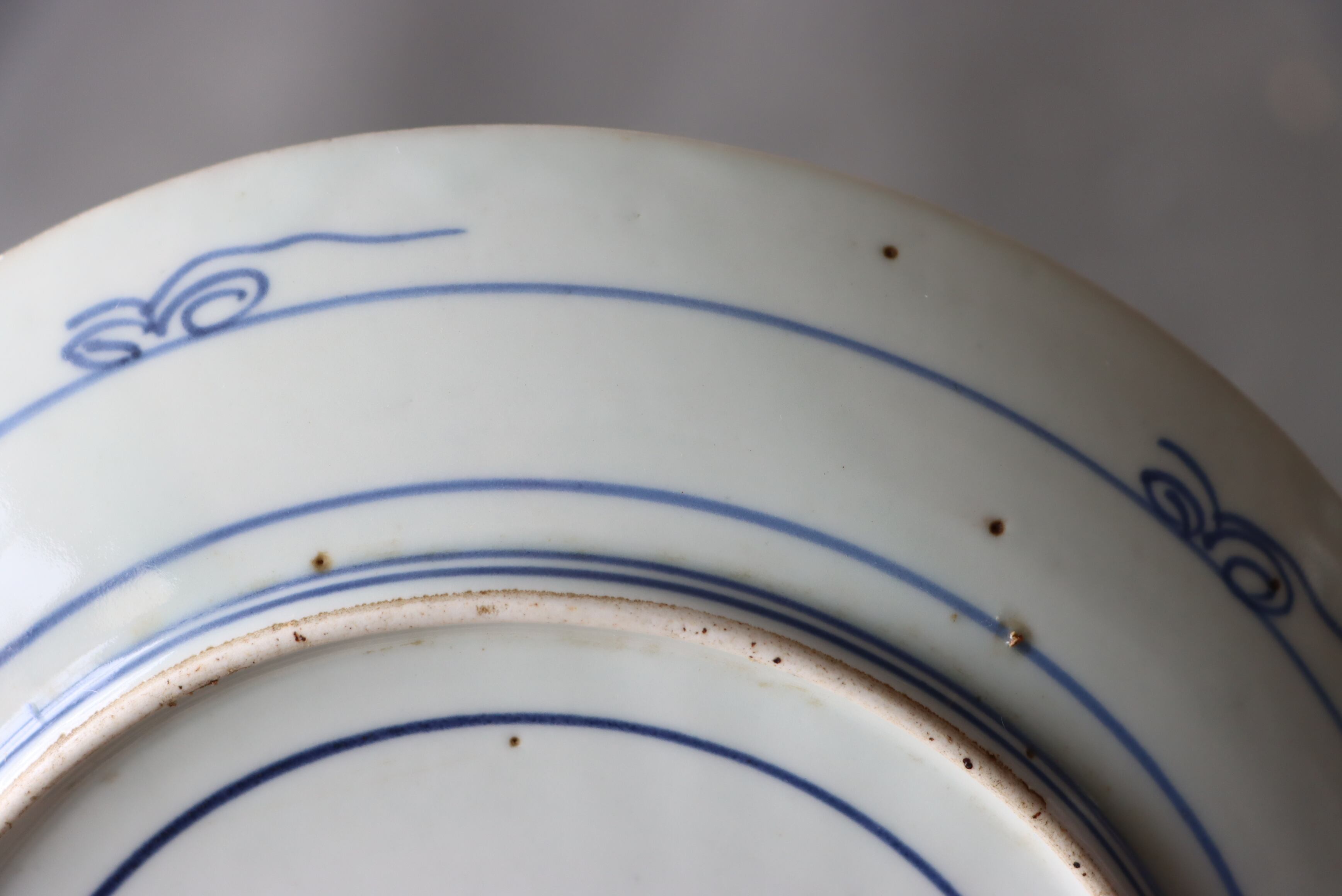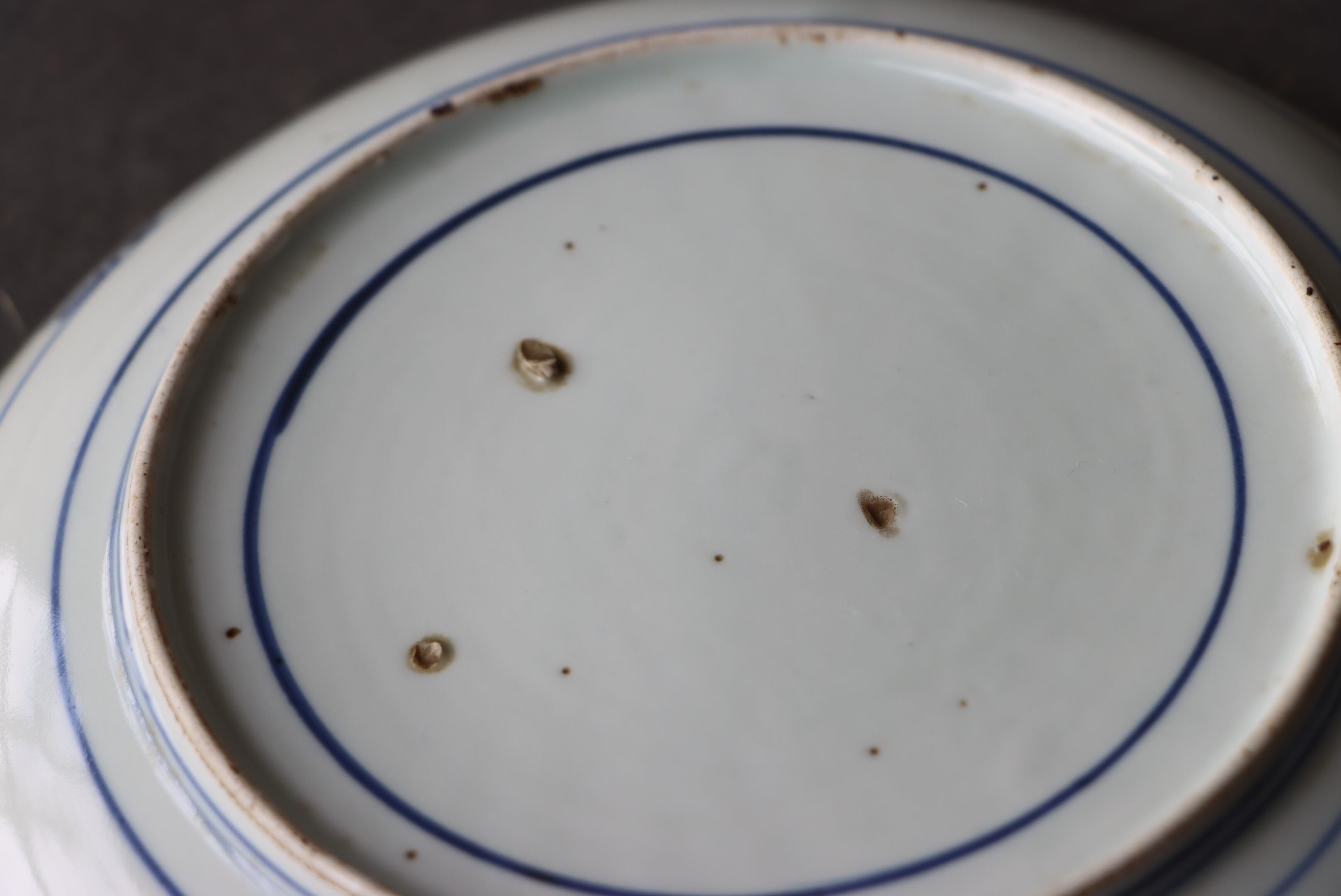 焼成時に窯の中でできる鉄分、くっつき、かまきず、ピンホール、経年による釉薬の薄れがございます。また、一枚一枚手描き、手作りですので器のサイズ(ミリ)、色味、描かれている文様の大きさなど個体差があり、ひとつとして同じものはございません。そういった時代感、個性をご理解いただき、楽しんでくだされば幸いです。電子レンジや食器洗い乾燥機のご使用はお控えください。