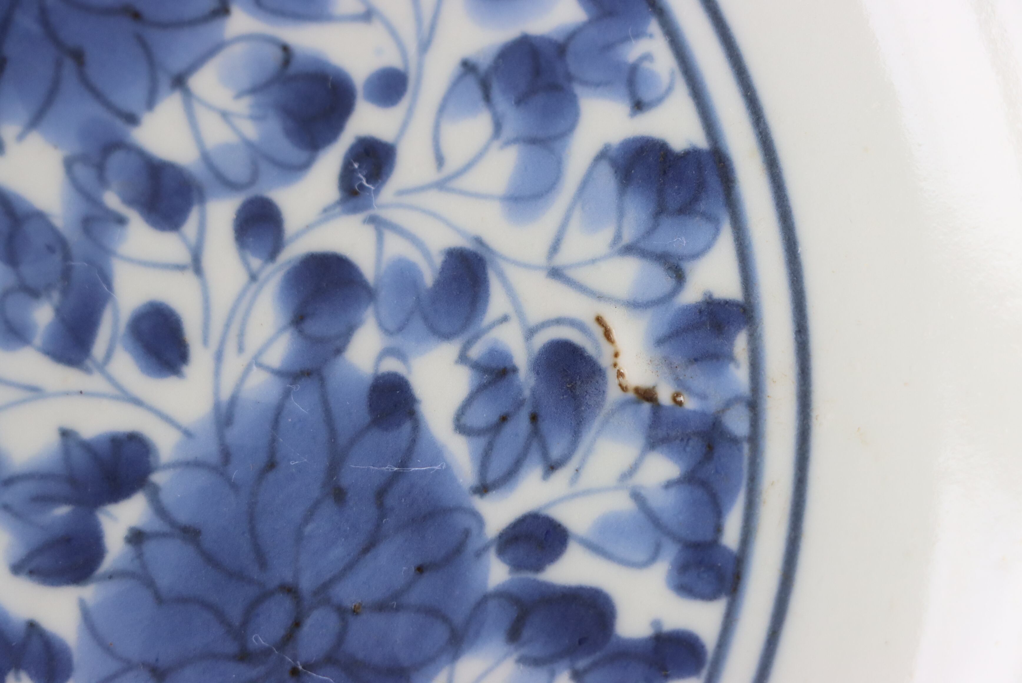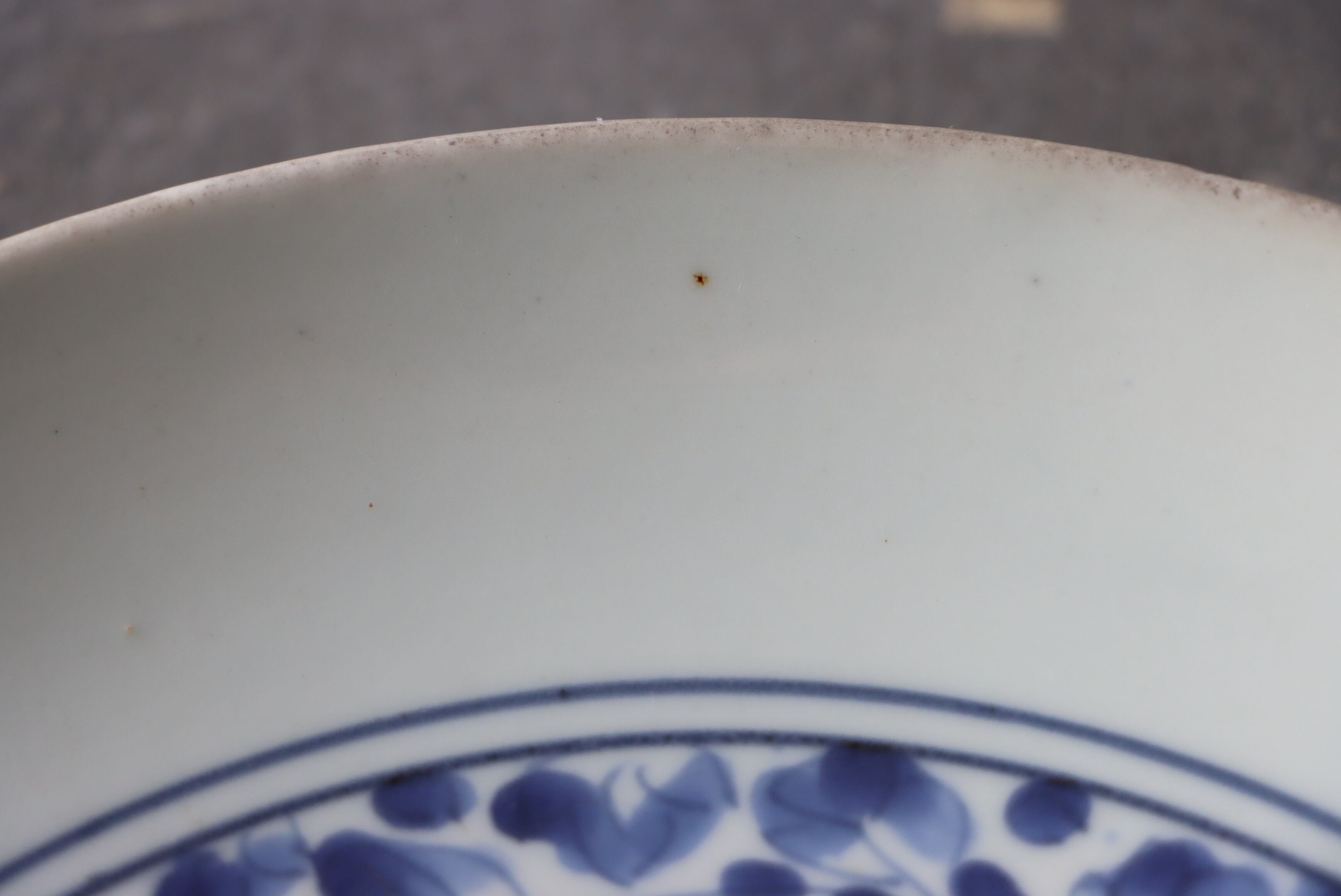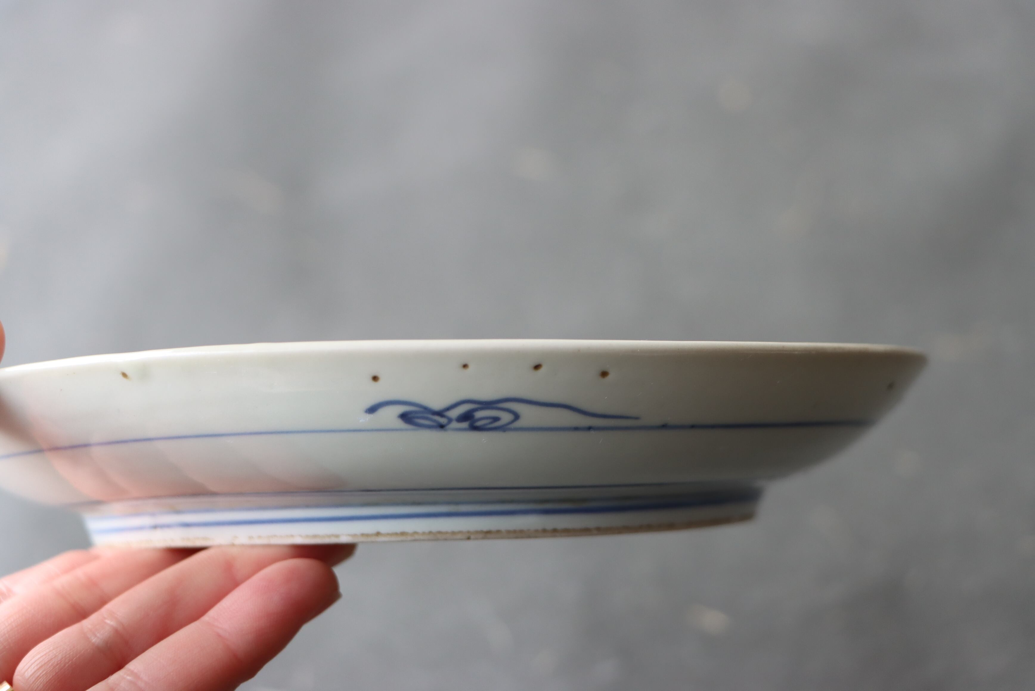 焼成時に窯の中でできる鉄分、くっつき、かまきず、ピンホール、経年による釉薬の薄れがございます。また、一枚一枚手描き、手作りですので器のサイズ(ミリ)、色味、描かれている文様の大きさなど個体差があり、ひとつとして同じものはございません。そういった時代感、個性をご理解いただき、楽しんでくだされば幸いです。電子レンジや食器洗い乾燥機のご使用はお控えください。