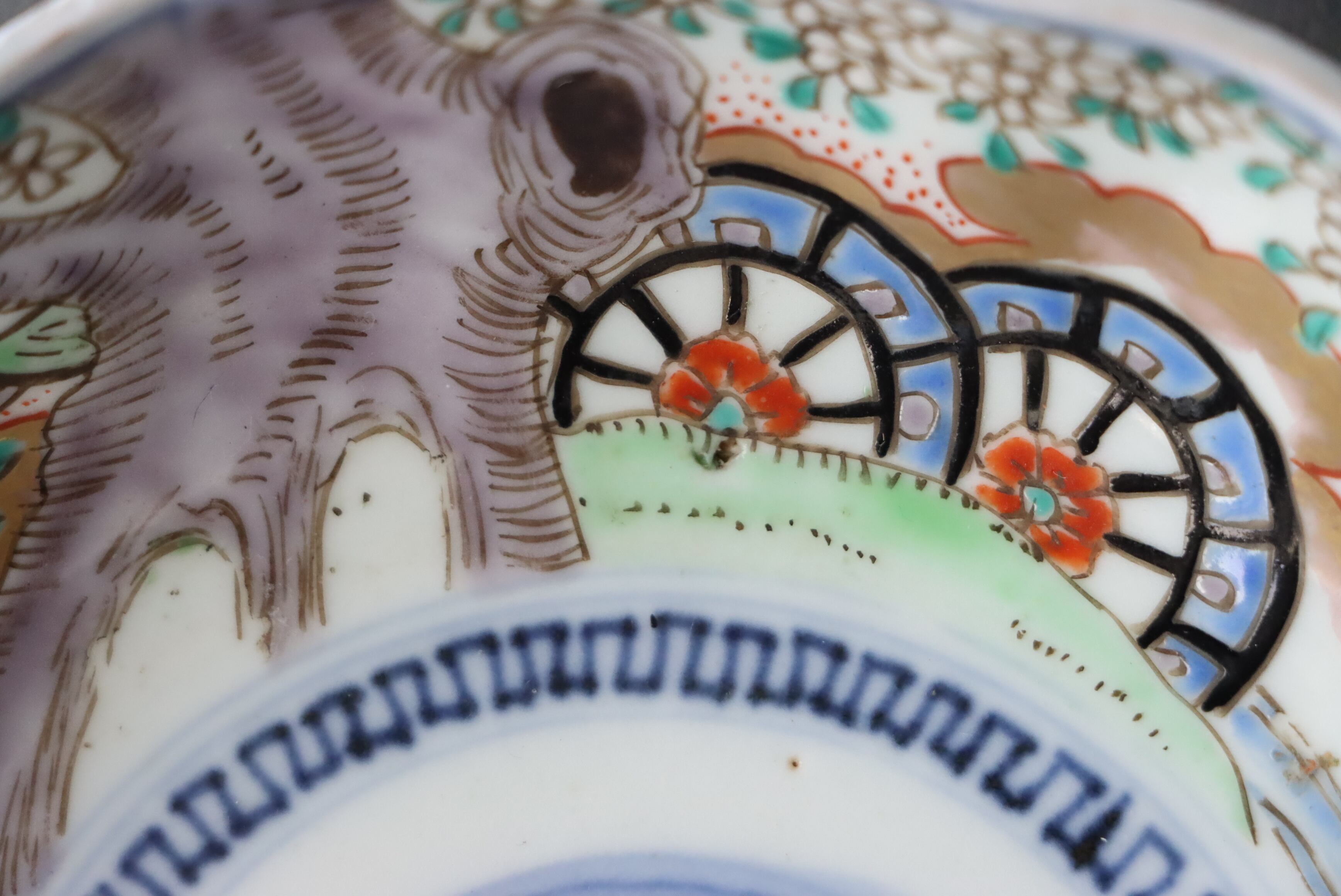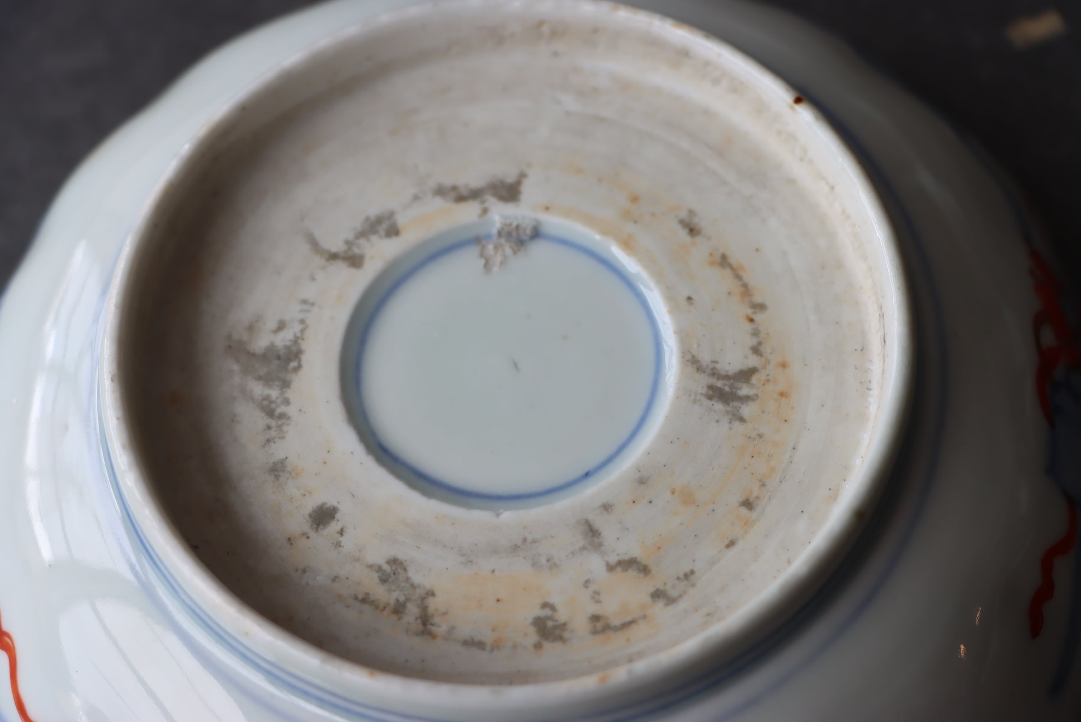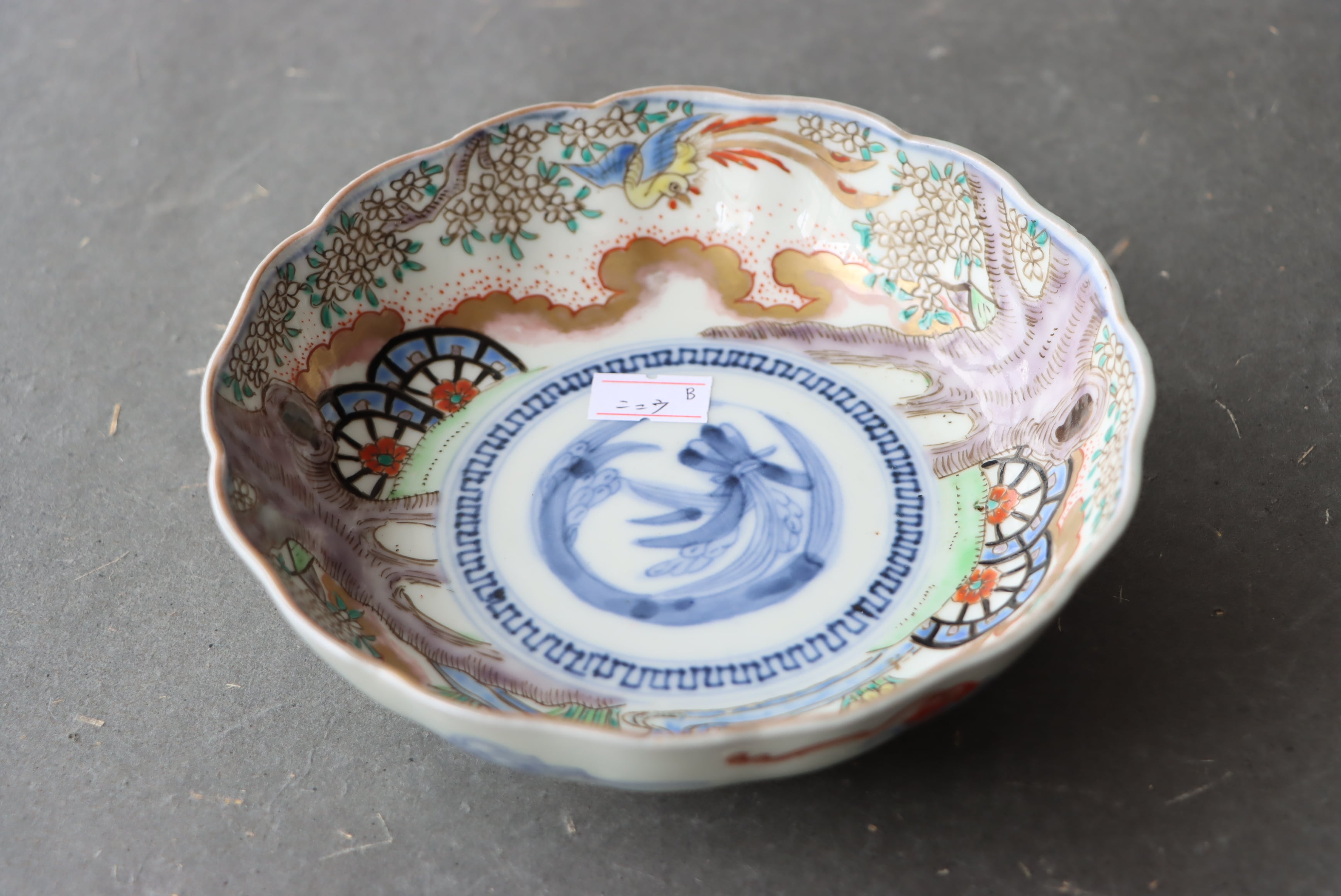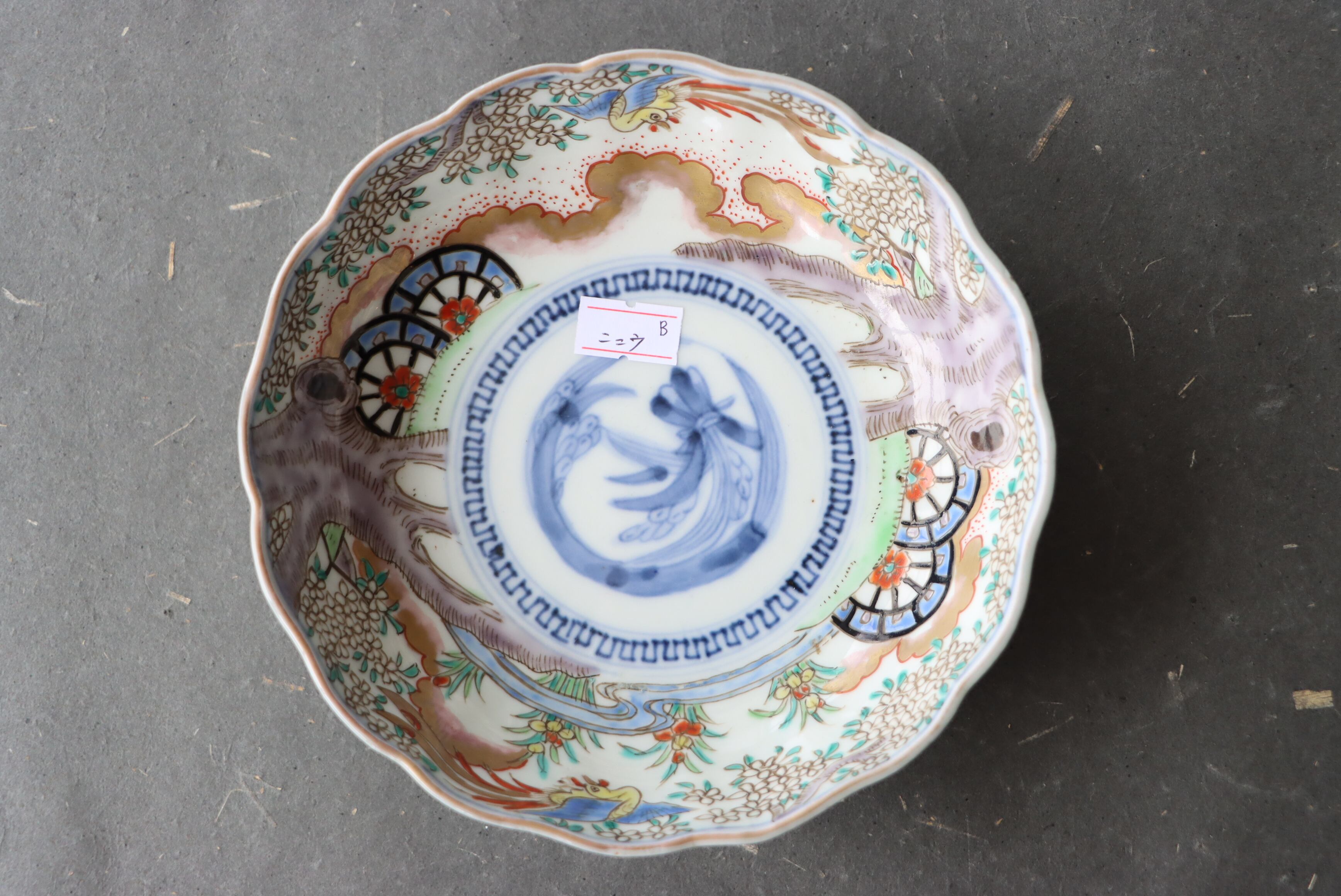 焼成時に窯の中でできる鉄分、くっつき、かまきず、ピンホール、経年による釉薬の薄れがございます。また、一枚一枚手描き、手作りですので器のサイズ(ミリ)、色味、描かれている文様の大きさなど個体差があり、ひとつとして同じものはございません。そういった時代感、個性をご理解いただき、楽しんでくだされば幸いです。電子レンジや食器洗い乾燥機のご使用はお控えください。