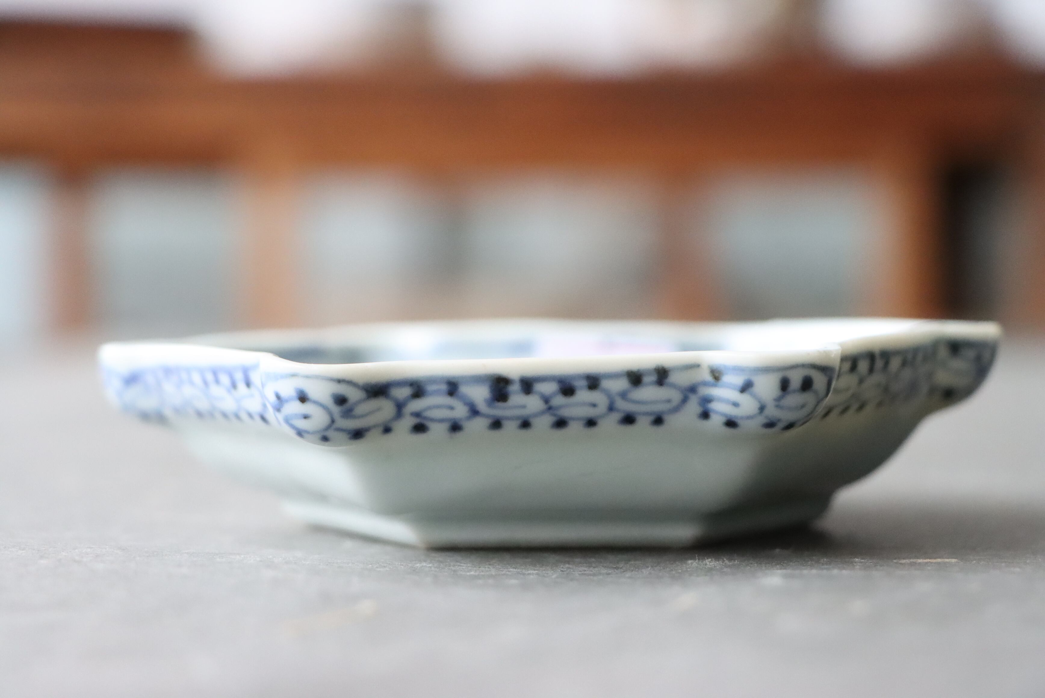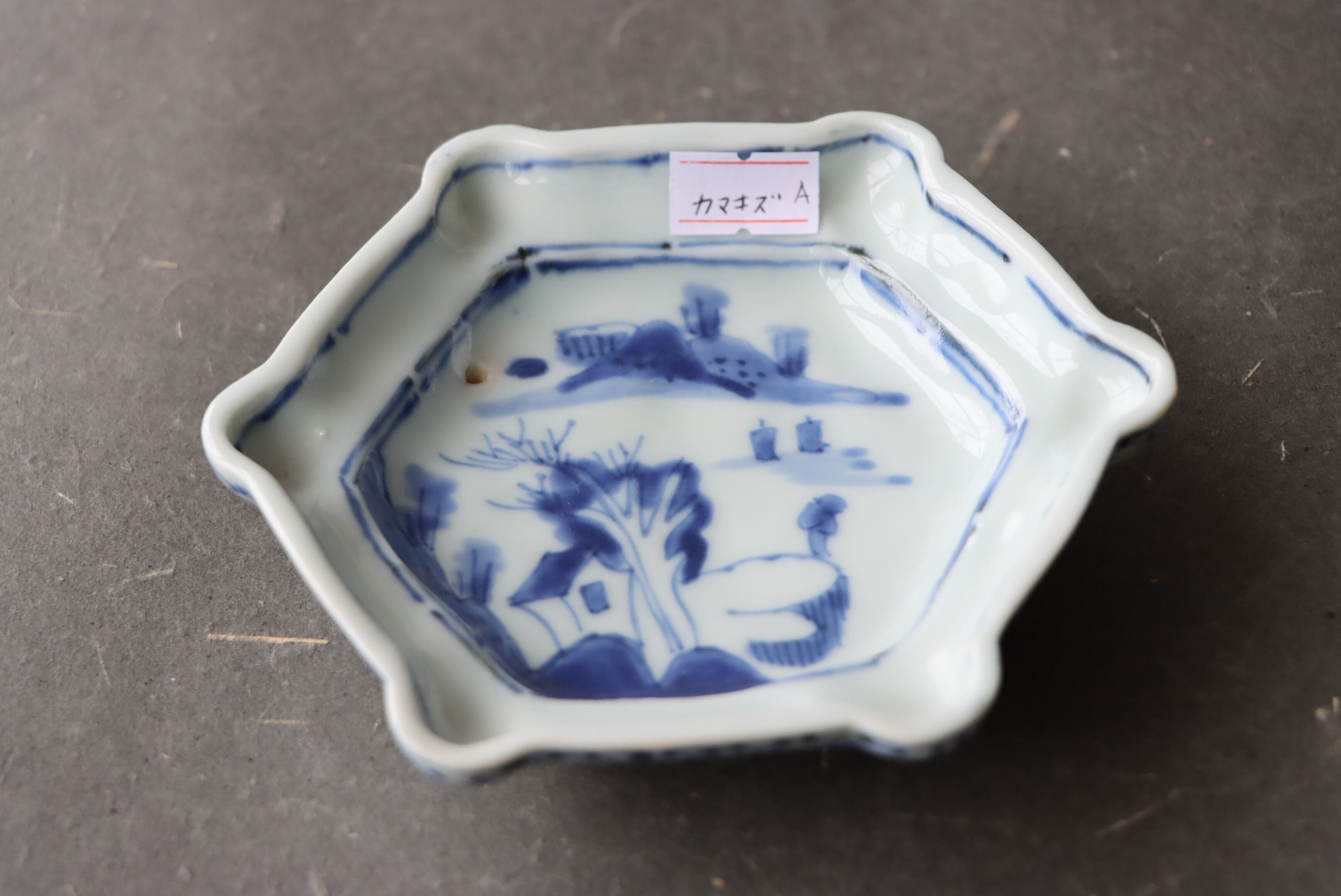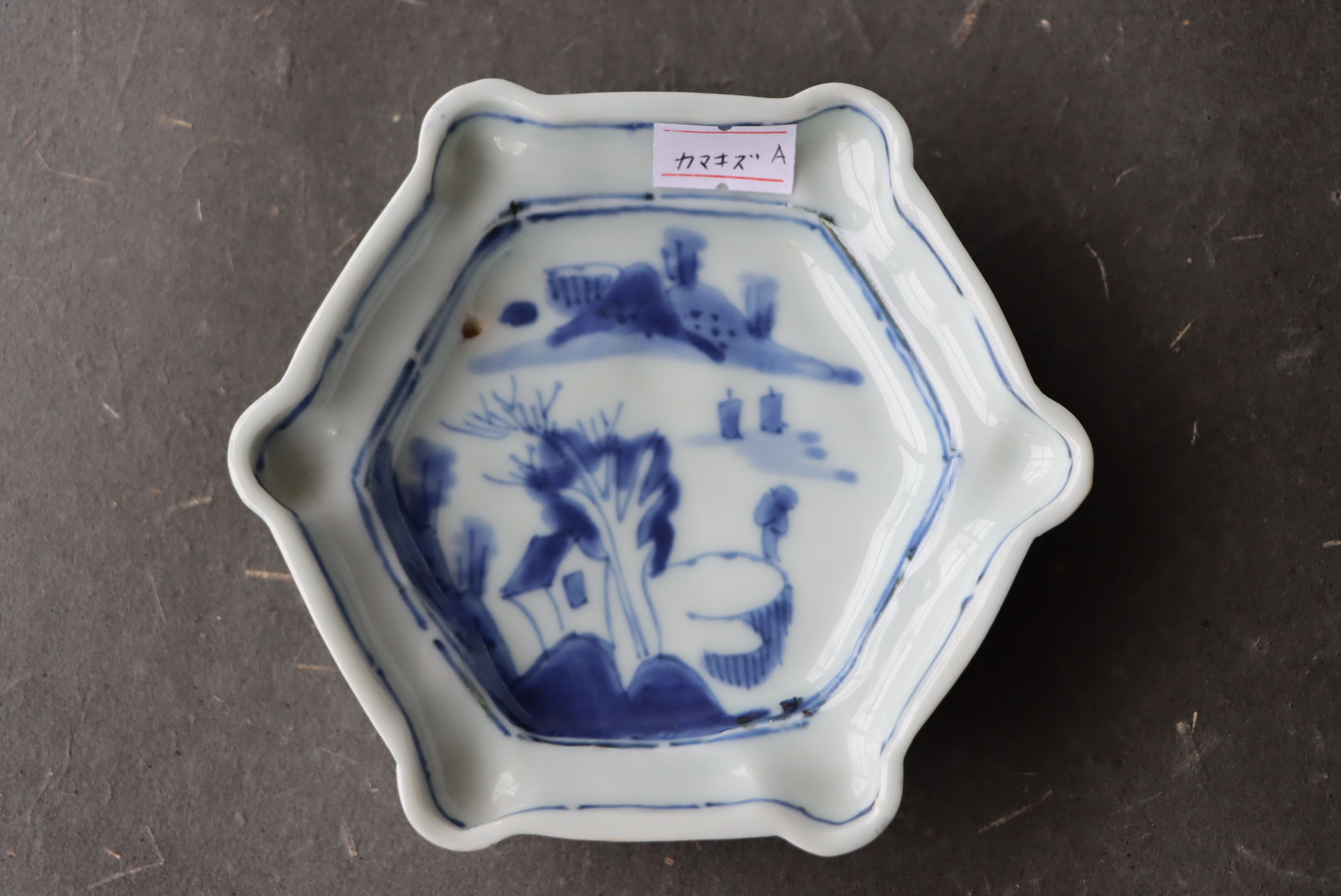 焼成時に窯の中でできる鉄分、くっつき、かまきず、経年による釉薬の薄れがございます。また、一枚一枚手描き、手作りですので器のサイズ(ミリ)、色味、描かれている文様の大きさなど個体差があり、ひとつとして同じものはございません。そういった時代感、個性をご理解いただき、楽しんでくだされば幸いです。電子レンジや食器洗い乾燥機のご使用はお控えください。