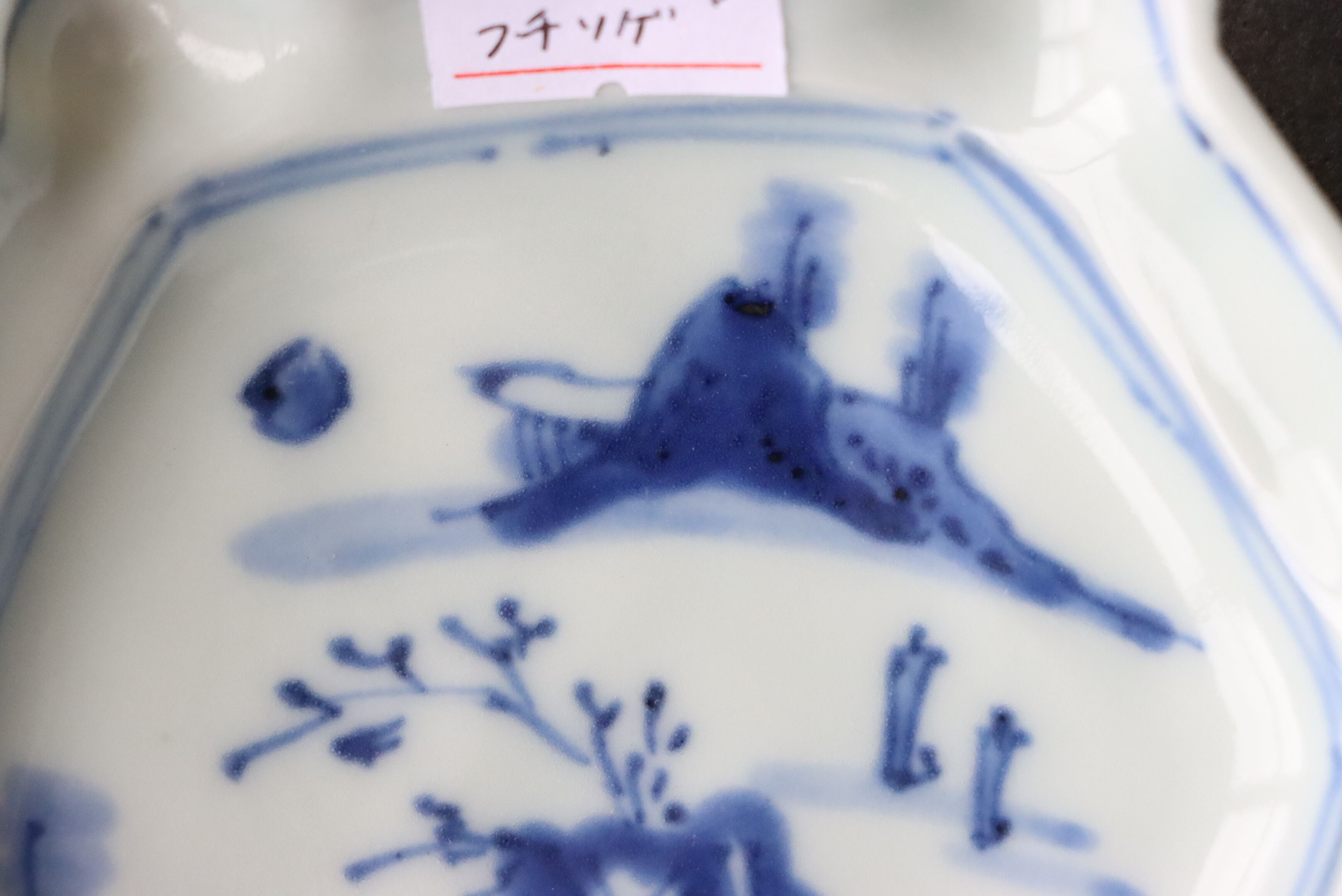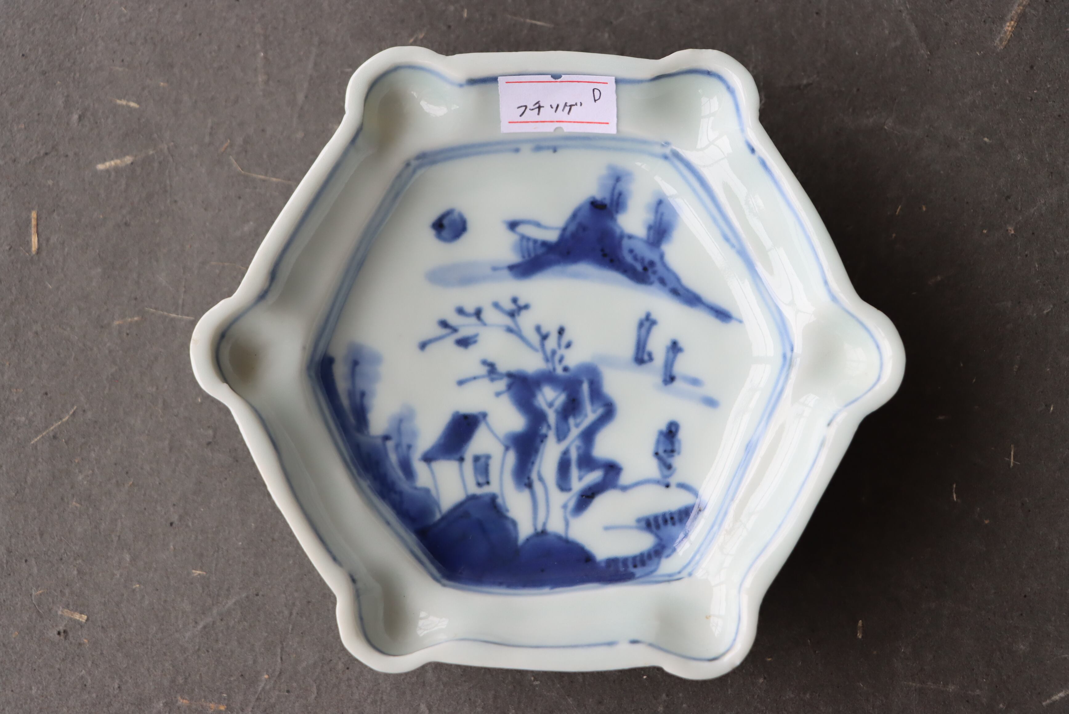 焼成時に窯の中でできる鉄分、くっつき、かまきず、経年による釉薬の薄れがございます。また、一枚一枚手描き、手作りですので器のサイズ(ミリ)、色味、描かれている文様の大きさなど個体差があり、ひとつとして同じものはございません。そういった時代感、個性をご理解いただき、楽しんでくだされば幸いです。電子レンジや食器洗い乾燥機のご使用はお控えください。
