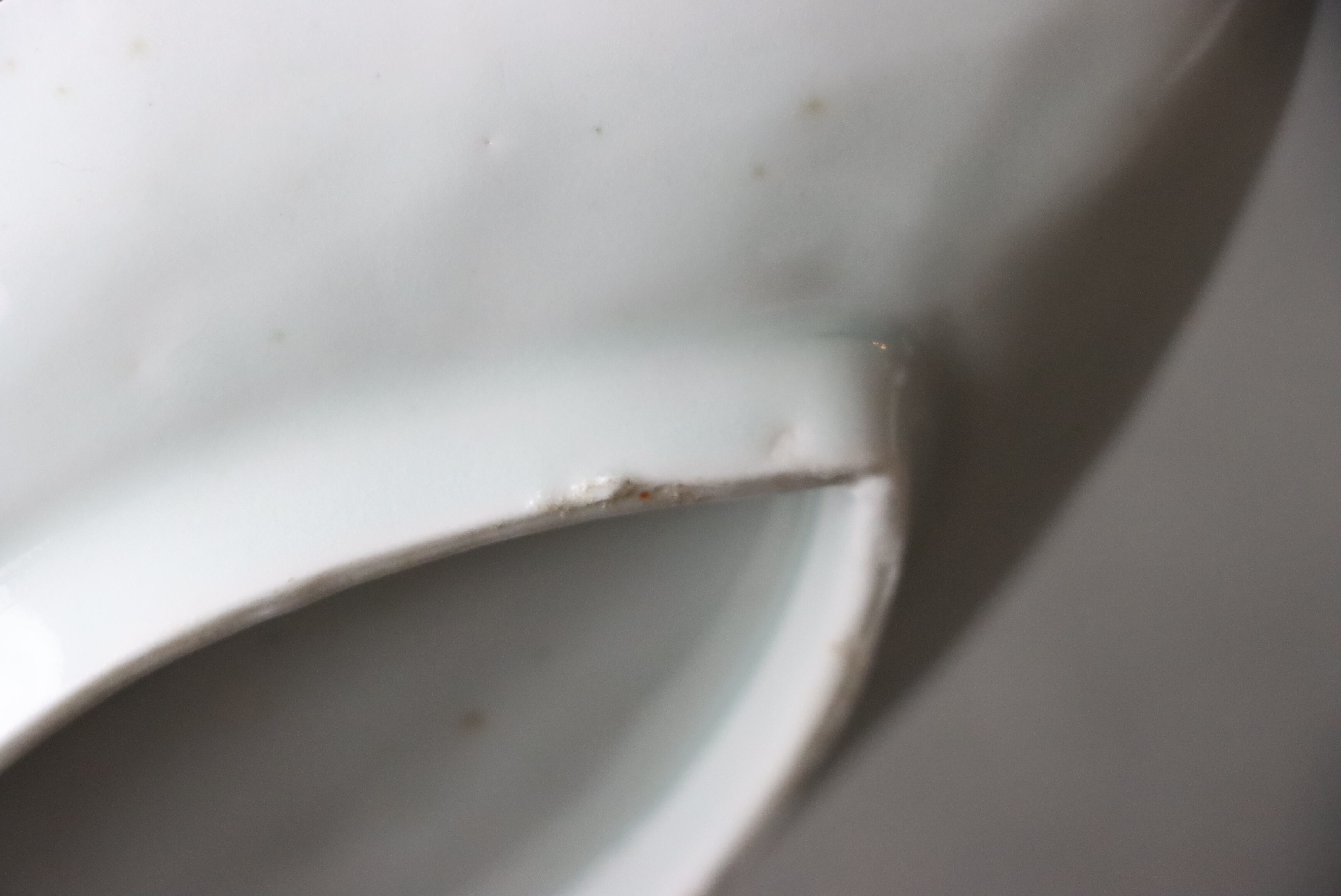 状態:高台に不均衡があり、平らな場所に置いても手で触れた際に器が揺れます。安定感に欠けます。器の一部に釉薬がかかっていない箇所があります。