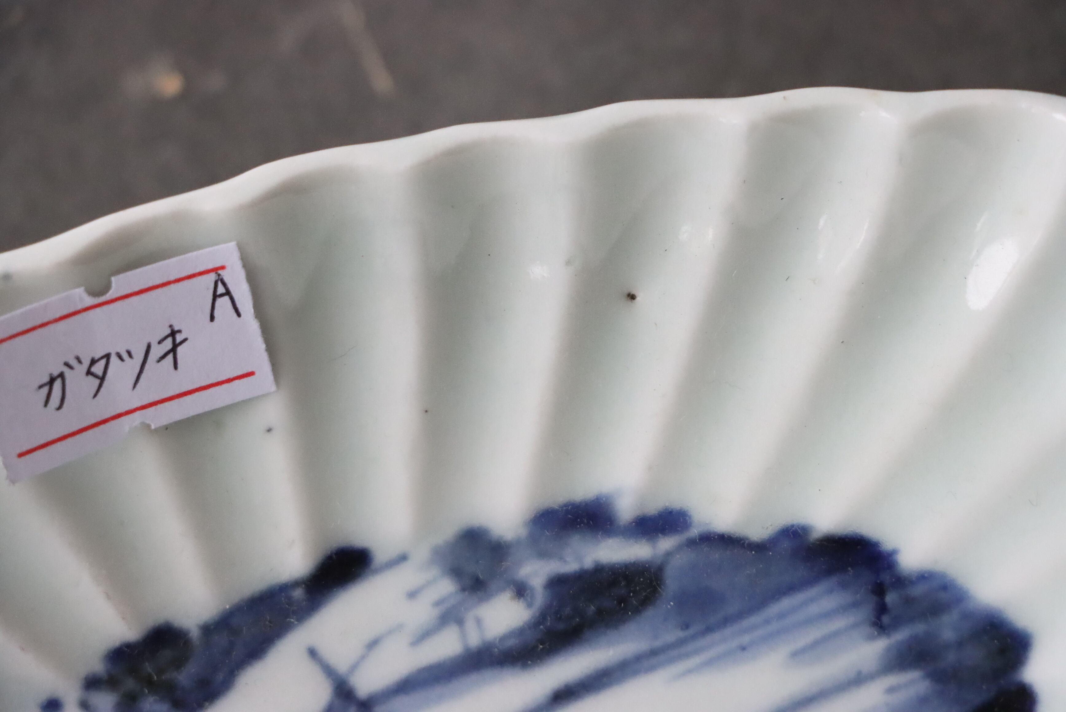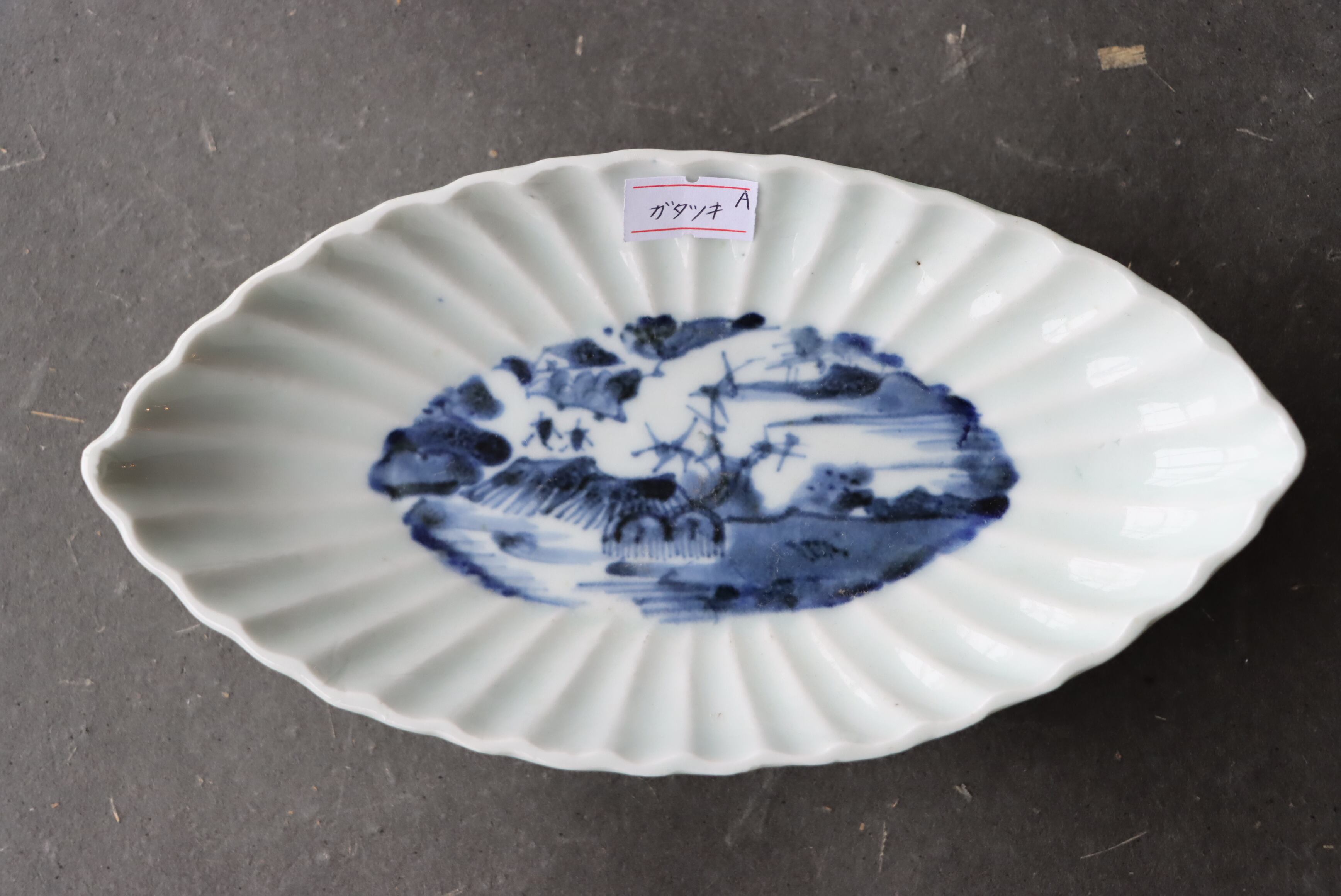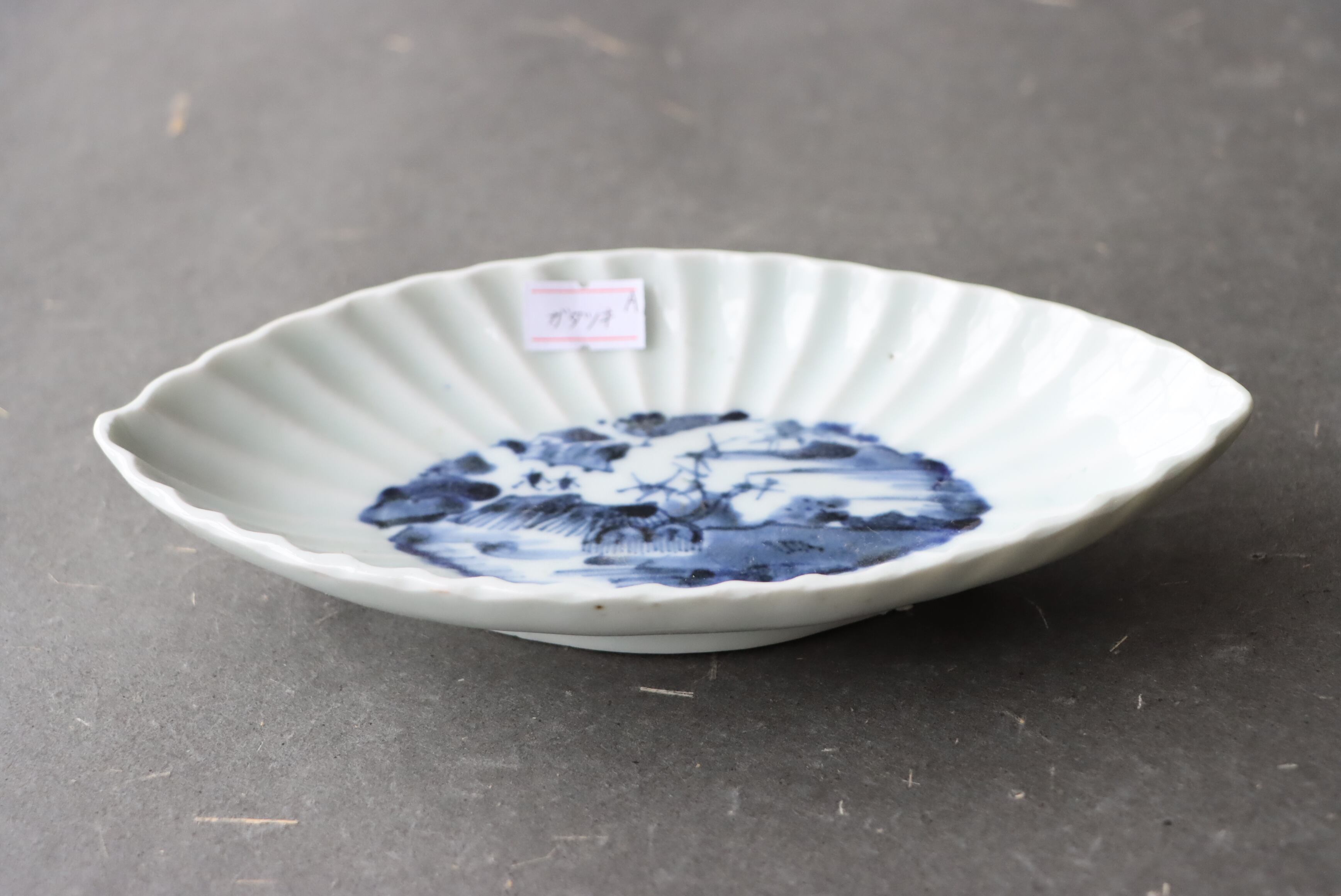 がたつき 古伊万里 染付 風景文 変形皿 A アウトレット