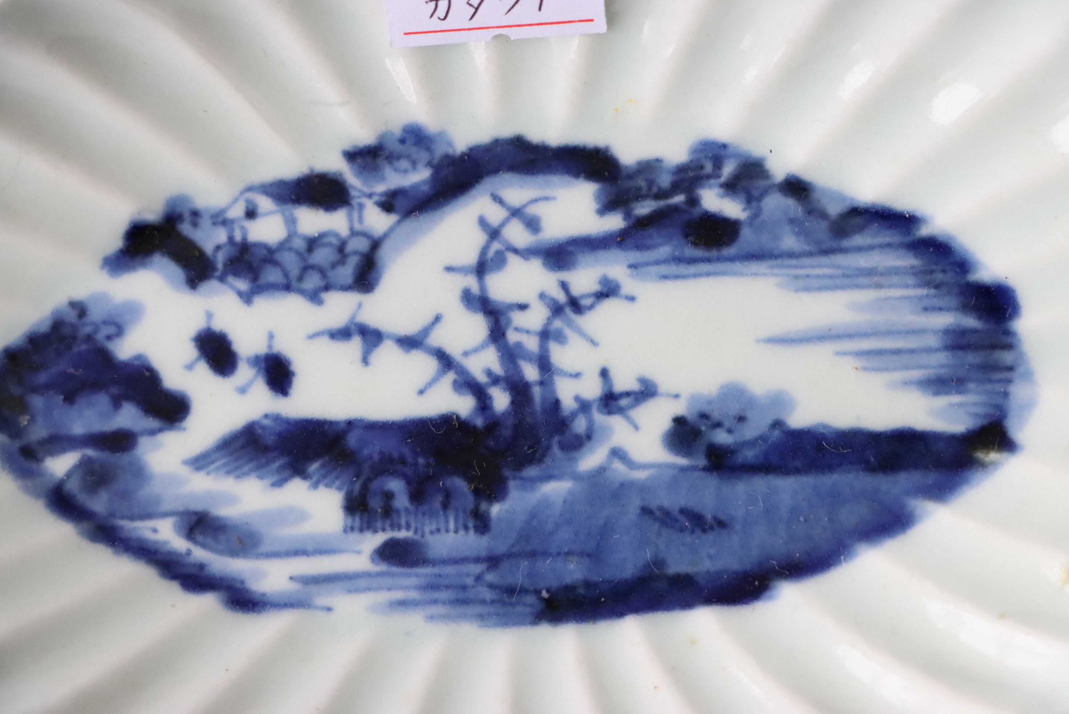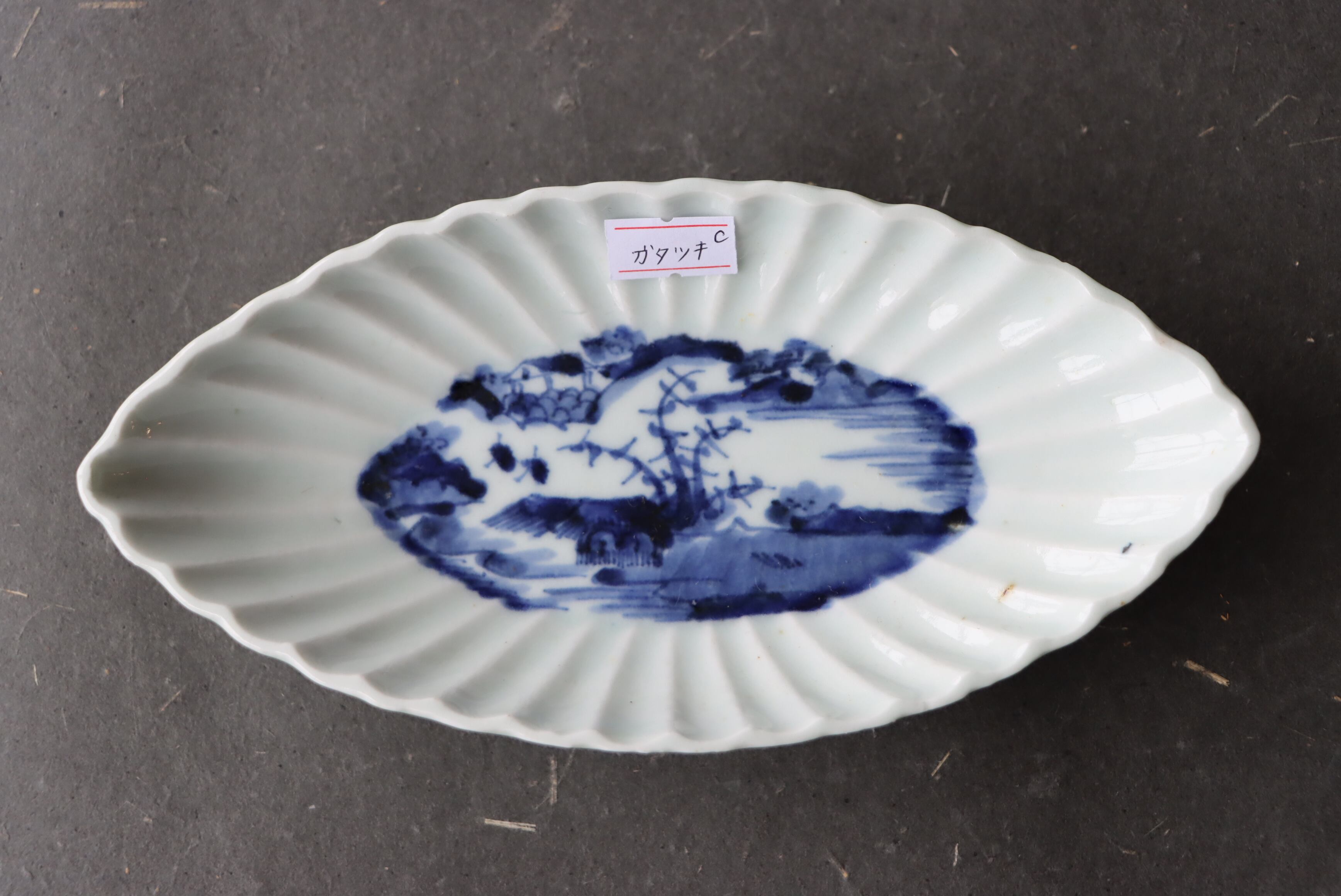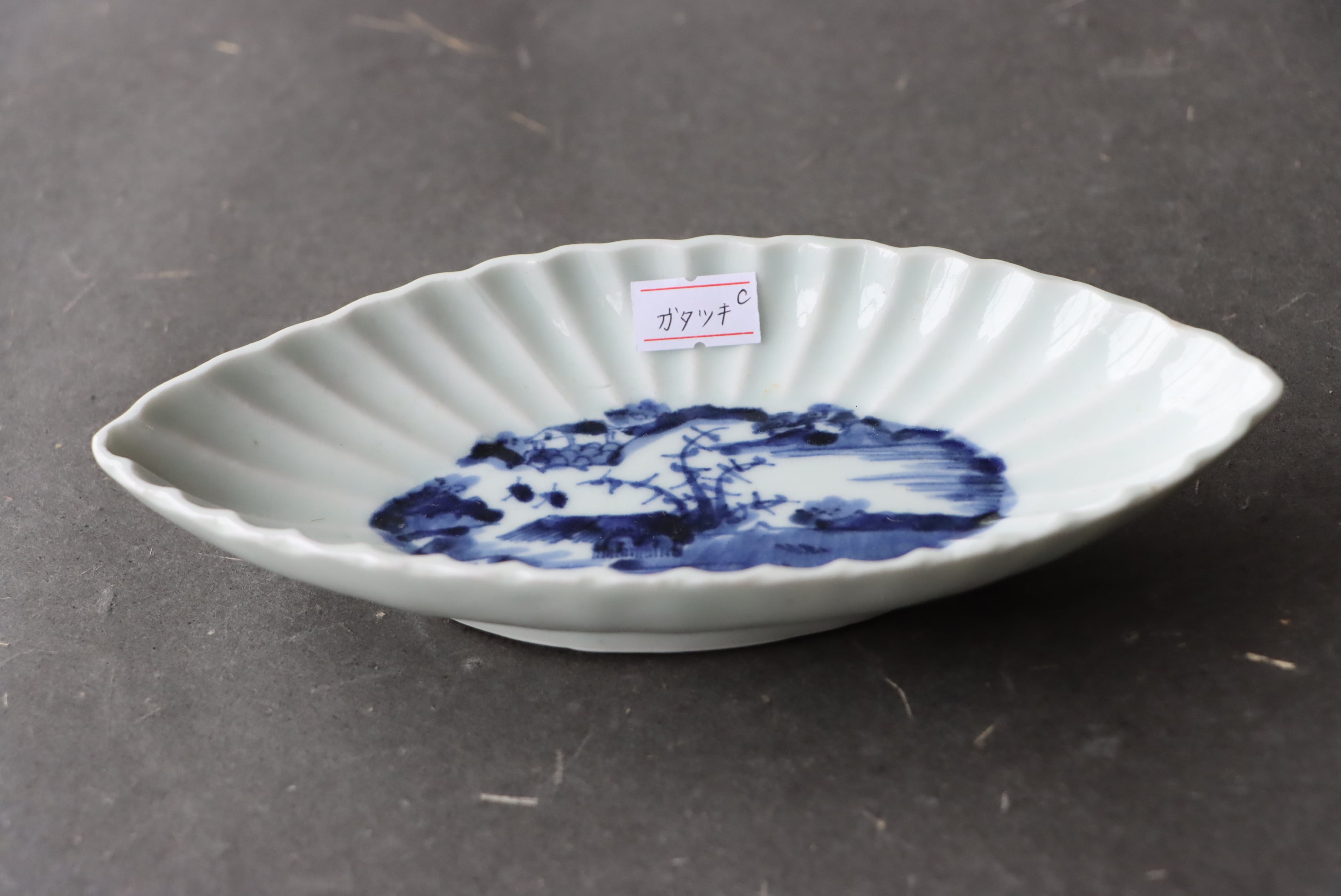 がたつき 古伊万里 染付 風景文 変形皿 C アウトレット
