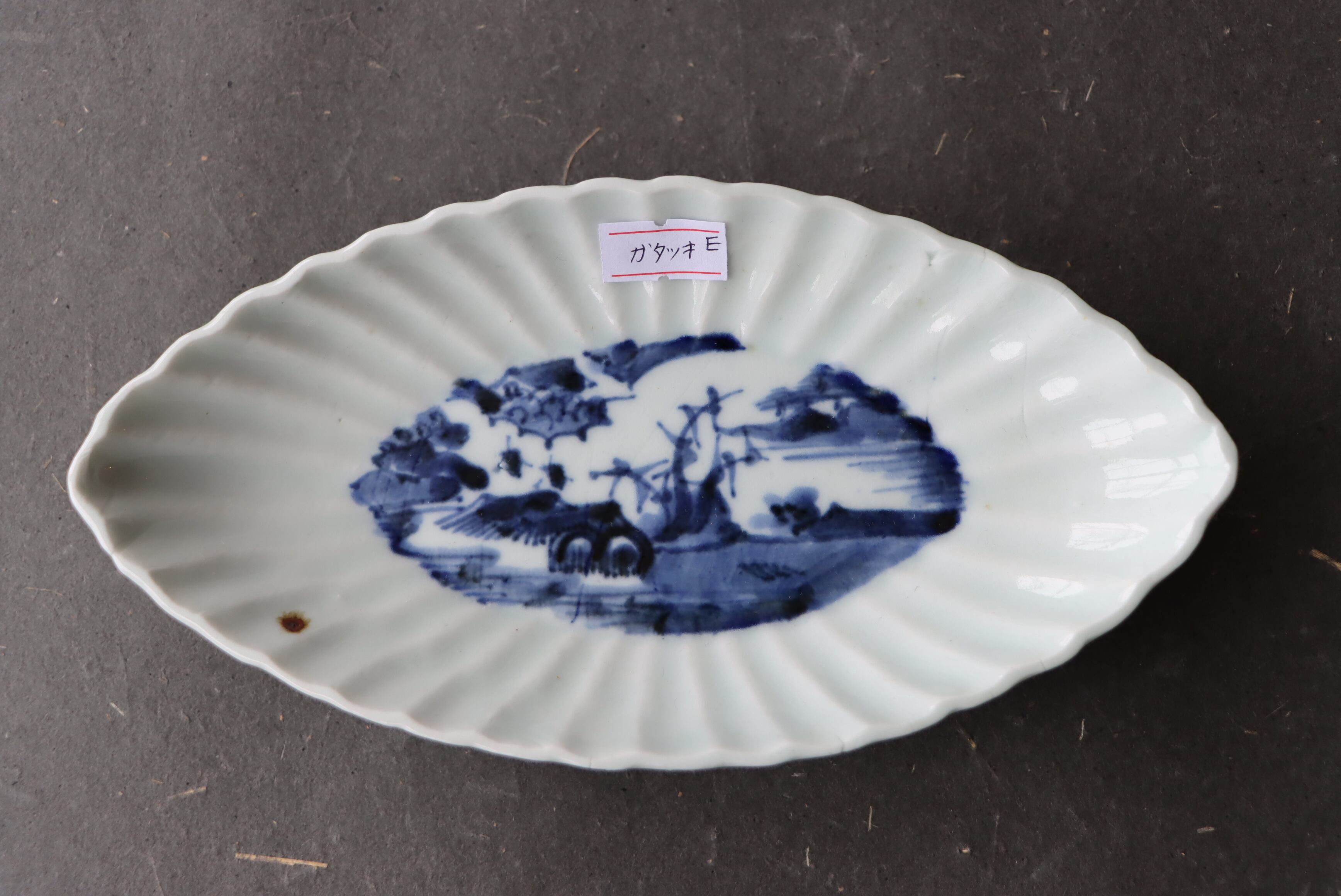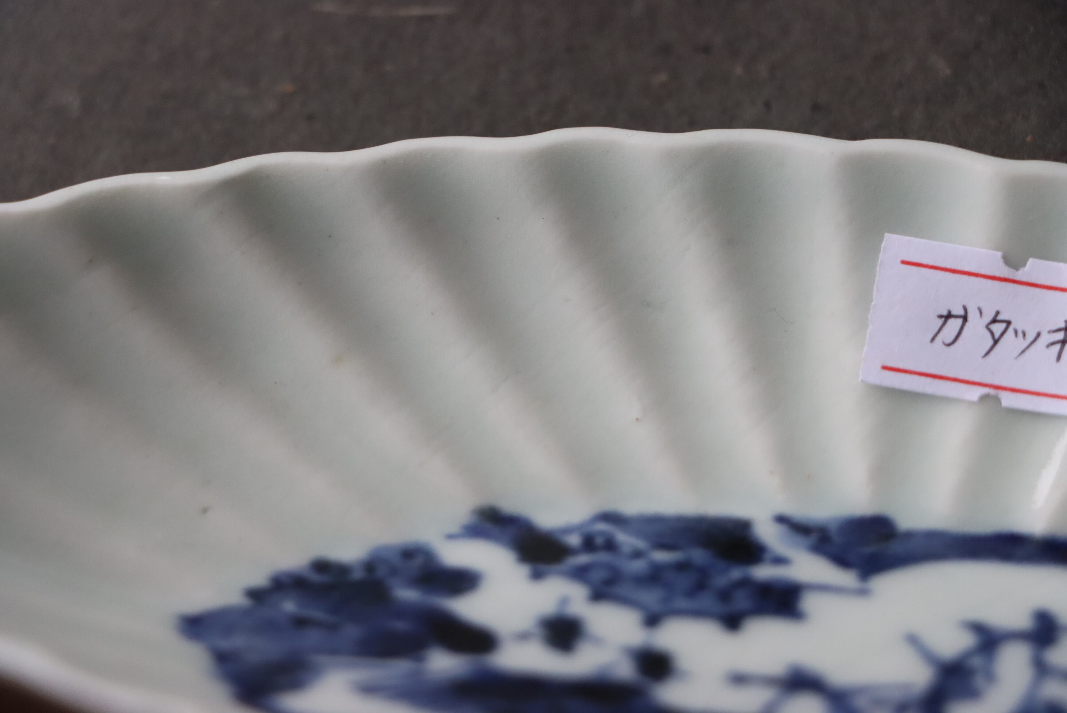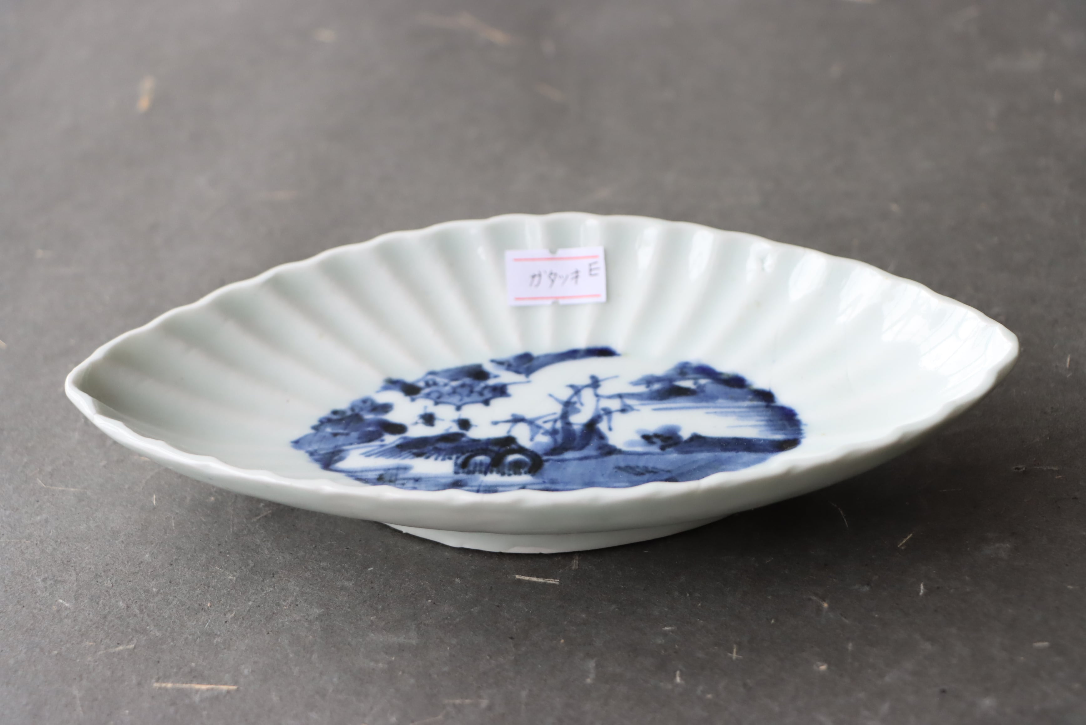 がたつき 鉄分 古伊万里 染付 風景文 変形皿 E アウトレット