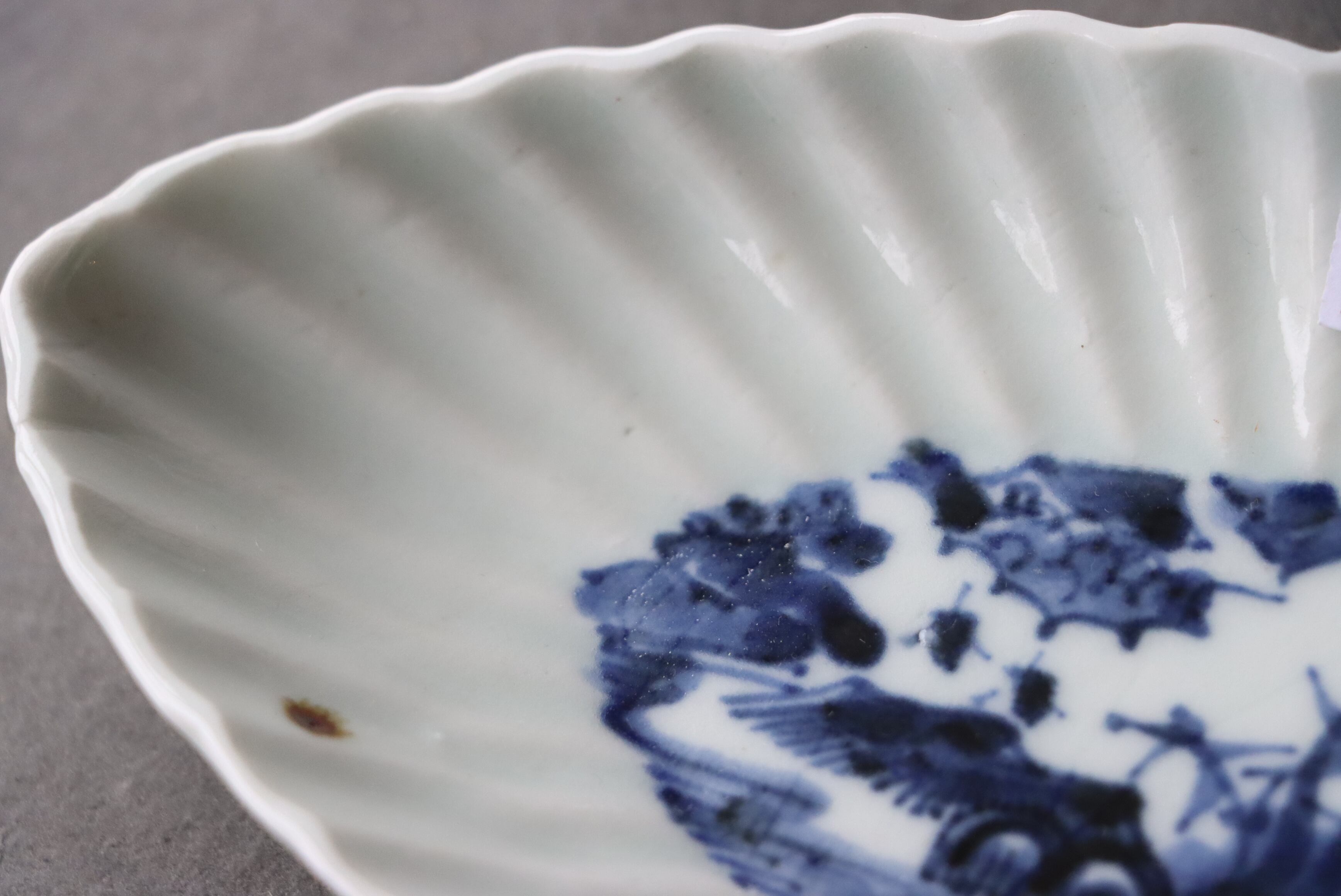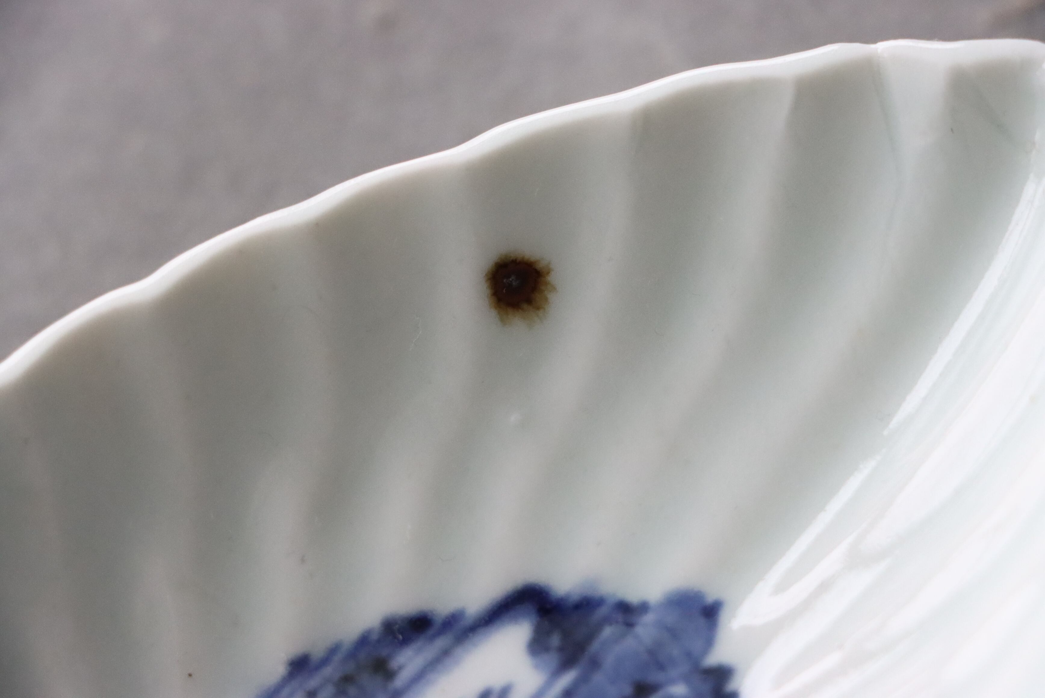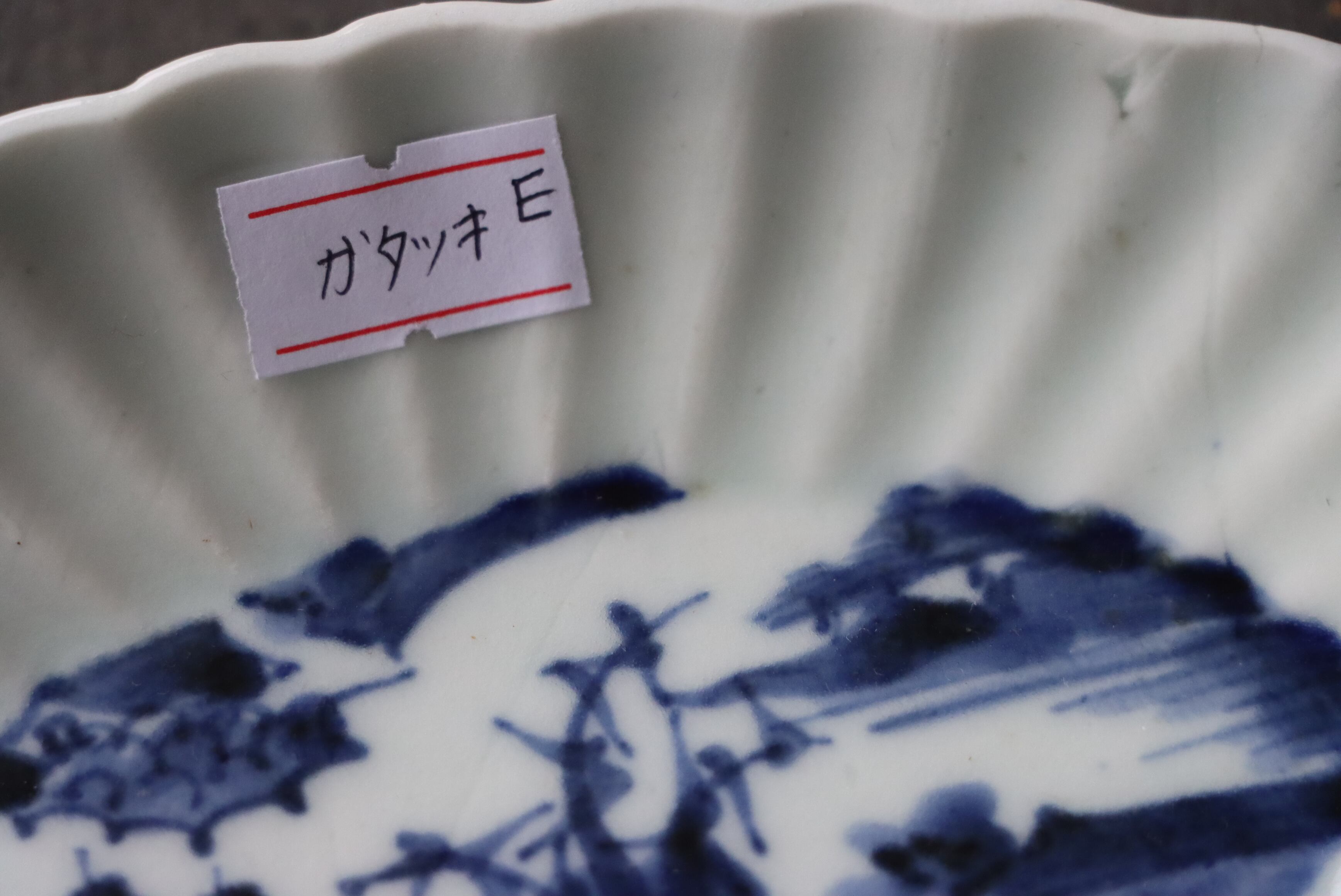 がたつき 鉄分 古伊万里 染付 風景文 変形皿 E アウトレット