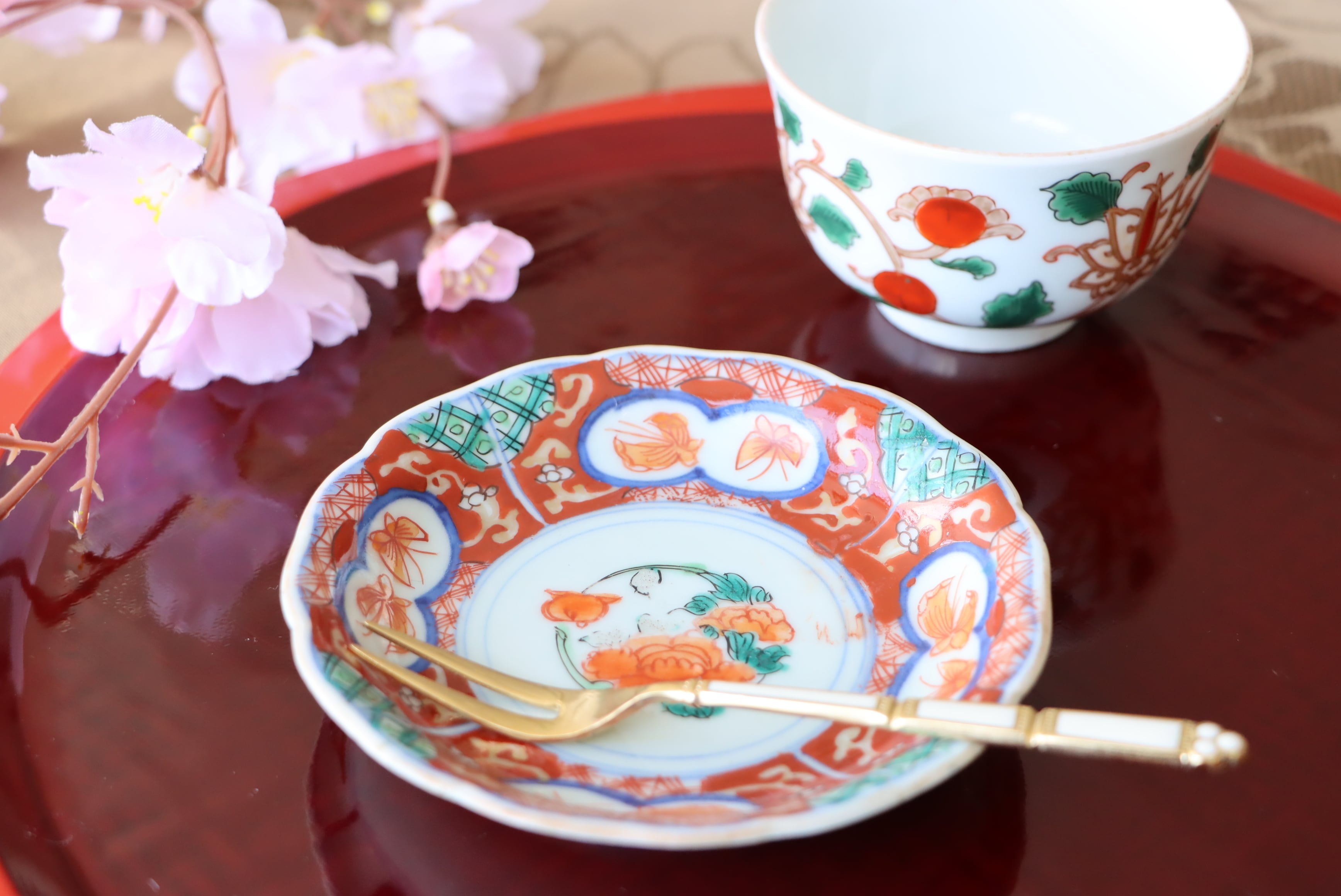 伊万里焼 色絵 花蝶文 小皿/Imari small plate