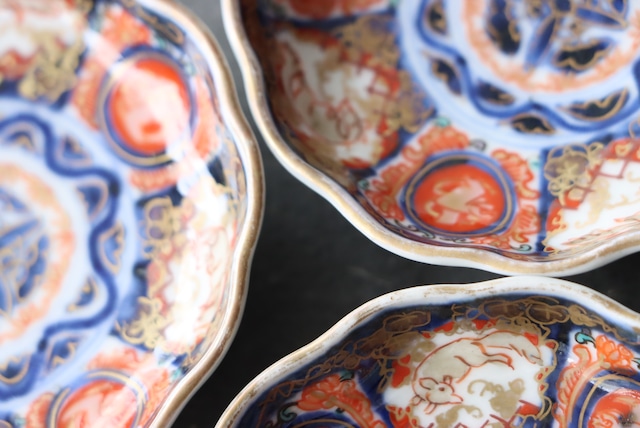 焼成時に窯の中でできる鉄分、くっつき、かまきず、ピンホール、経年による釉薬の薄れがございます。また、一枚一枚手描き、手作りですので器のサイズ(ミリ)、色味、描かれている文様の大きさなど個体差があり、ひとつとして同じものはございません。そういった時代感、個性をご理解いただき、楽しんでくだされば幸いです。電子レンジや食器洗い乾燥機のご使用はお控えください。