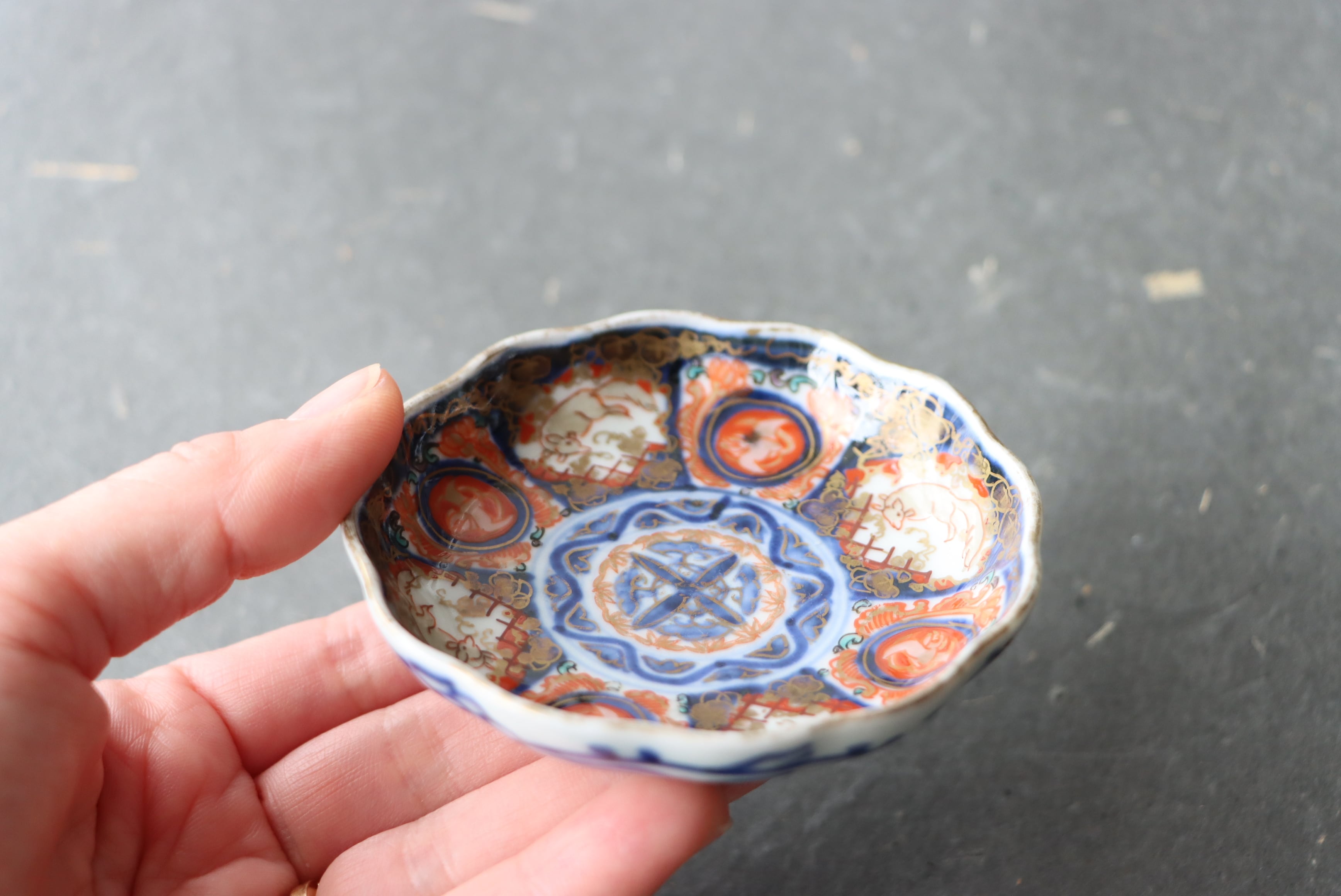 大聖寺伊万里 色絵 葡萄に栗鼠文 輪花 豆皿 / Daisyo-ji Imari small plate
