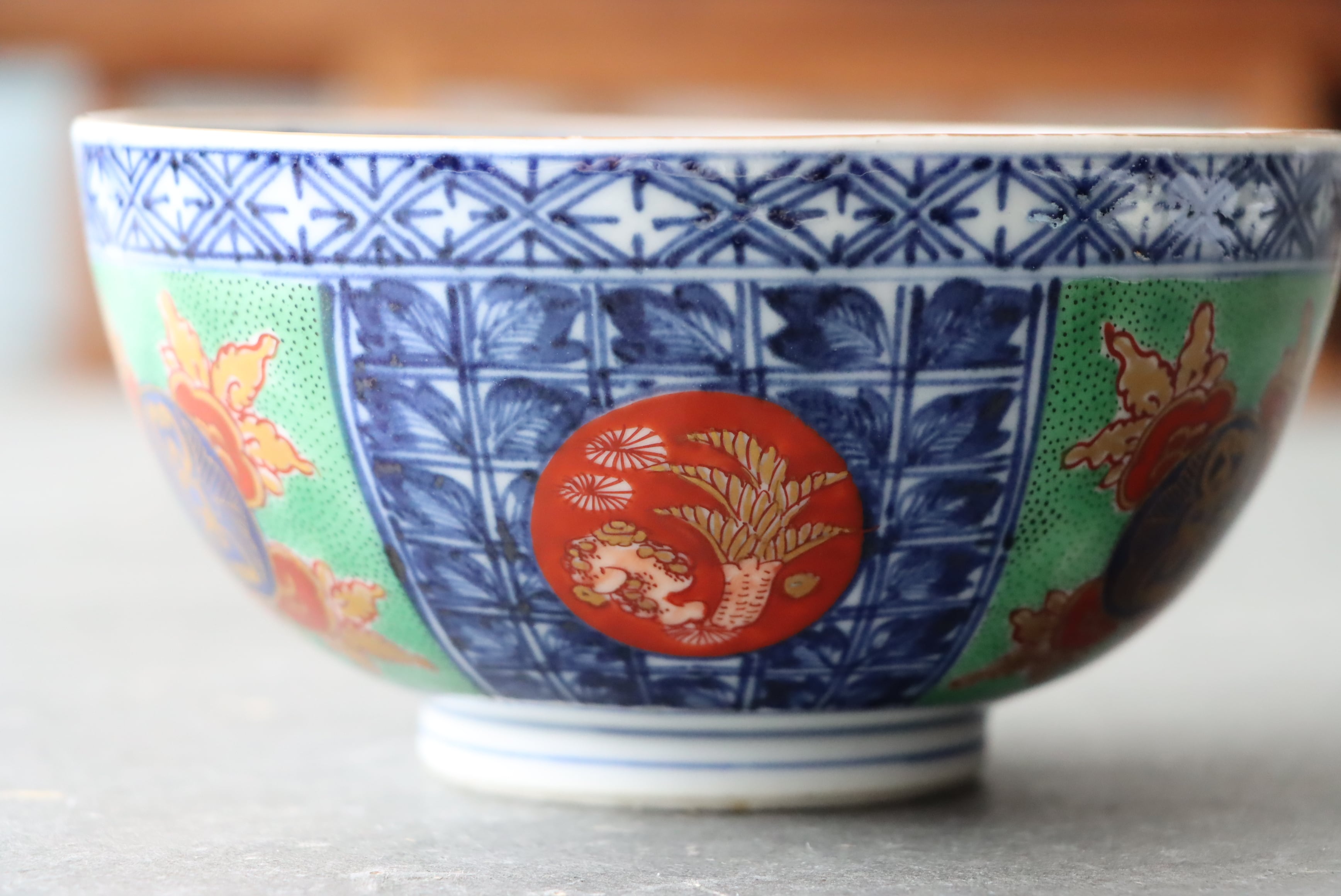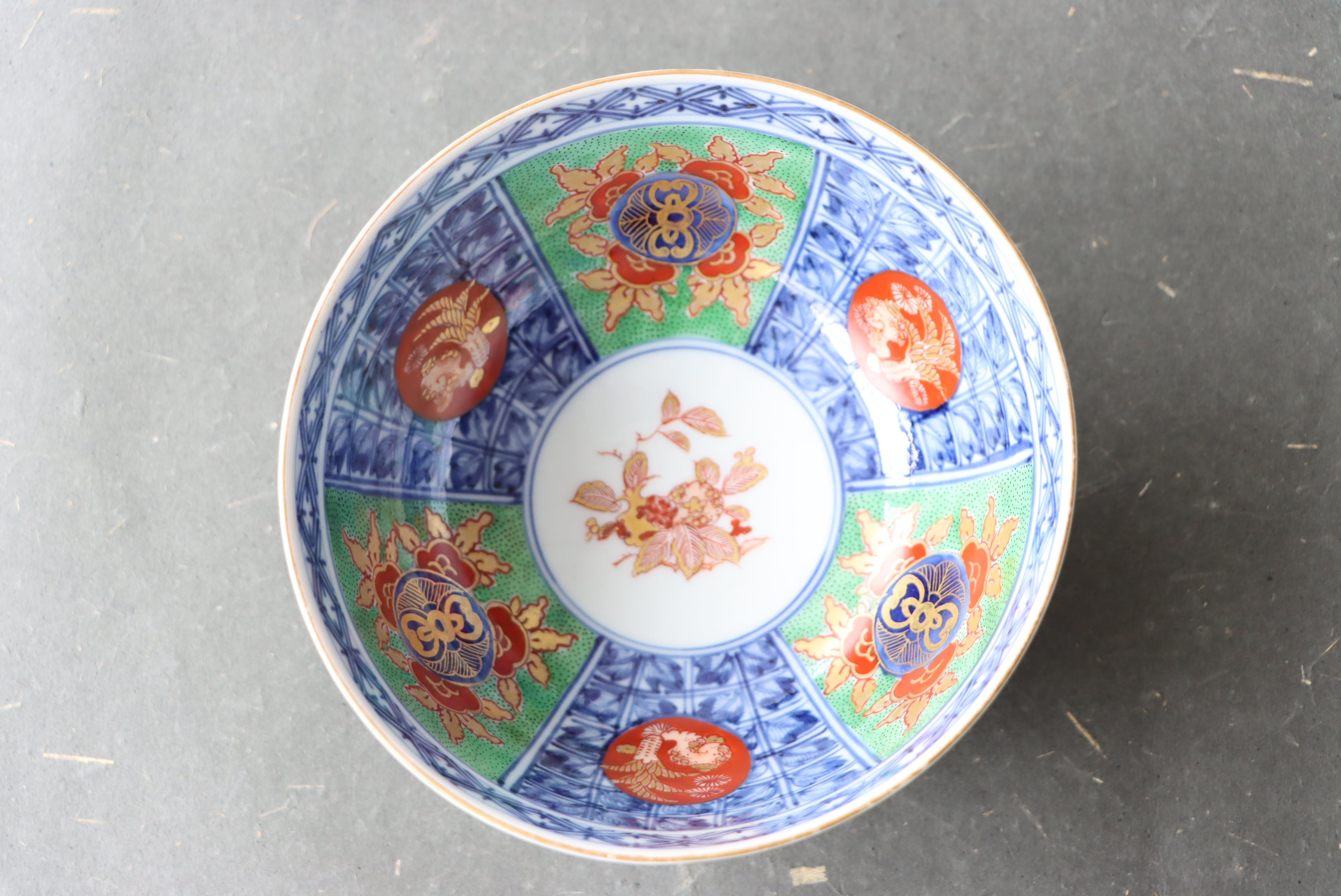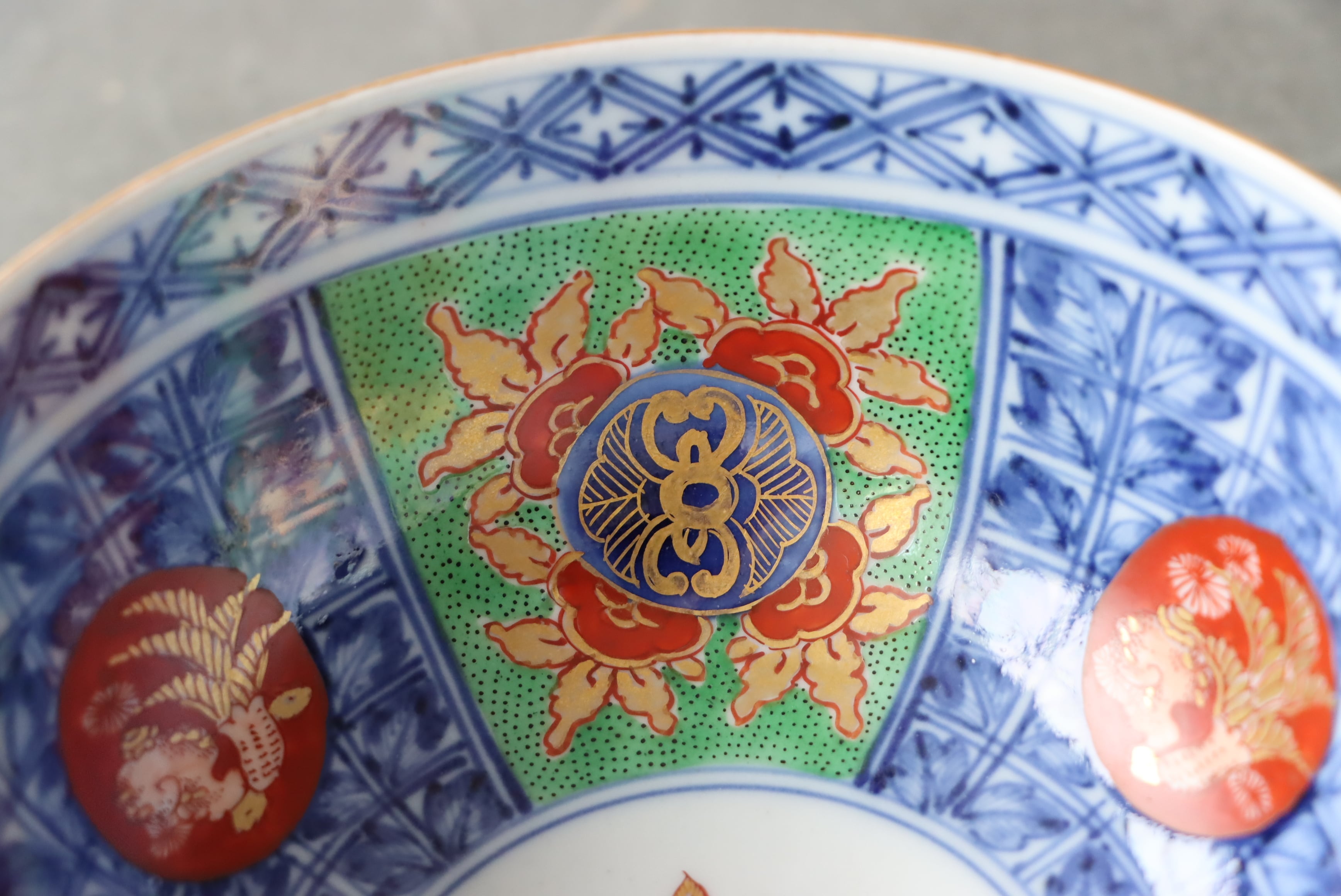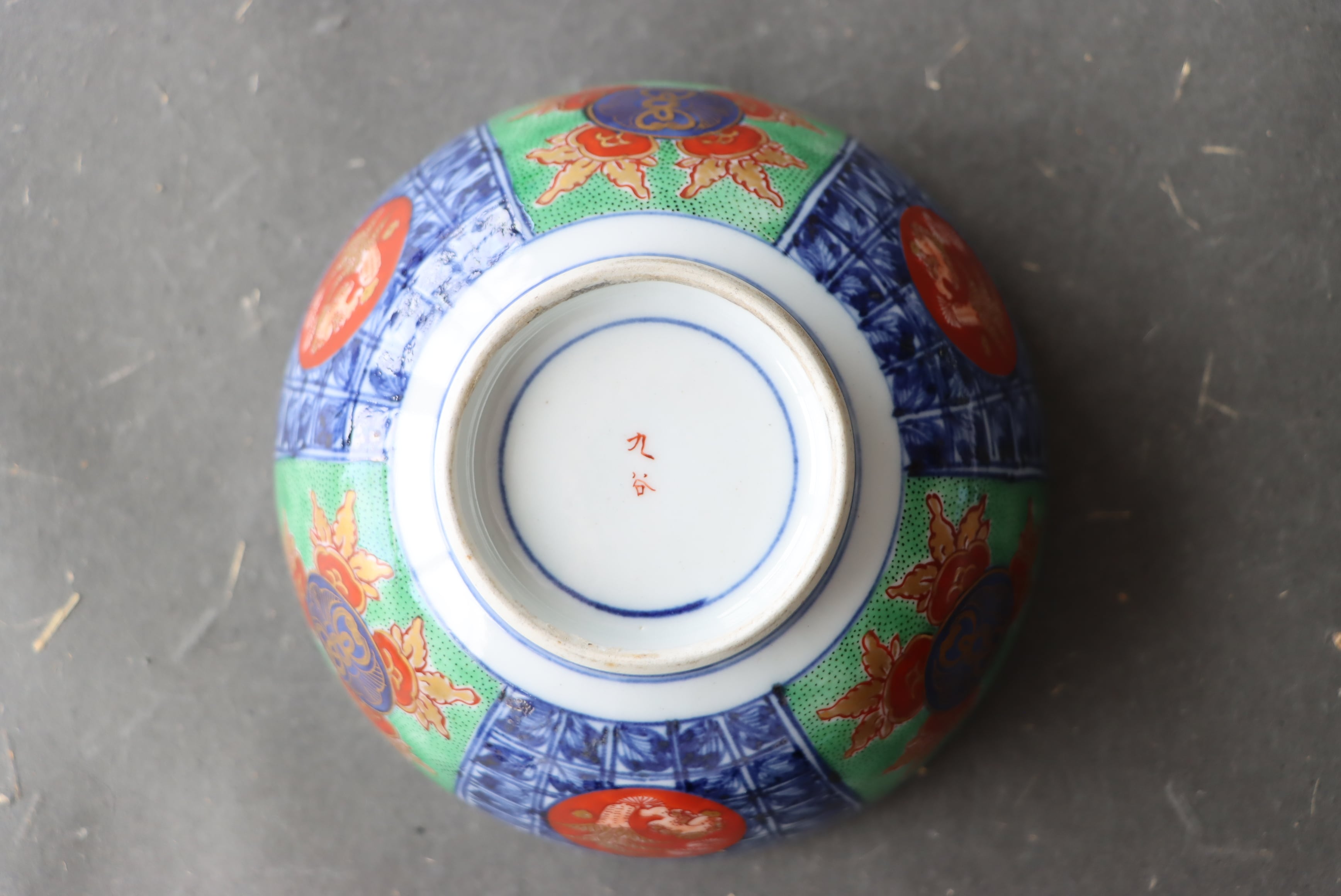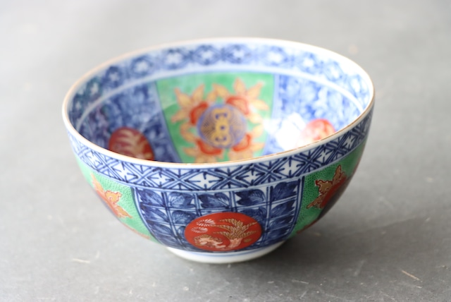 【Kutani bowl with pomegranate design in overglaze enamels.】