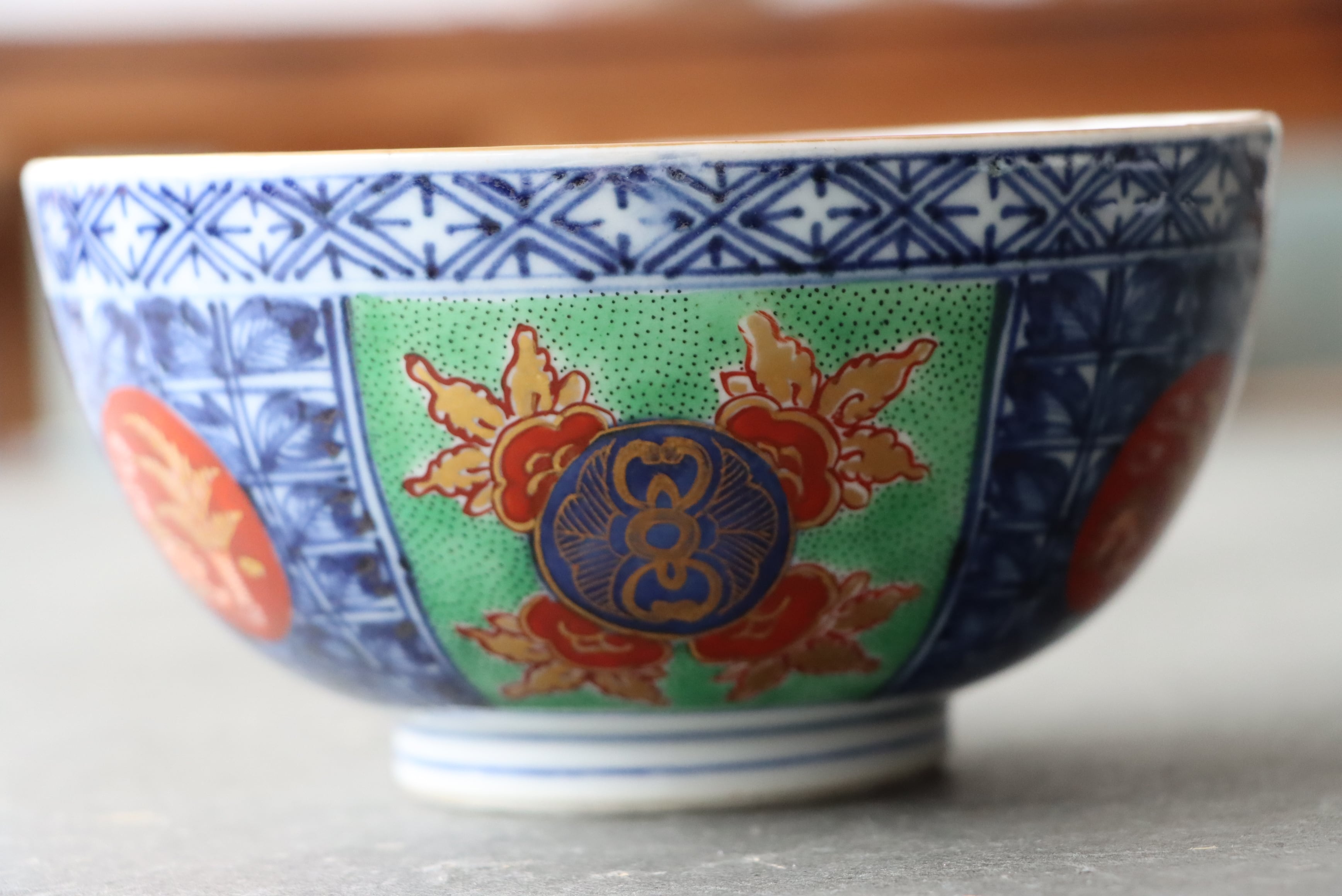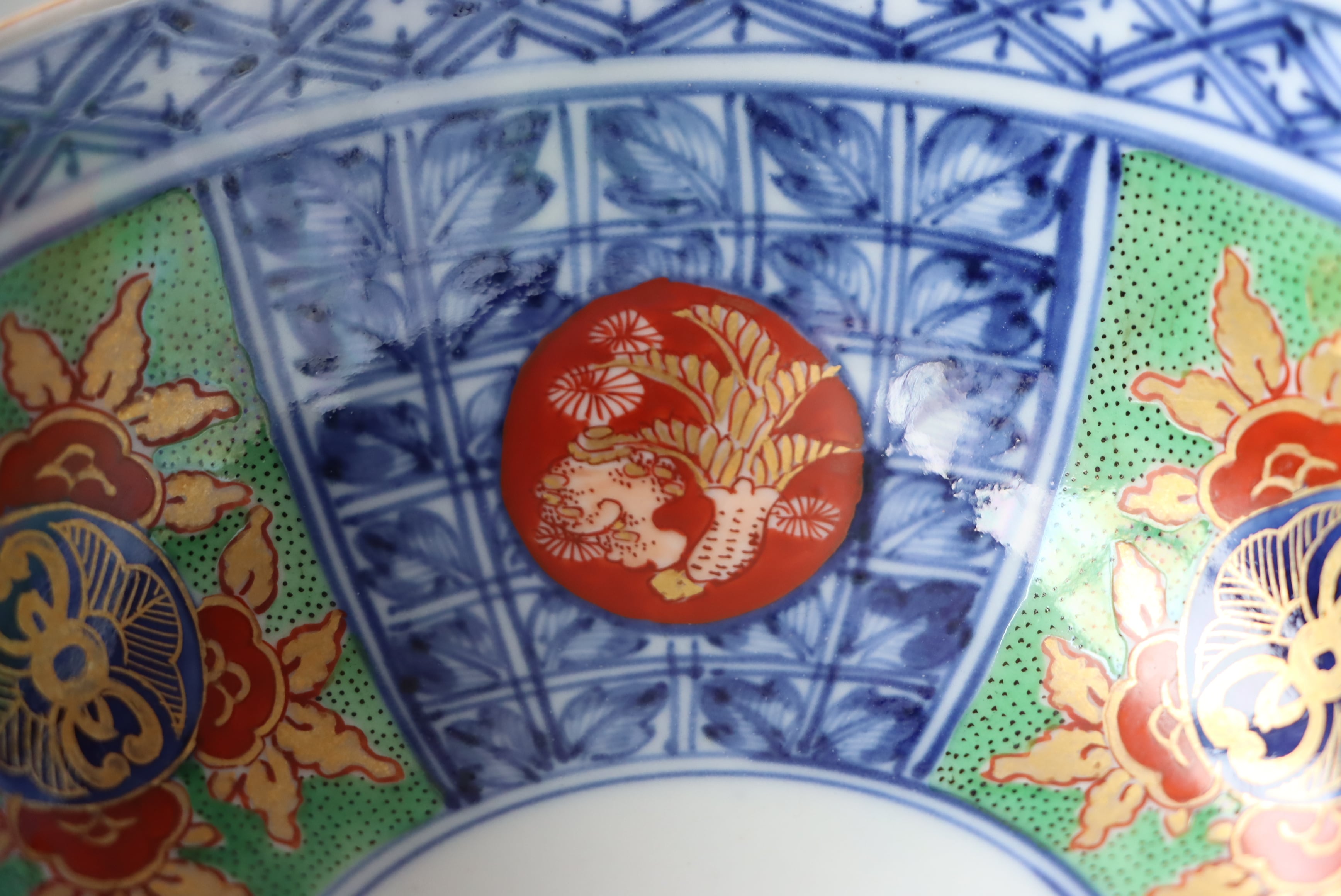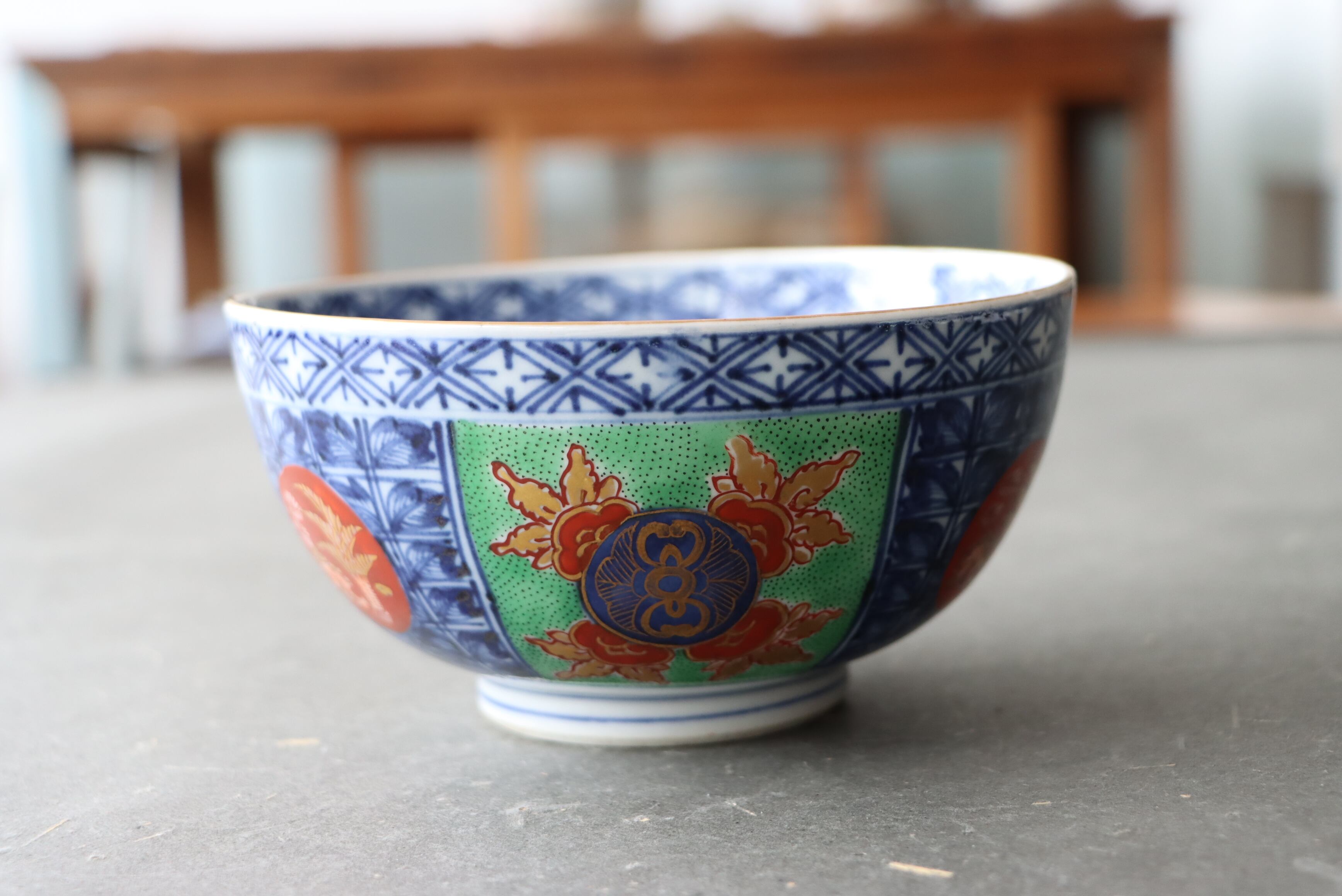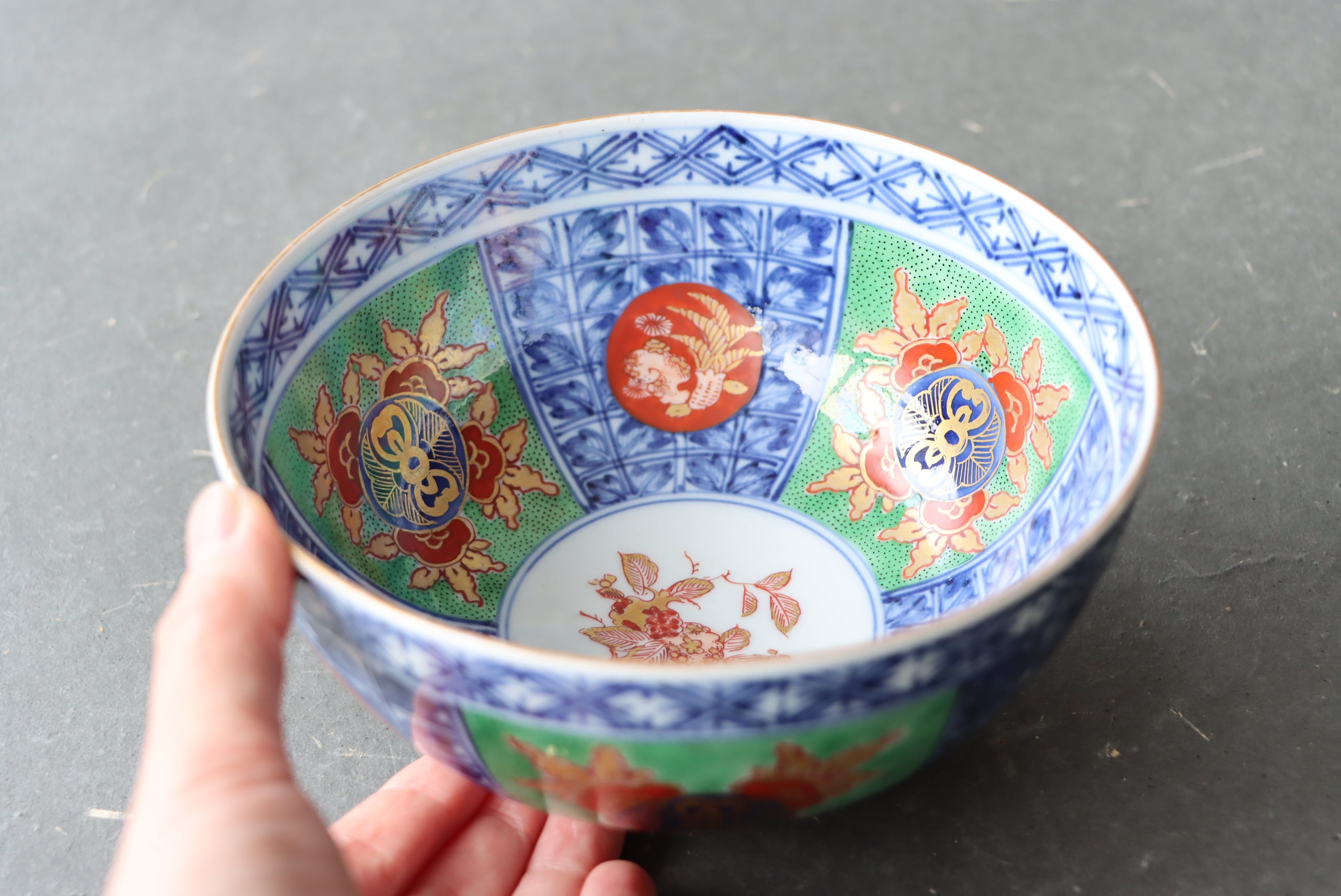 【Kutani bowl with pomegranate design in overglaze enamels.】