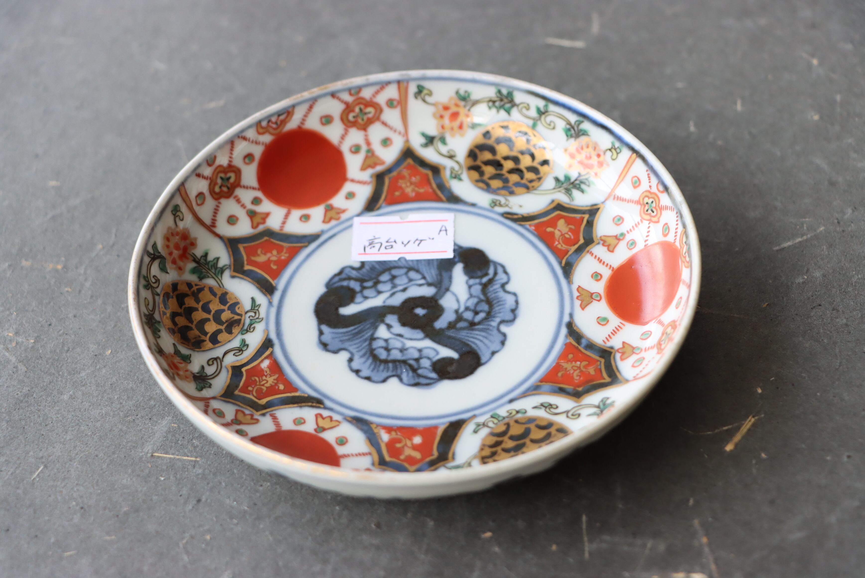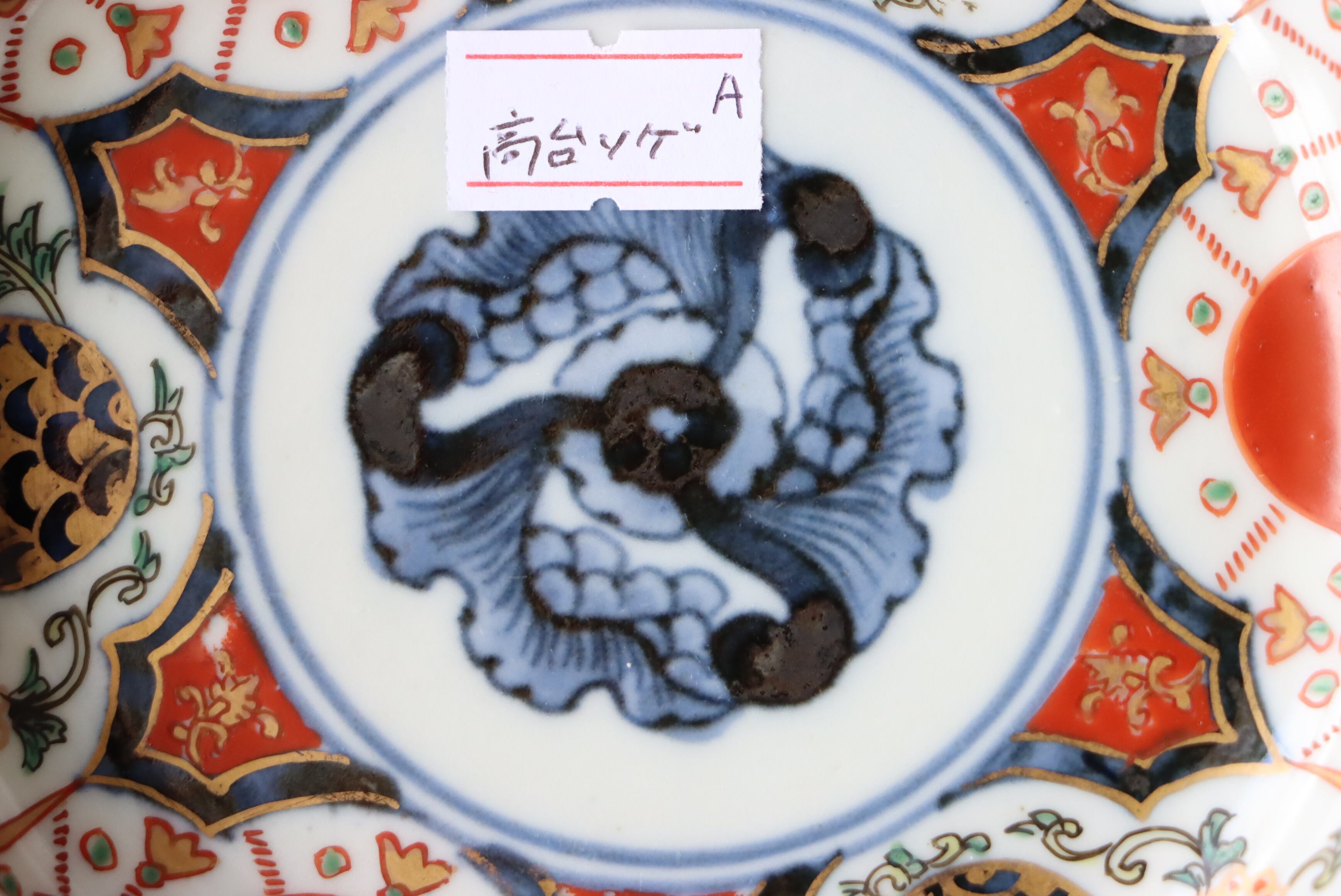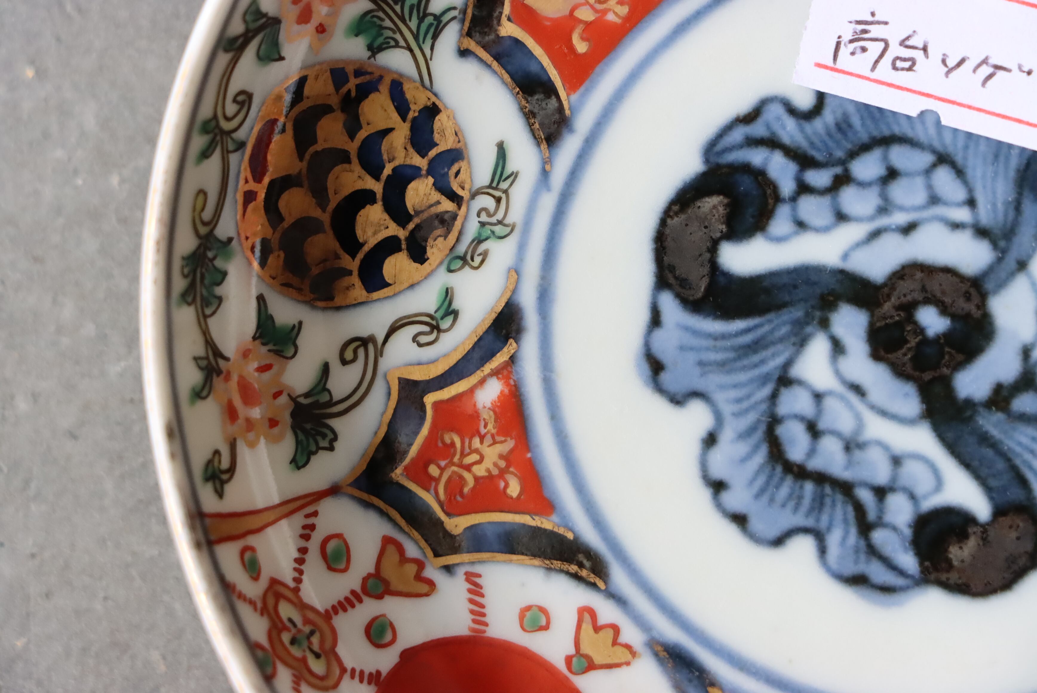 状態:高台ソゲあり。その他、釉薬の剥がれ、口縁に施されている金彩が剥離している箇所があります。普段使い可能です。