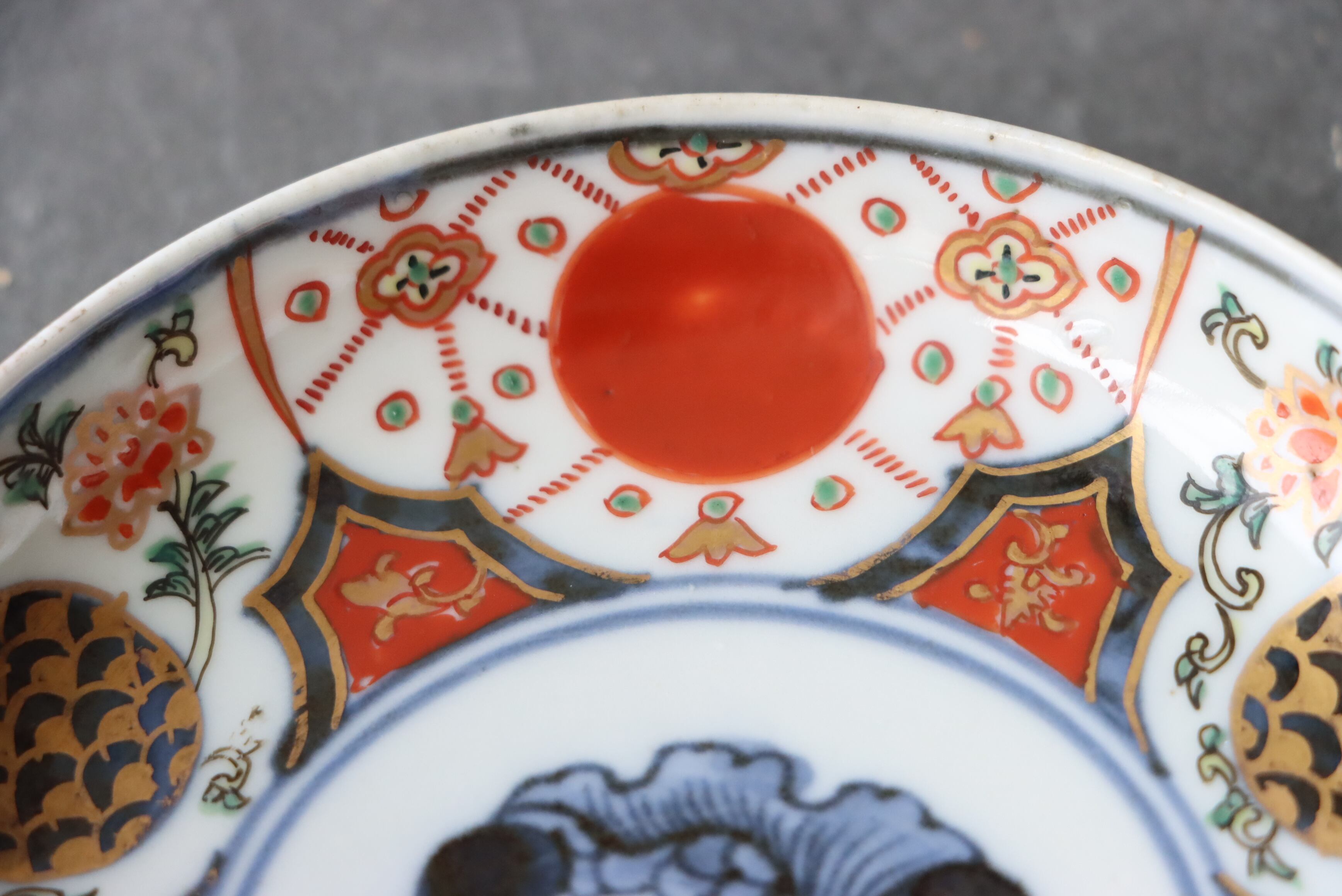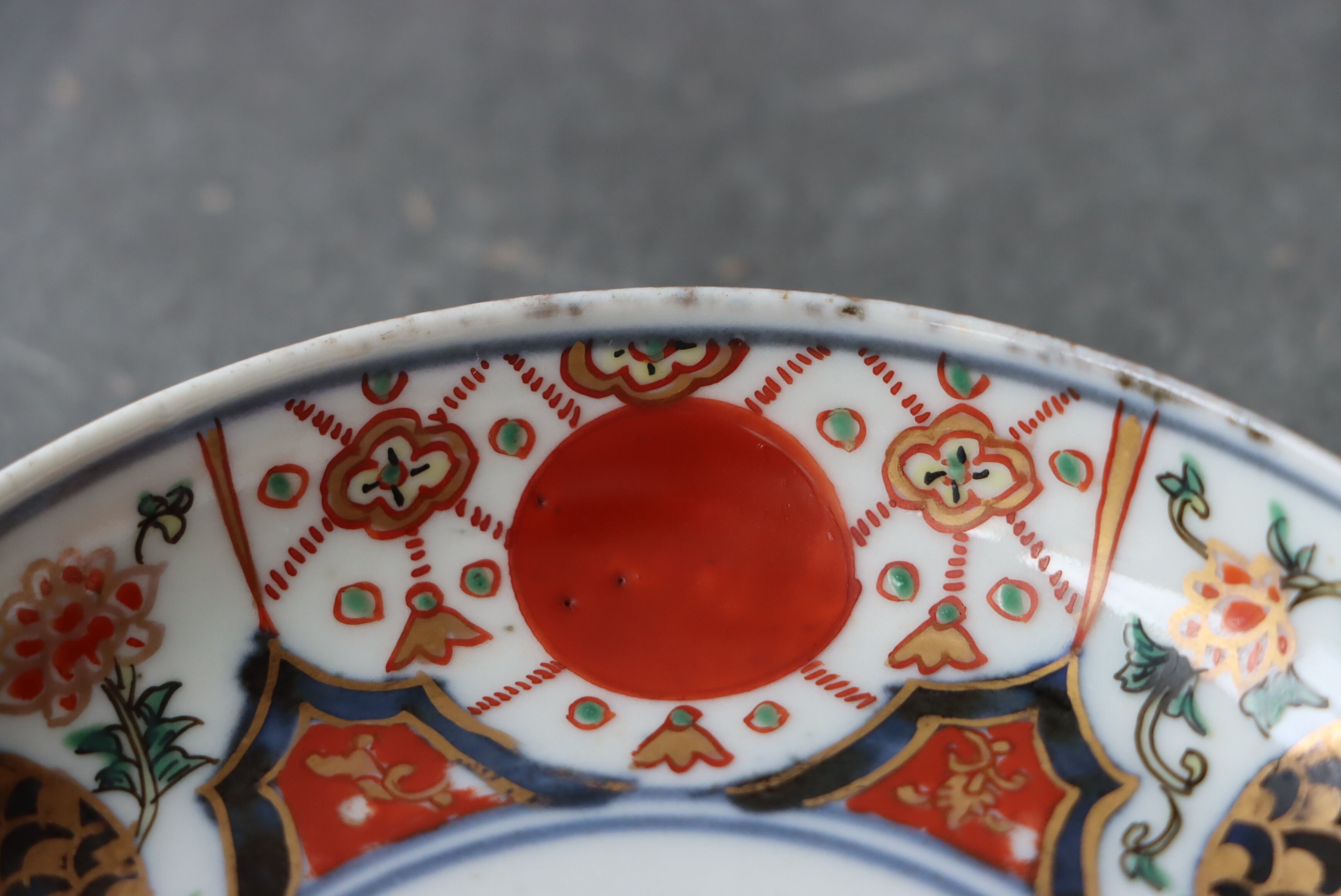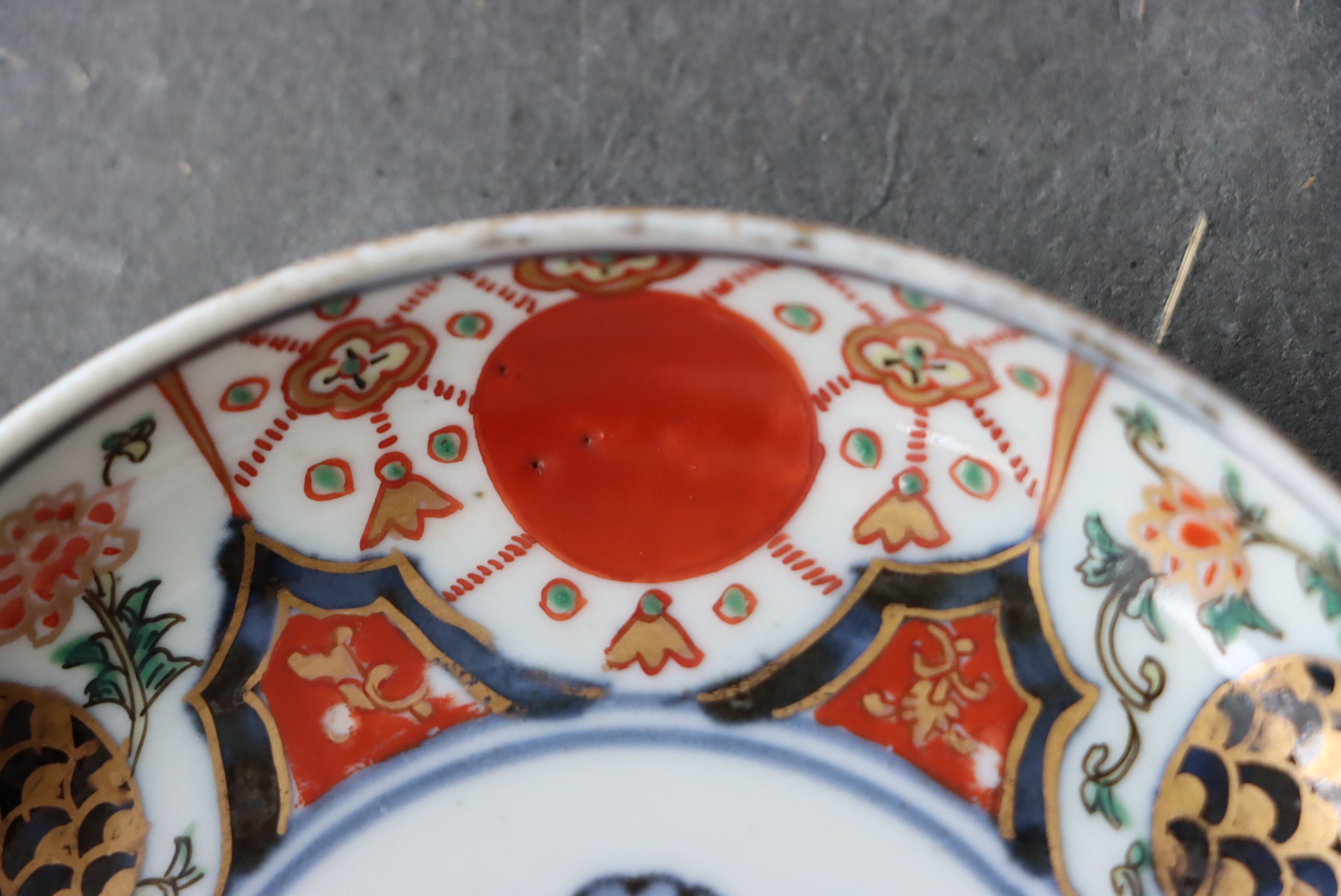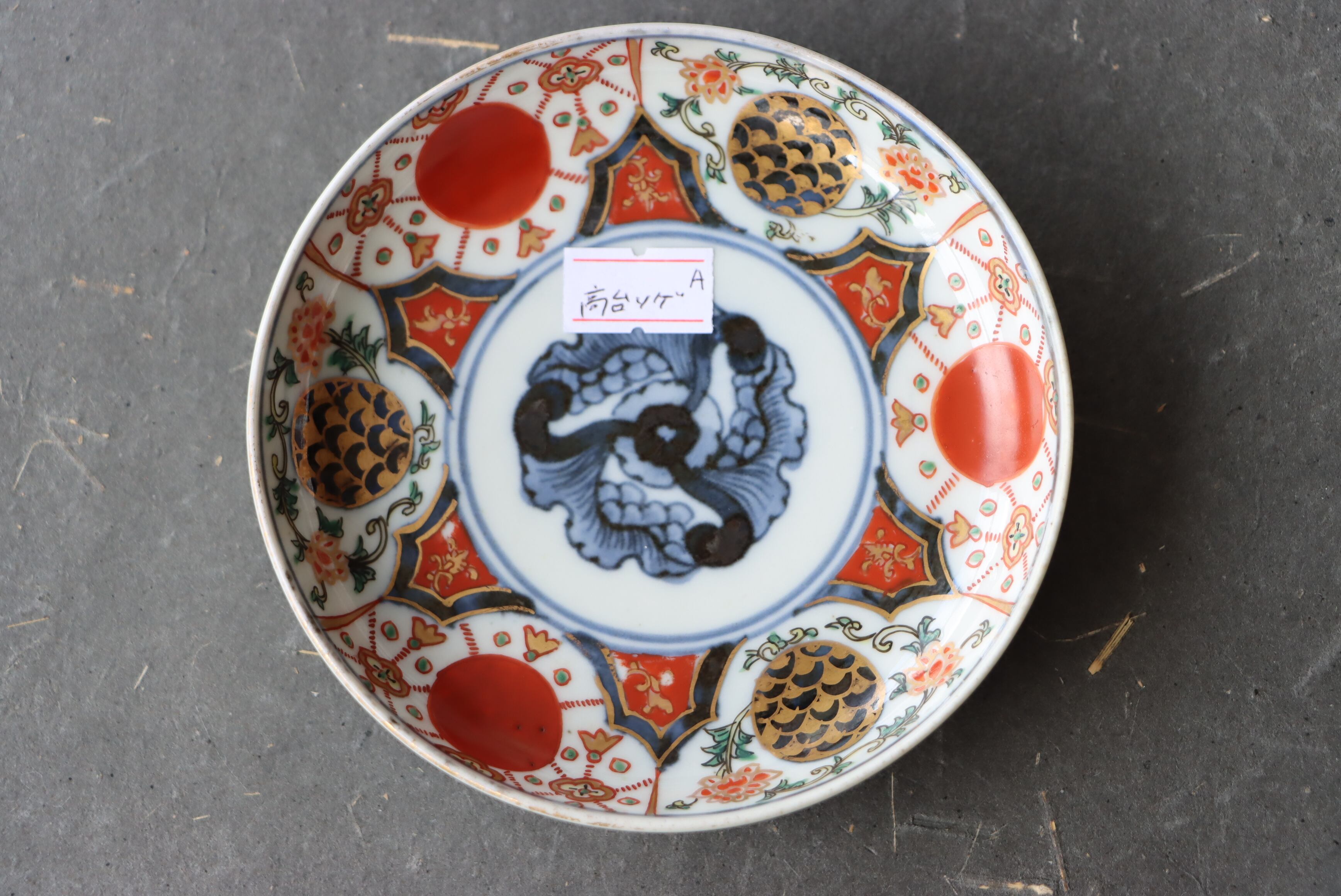 状態:高台ソゲあり。その他、釉薬の剥がれ、口縁に施されている金彩が剥離している箇所があります。普段使い可能です。