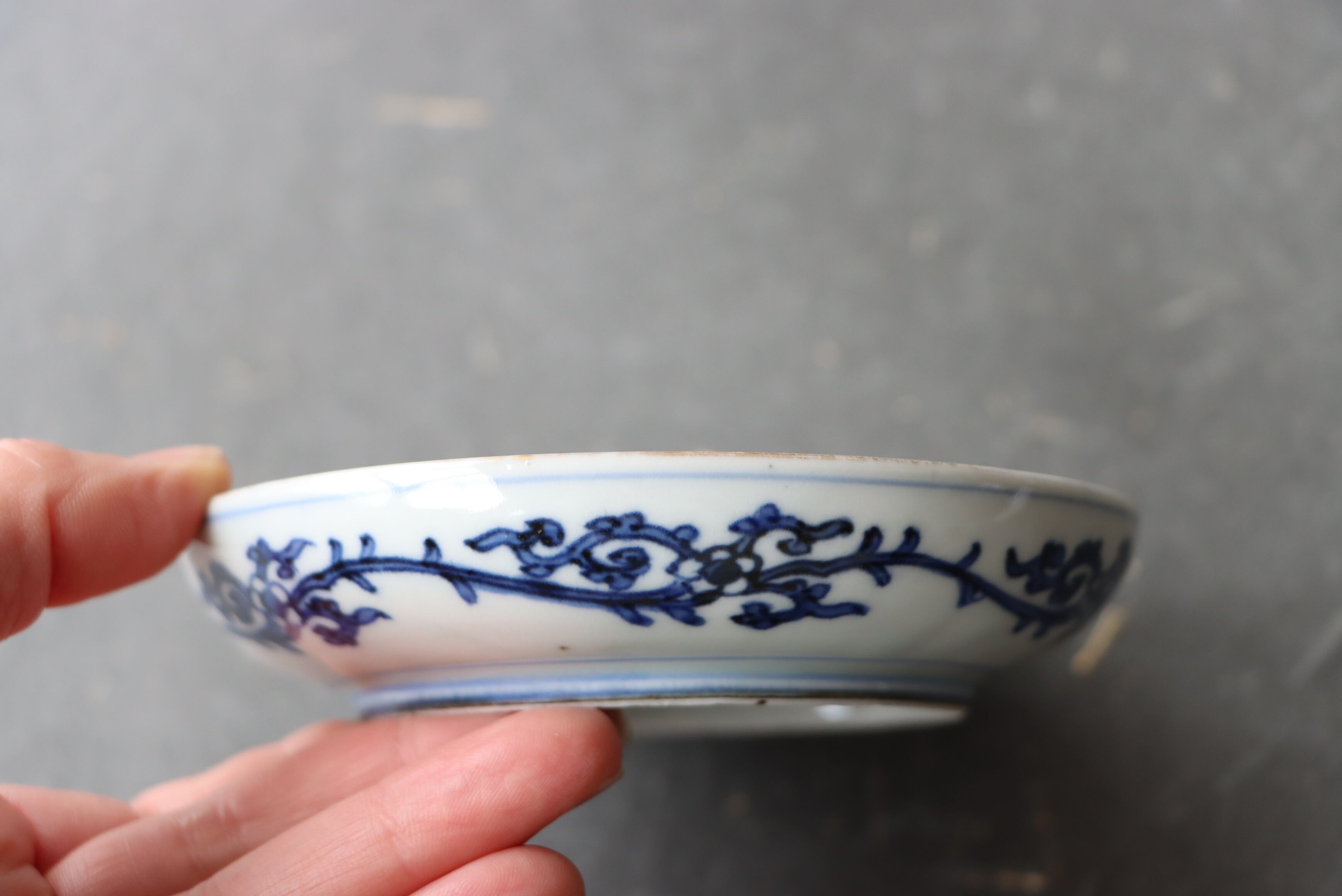 焼成時に窯の中でできる鉄分、くっつき、かまきず、ピンホール、経年による釉薬の薄れがございます。また、一枚一枚手描き、手作りですので器のサイズ(ミリ)、色味、描かれている文様の大きさなど個体差があり、ひとつとして同じものはございません。そういった時代感、個性をご理解いただき、楽しんでくだされば幸いです。電子レンジや食器洗い乾燥機のご使用はお控えください。