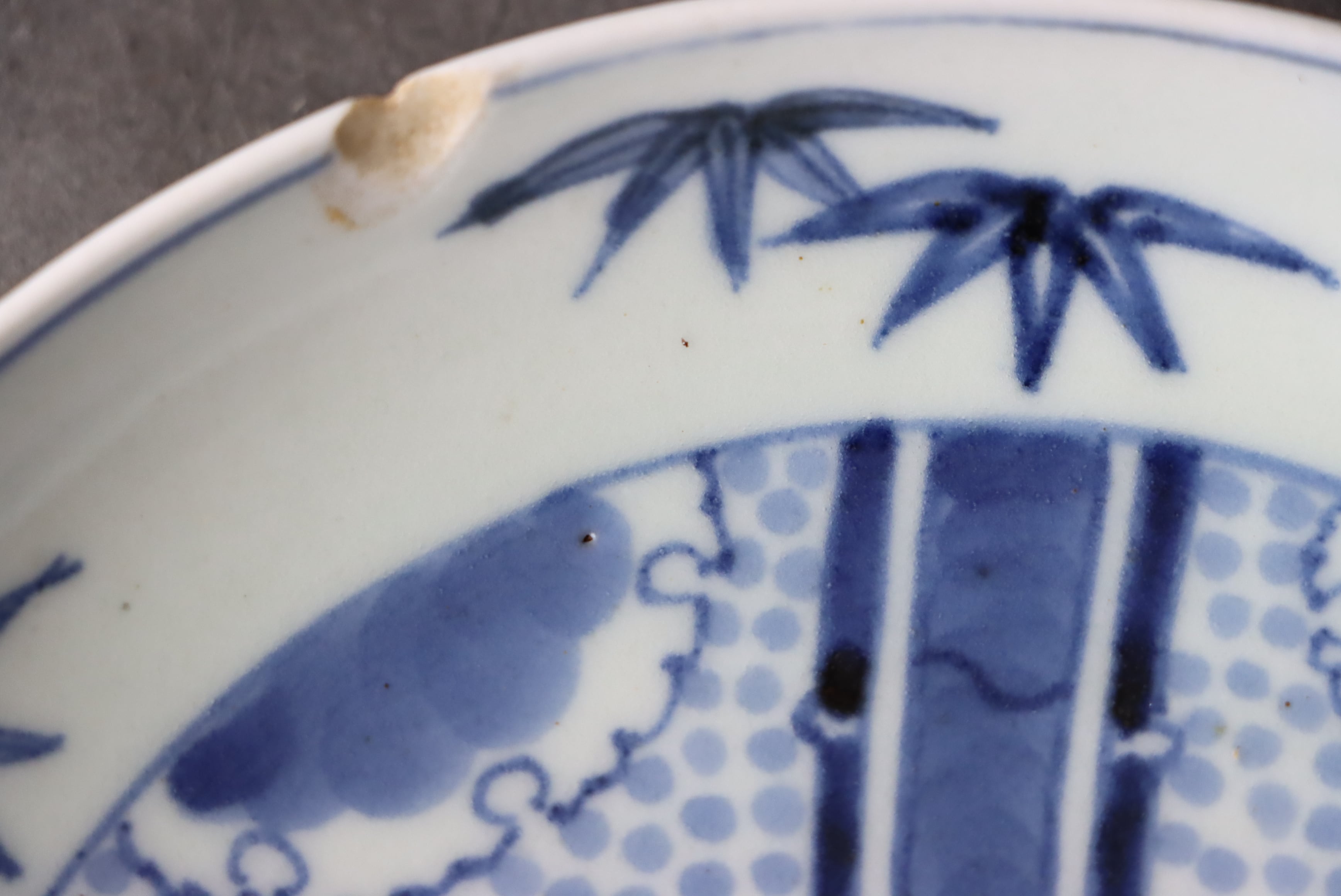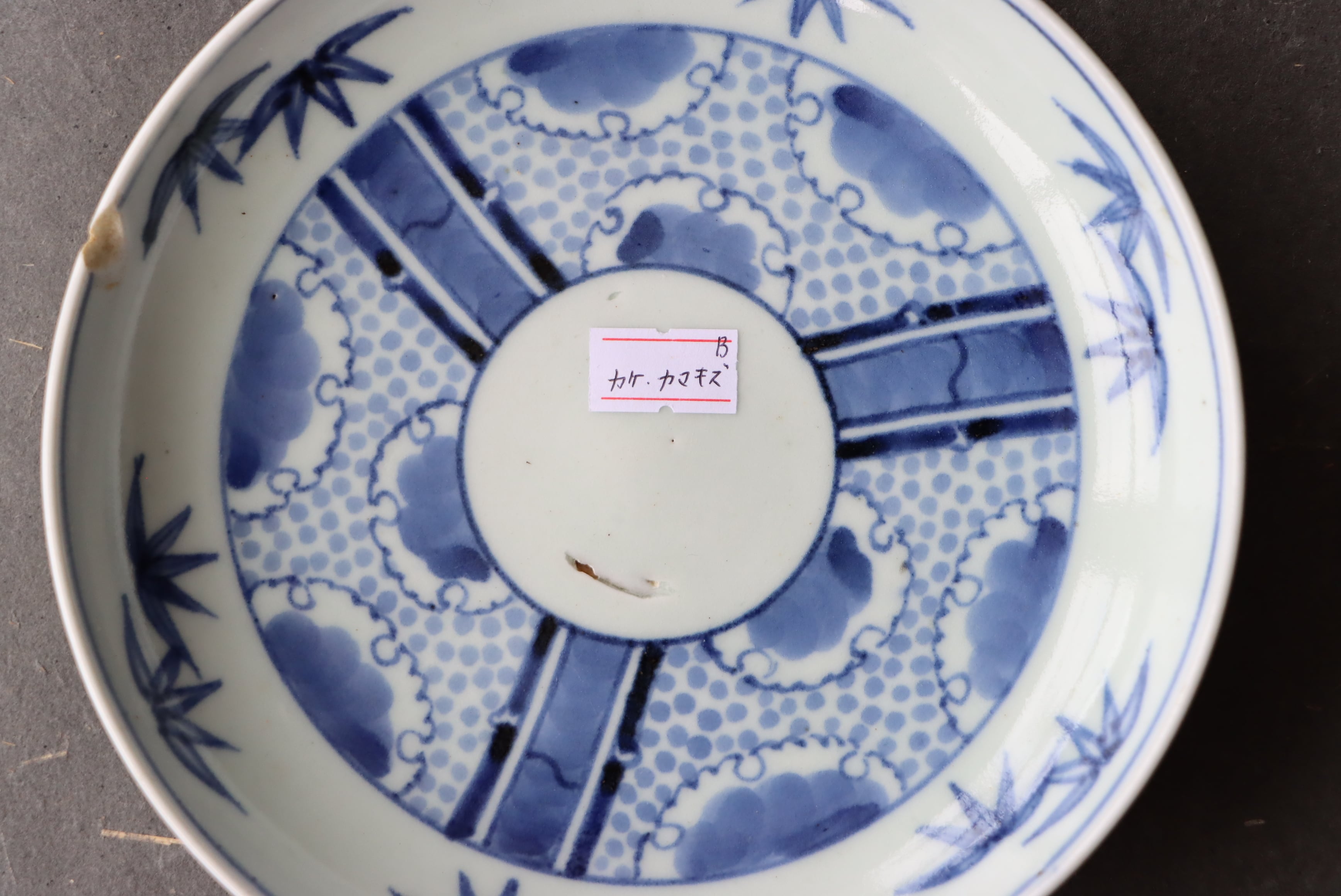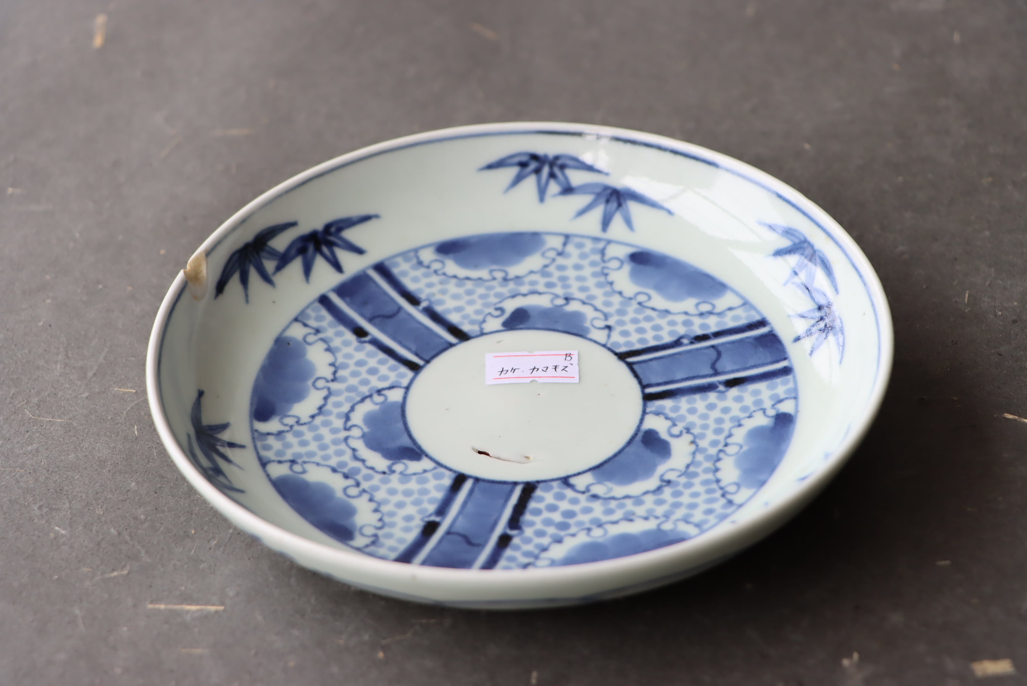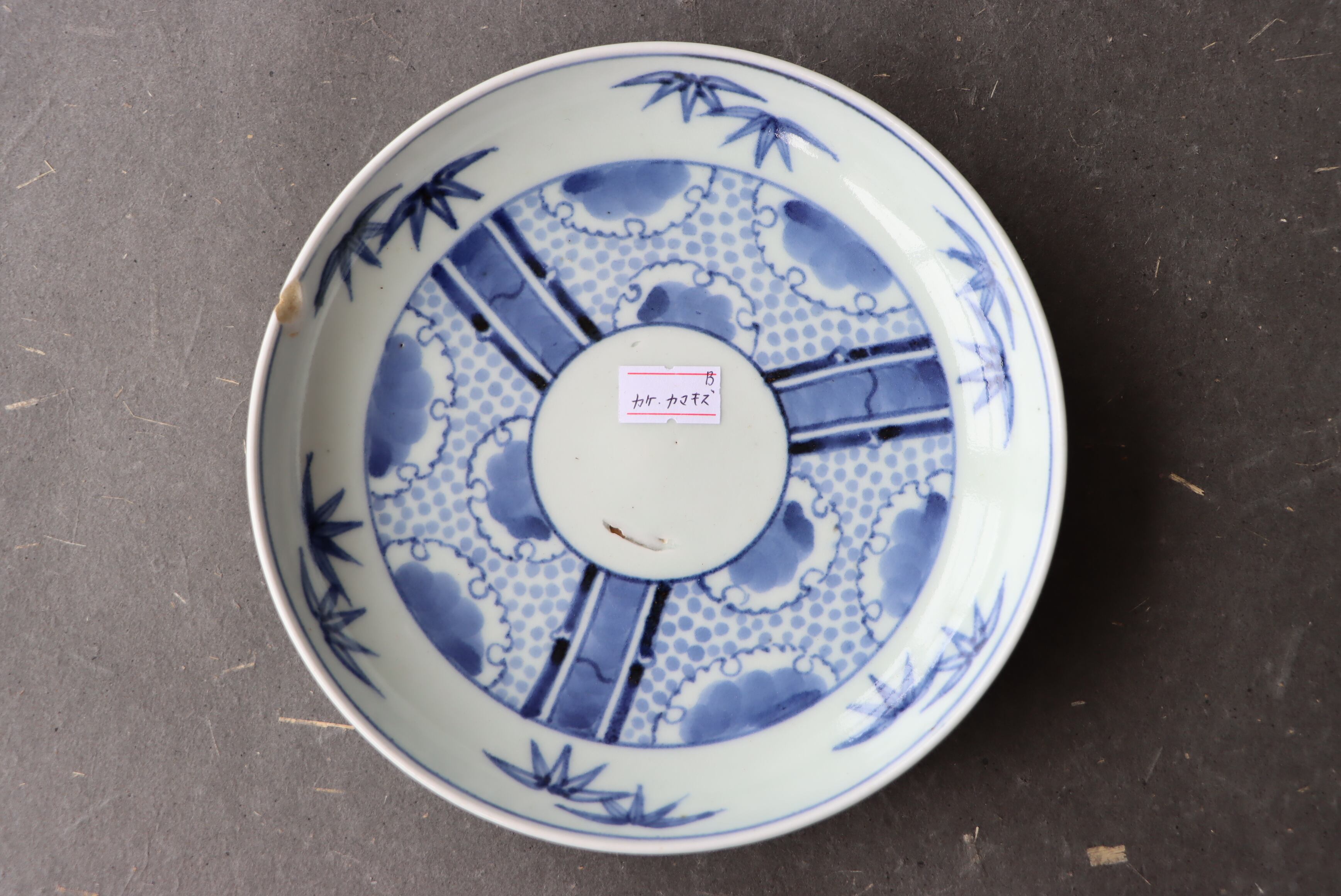 カケ カマキズ 古伊万里 染付 雪輪竹文 中皿 六寸 B アウトレット