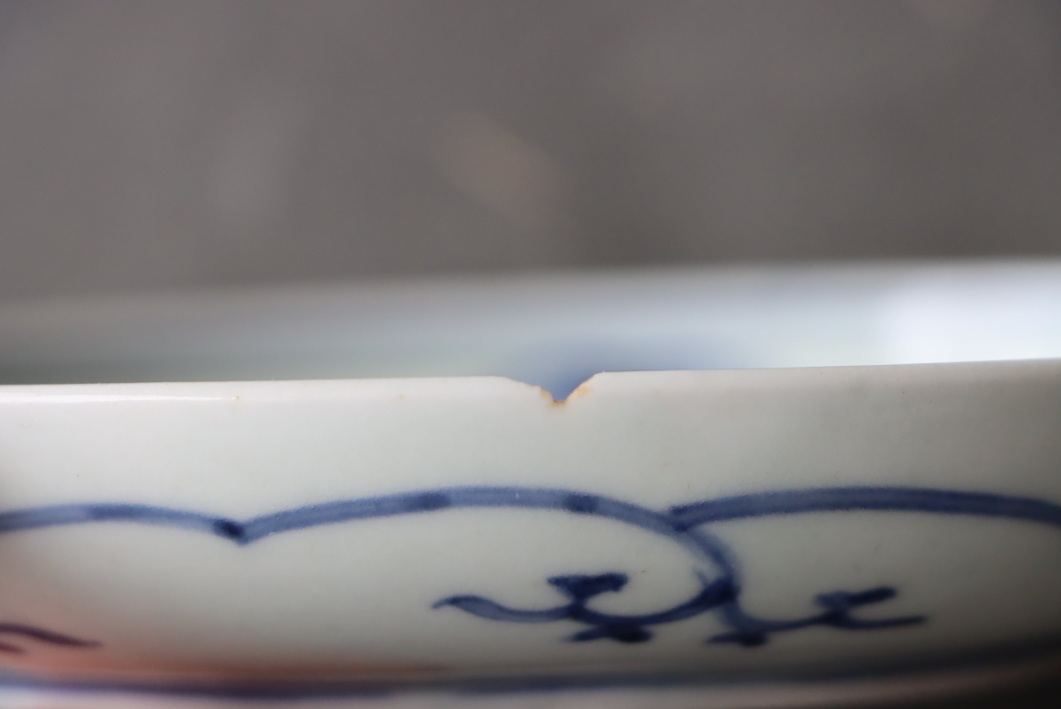 状態:カケ(約1.5センチ)あり。その他、カマキズあり(約2センチ)。金継ぎ用に。