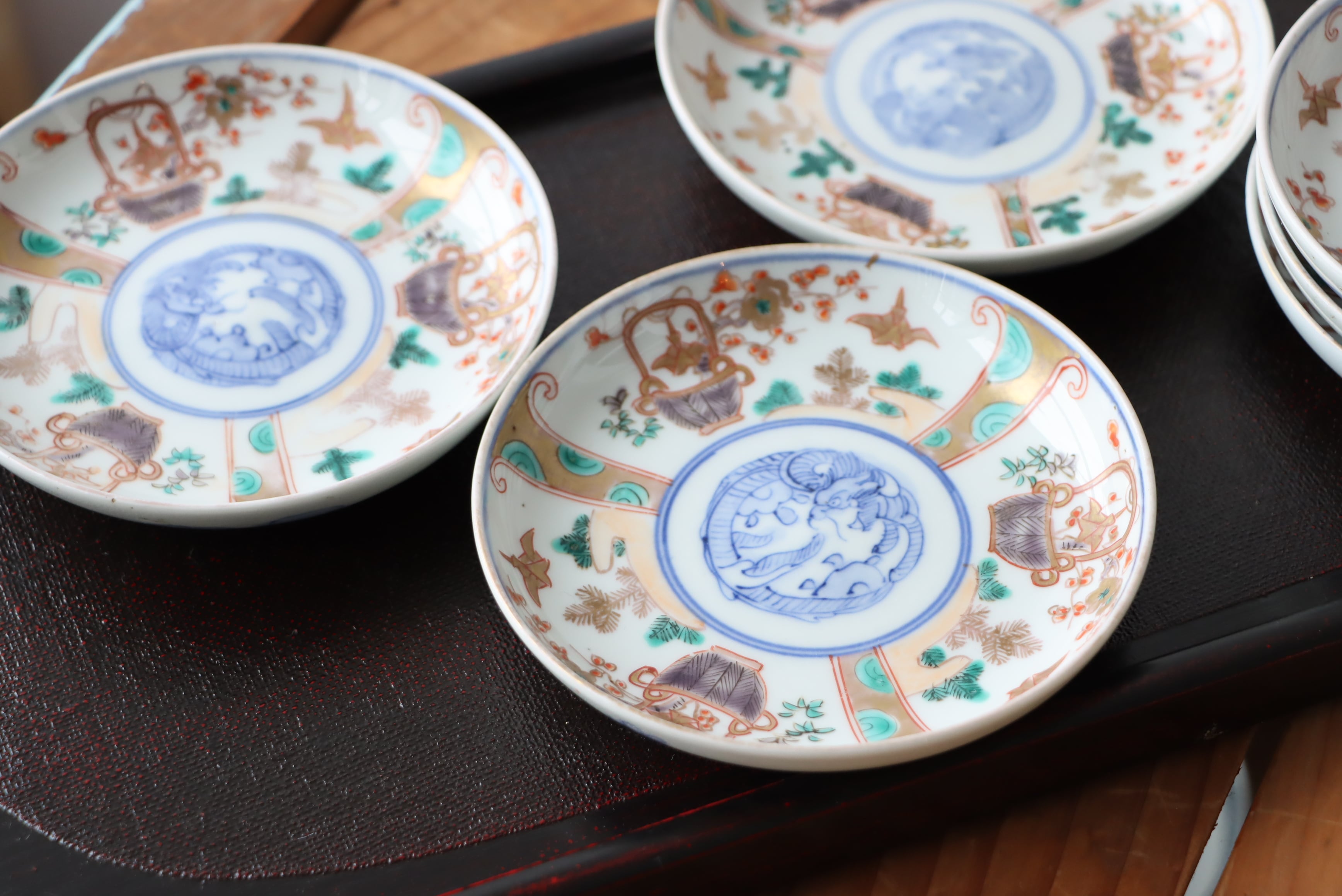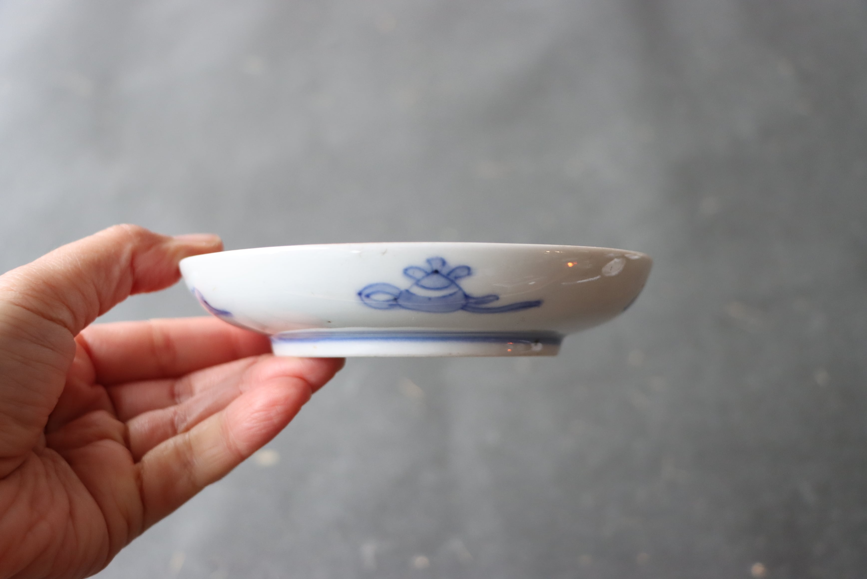 焼成時に窯の中でできる鉄分、くっつき、かまきず、ピンホール、経年による釉薬の薄れがございます。また、一枚一枚手描き、手作りですので器のサイズ(ミリ)、色味、描かれている文様の大きさなど個体差があり、ひとつとして同じものはございません。そういった時代感、個性をご理解いただき、楽しんでくだされば幸いです。電子レンジや食器洗い乾燥機のご使用はお控えください。