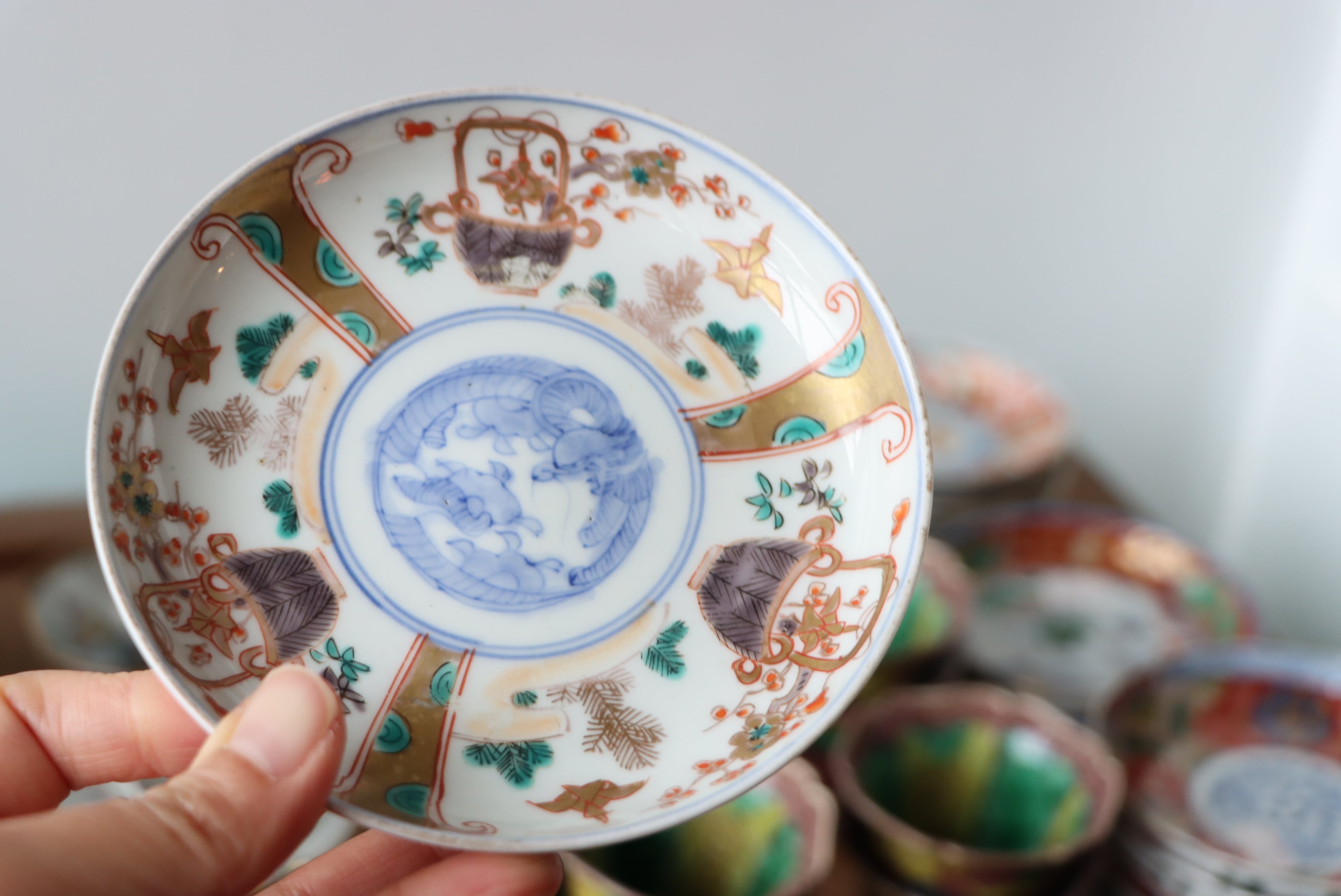 伊万里焼 色絵 折鶴籠文 小皿/Imari small plate