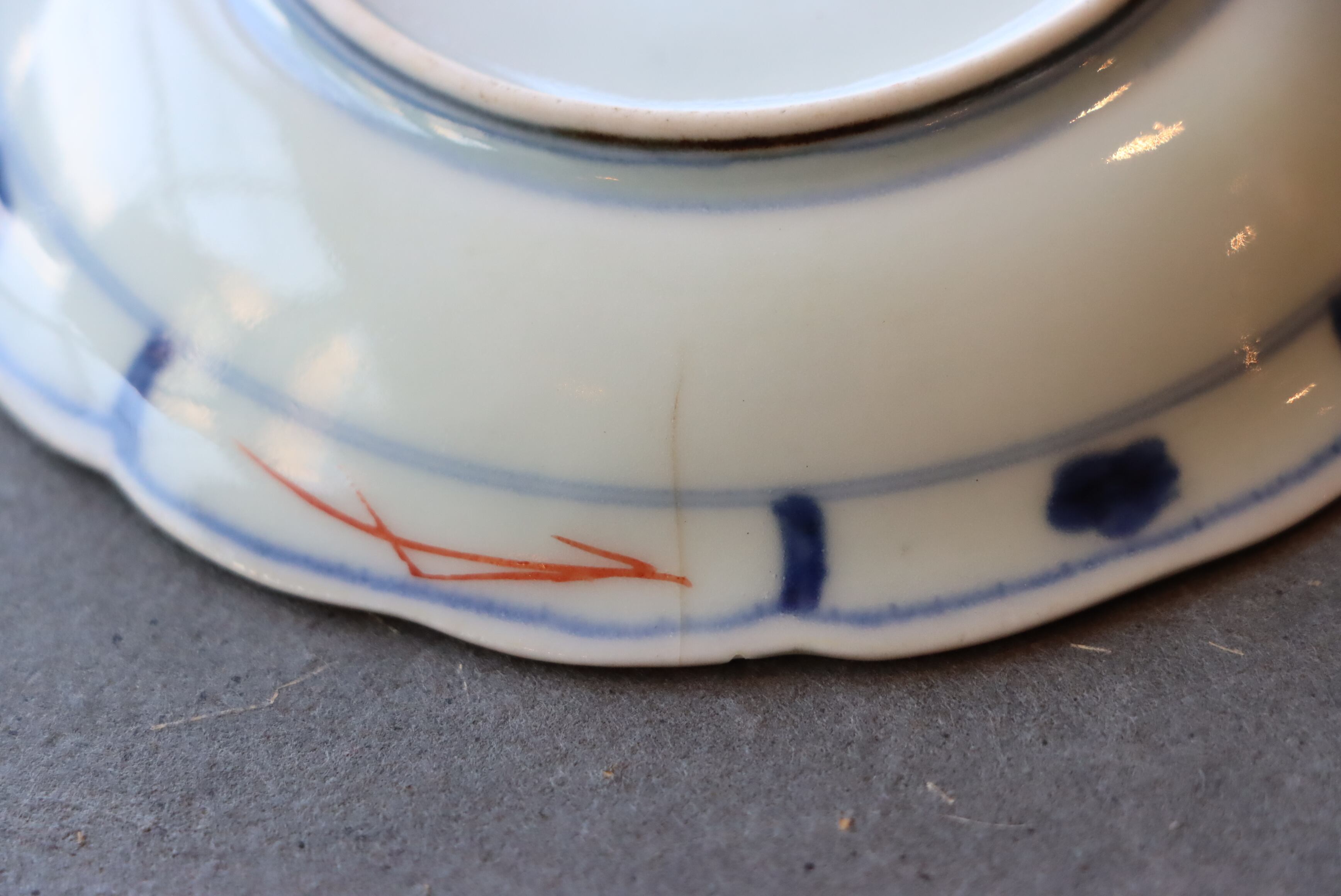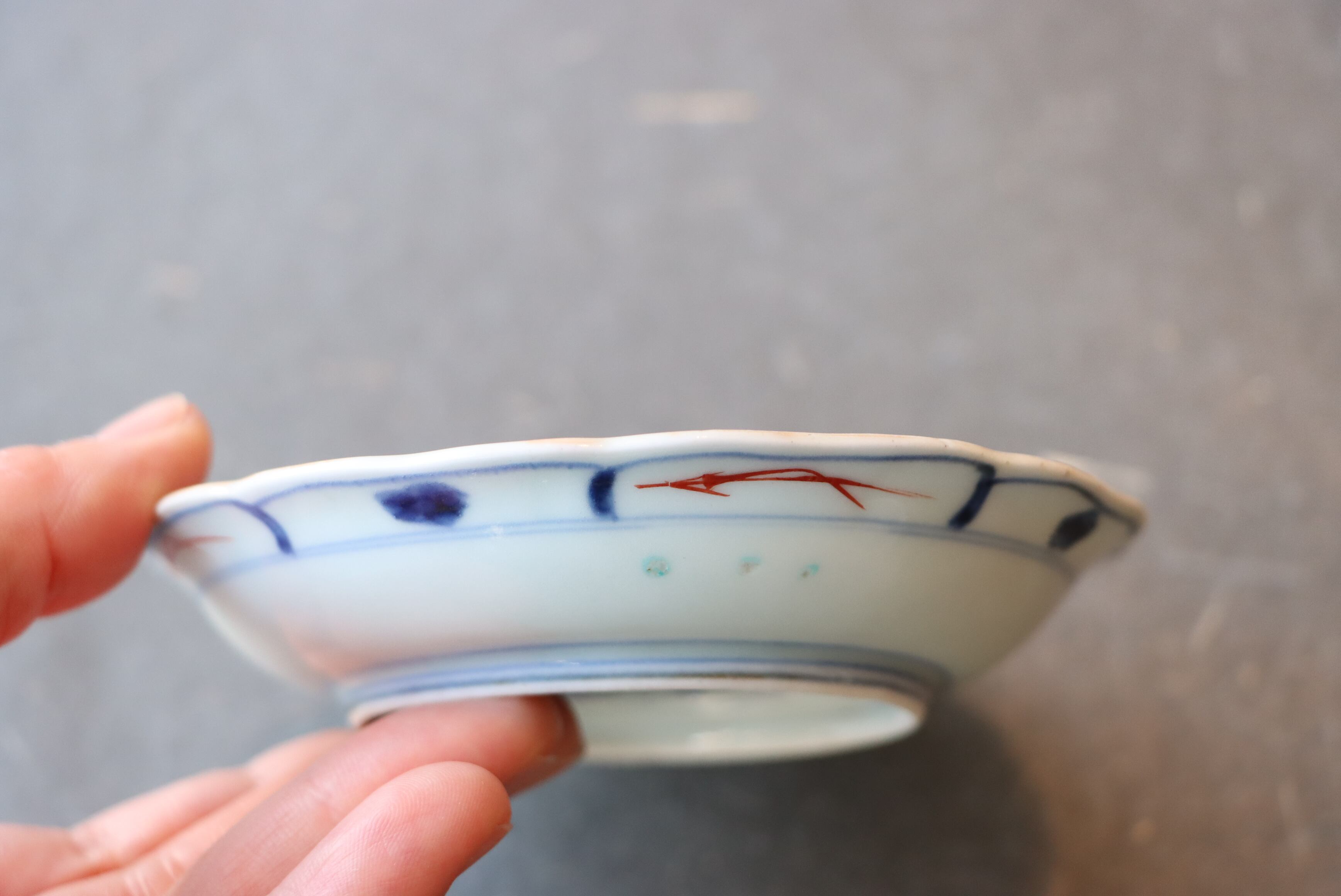 焼成時に窯の中でできる鉄分、くっつき、かまきず、ピンホール、経年による釉薬の薄れがございます。また、一枚一枚手描き、手作りですので器のサイズ(ミリ)、色味、描かれている文様の大きさなど個体差があり、ひとつとして同じものはございません。そういった時代感、個性をご理解いただき、楽しんでくだされば幸いです。電子レンジや食器洗い乾燥機のご使用はお控えください。