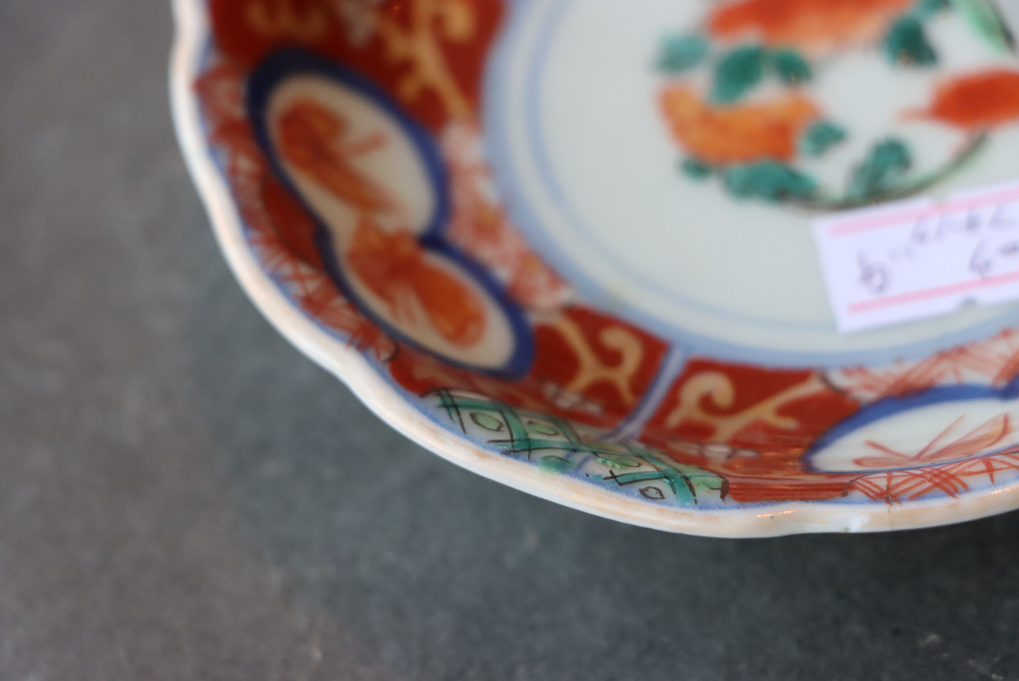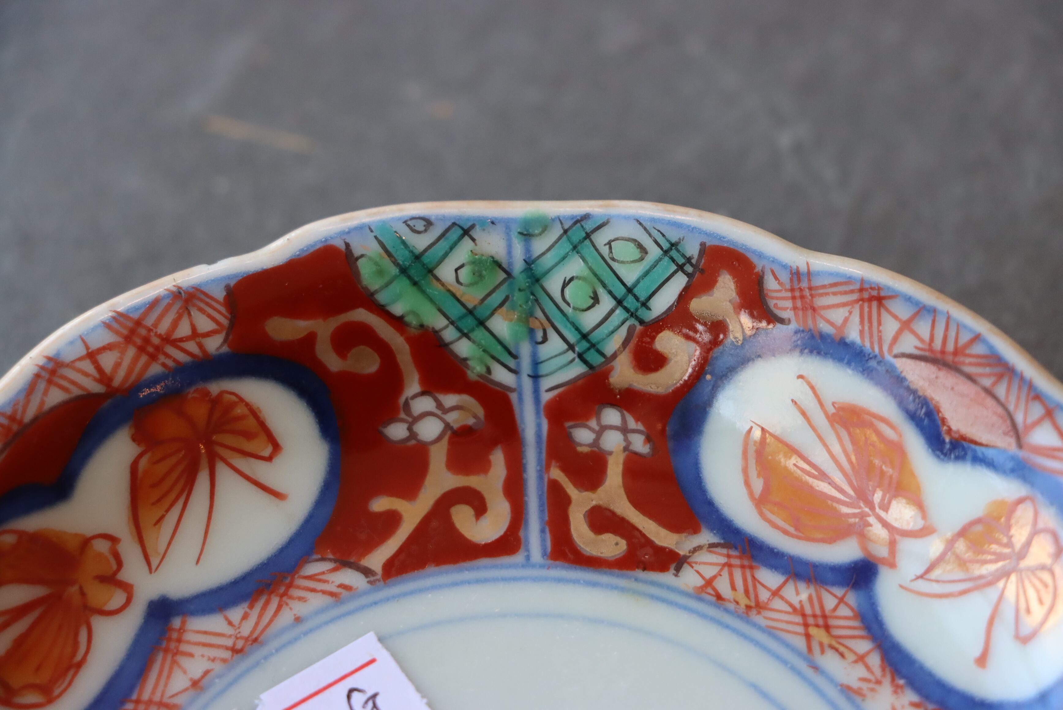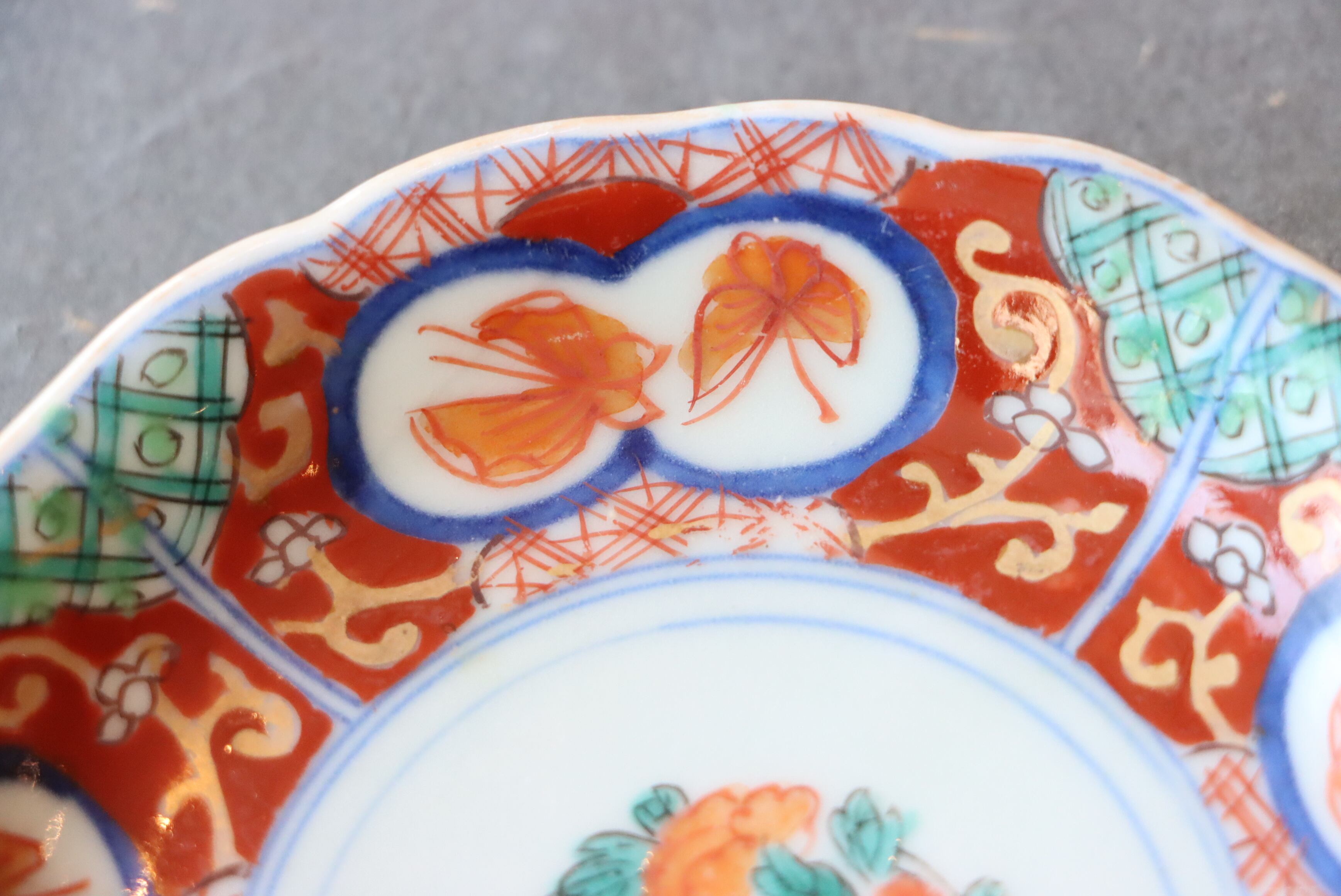 状態:小さなフチソゲ×2、ニュウ(約2センチ)あり。ニュウに時代色が入っております。その他、釉薬の剥がれ、口縁に施されている金彩が剥離している箇所があります。お写真にて状態をご確認ください。