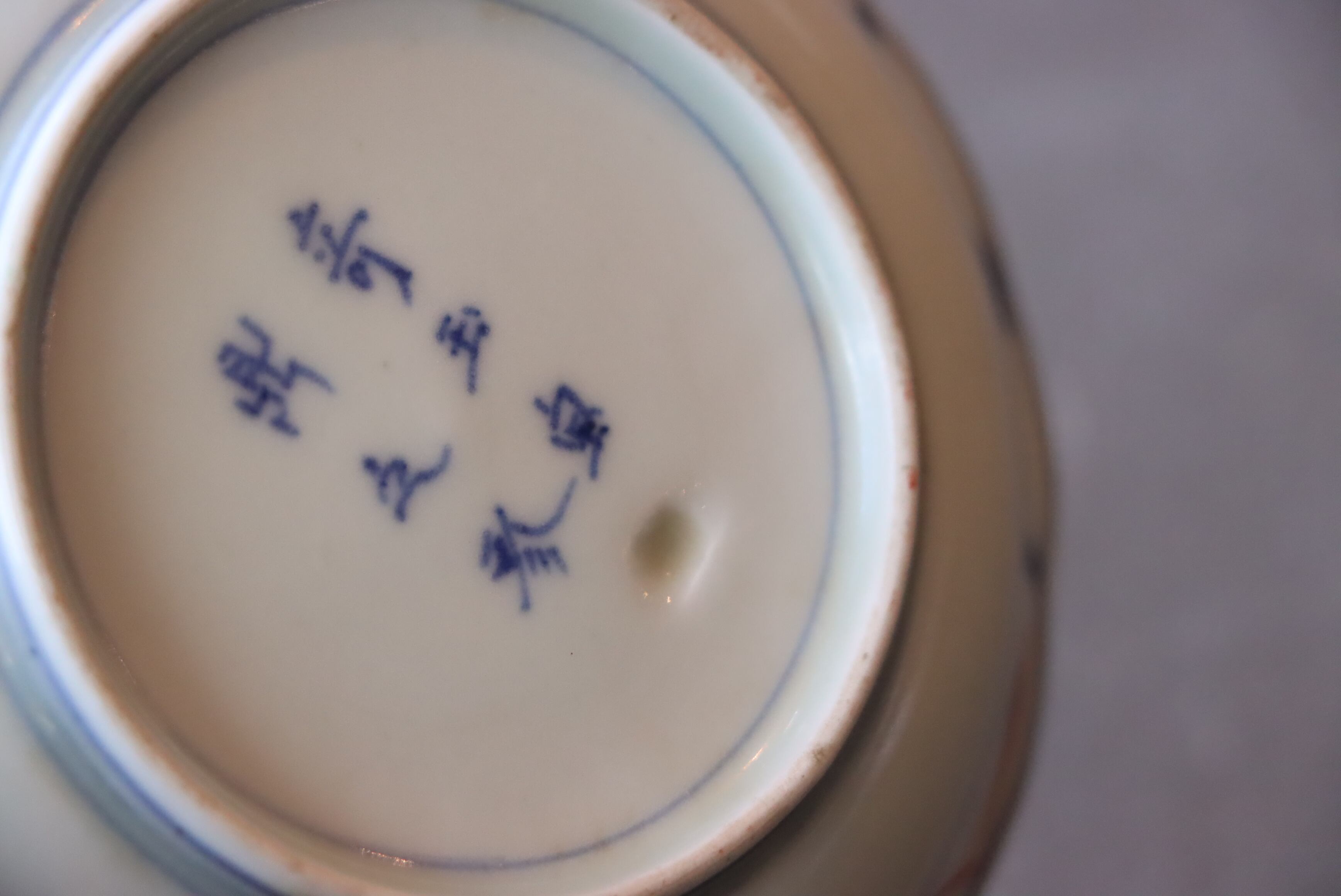 焼成時に窯の中でできる鉄分、くっつき、かまきず、ピンホール、経年による釉薬の薄れがございます。また、一枚一枚手描き、手作りですので器のサイズ(ミリ)、色味、描かれている文様の大きさなど個体差があり、ひとつとして同じものはございません。そういった時代感、個性をご理解いただき、楽しんでくだされば幸いです。電子レンジや食器洗い乾燥機のご使用はお控えください。