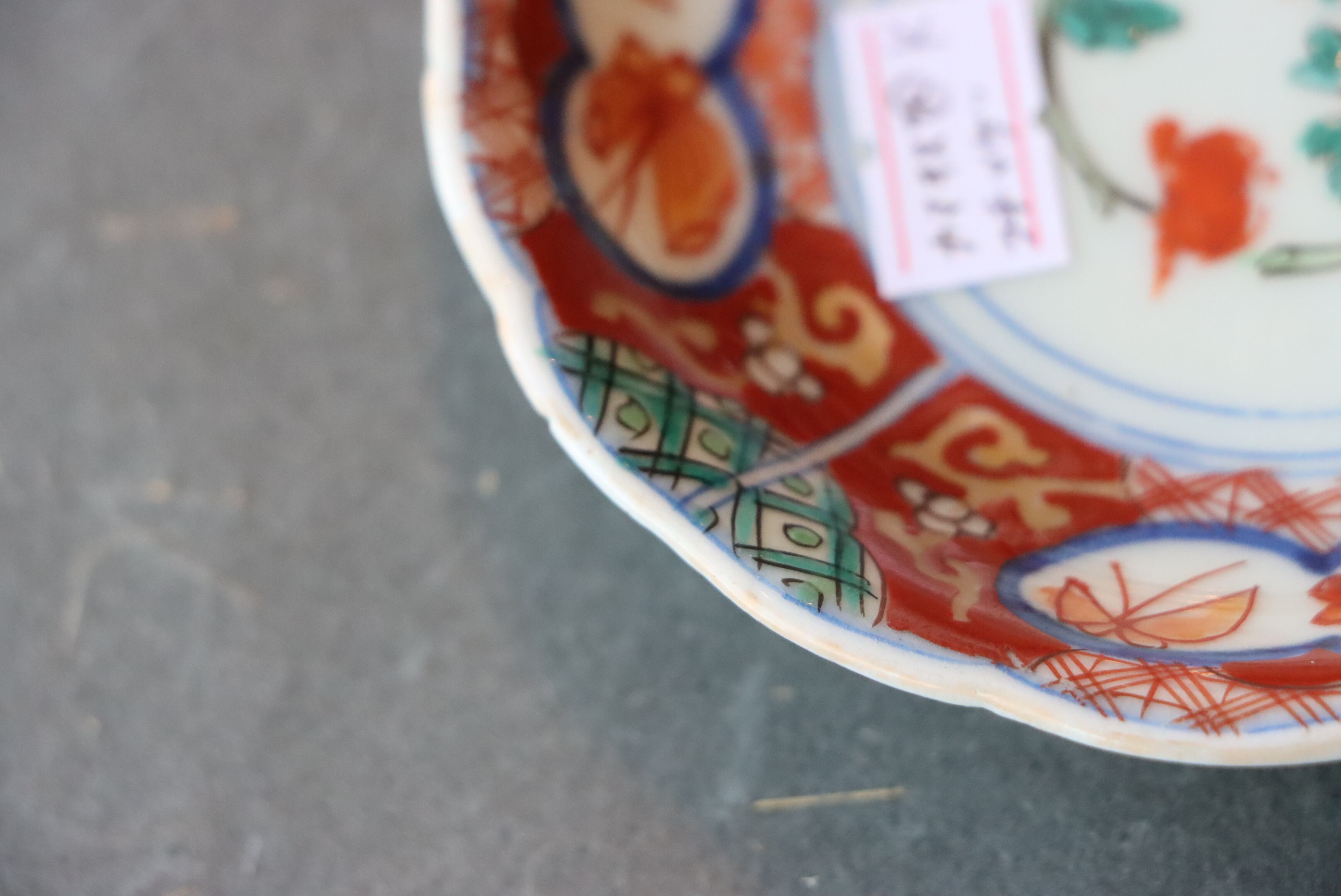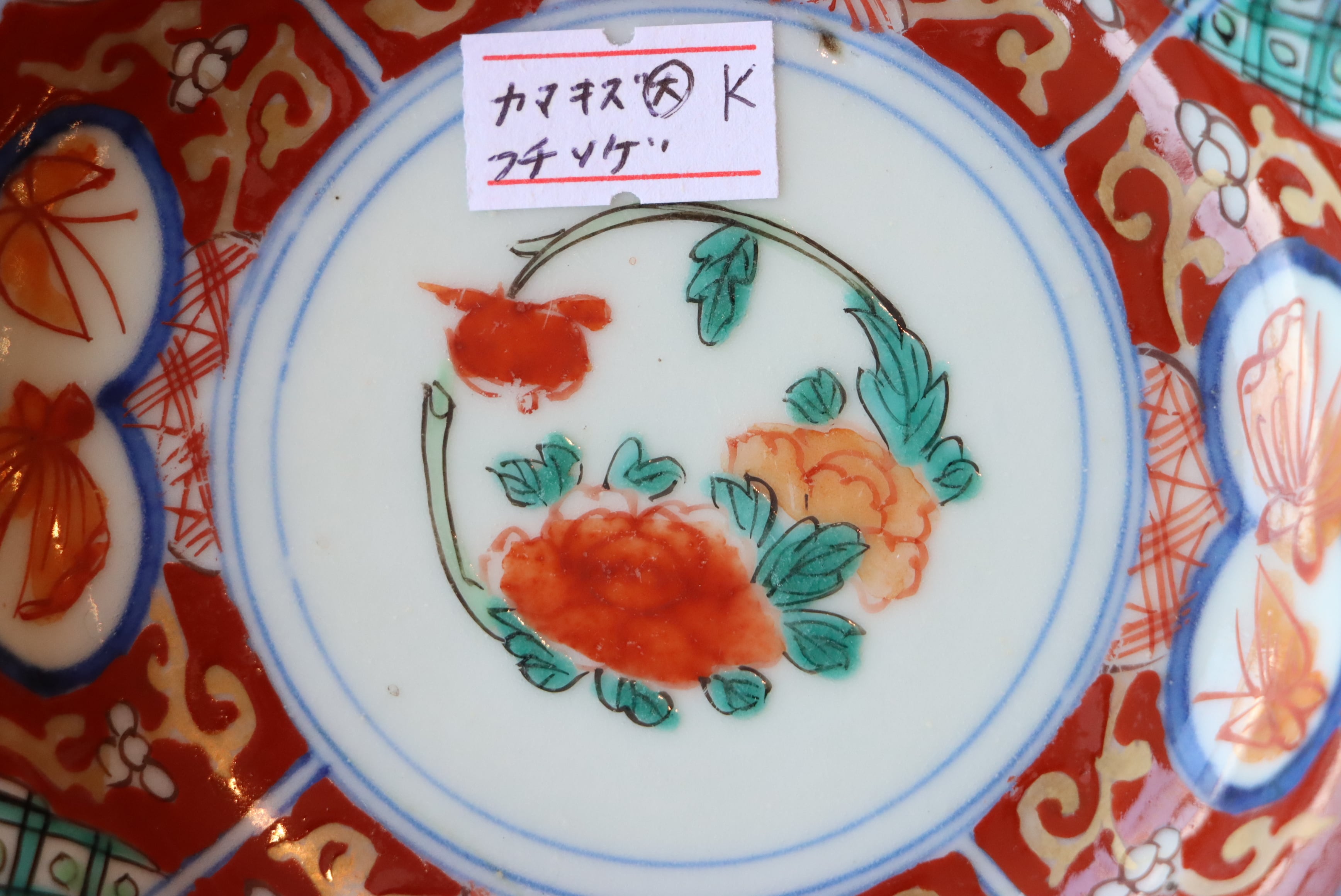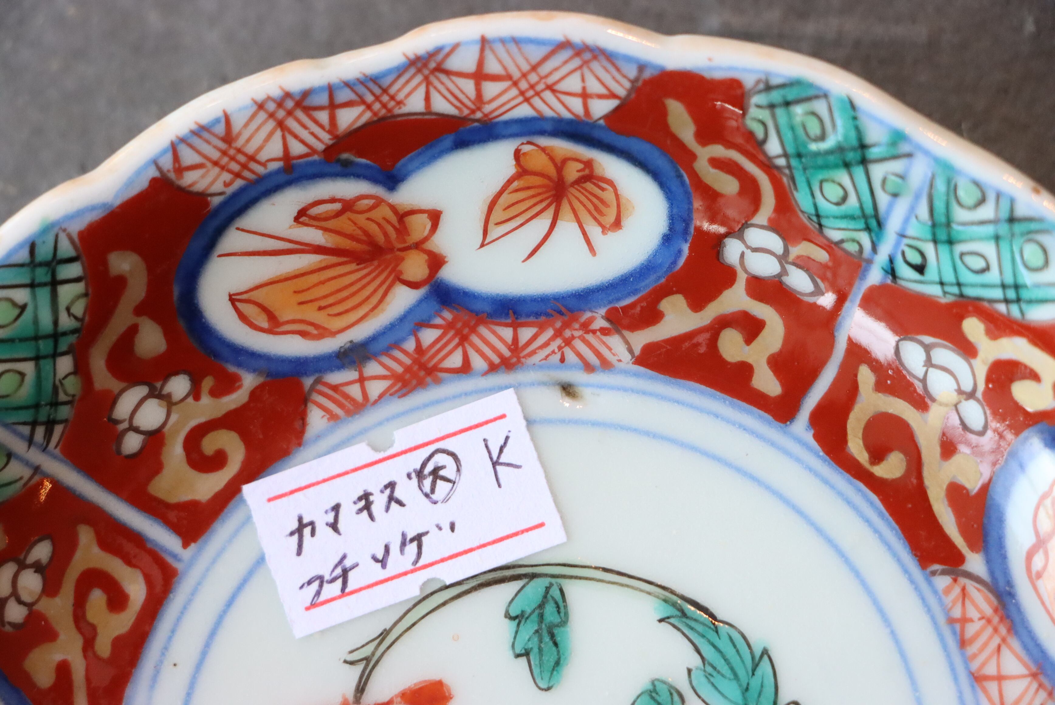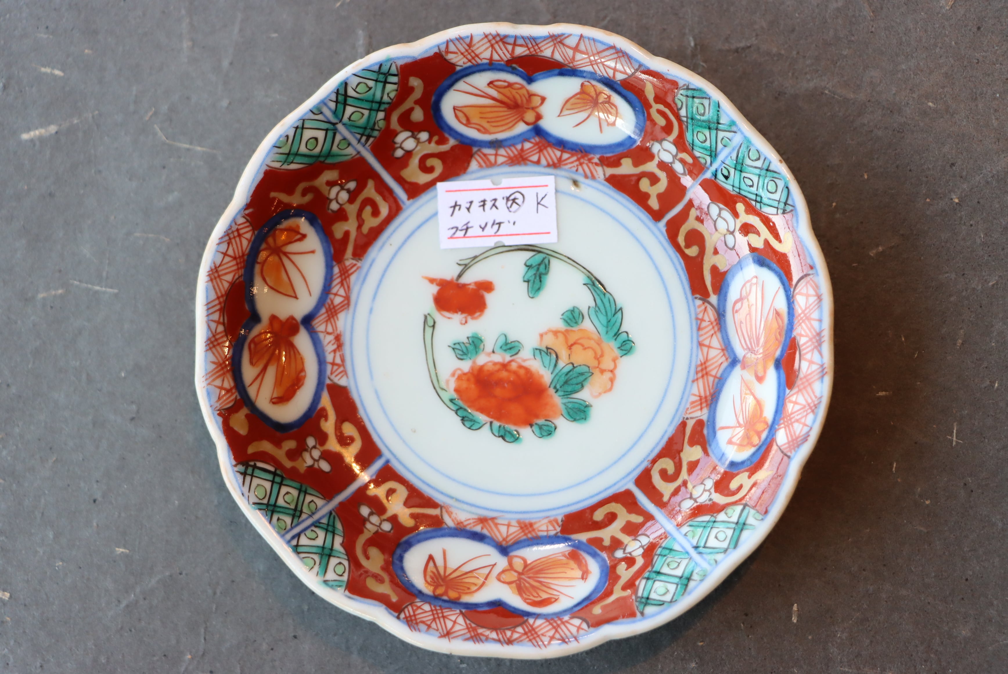 状態:高台にカマキズ(約1.5センチ)あり。がたつきはありません。その他、フチソゲあり。また、釉薬の剥がれ、口縁に施されている金彩が剥離している箇所があります。お写真にて状態をご確認ください。