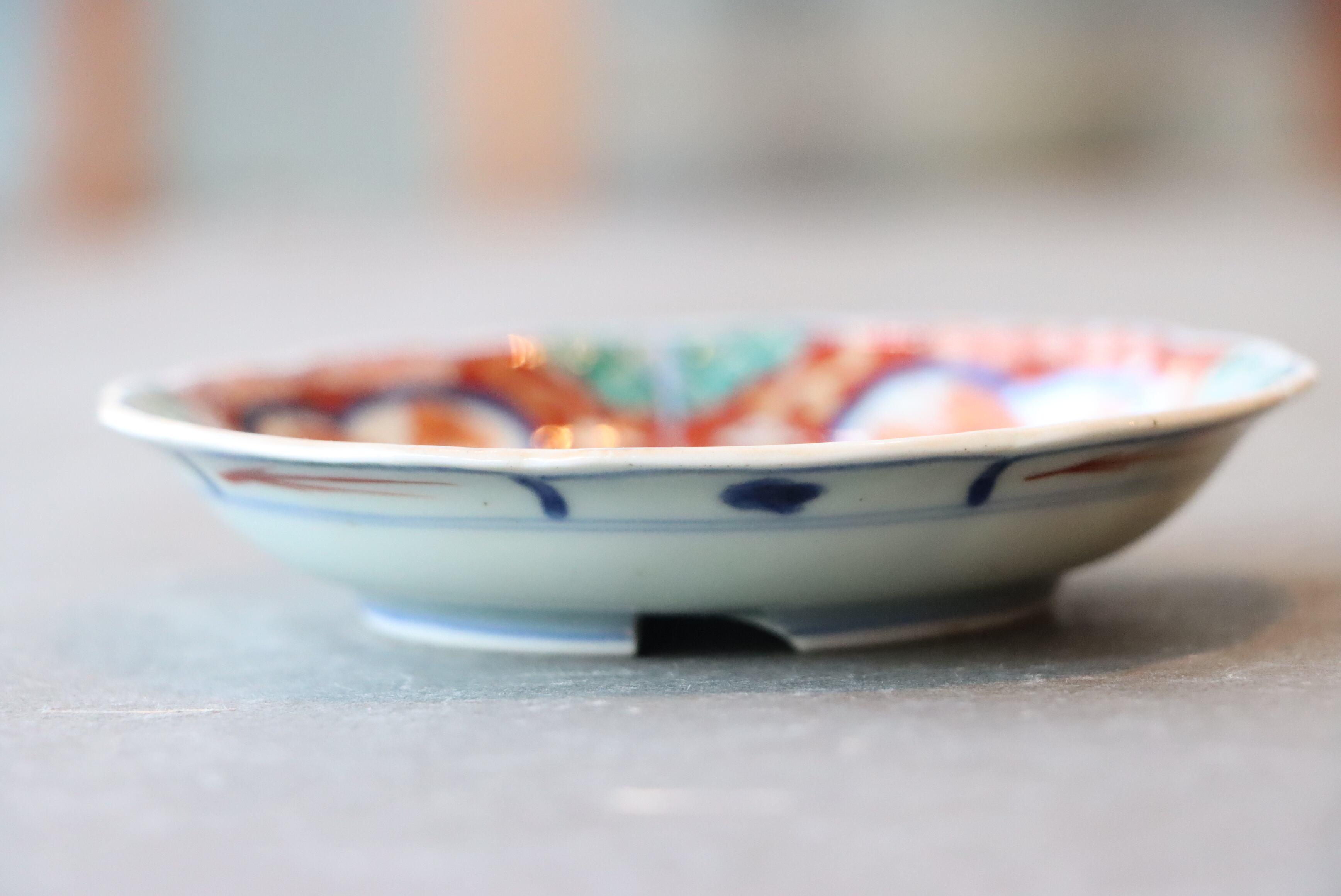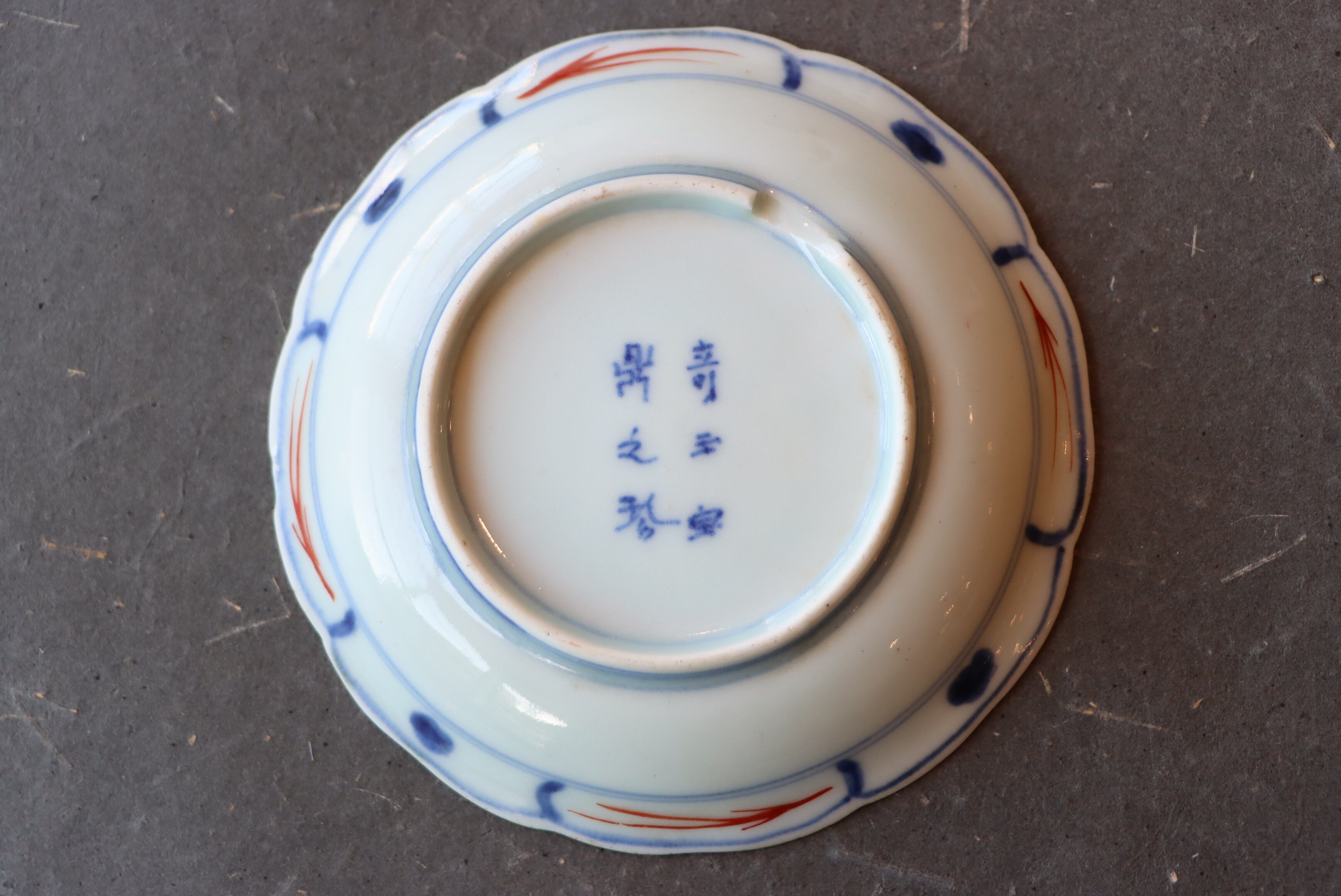焼成時に窯の中でできる鉄分、くっつき、かまきず、ピンホール、経年による釉薬の薄れがございます。また、一枚一枚手描き、手作りですので器のサイズ(ミリ)、色味、描かれている文様の大きさなど個体差があり、ひとつとして同じものはございません。そういった時代感、個性をご理解いただき、楽しんでくだされば幸いです。電子レンジや食器洗い乾燥機のご使用はお控えください。