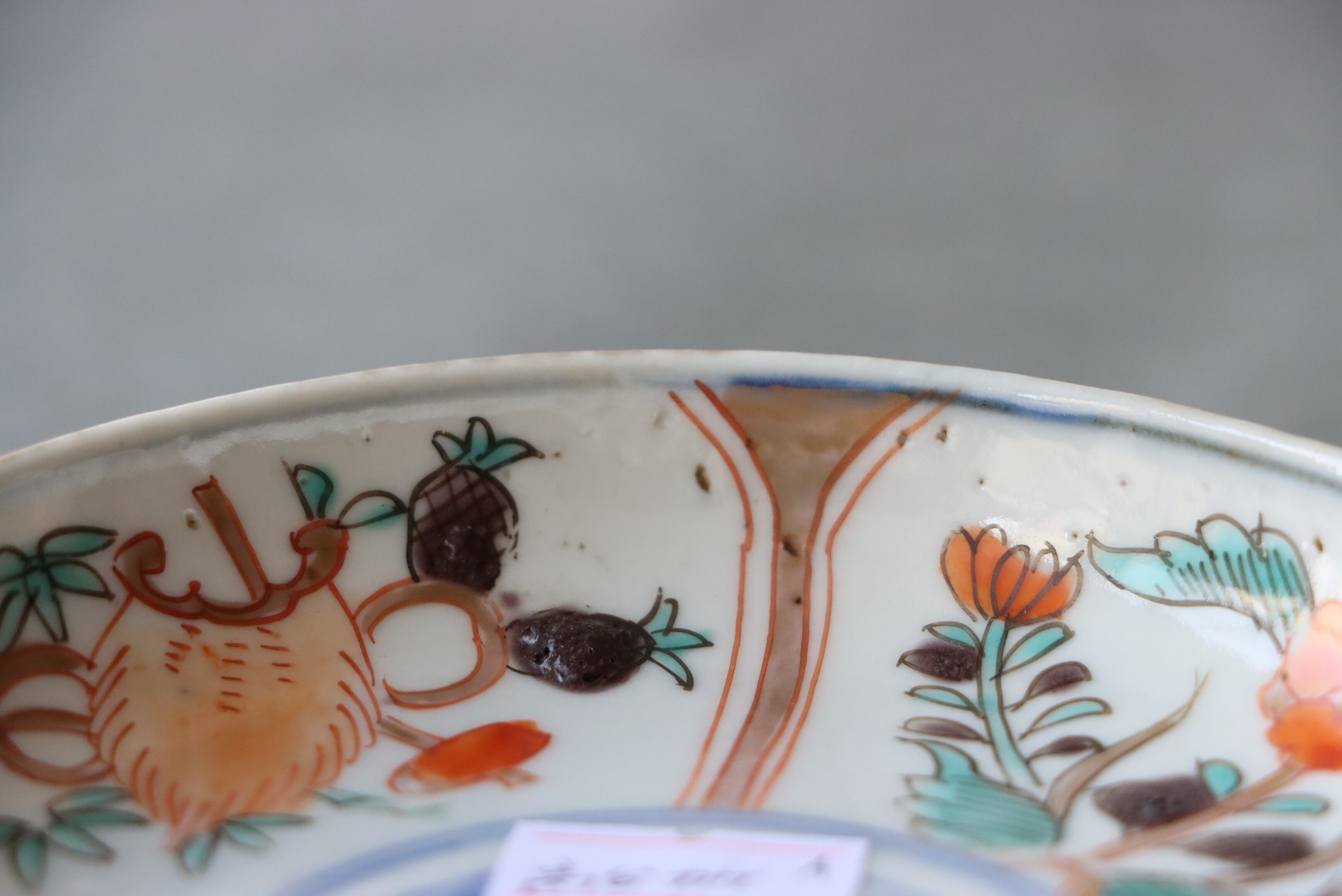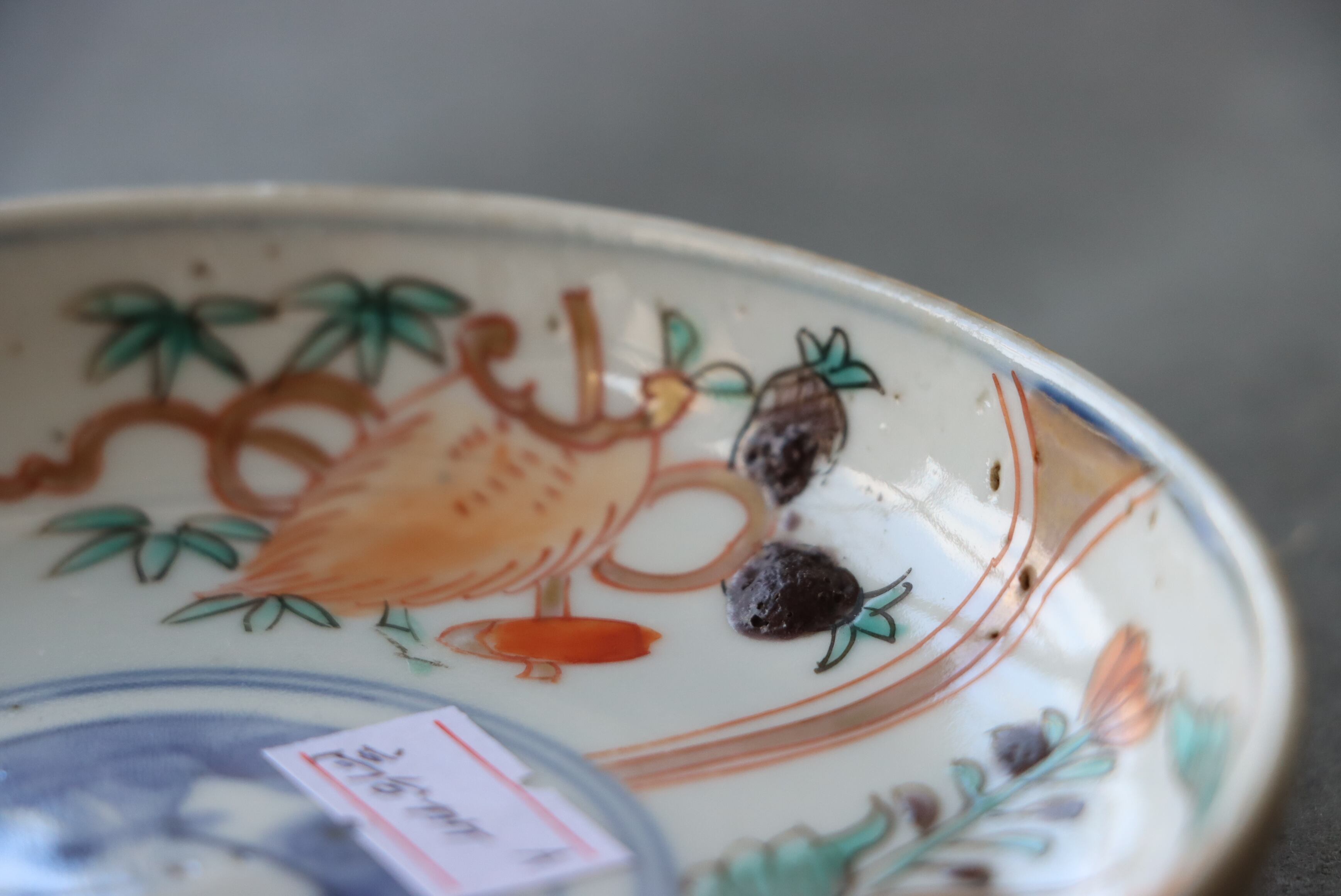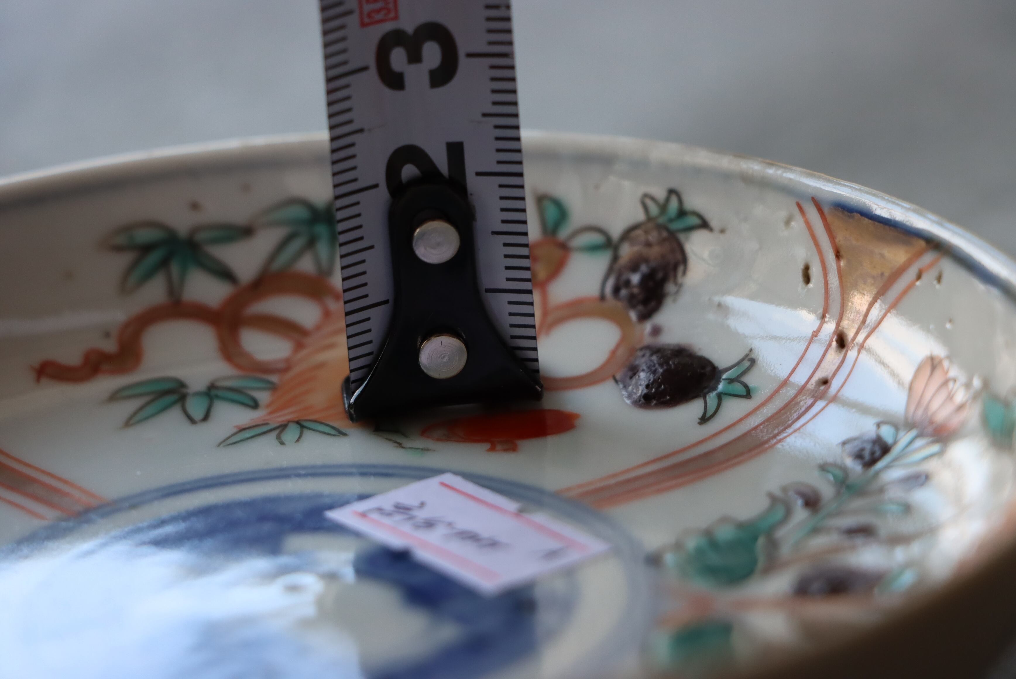 焼成時に窯の中でできる鉄分、くっつき、かまきず、ピンホール、経年による釉薬の薄れがございます。また、一枚一枚手描き、手作りですので器のサイズ(ミリ)、色味、描かれている文様の大きさなど個体差があり、ひとつとして同じものはございません。そういった時代感、個性をご理解いただき、楽しんでくだされば幸いです。電子レンジや食器洗い乾燥機のご使用はお控えください。