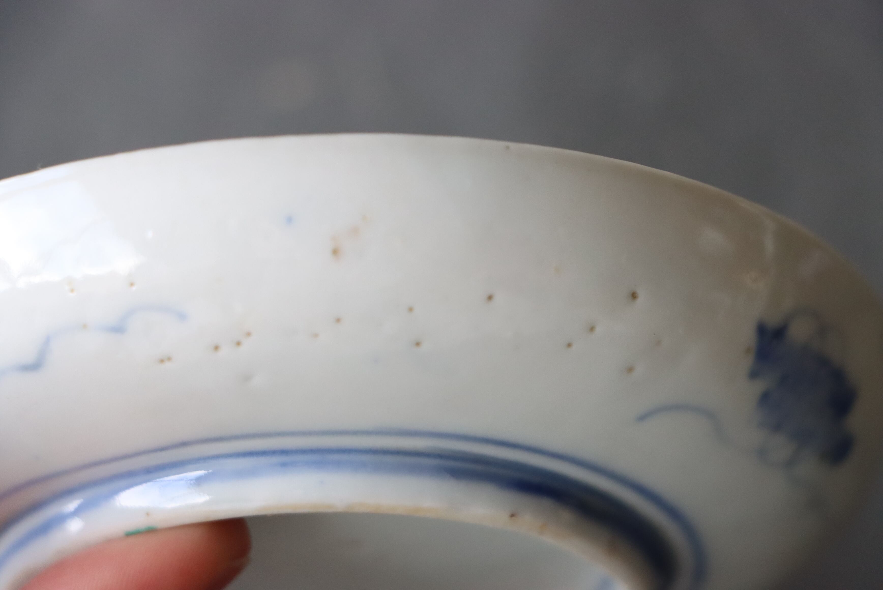 焼成時に窯の中でできる鉄分、くっつき、かまきず、ピンホール、経年による釉薬の薄れがございます。また、一枚一枚手描き、手作りですので器のサイズ(ミリ)、色味、描かれている文様の大きさなど個体差があり、ひとつとして同じものはございません。そういった時代感、個性をご理解いただき、楽しんでくだされば幸いです。電子レンジや食器洗い乾燥機のご使用はお控えください。