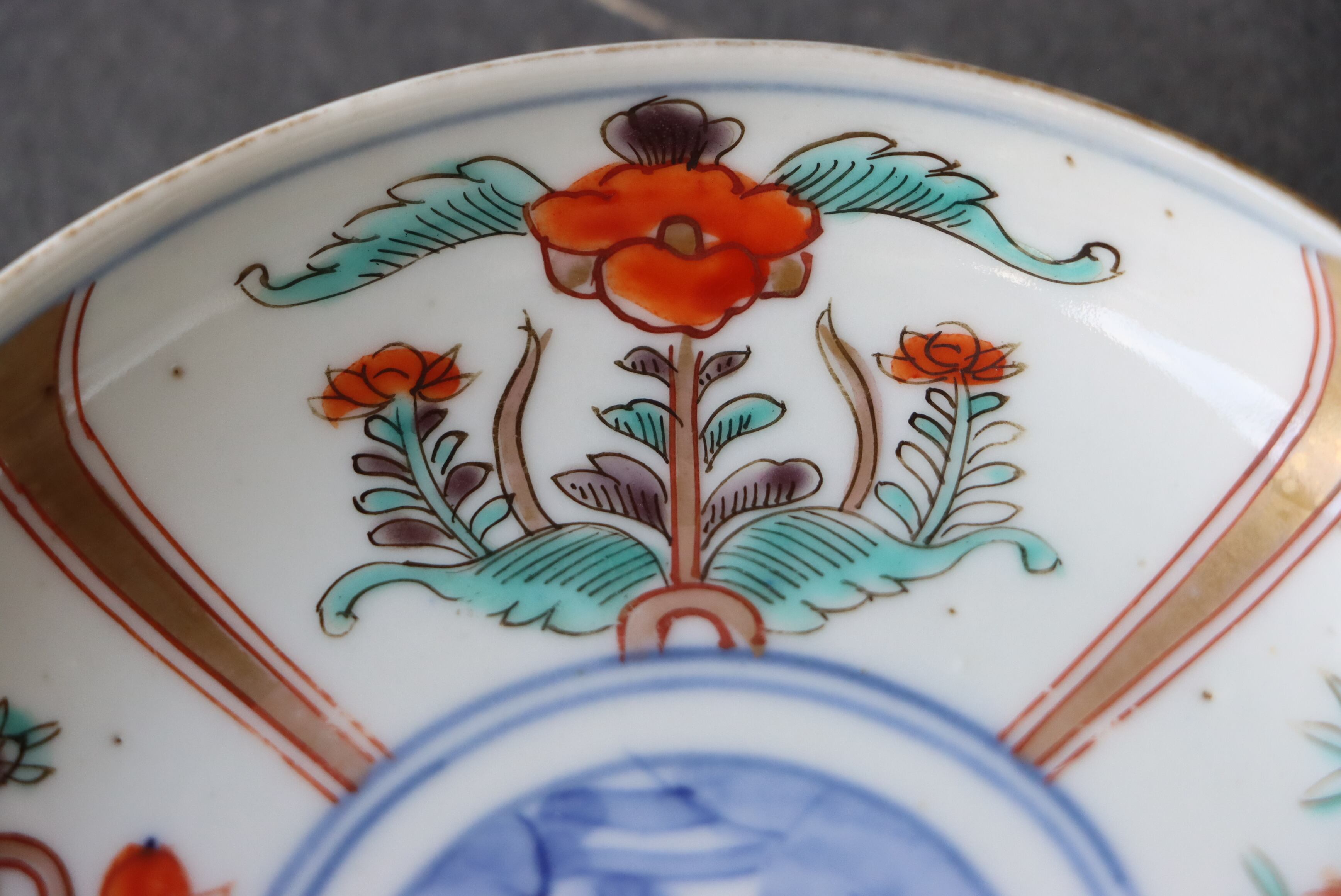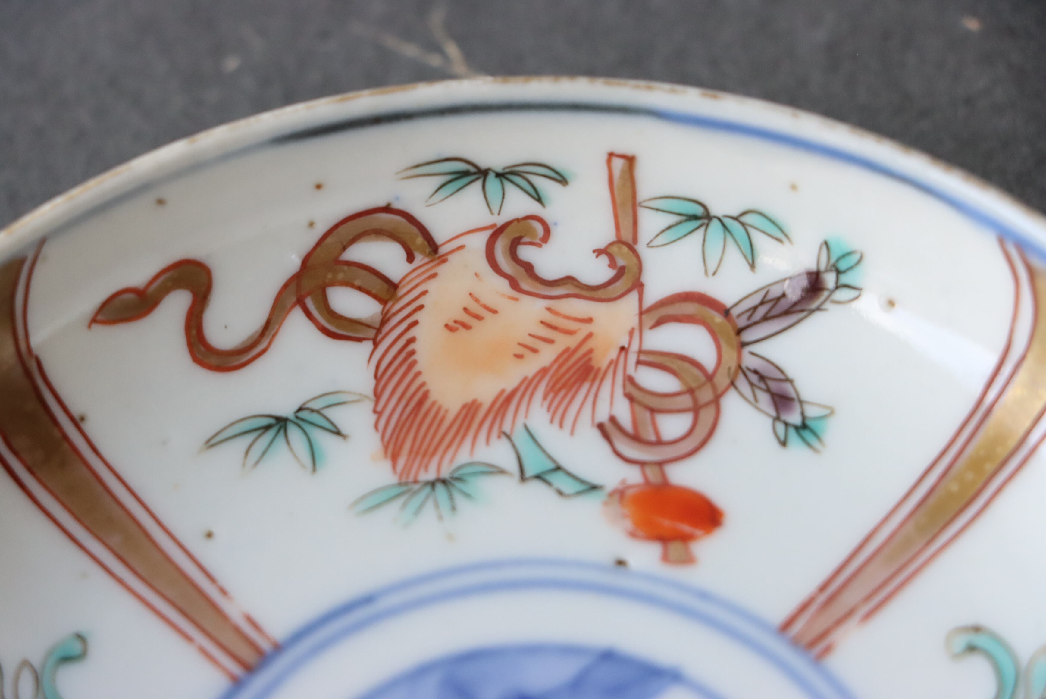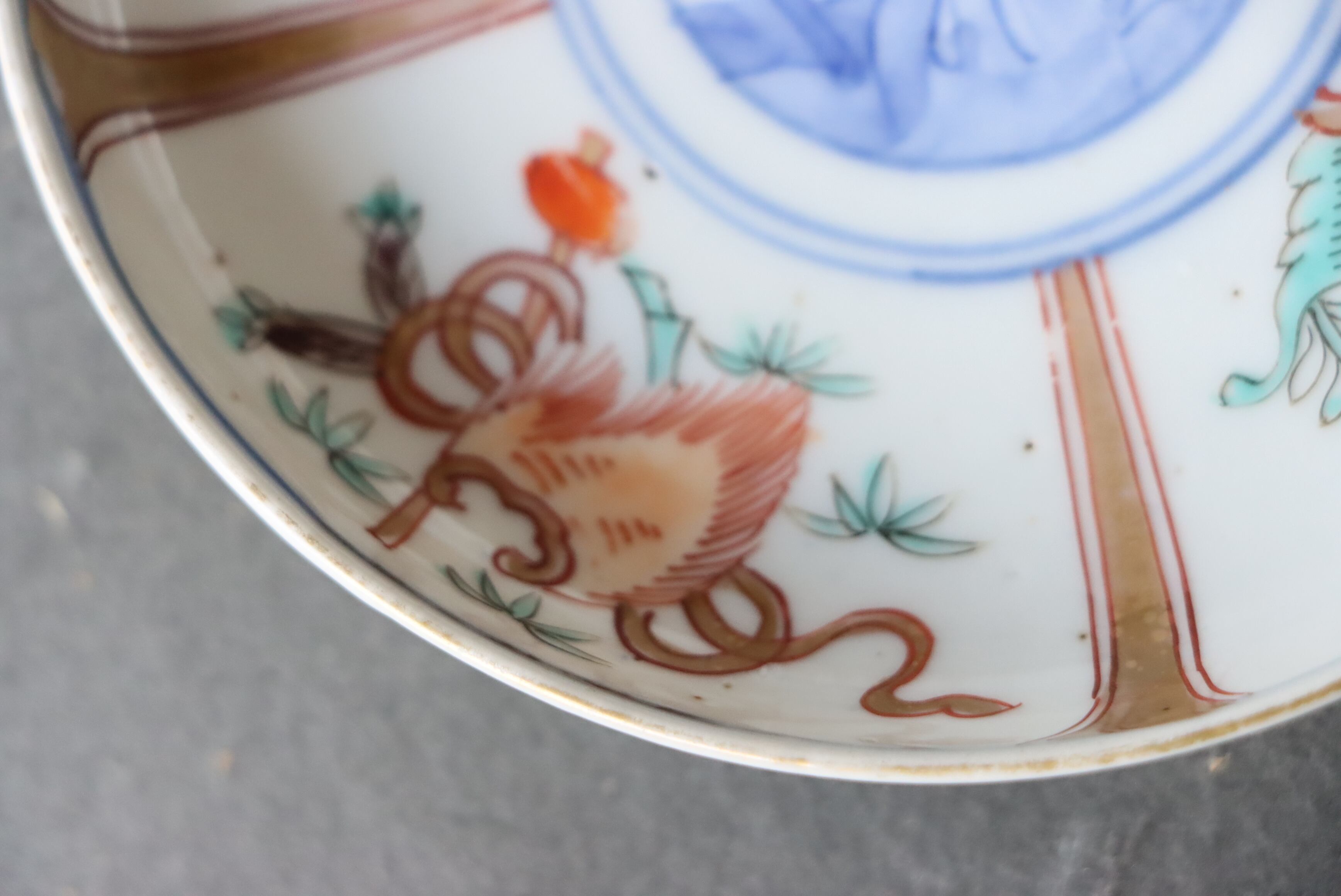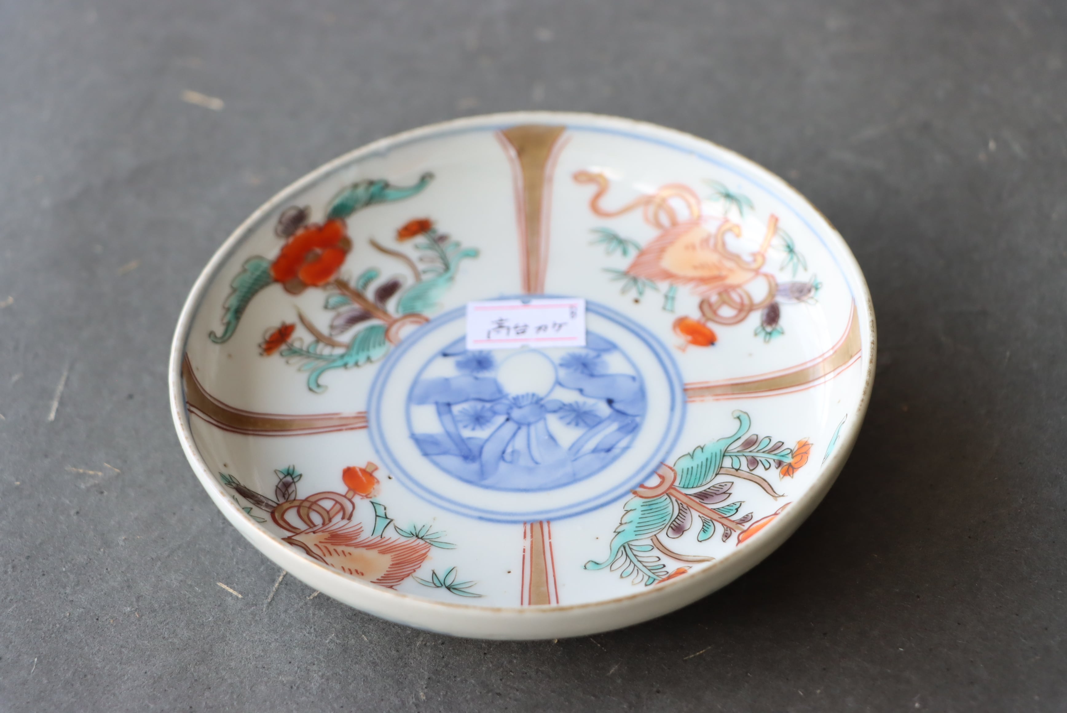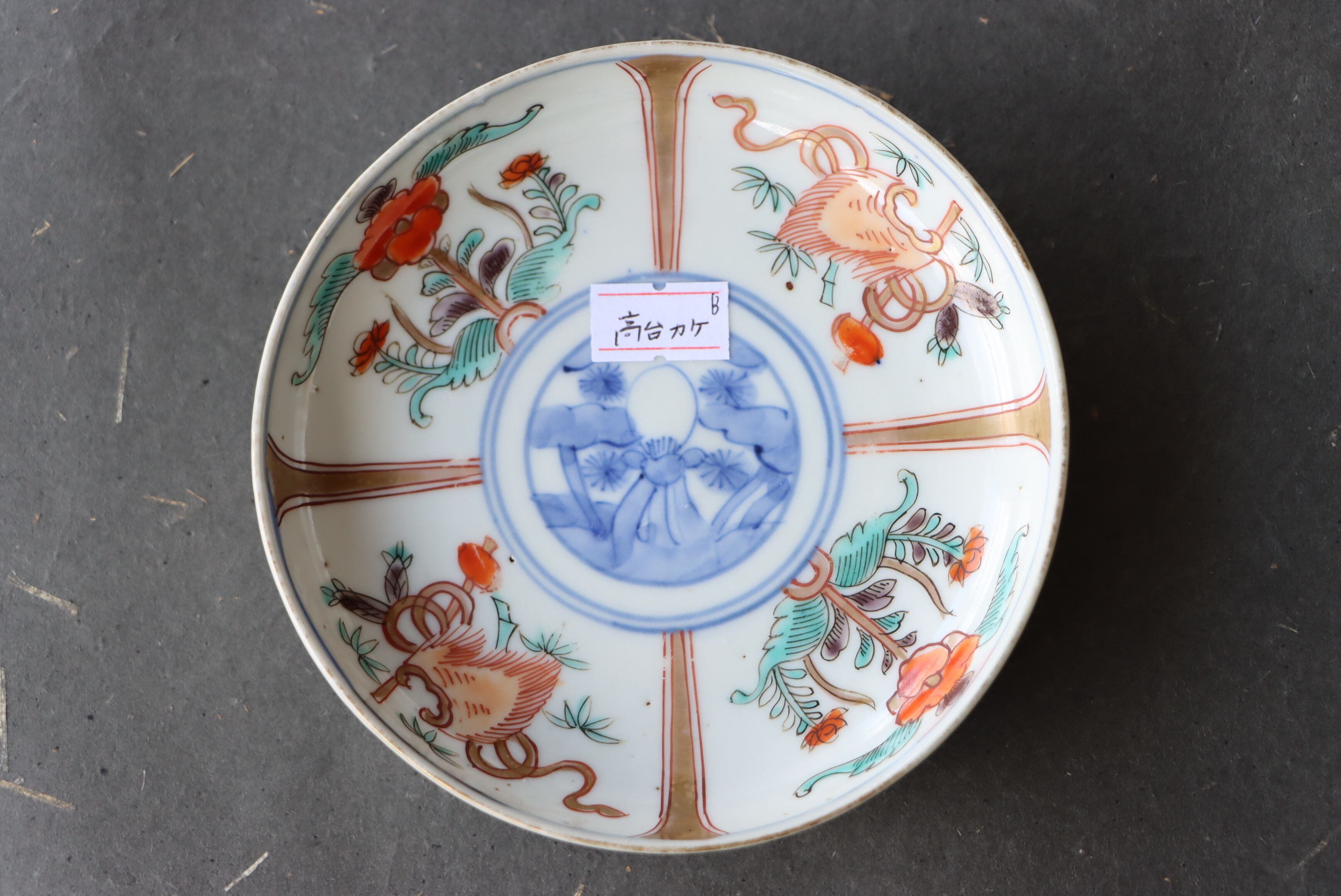 状態:高台カケあり。その他、口縁部分に施された金彩が一部薄くなっている箇所、焼く段階でできる鉄分(黒子のような点)やピンホールがございます。お写真にて状態をご確認ください。普段使い可能。