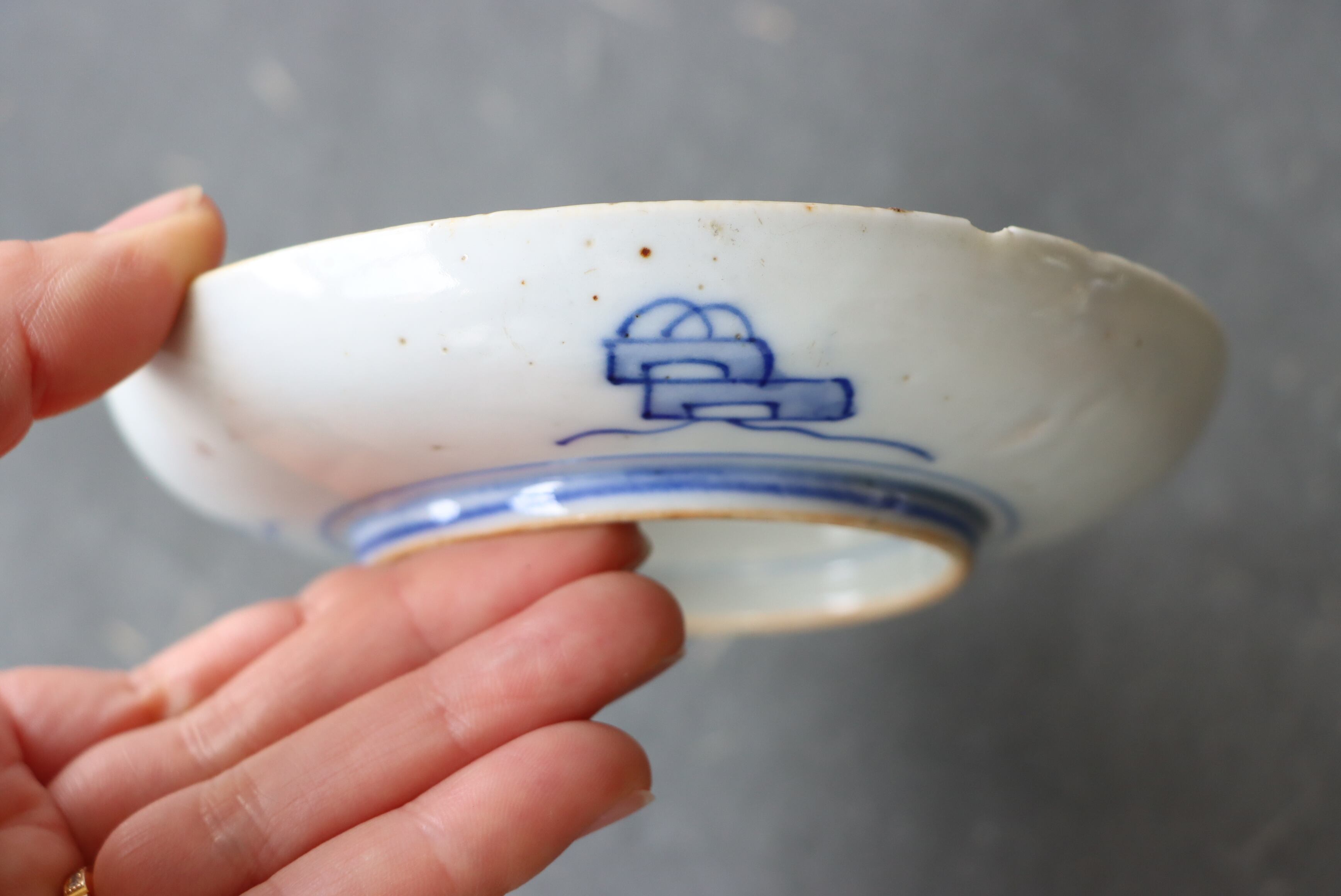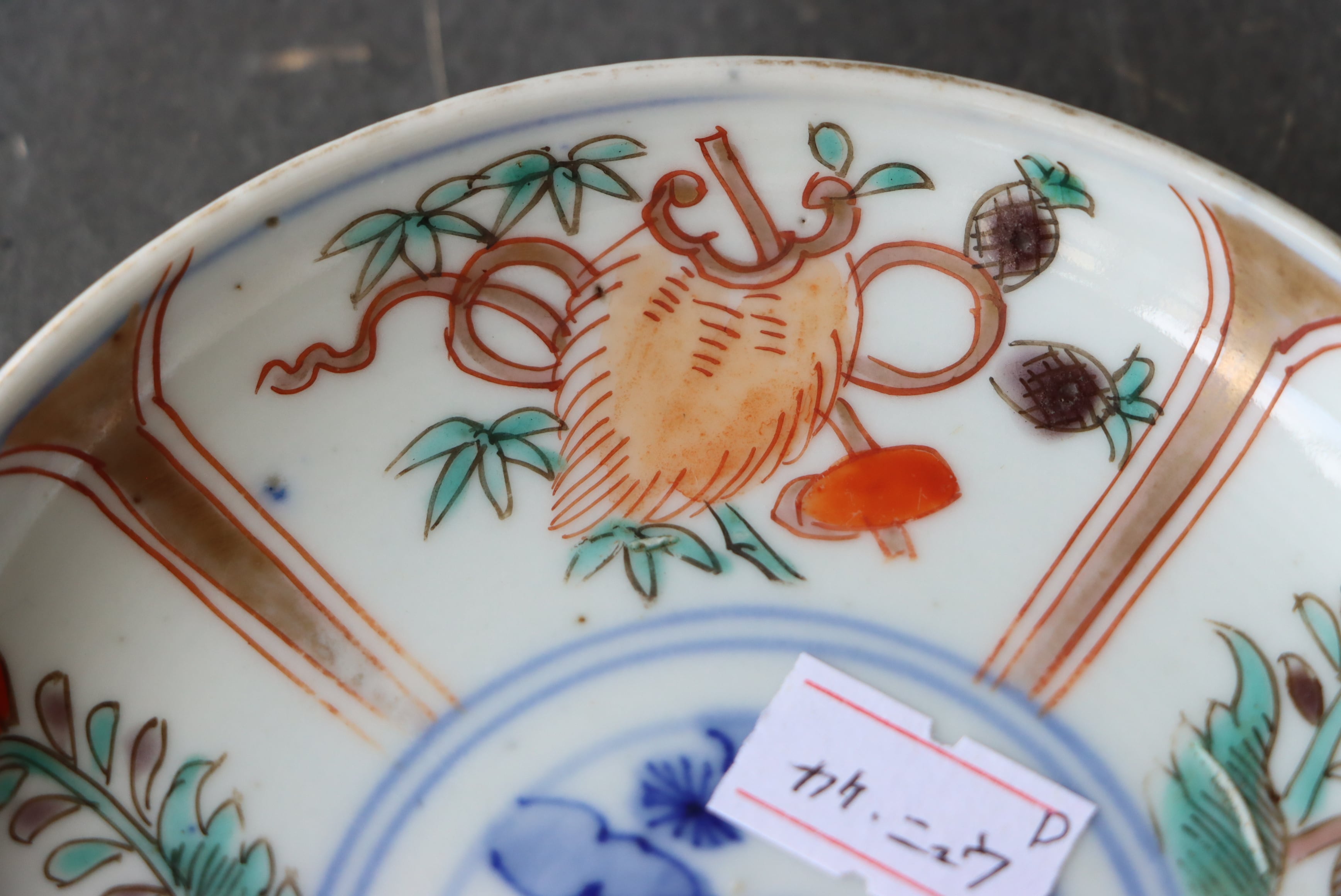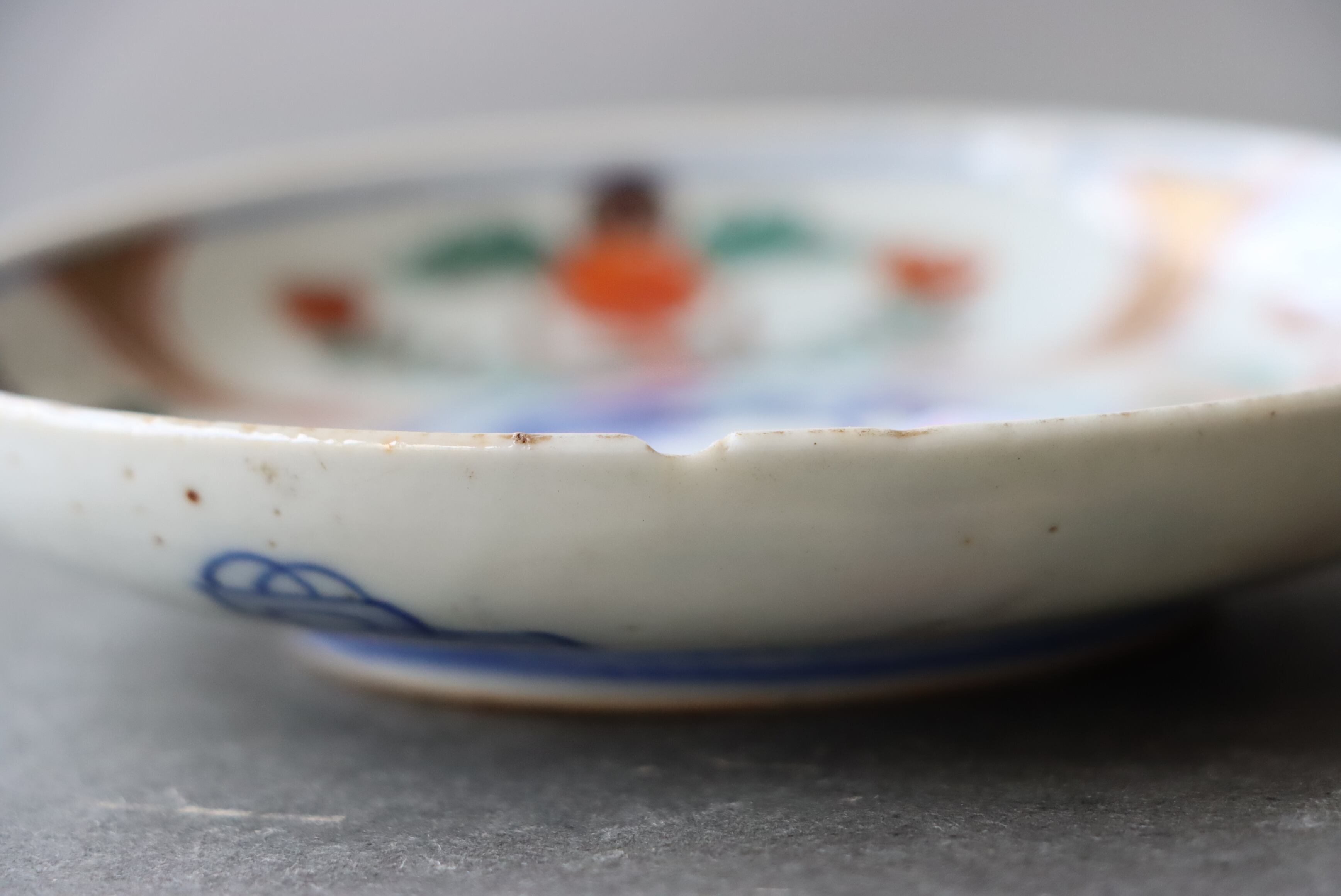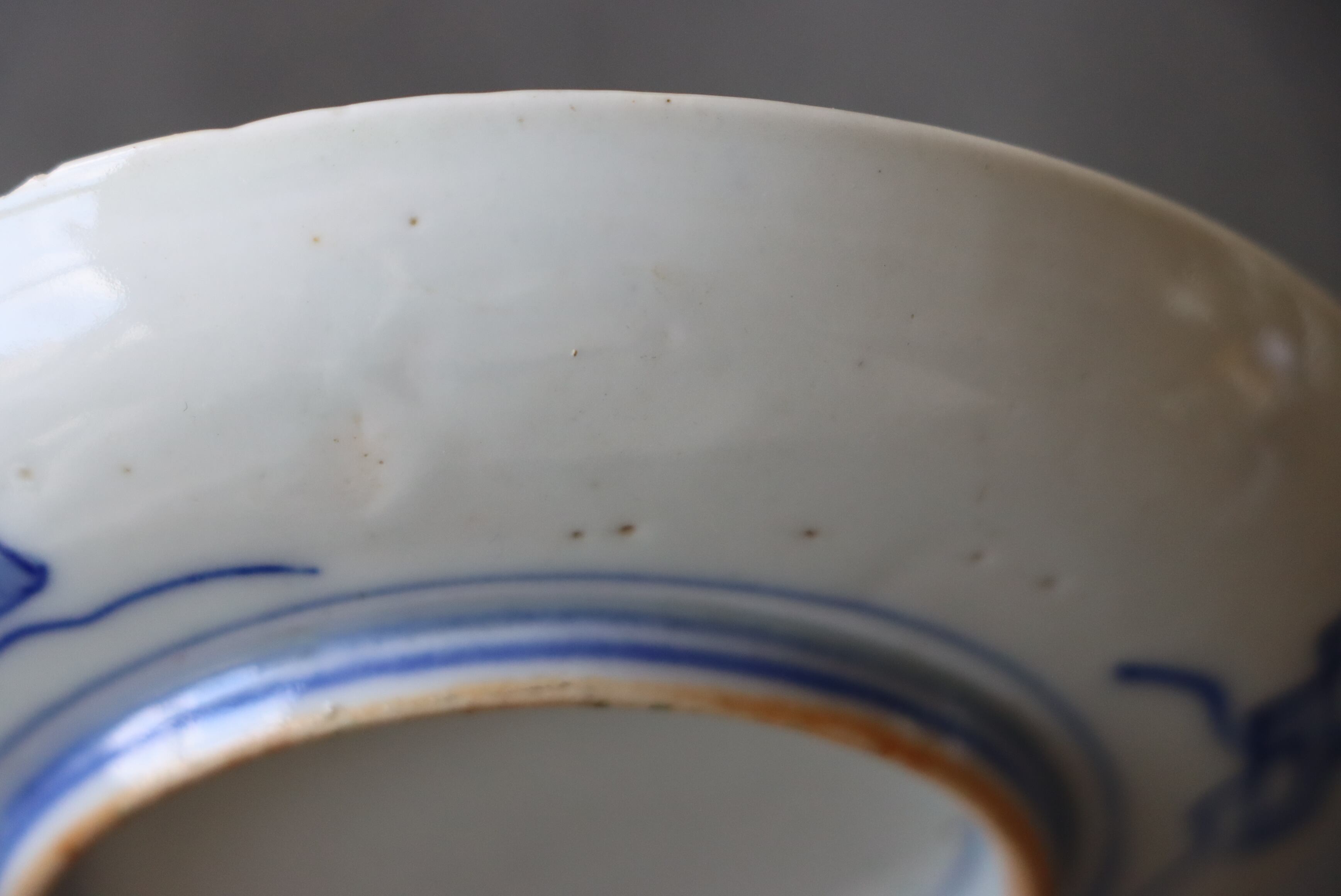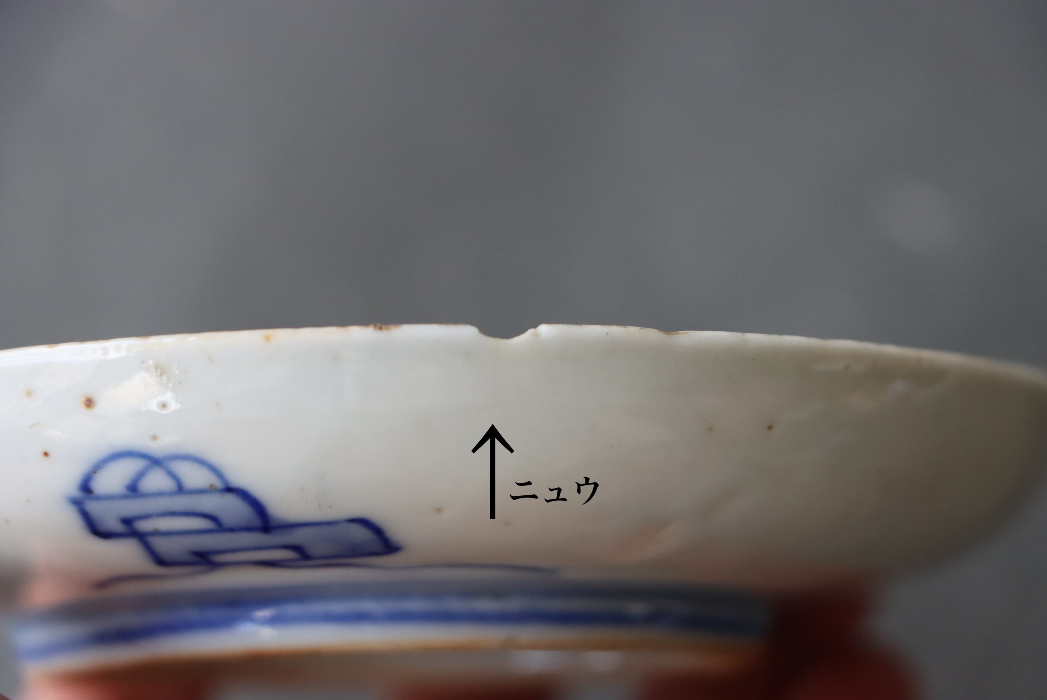 状態:カケ(約2センチ)、カケと同じ箇所からニュウ(約0.5センチ)あり。