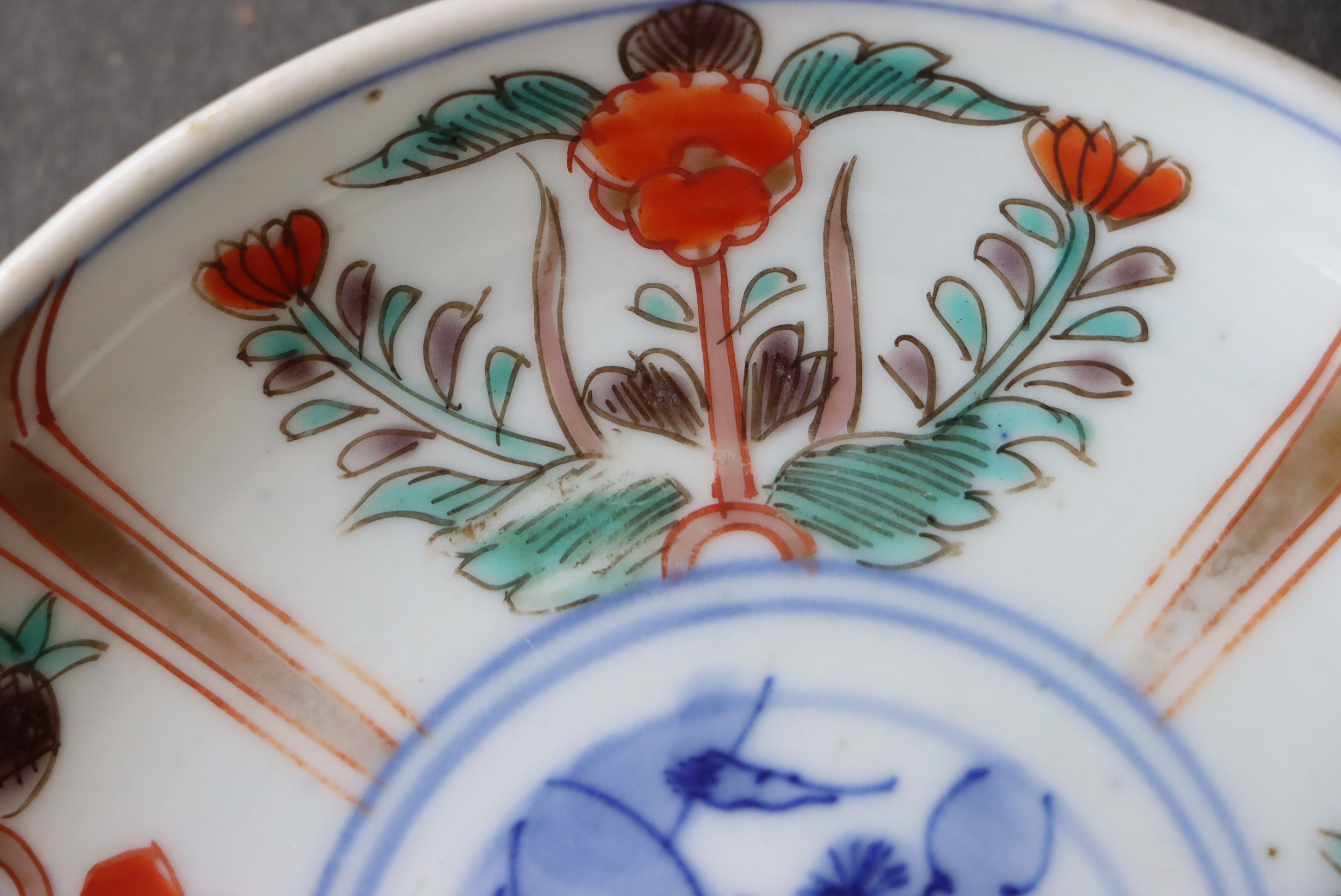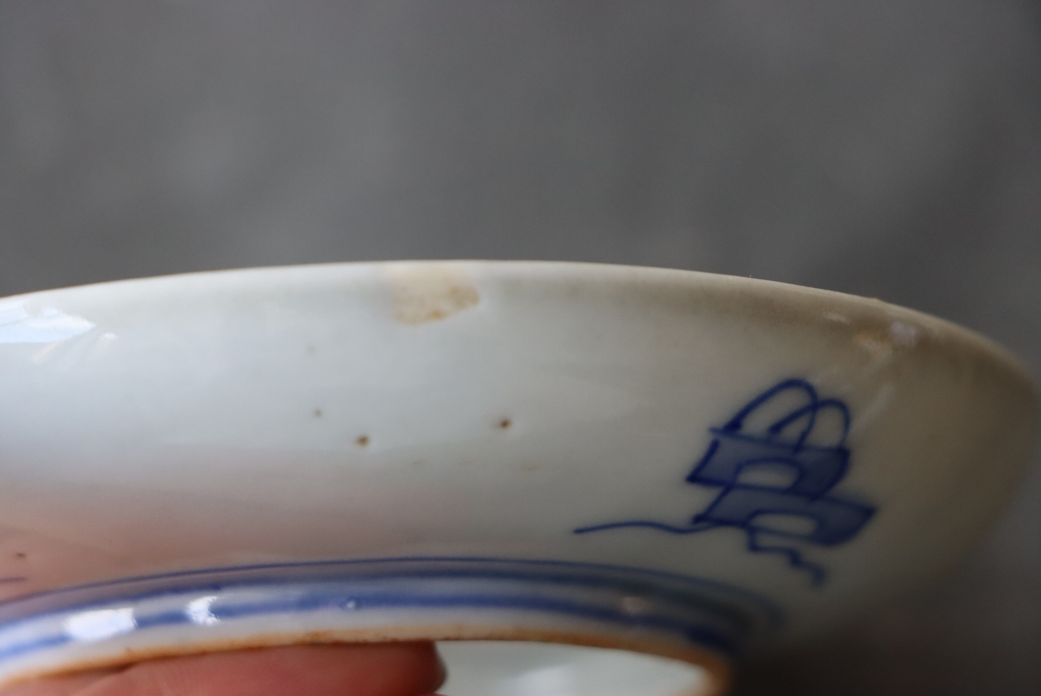 焼成時に窯の中でできる鉄分、くっつき、かまきず、ピンホール、経年による釉薬の薄れがございます。また、一枚一枚手描き、手作りですので器のサイズ(ミリ)、色味、描かれている文様の大きさなど個体差があり、ひとつとして同じものはございません。そういった時代感、個性をご理解いただき、楽しんでくだされば幸いです。電子レンジや食器洗い乾燥機のご使用はお控えください。