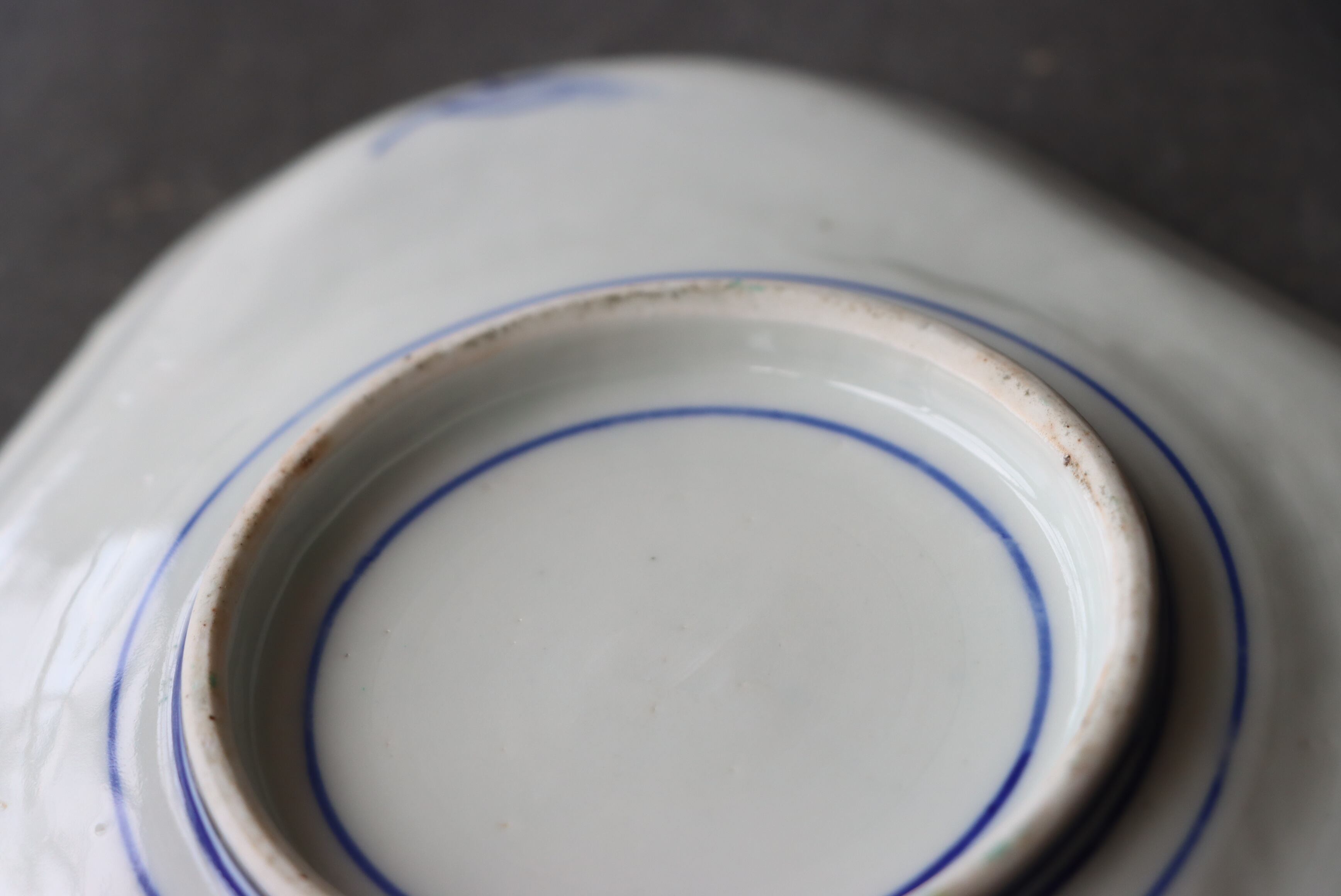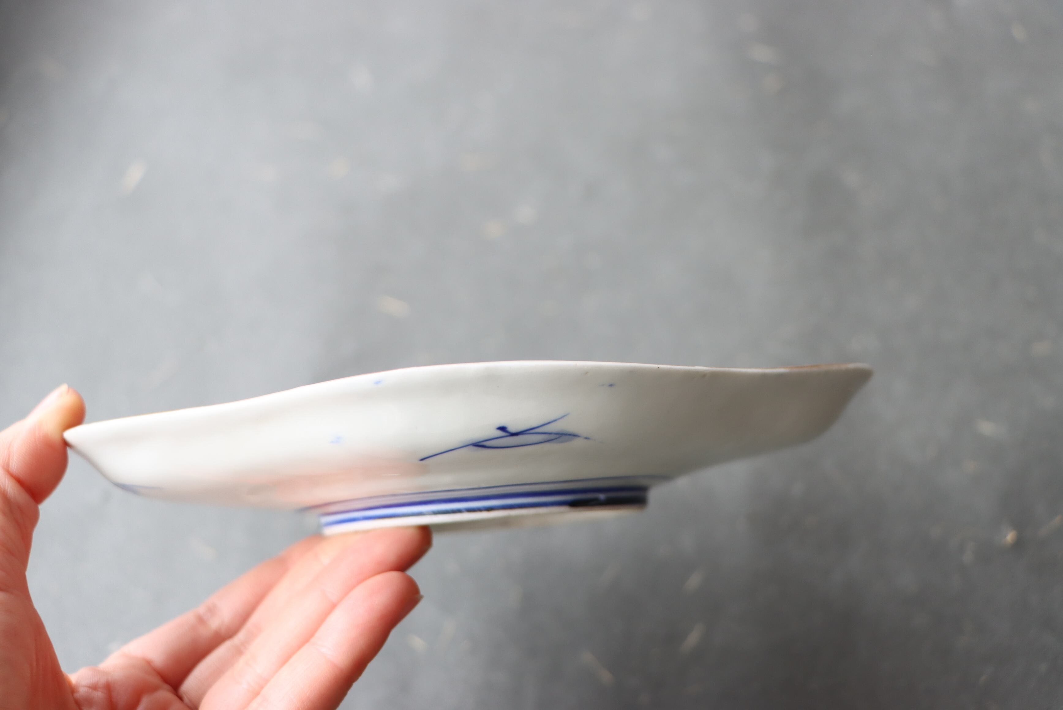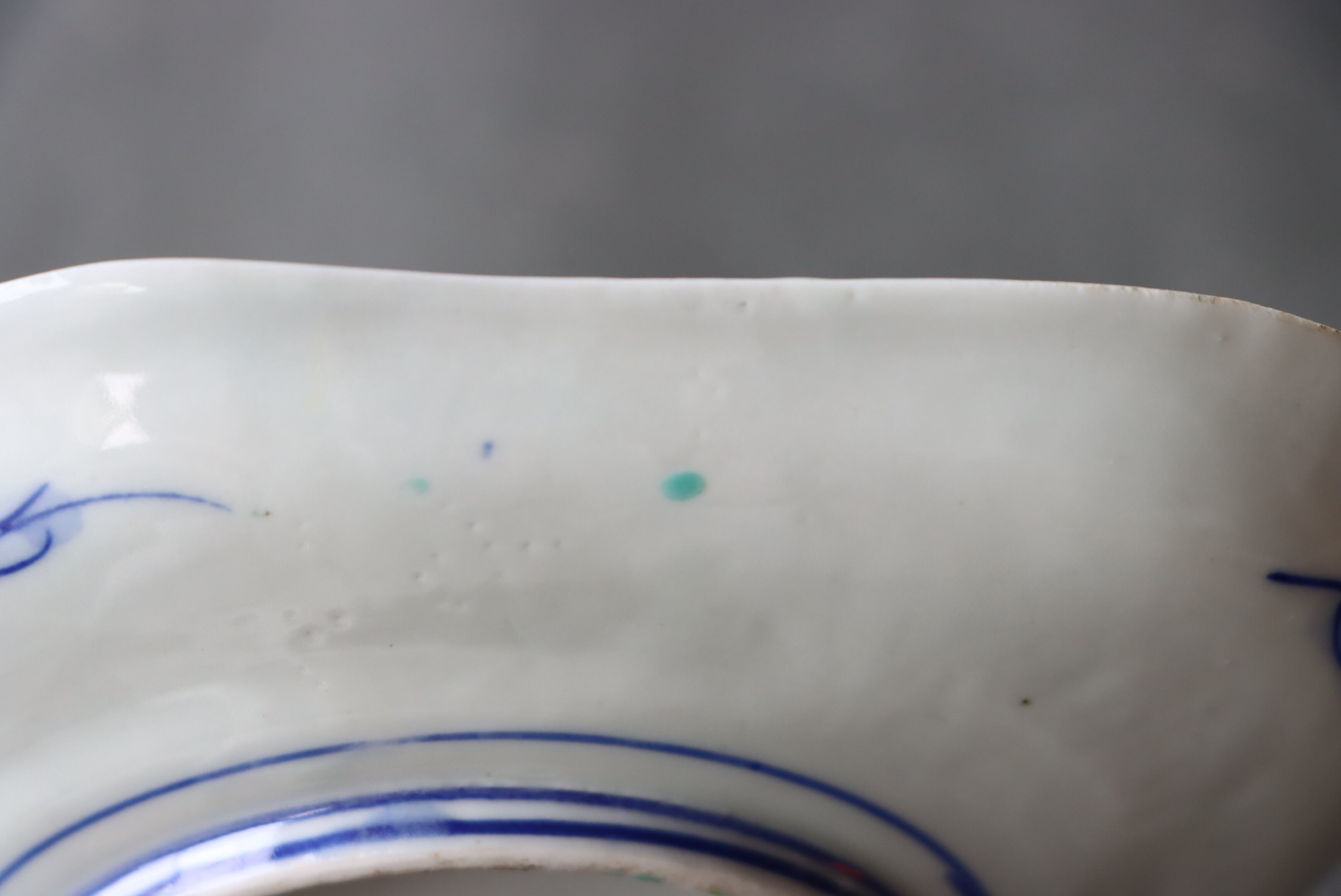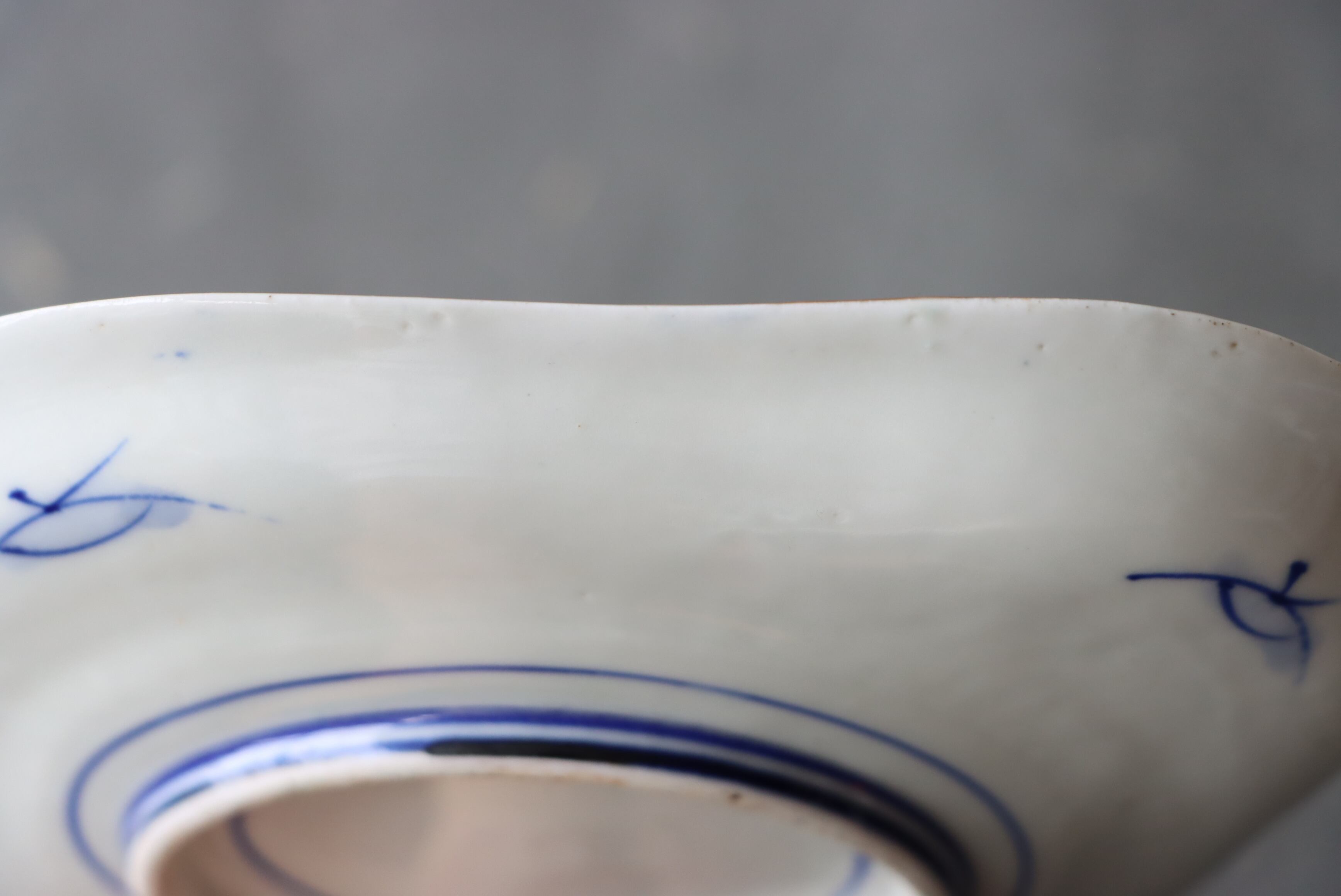 焼成時に窯の中でできる鉄分、くっつき、かまきず、ピンホール、経年による釉薬の薄れがございます。また、一枚一枚手描き、手作りですので器のサイズ(ミリ)、色味、描かれている文様の大きさなど個体差があり、ひとつとして同じものはございません。そういった時代感、個性をご理解いただき、楽しんでくだされば幸いです。電子レンジや食器洗い乾燥機のご使用はお控えください。
