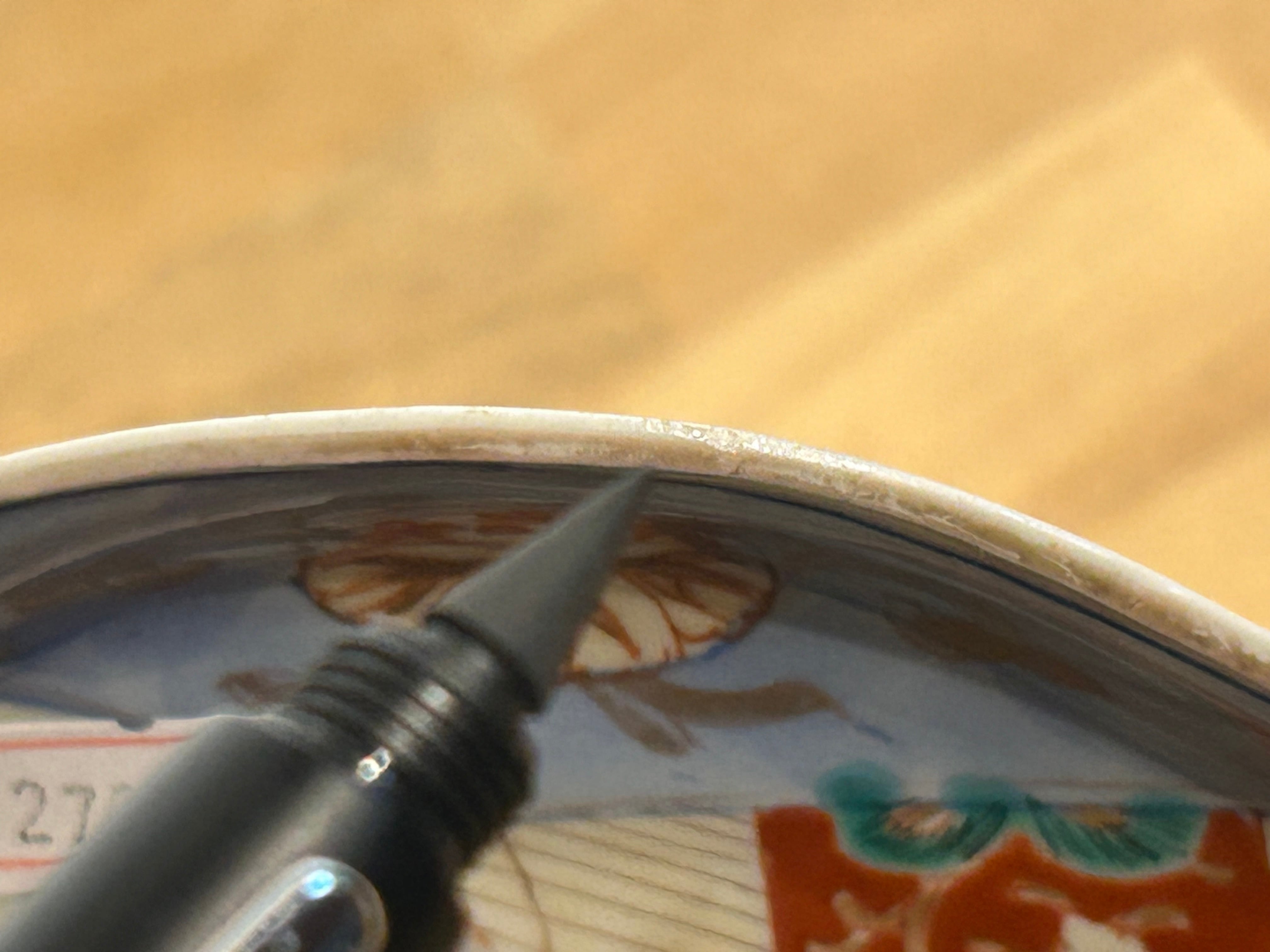 状態:小さなフチソゲ×2あり。その他、金彩が薄れている箇所、釉薬が剥落している箇所がございます。普段使い可能です。