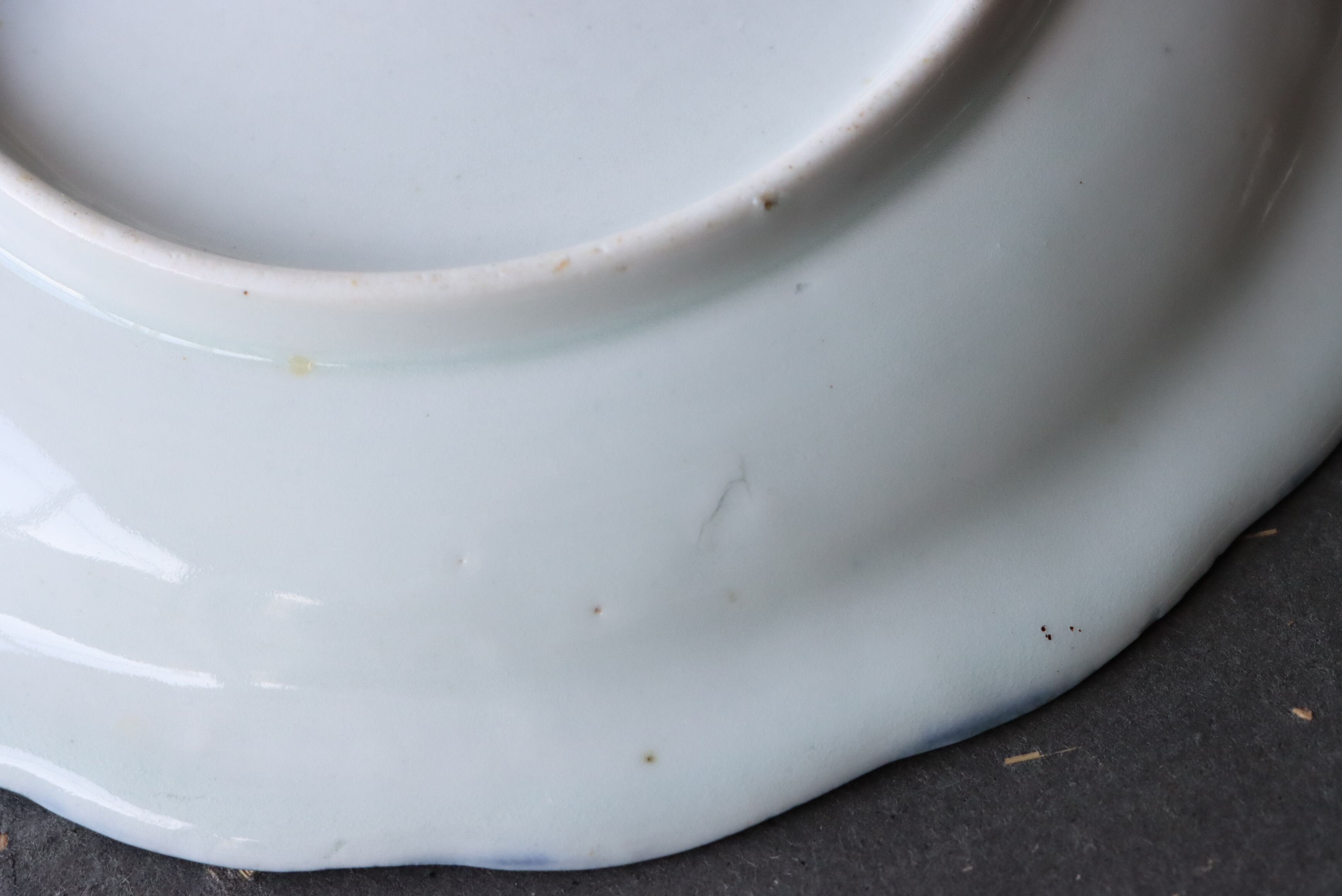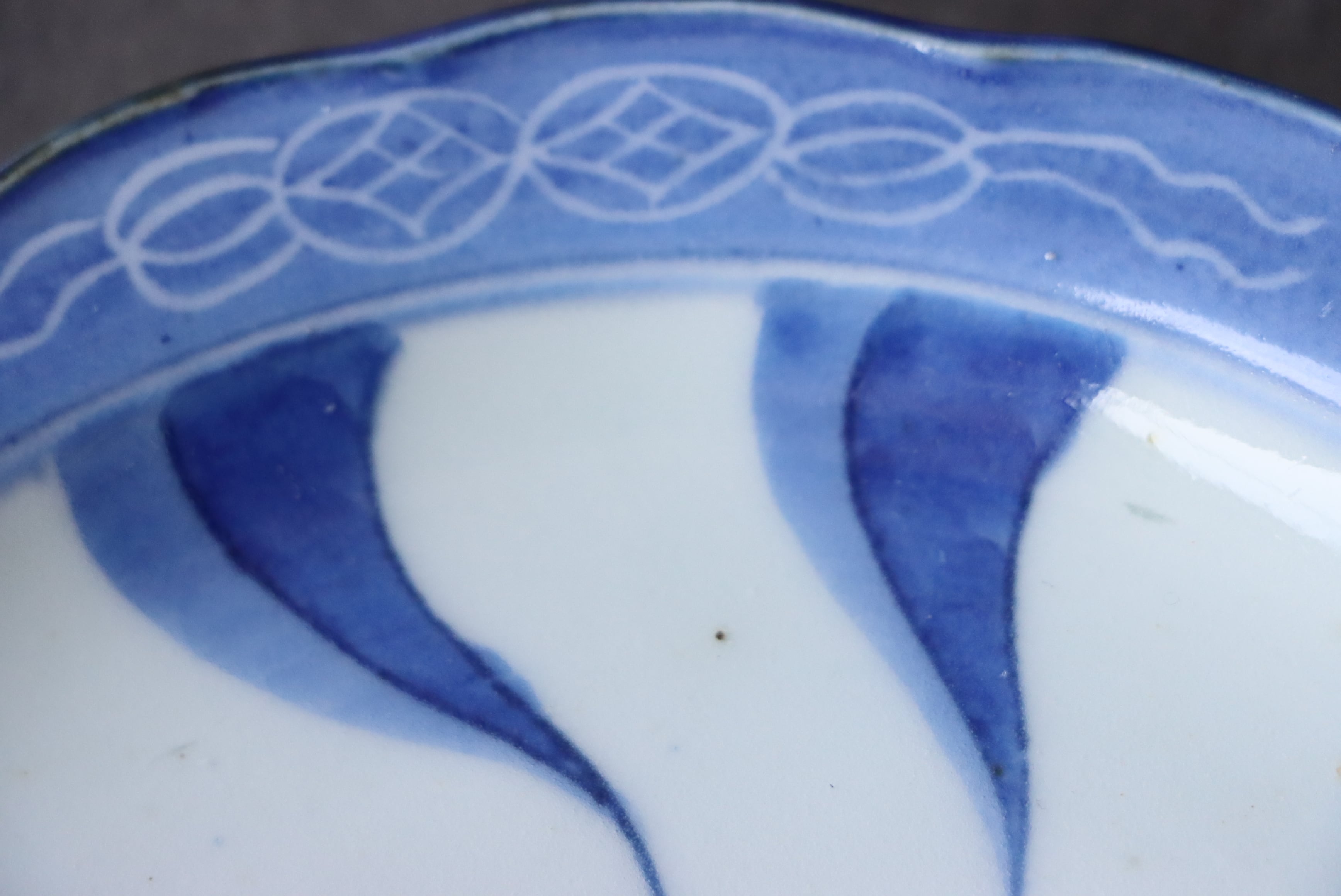 焼成時に窯の中でできる鉄分、くっつき、かまきず、ピンホール、経年による釉薬の薄れがございます。また、一枚一枚手描き、手作りですので器のサイズ(ミリ)、色味、描かれている文様の大きさなど個体差があり、ひとつとして同じものはございません。そういった時代感、個性をご理解いただき、楽しんでくだされば幸いです。電子レンジや食器洗い乾燥機のご使用はお控えください。