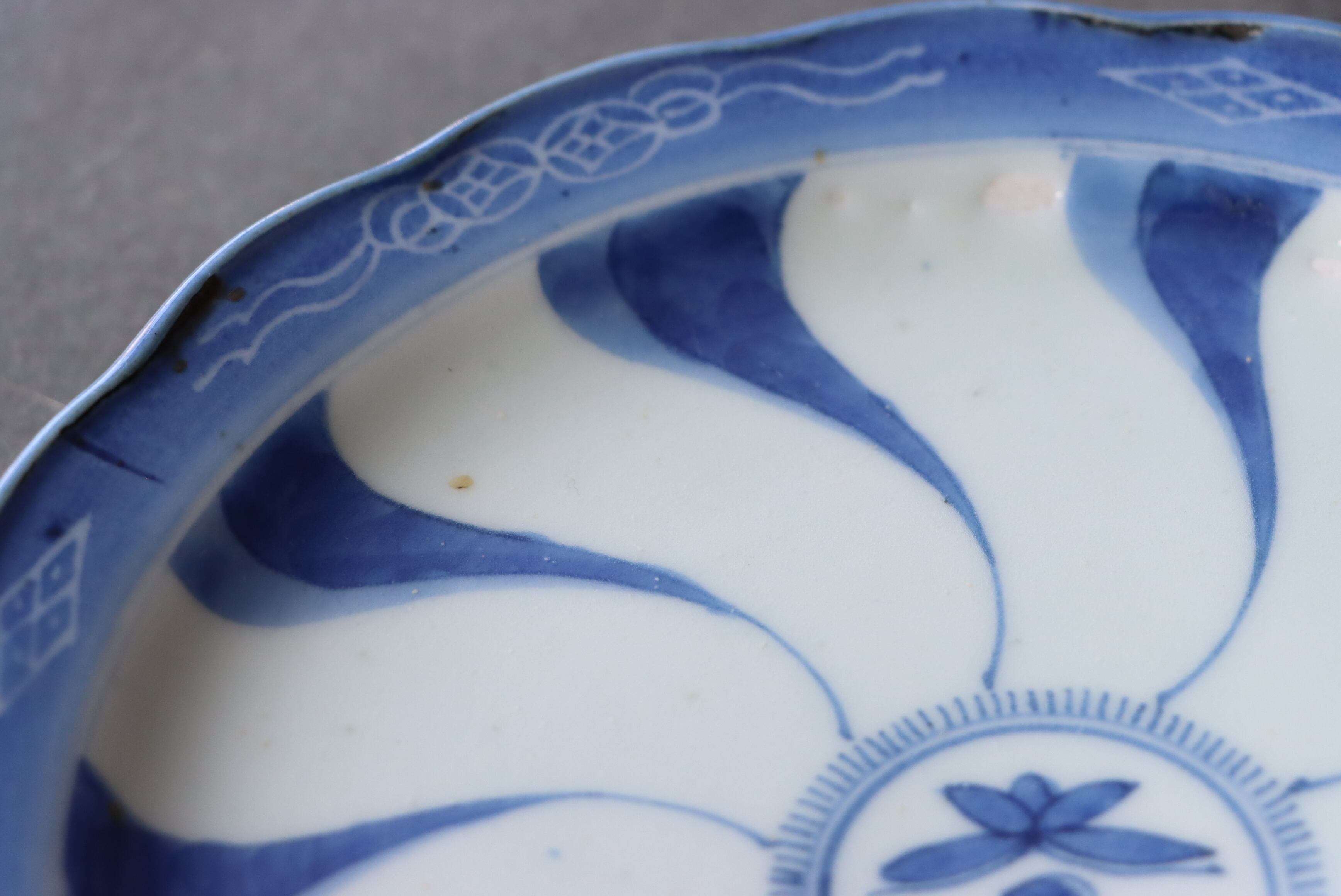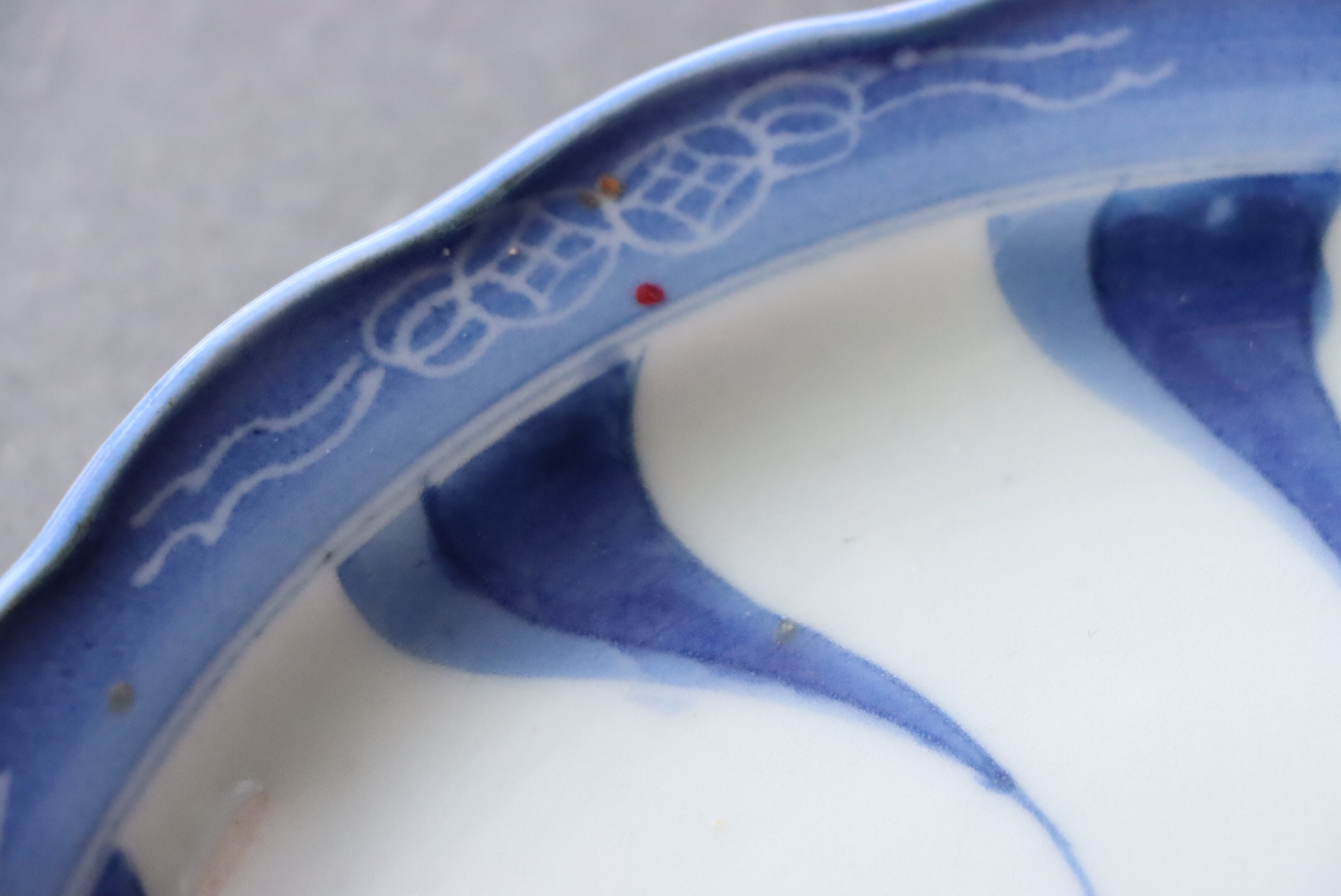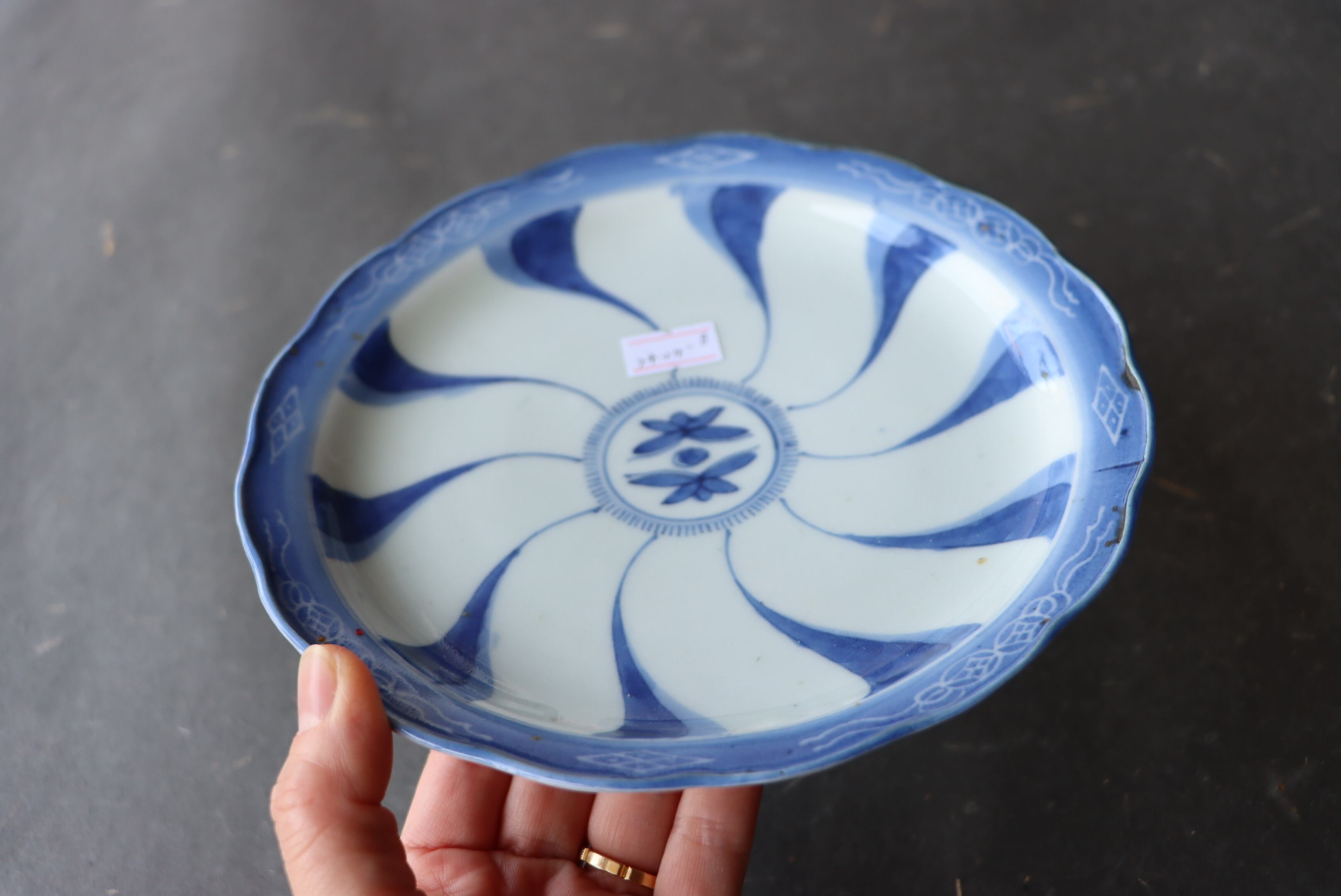 焼成時に窯の中でできる鉄分、くっつき、かまきず、ピンホール、経年による釉薬の薄れがございます。また、一枚一枚手描き、手作りですので器のサイズ(ミリ)、色味、描かれている文様の大きさなど個体差があり、ひとつとして同じものはございません。そういった時代感、個性をご理解いただき、楽しんでくだされば幸いです。電子レンジや食器洗い乾燥機のご使用はお控えください。