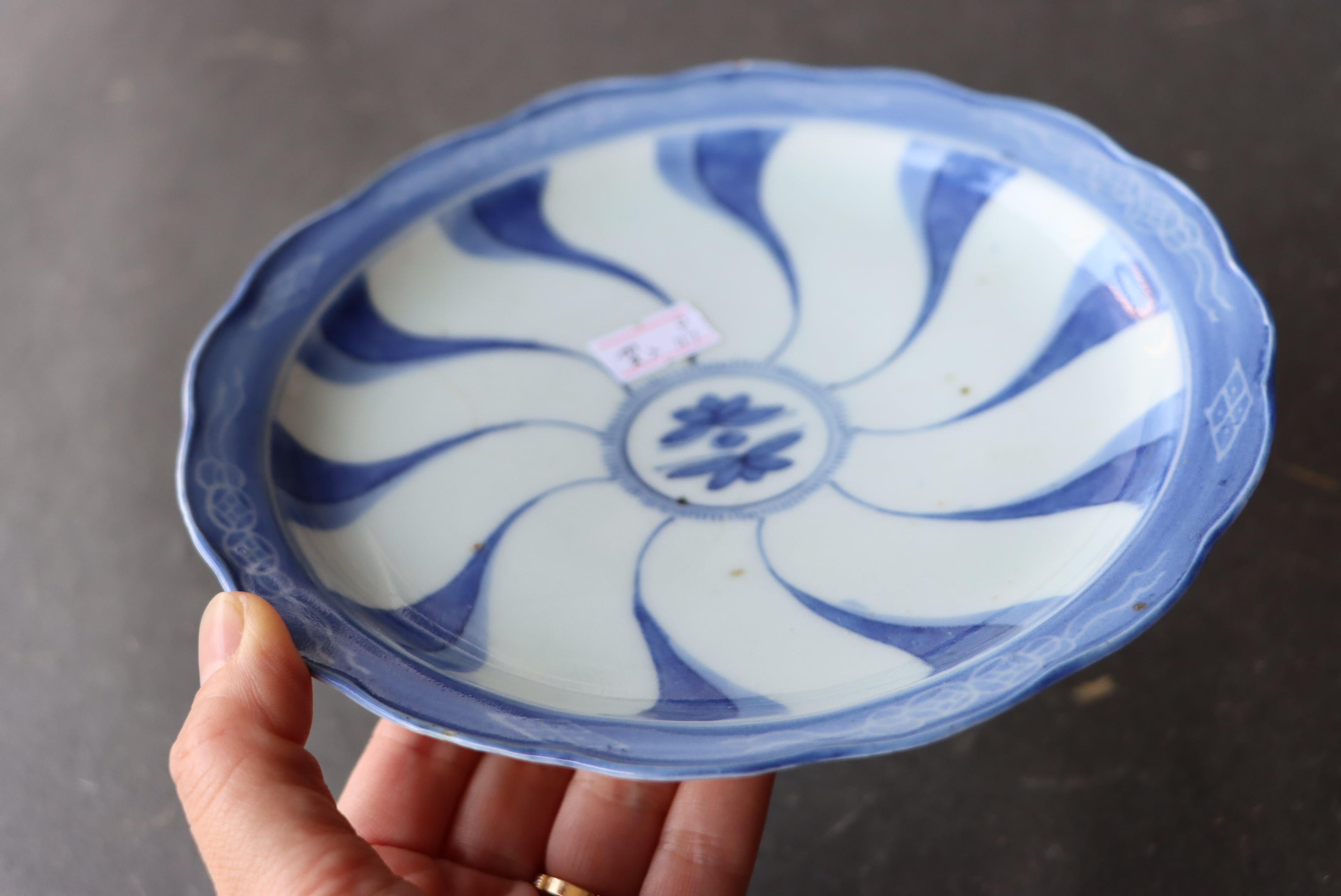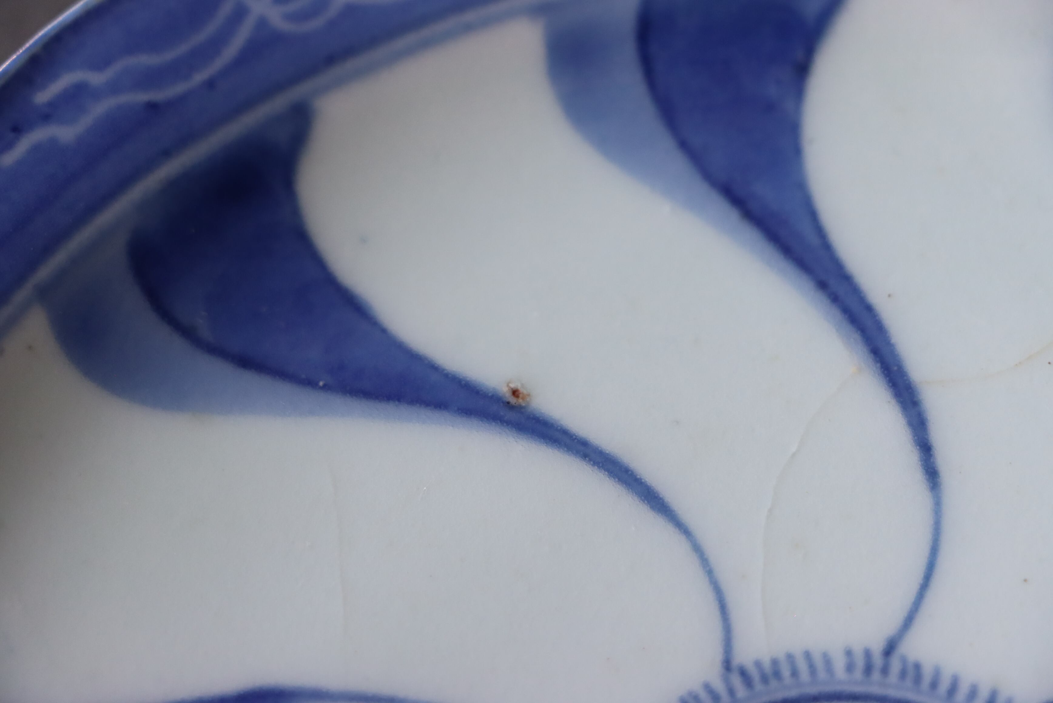焼成時に窯の中でできる鉄分、くっつき、かまきず、ピンホール、経年による釉薬の薄れがございます。また、一枚一枚手描き、手作りですので器のサイズ(ミリ)、色味、描かれている文様の大きさなど個体差があり、ひとつとして同じものはございません。そういった時代感、個性をご理解いただき、楽しんでくだされば幸いです。電子レンジや食器洗い乾燥機のご使用はお控えください。