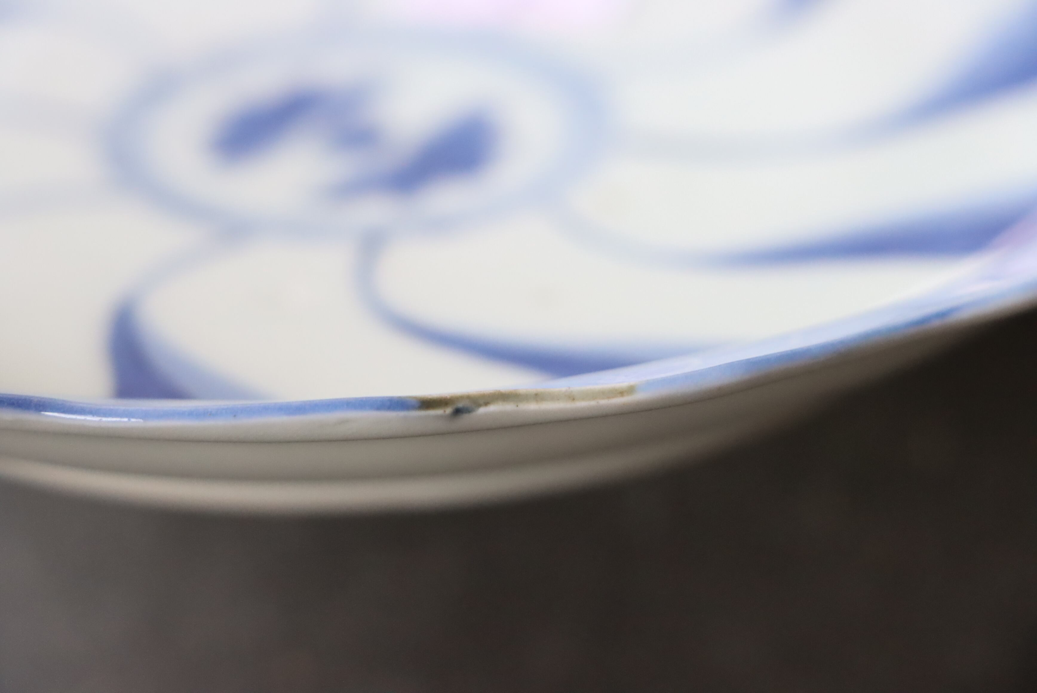 焼成時に窯の中でできる鉄分、くっつき、かまきず、ピンホール、経年による釉薬の薄れがございます。また、一枚一枚手描き、手作りですので器のサイズ(ミリ)、色味、描かれている文様の大きさなど個体差があり、ひとつとして同じものはございません。そういった時代感、個性をご理解いただき、楽しんでくだされば幸いです。電子レンジや食器洗い乾燥機のご使用はお控えください。
