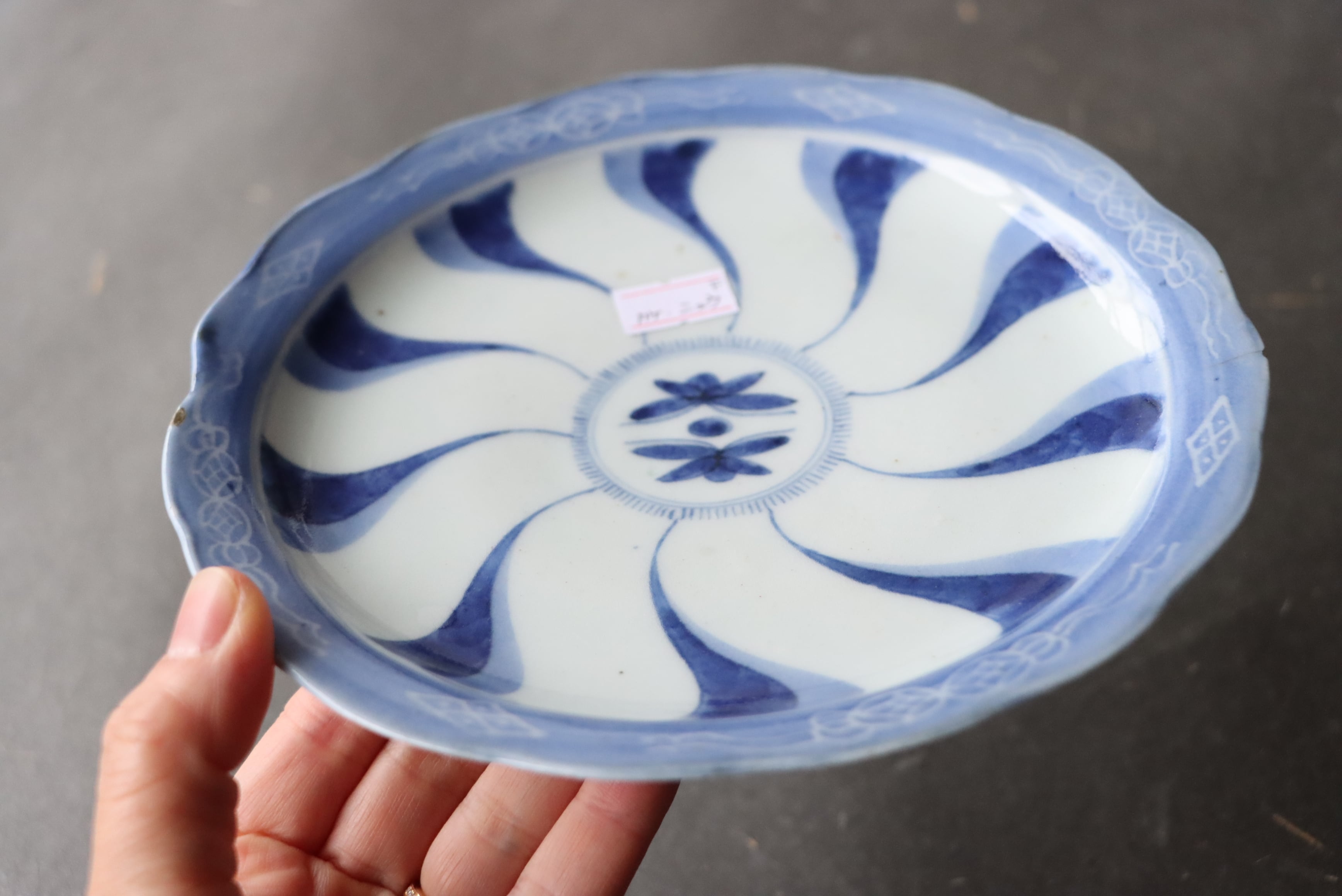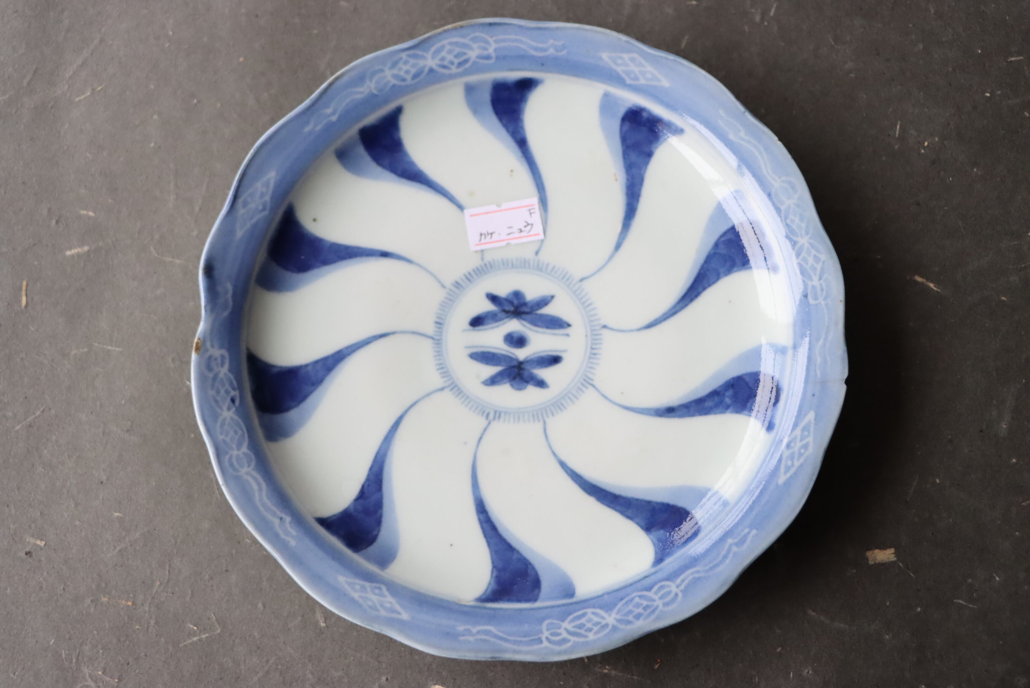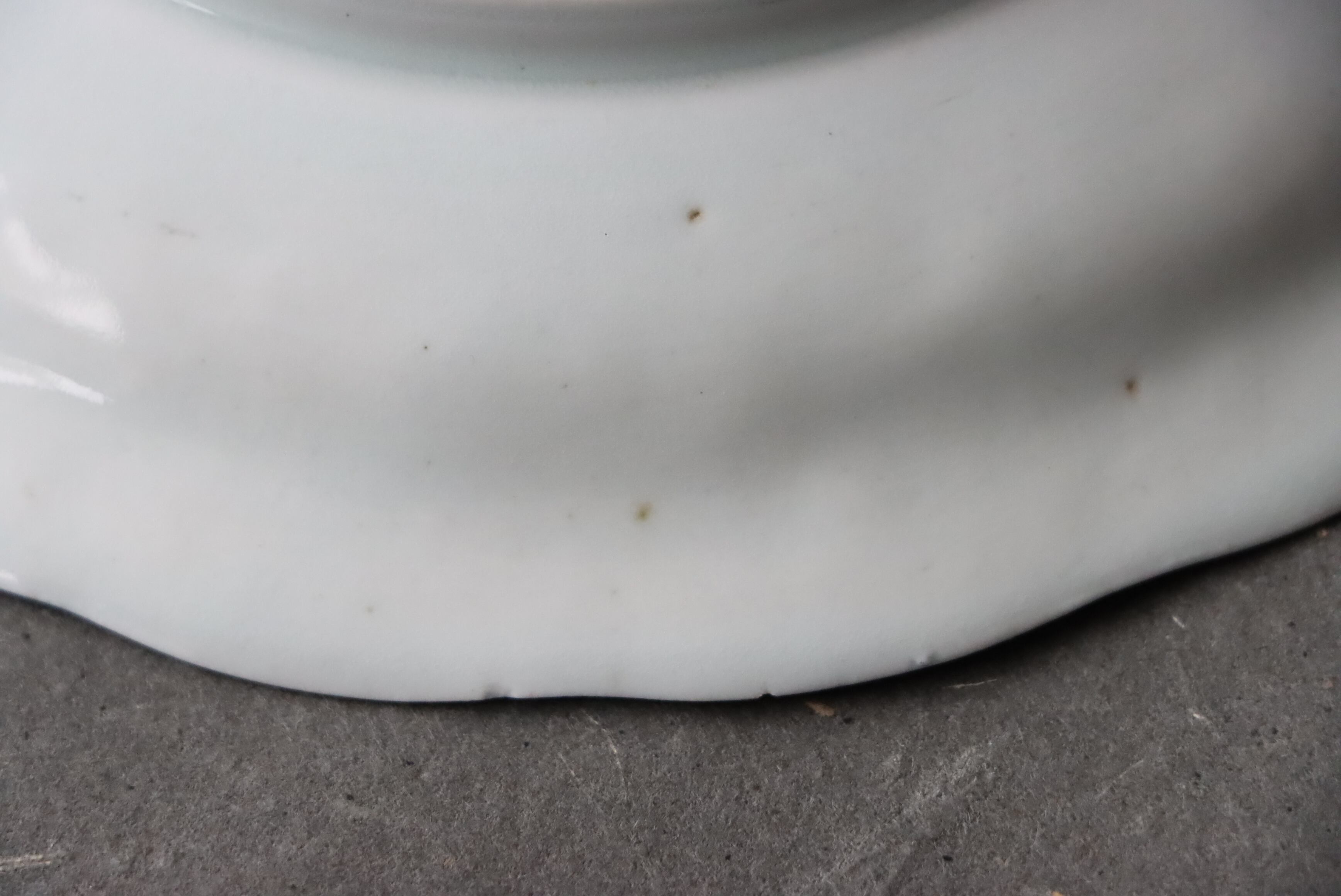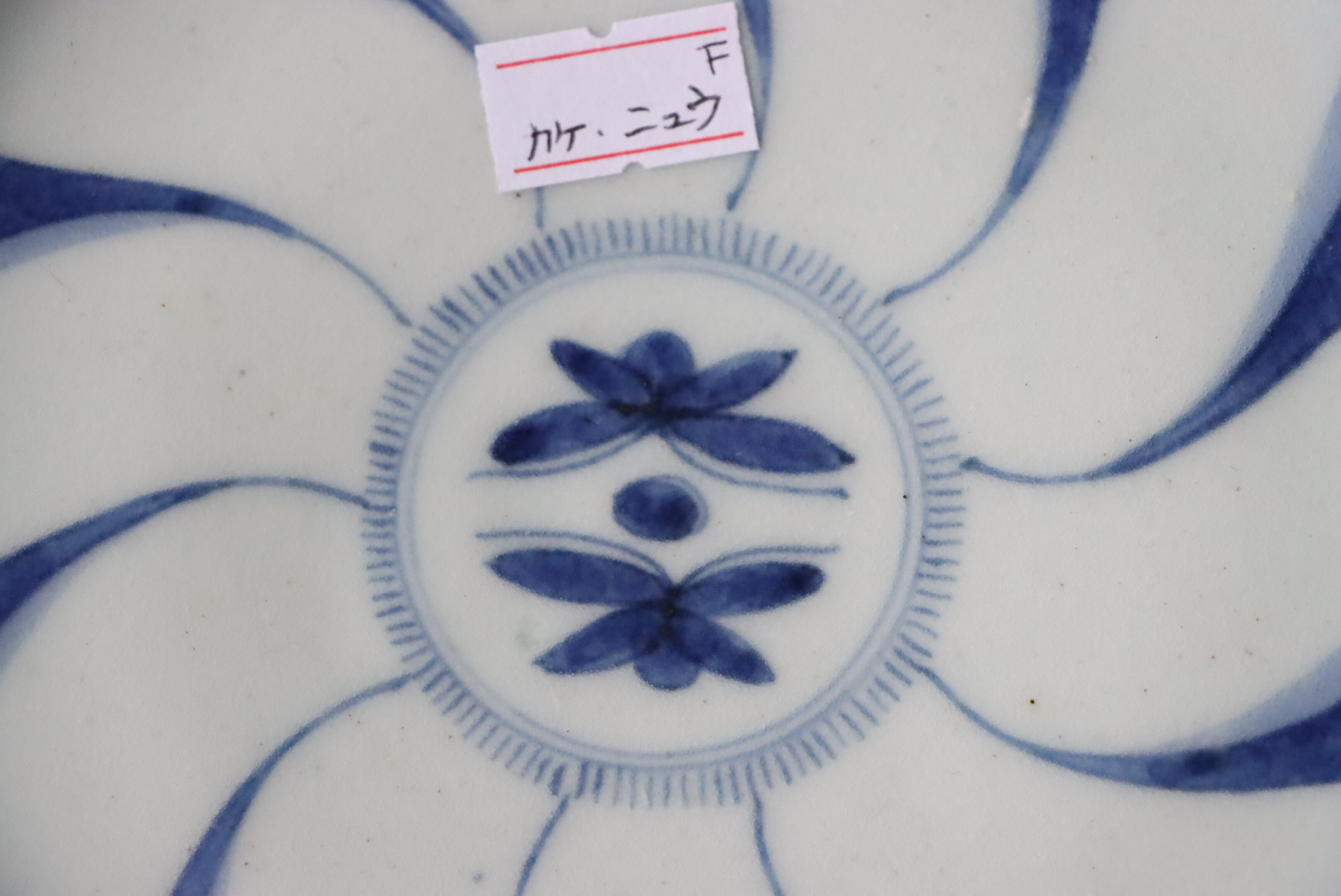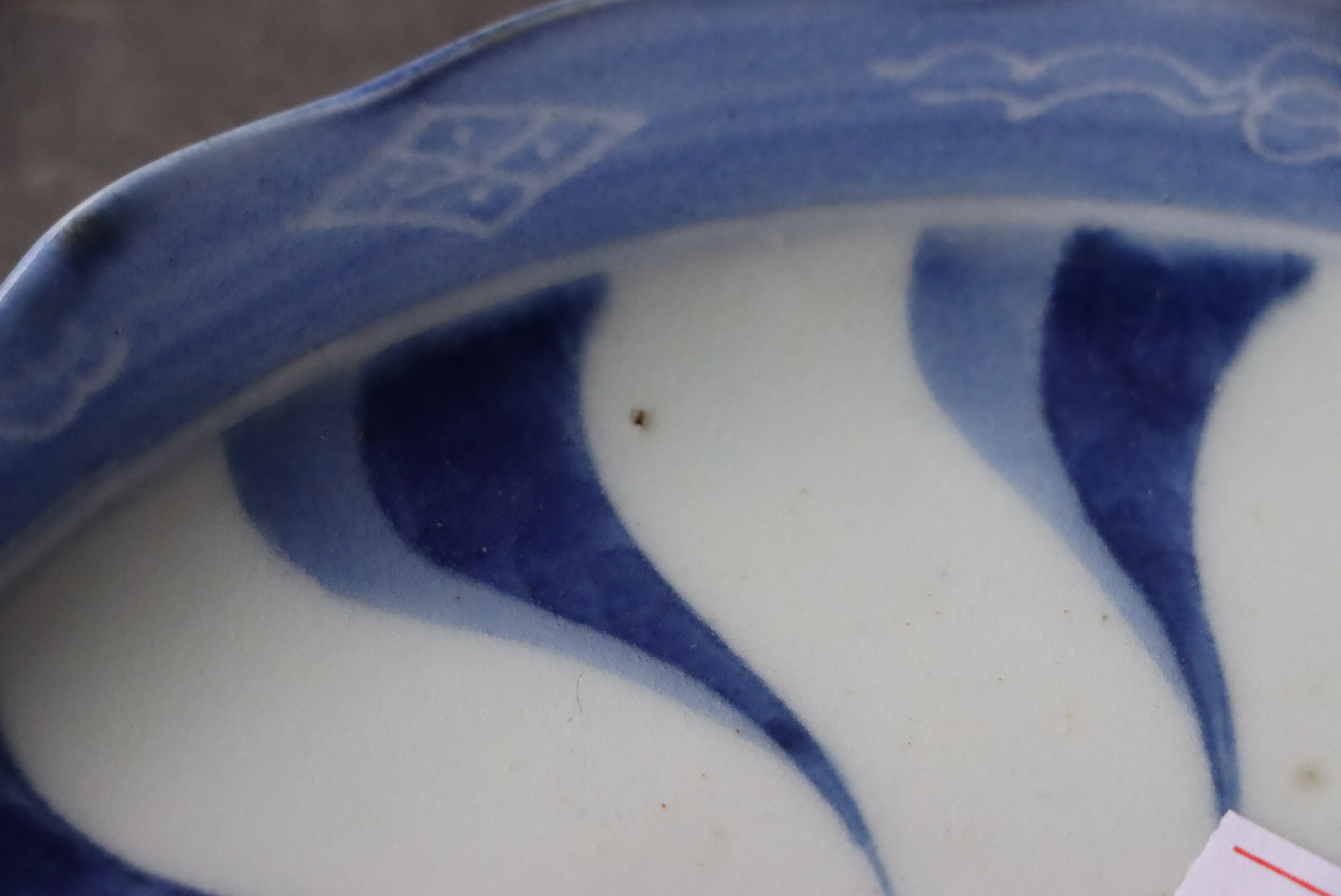 状態:カケ(約0.5センチ)、カケと同じ箇所からニュウ(約1.5センチ)あり。カケ、ニュウに時代色が入っています。その他、フチソゲあり(写真4枚目)。