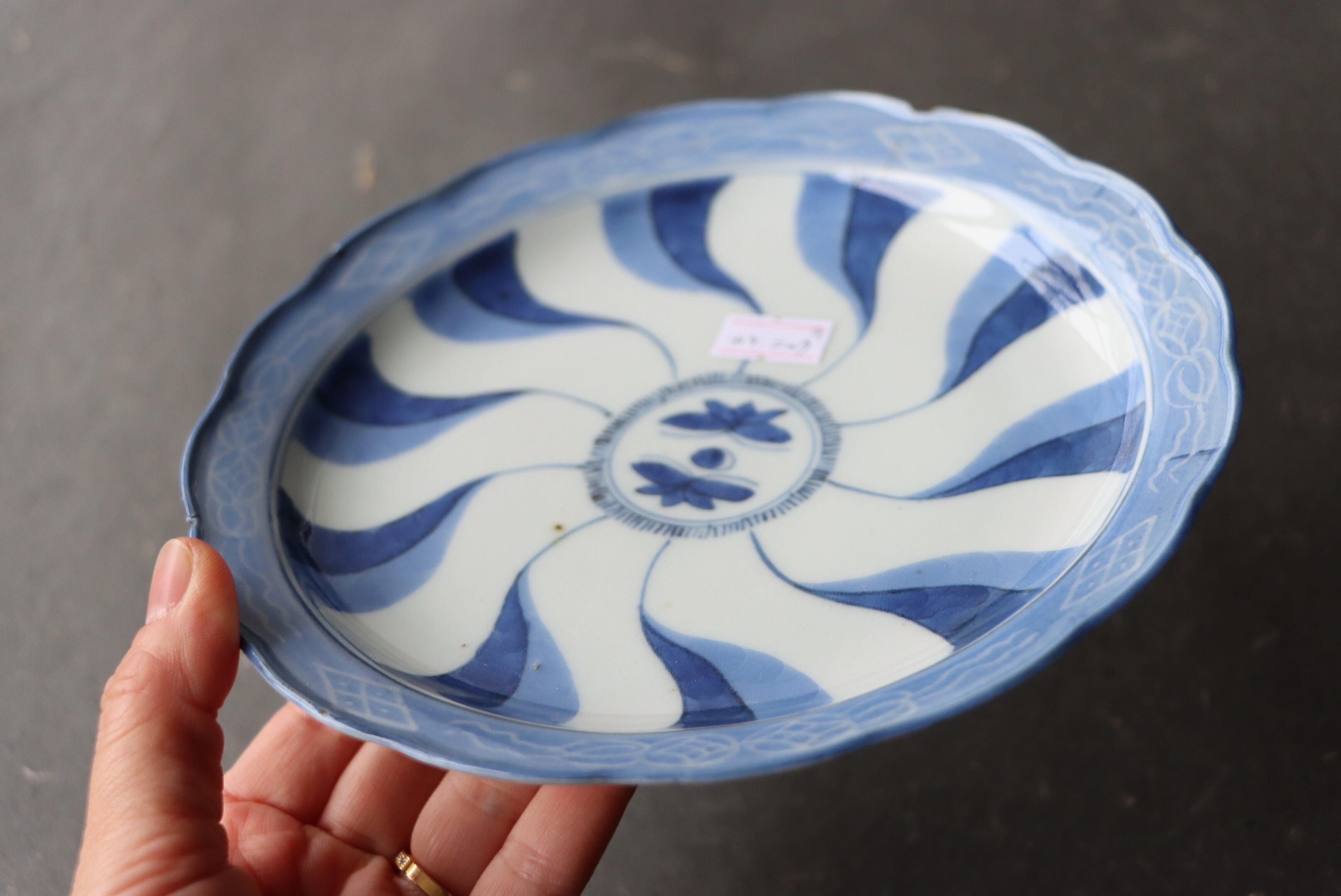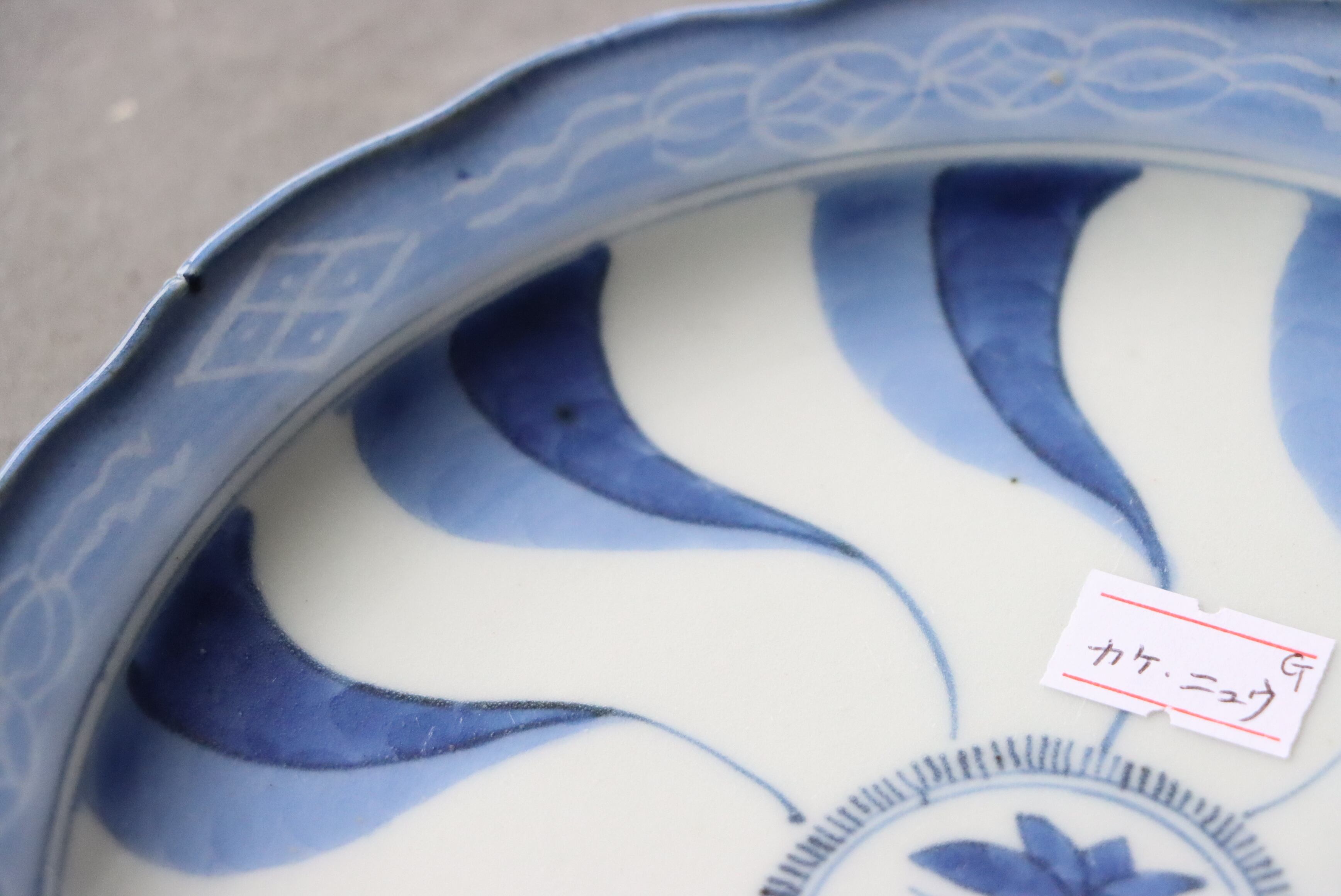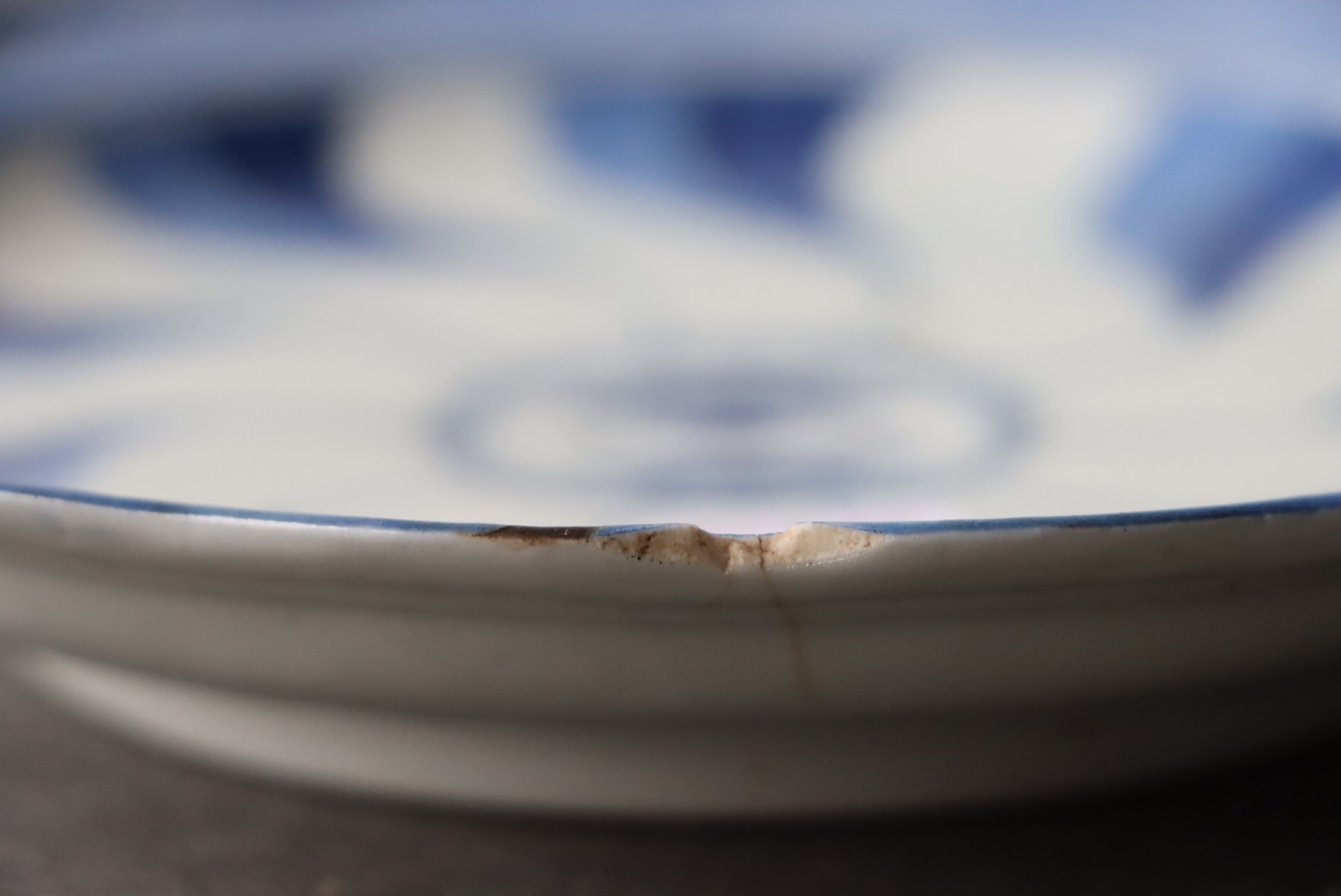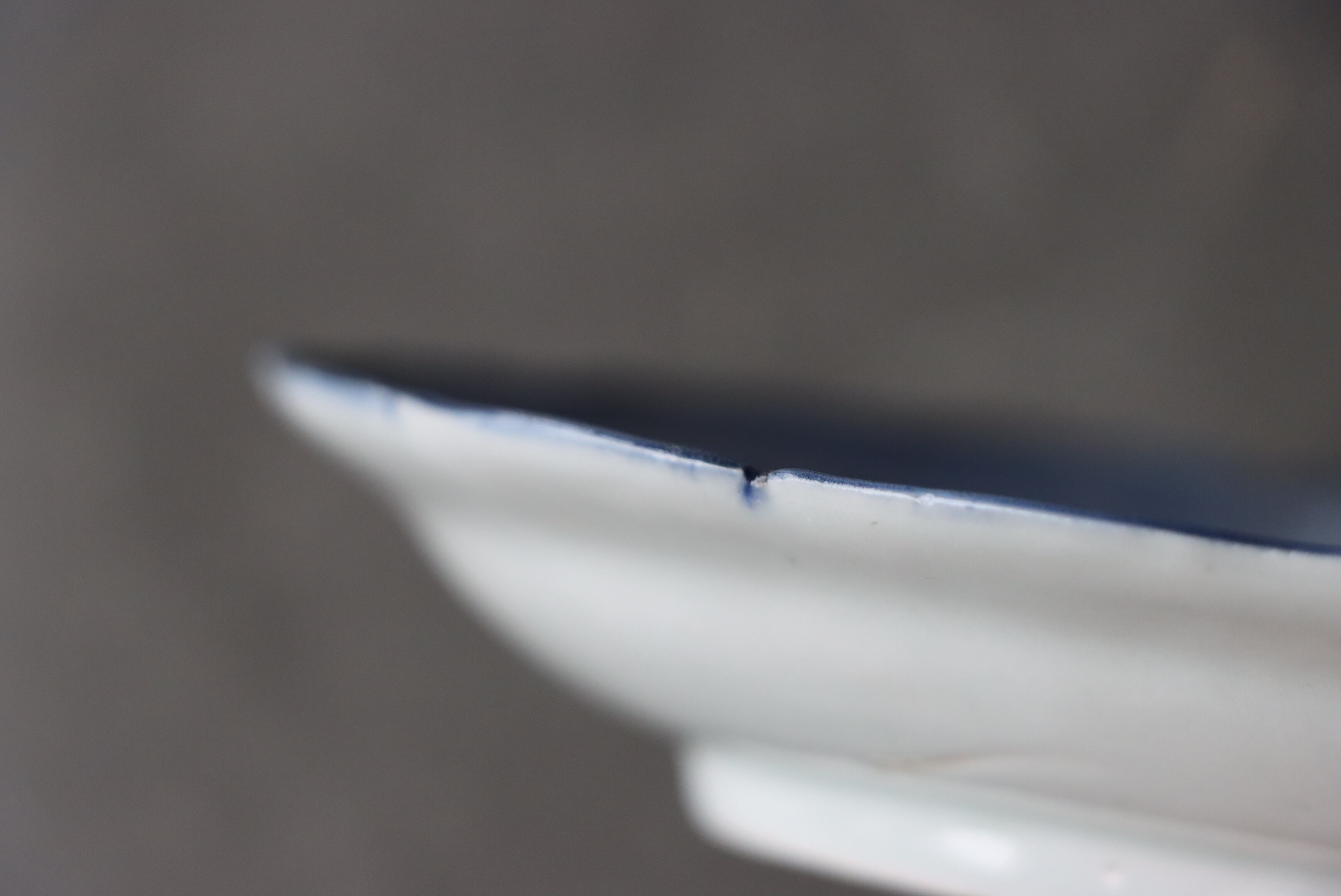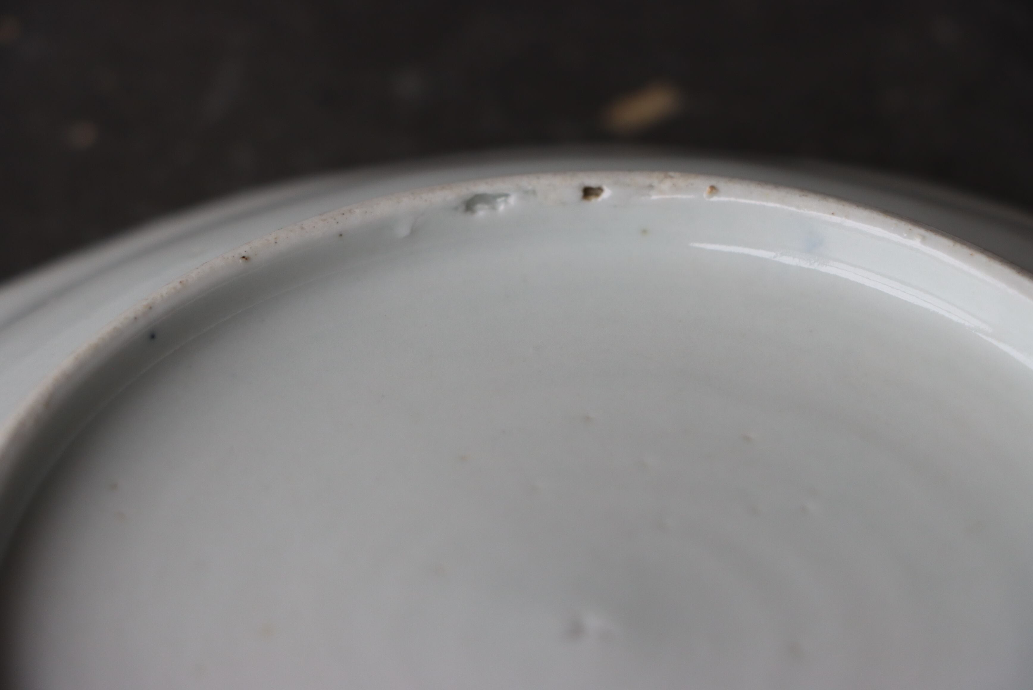 焼成時に窯の中でできる鉄分、くっつき、かまきず、ピンホール、経年による釉薬の薄れがございます。また、一枚一枚手描き、手作りですので器のサイズ(ミリ)、色味、描かれている文様の大きさなど個体差があり、ひとつとして同じものはございません。そういった時代感、個性をご理解いただき、楽しんでくだされば幸いです。電子レンジや食器洗い乾燥機のご使用はお控えください。