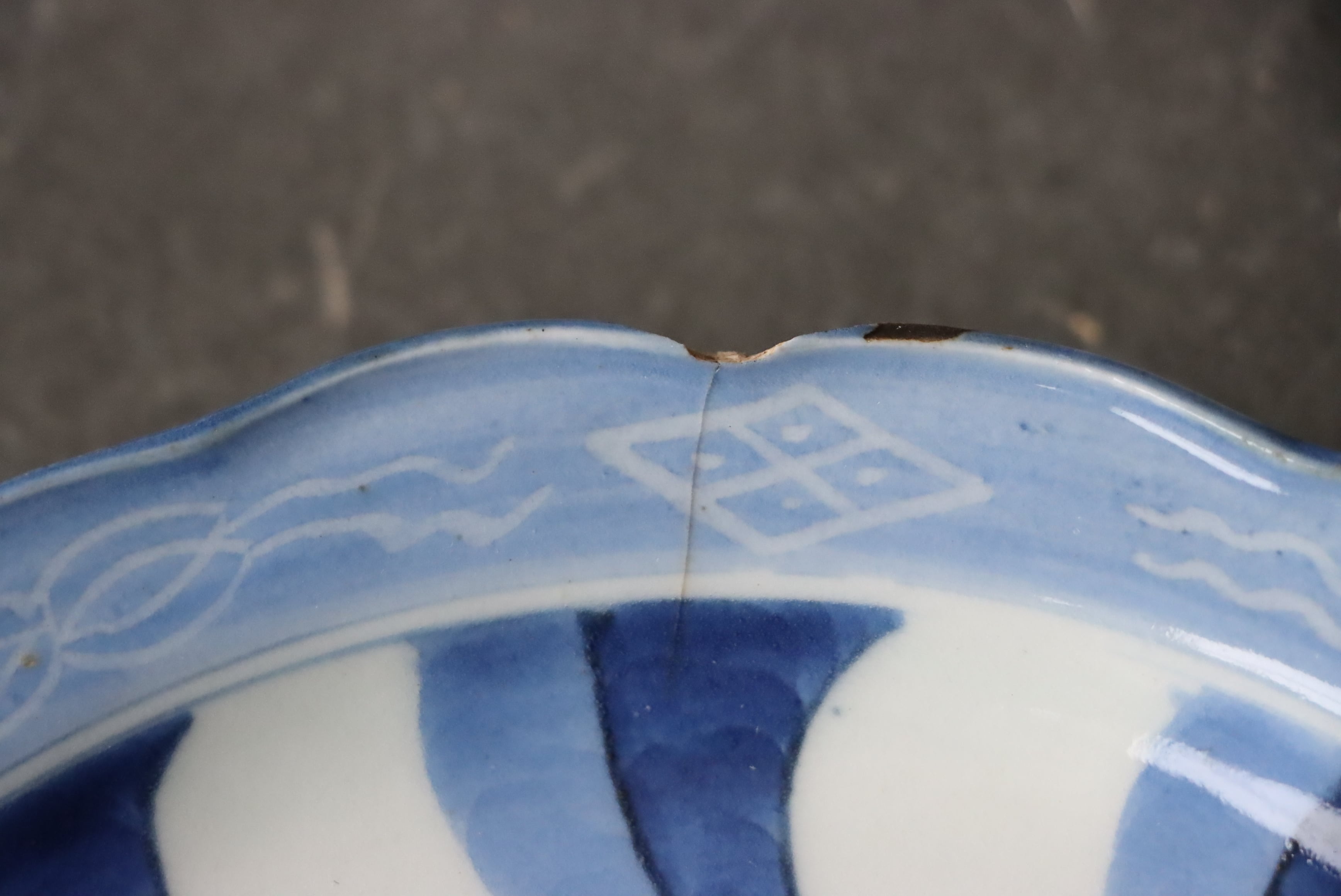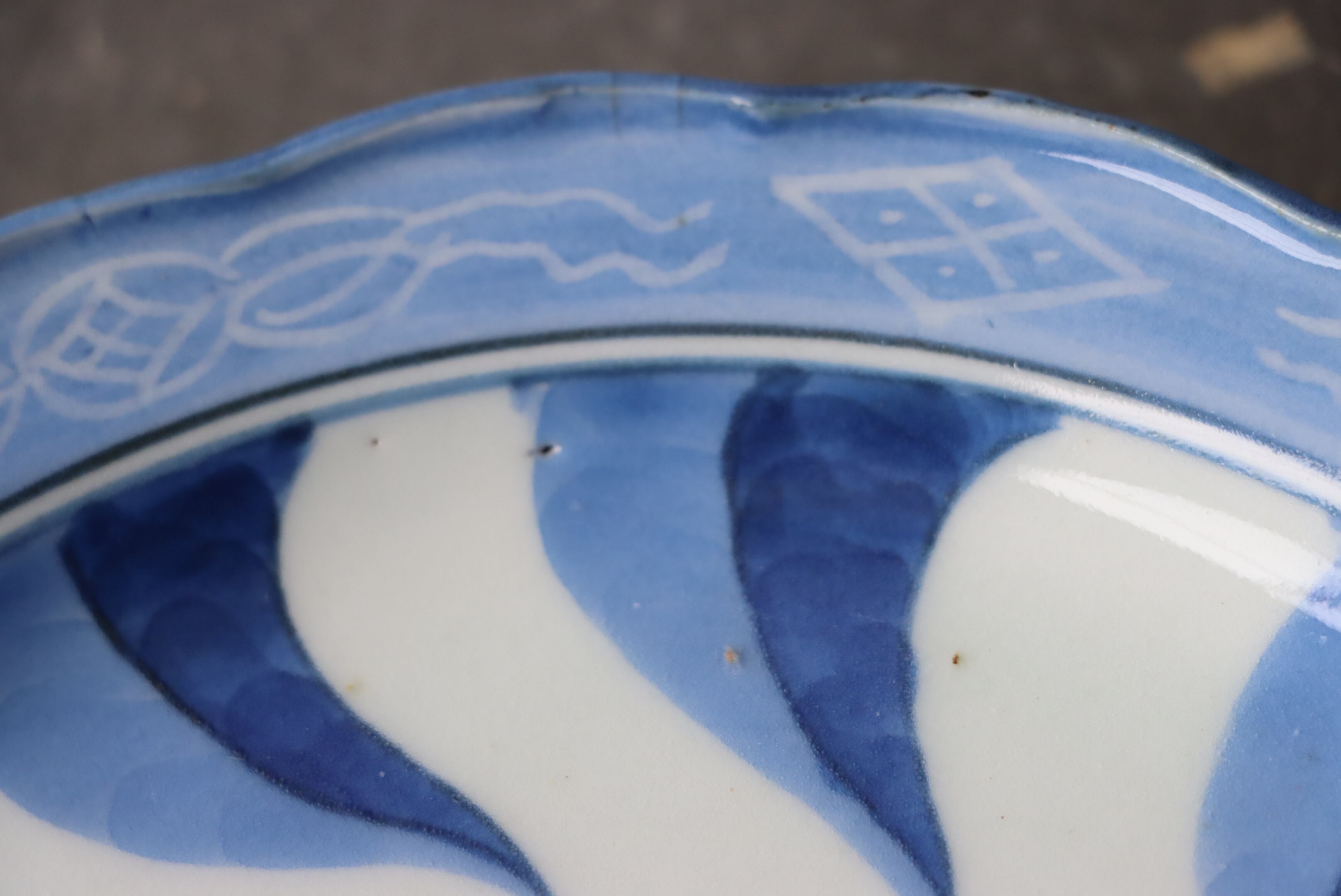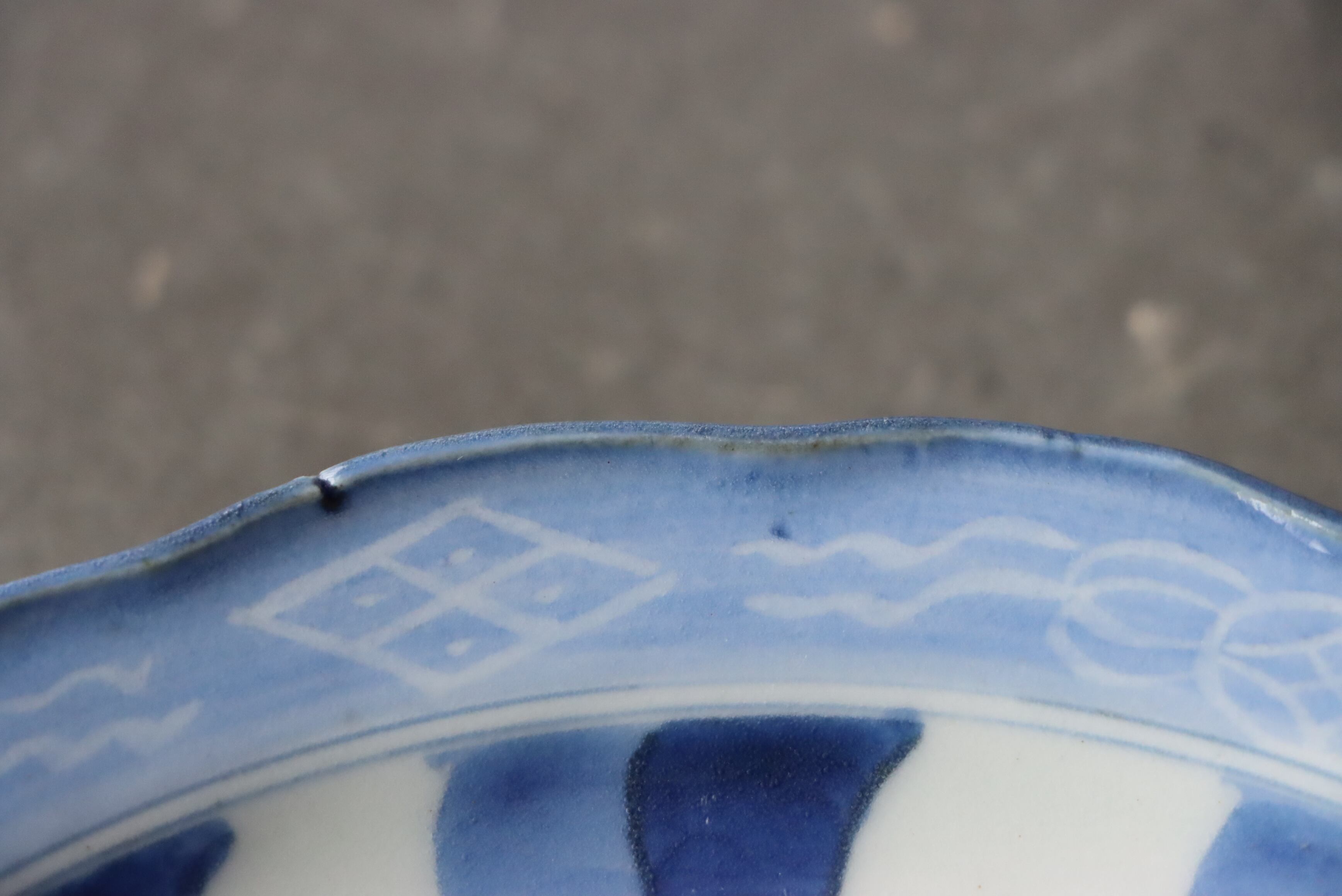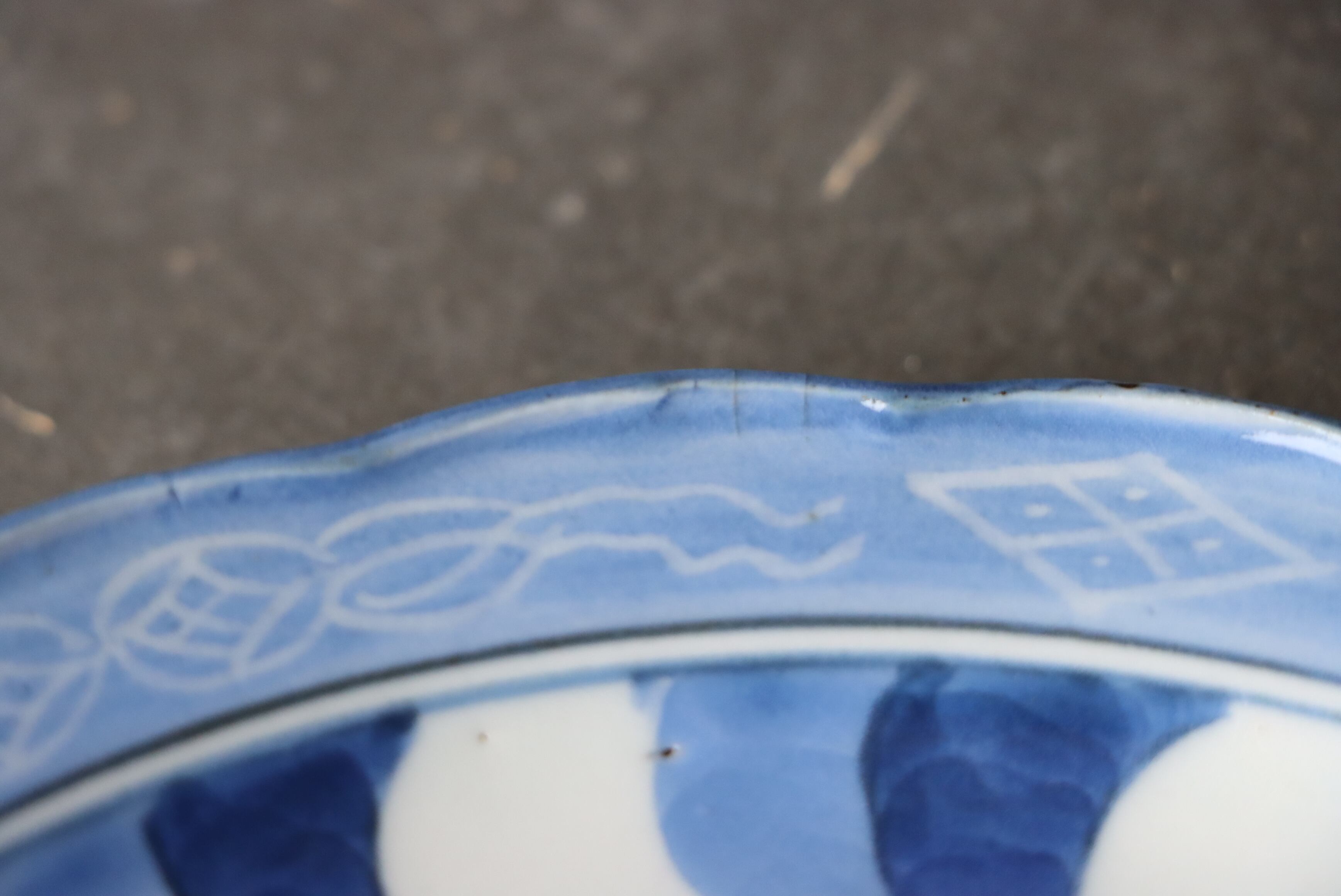 状態:カケ(約2センチ)、カケと同じ箇所からニュウ×2(約2.5センチ、約1センチ)あり。その他、小さなニュウ×2(約0.5センチ、約0.2センチ)あり。カケ、ニュウに時代色が入っています。また、焼く段階でできる鉄分(黒子のような点)がございます。
