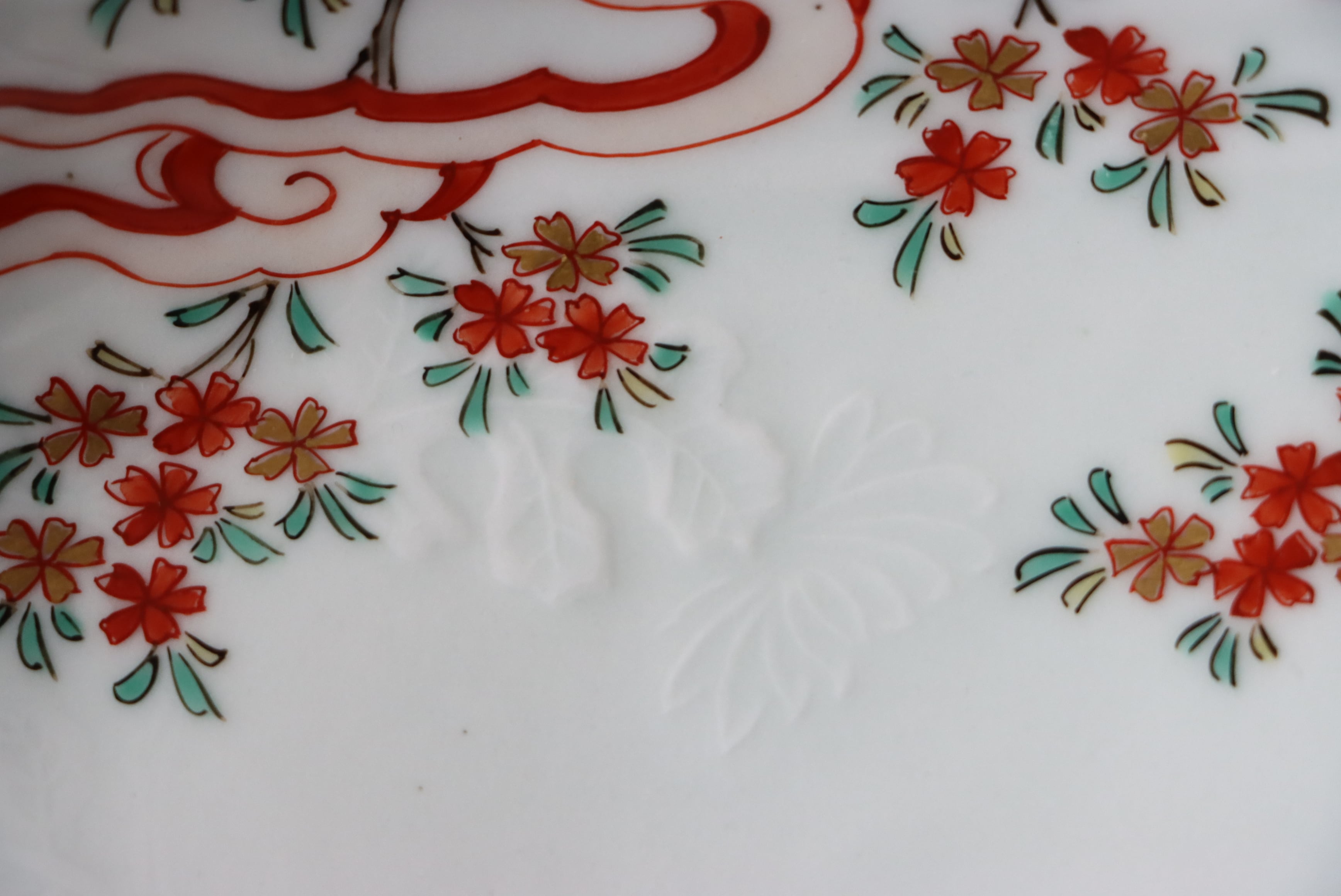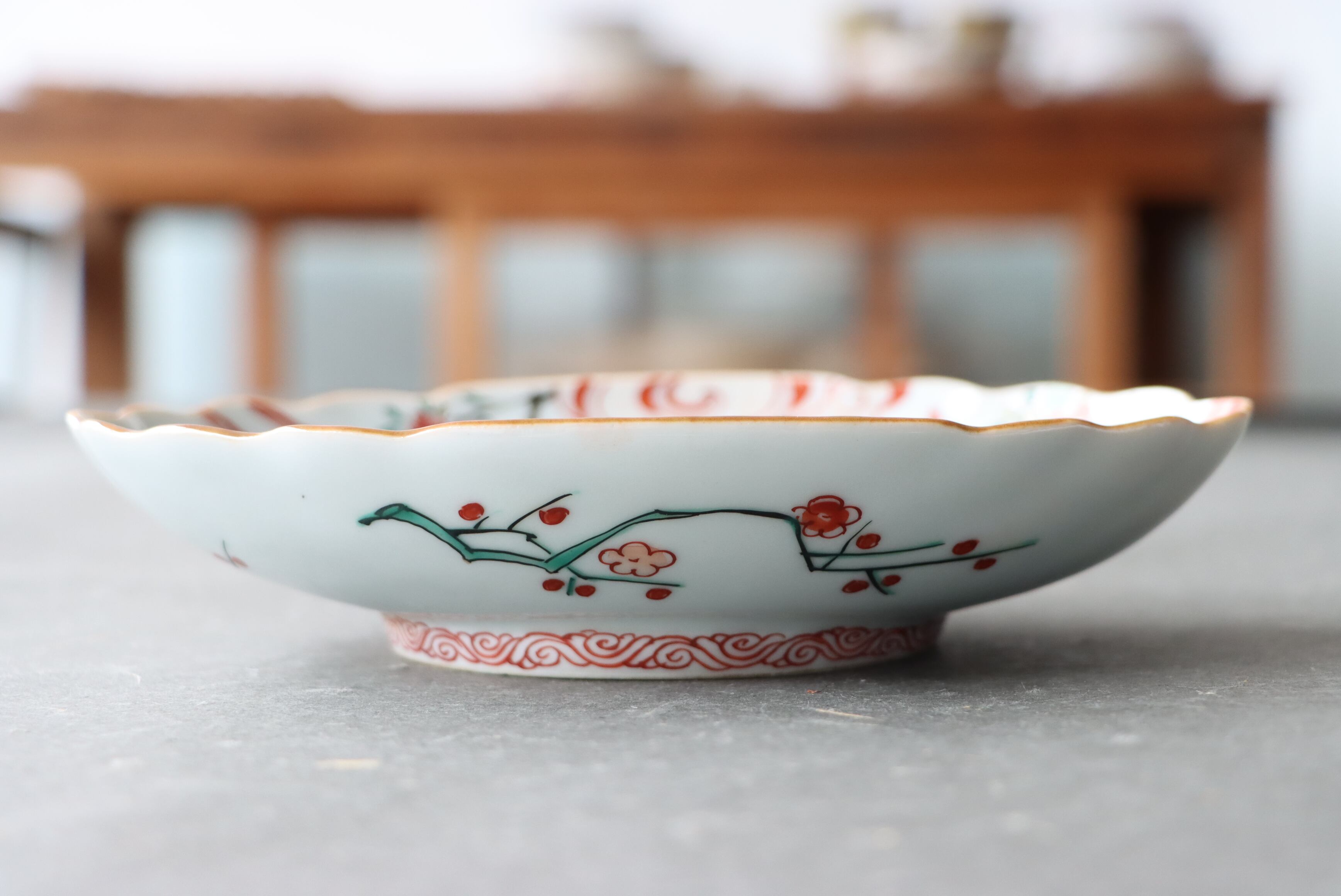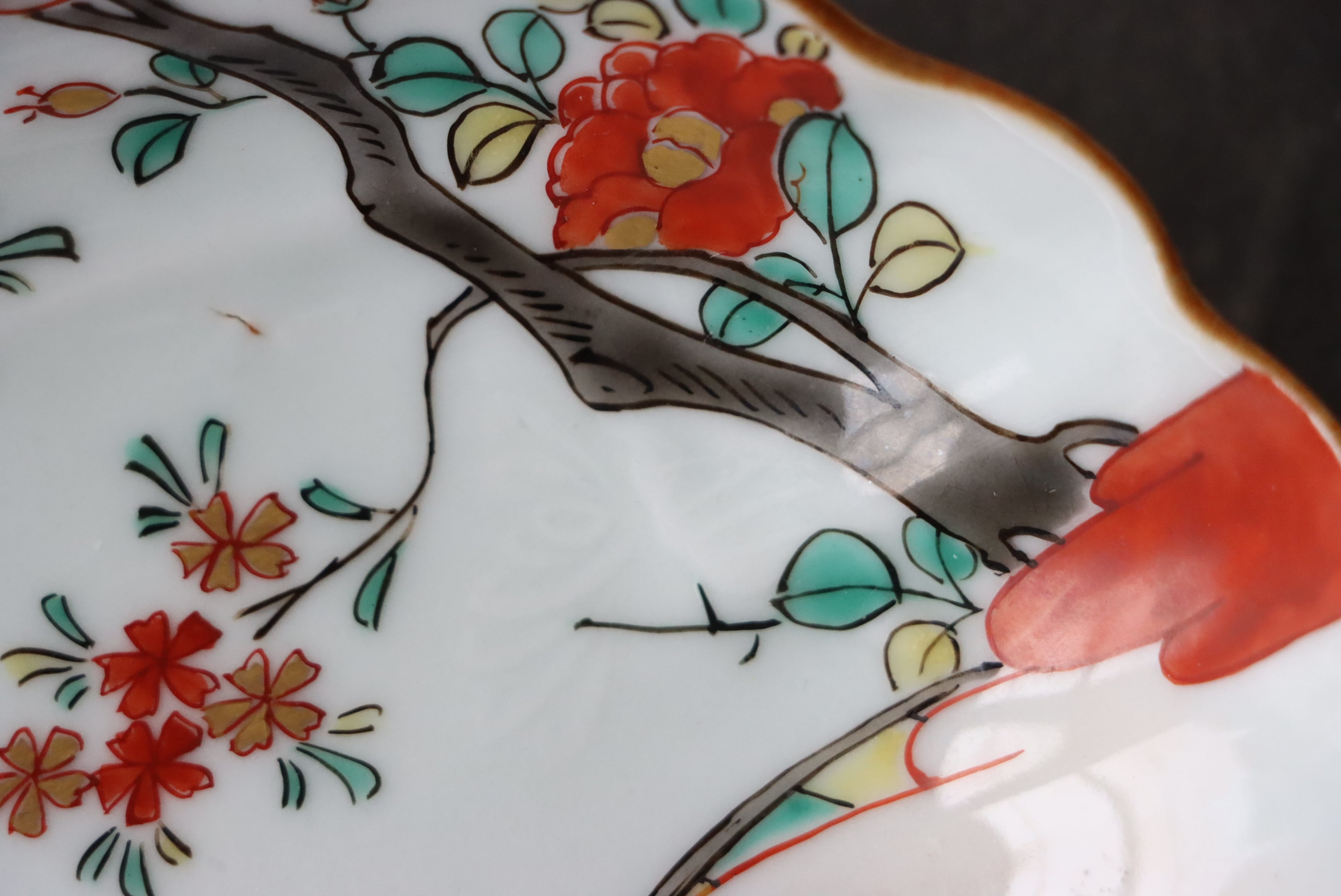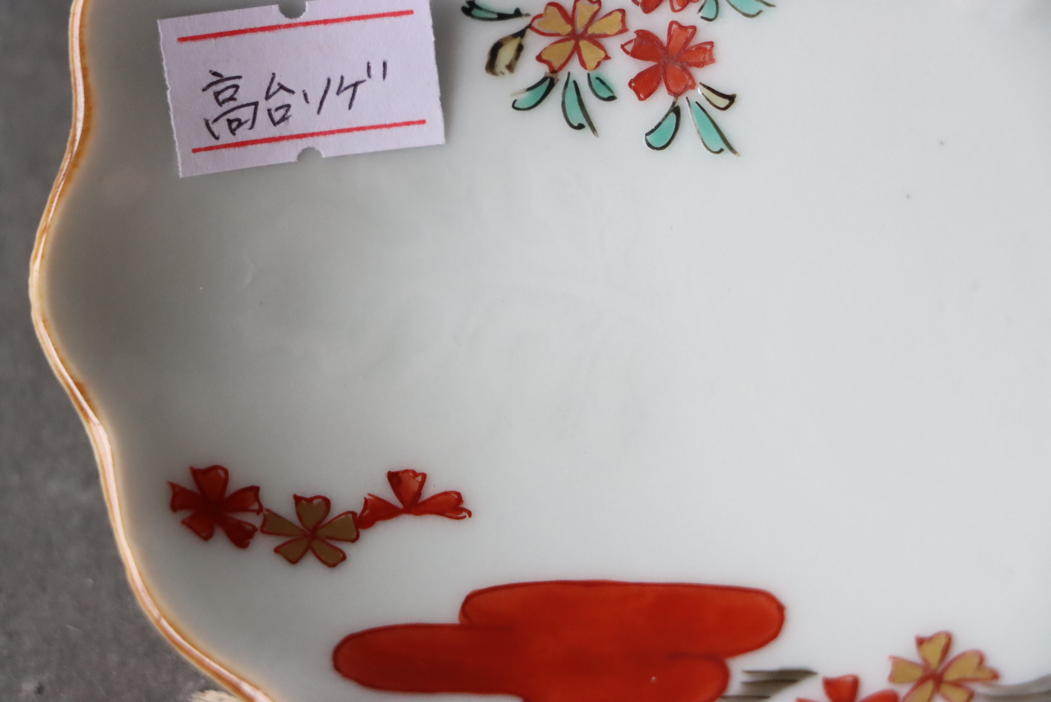 高台ソゲ 柿右衛門手 色絵 陽刻 雲花文 変形皿 A アウトレット