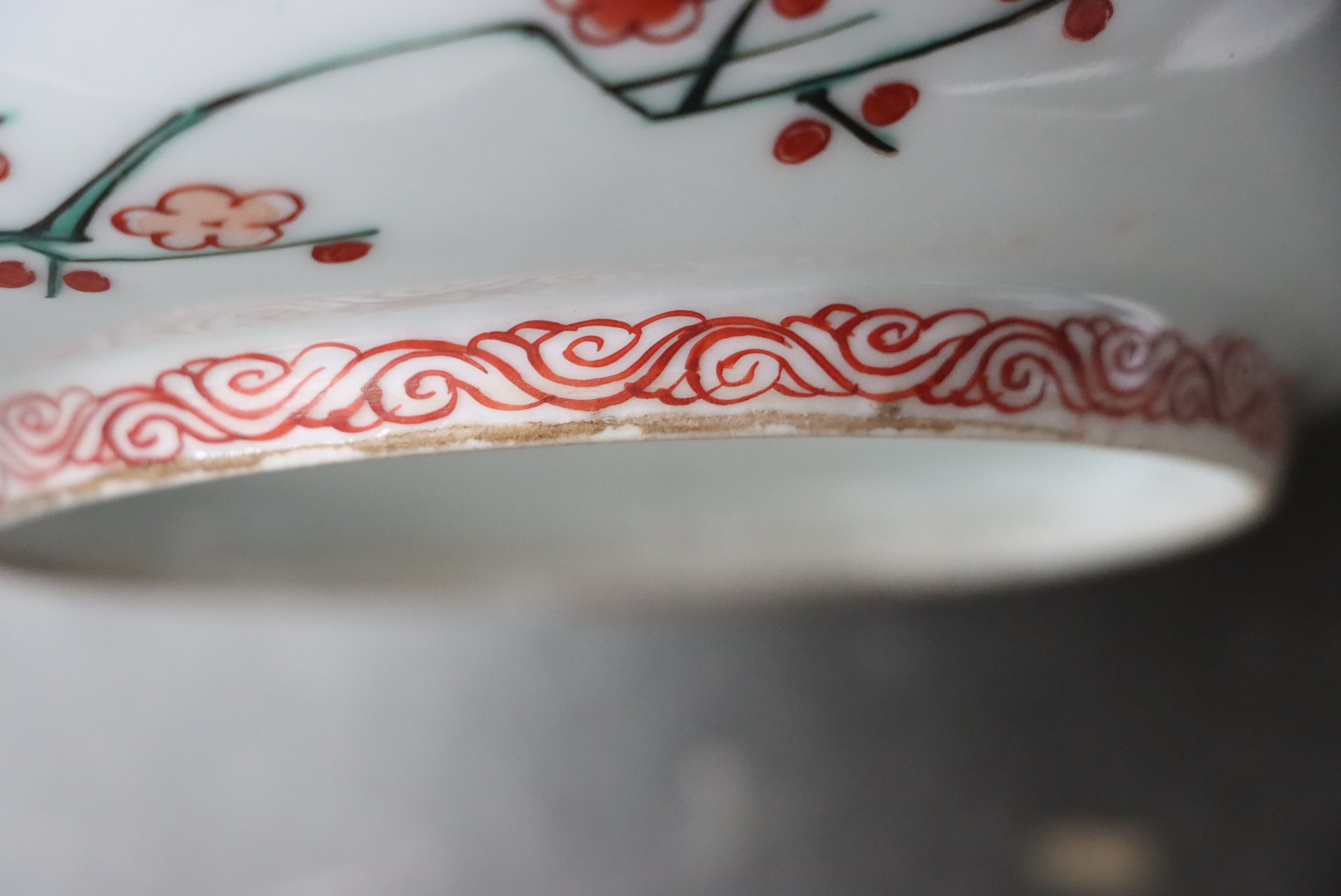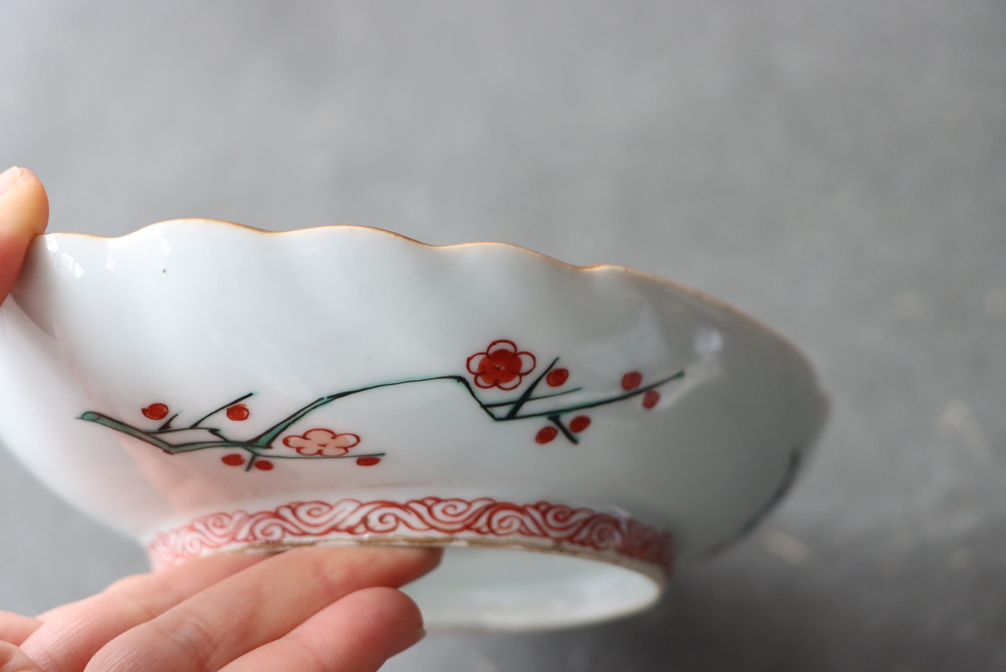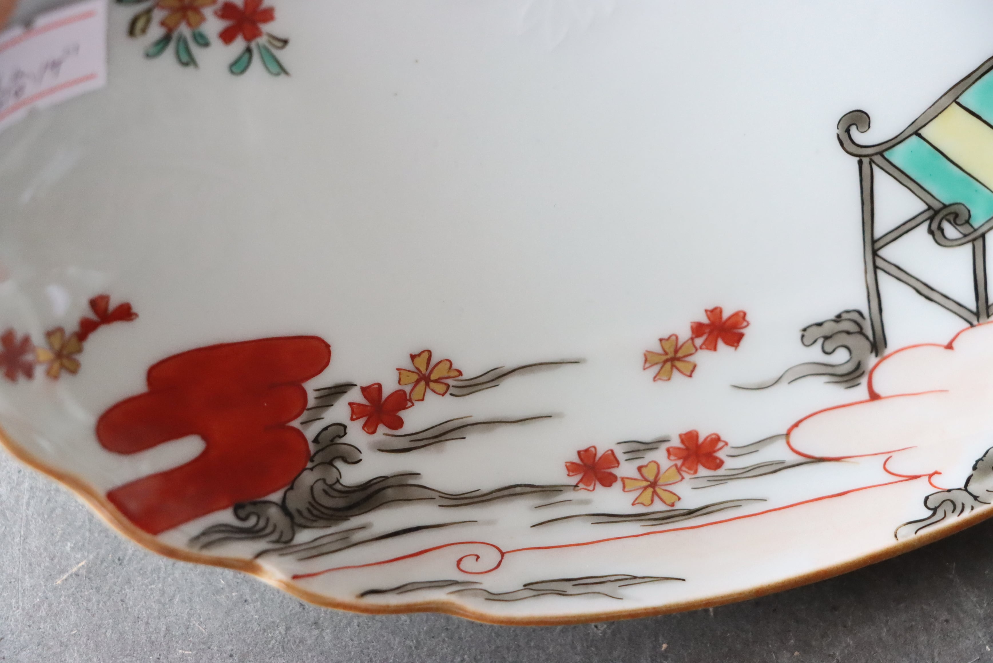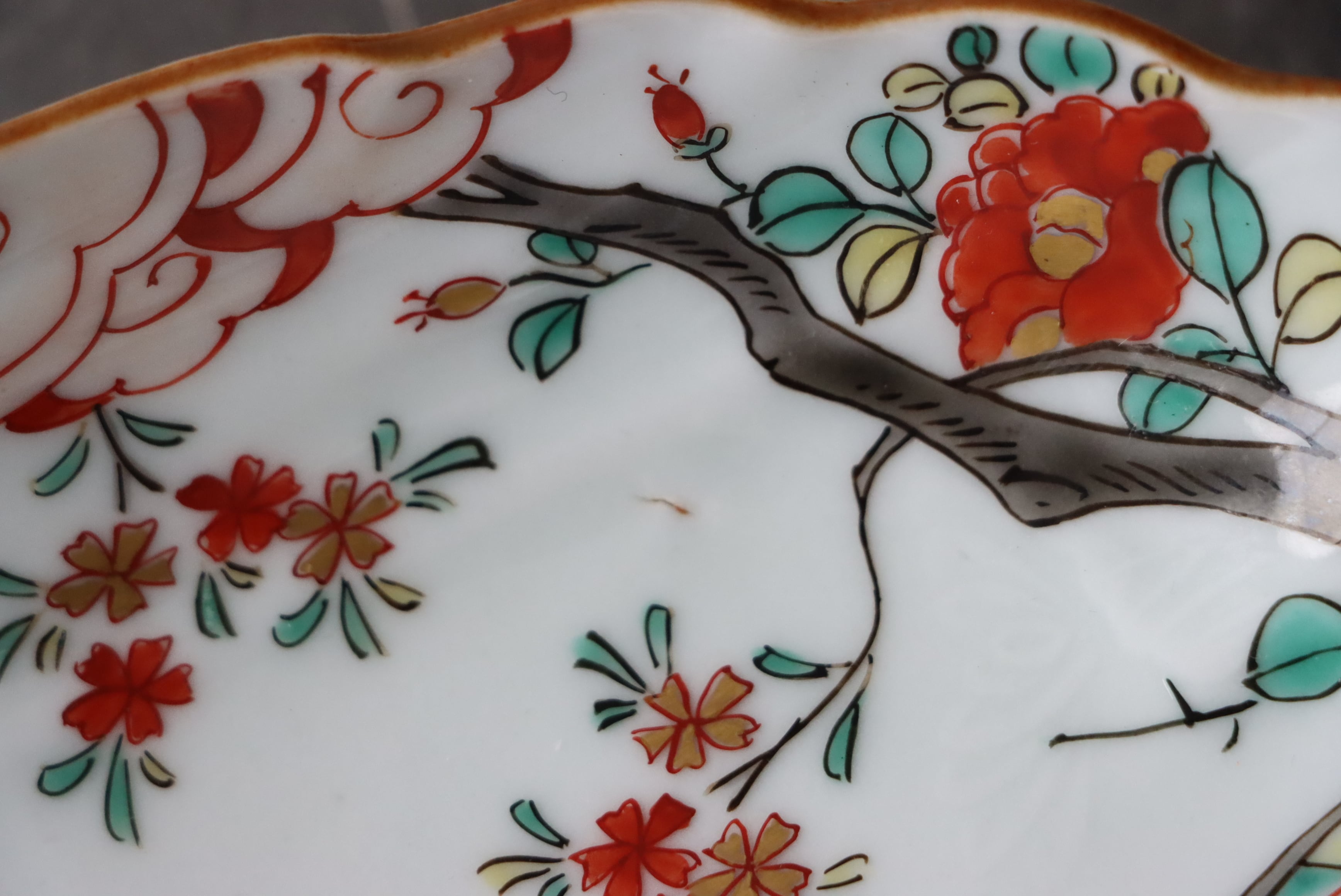 高台ソゲ 柿右衛門手 色絵 陽刻 雲花文 変形皿 A アウトレット