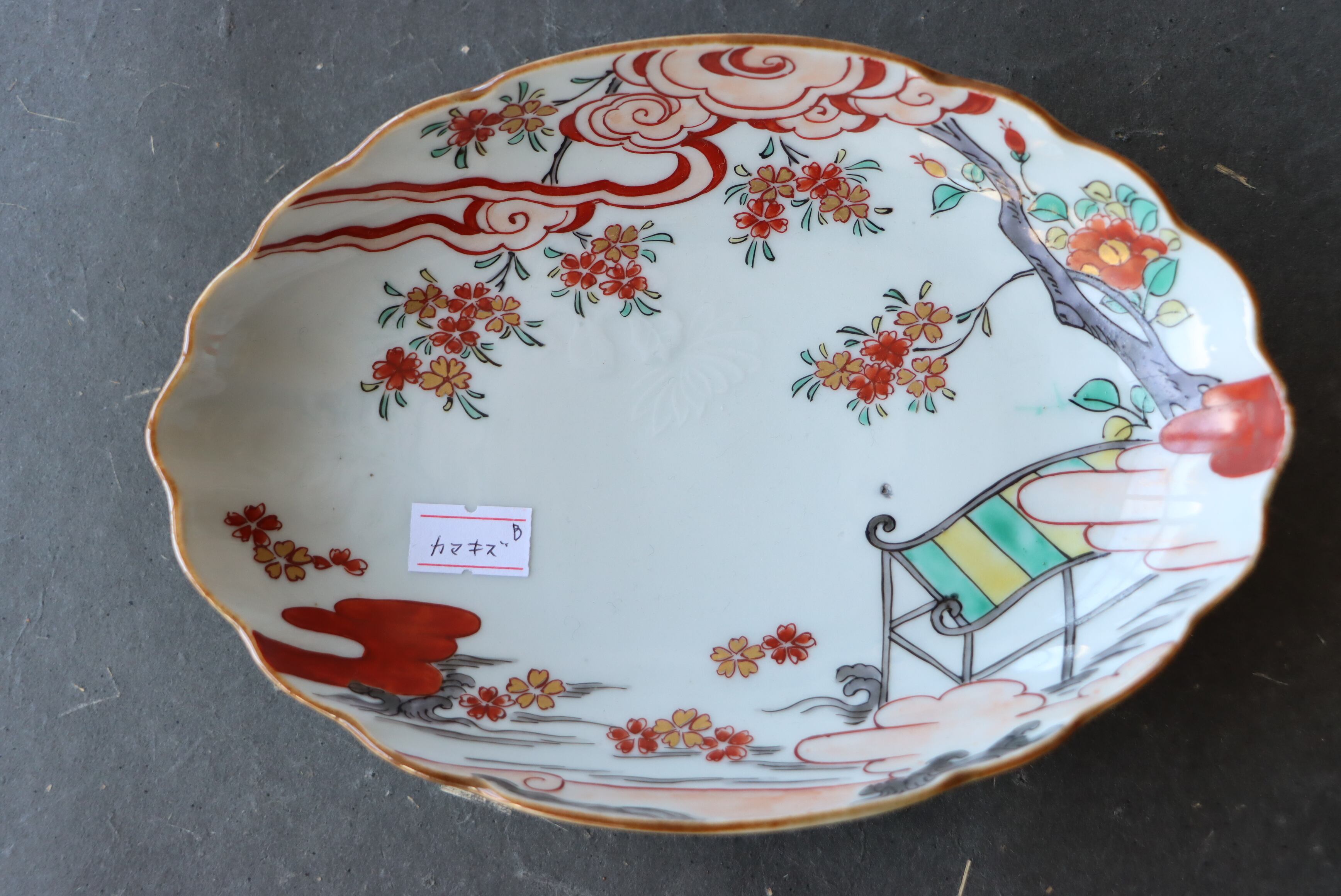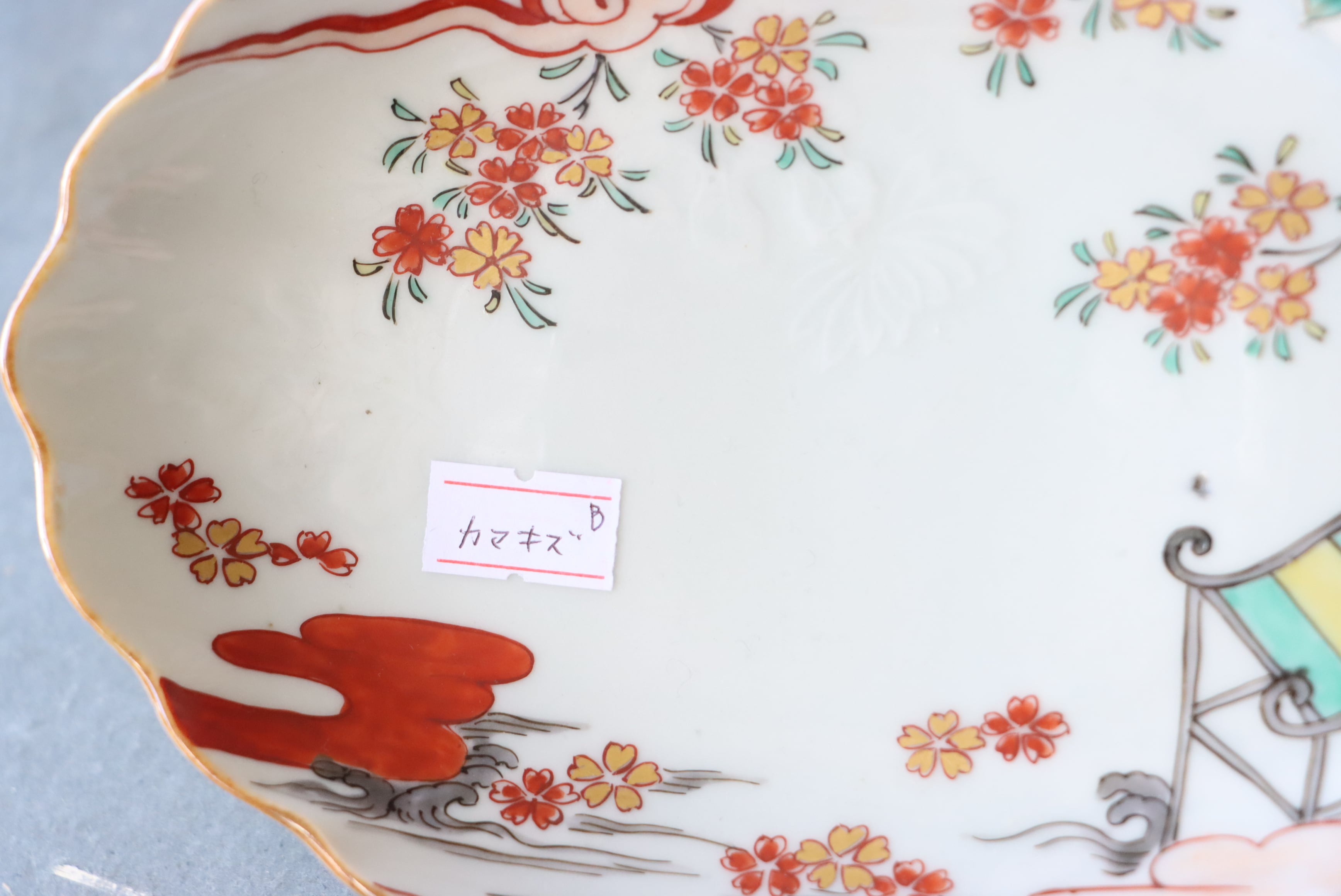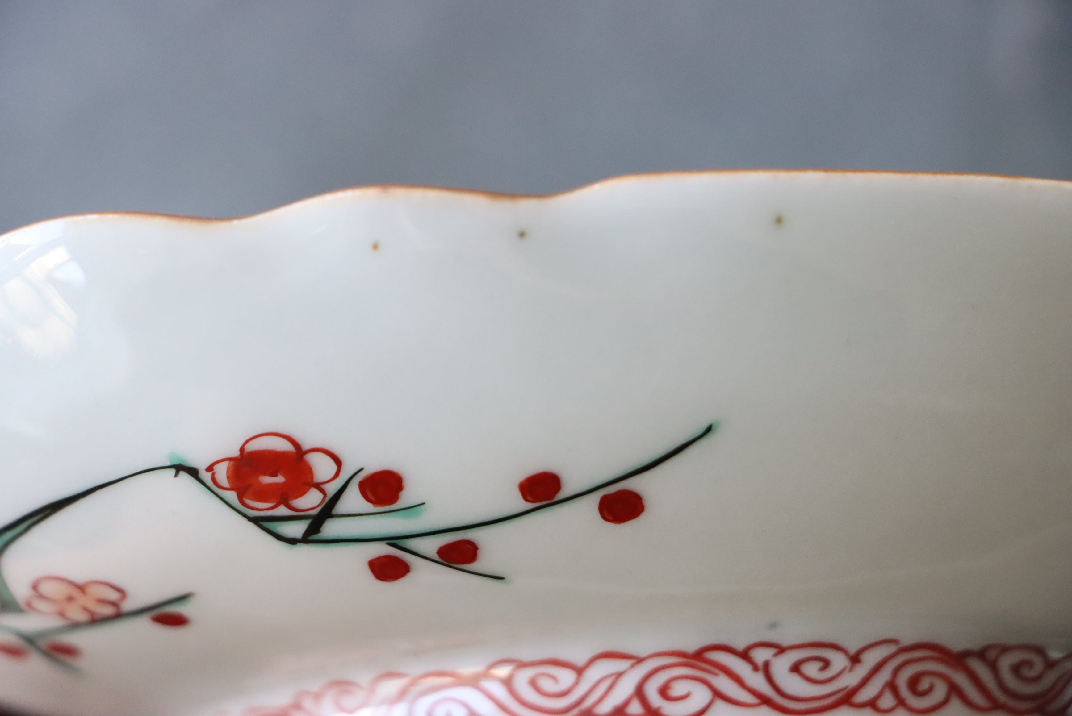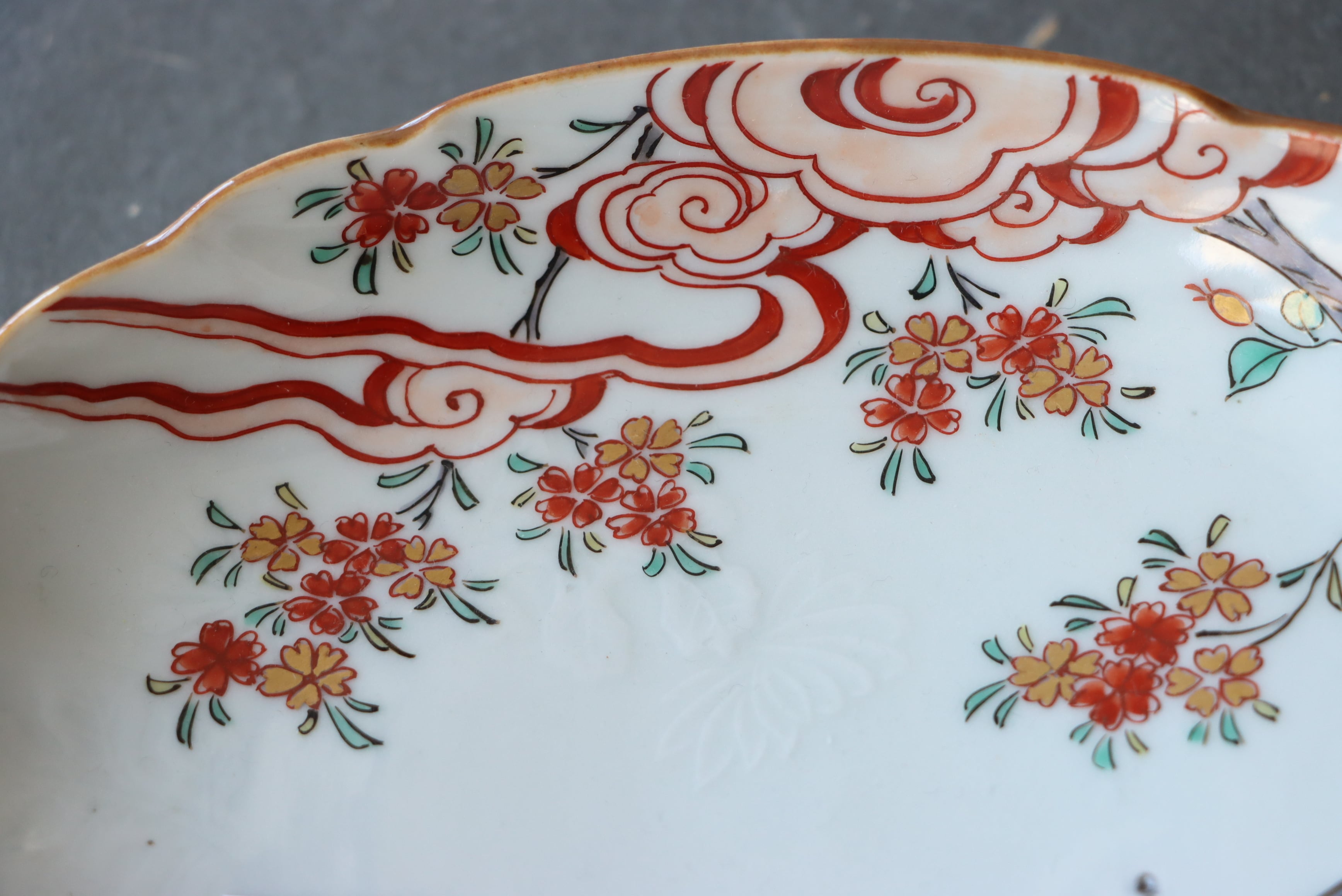 カマキズ 柿右衛門手 色絵 陽刻 雲花文 変形皿 B アウトレット