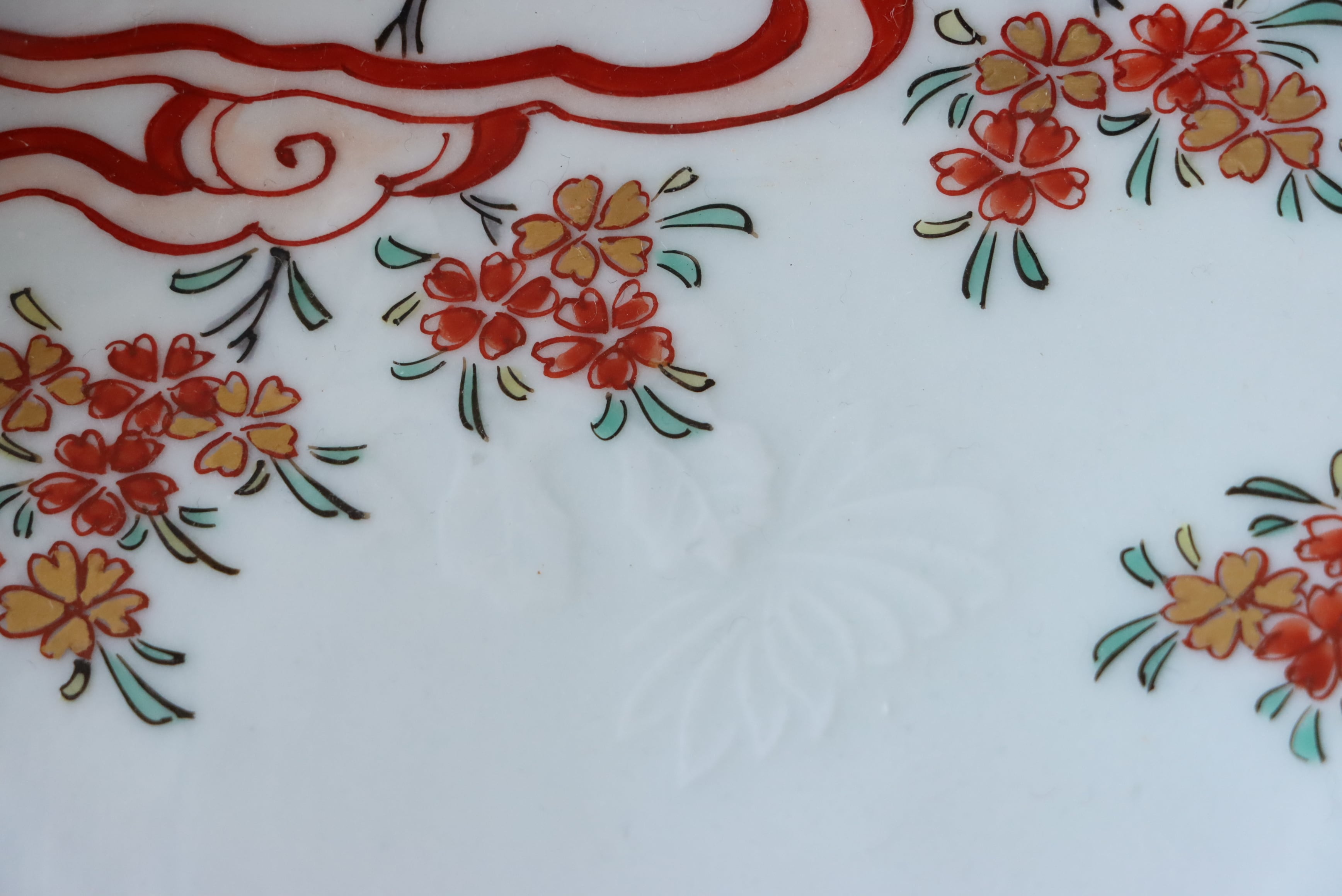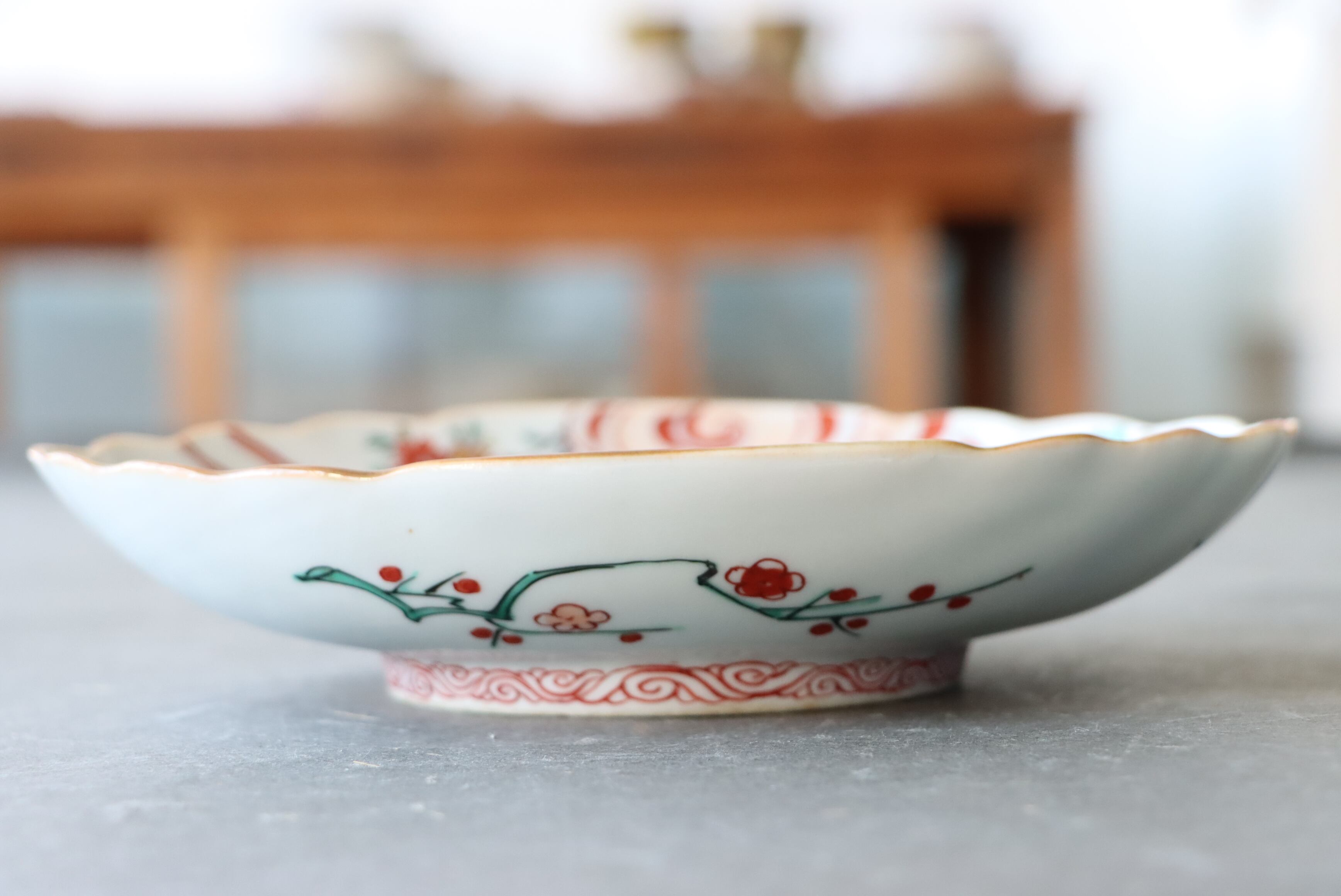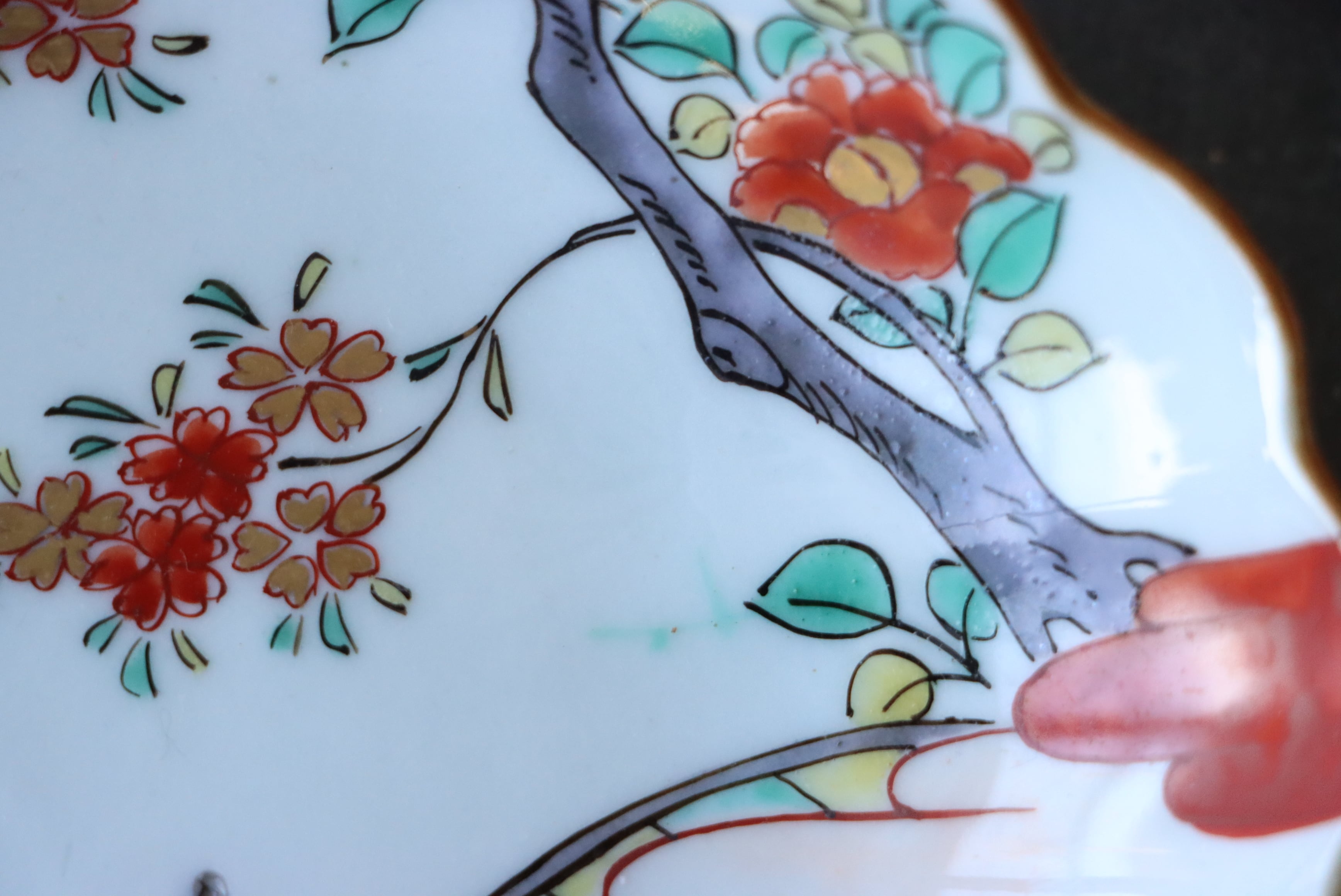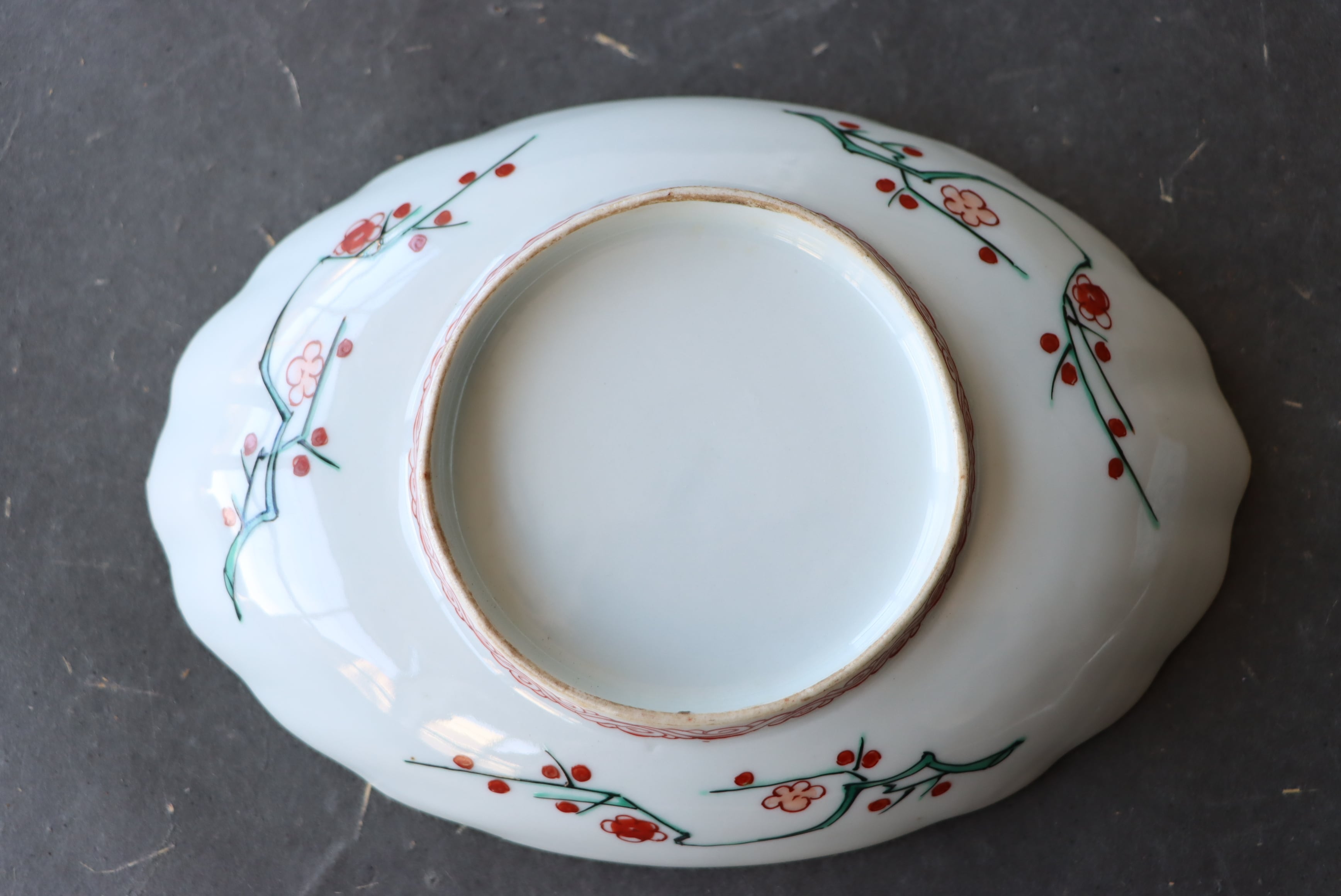 カマキズ 柿右衛門手 色絵 陽刻 雲花文 変形皿 B アウトレット