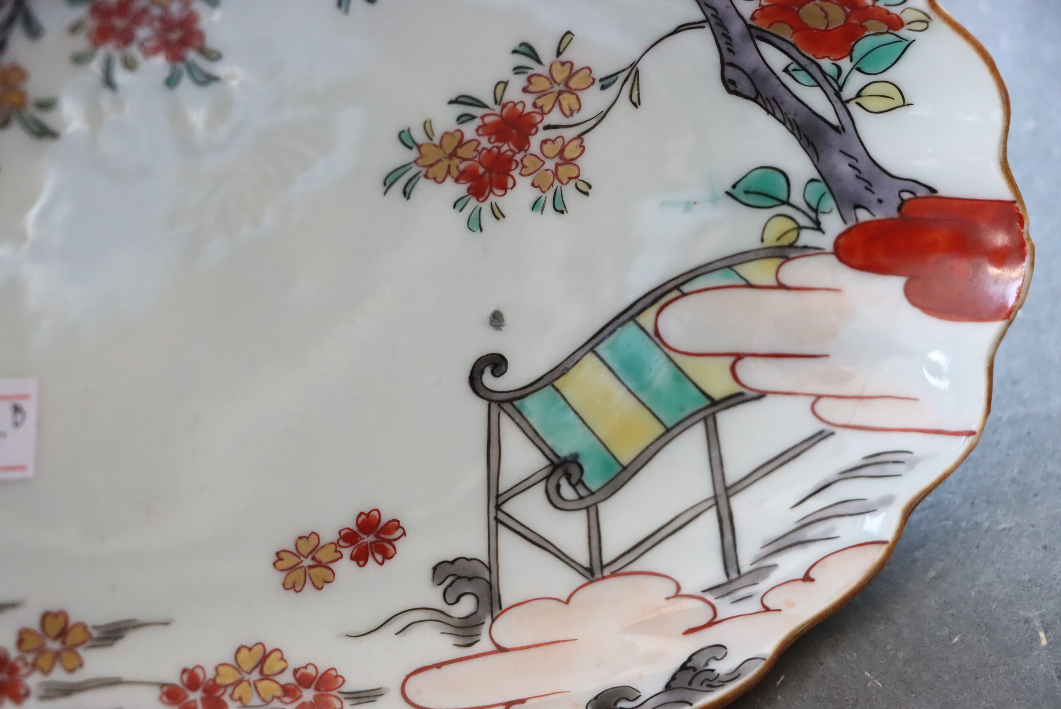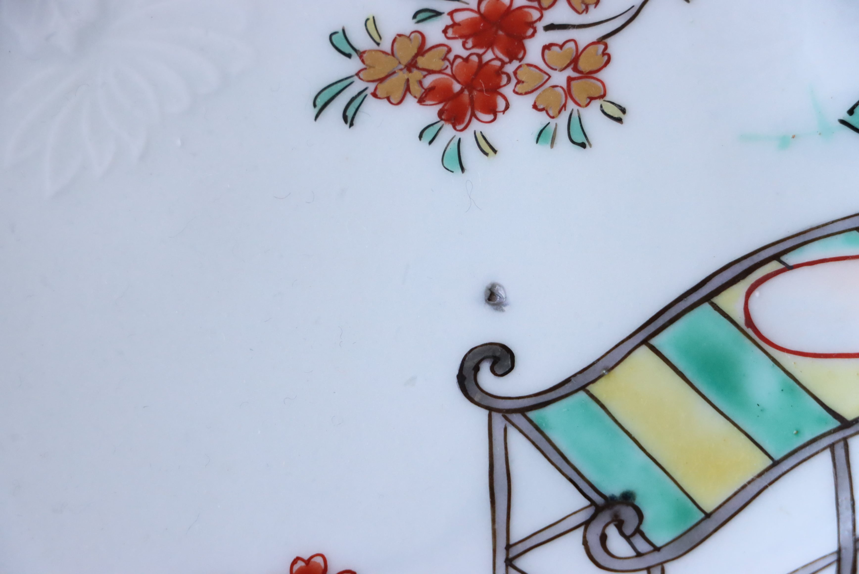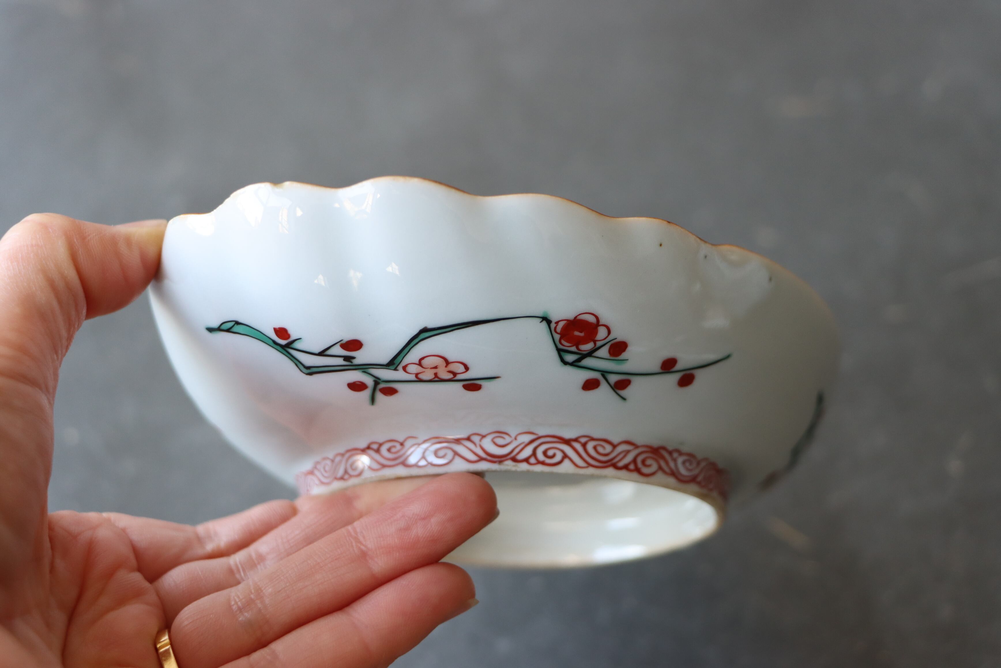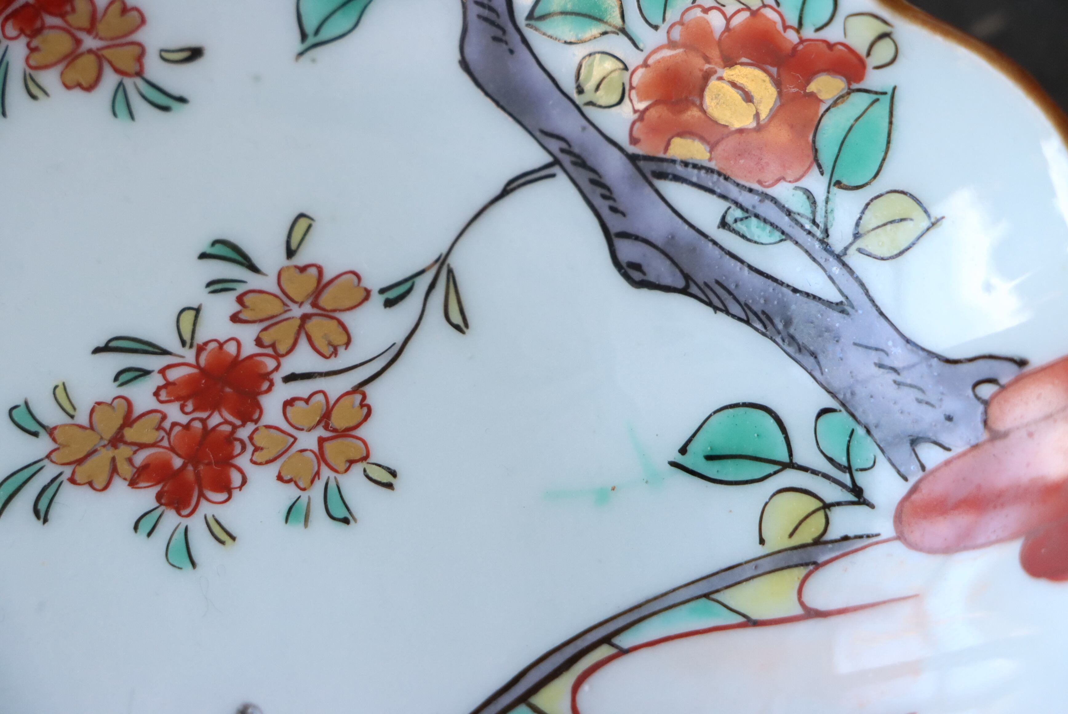 カマキズ 柿右衛門手 色絵 陽刻 雲花文 変形皿 B アウトレット