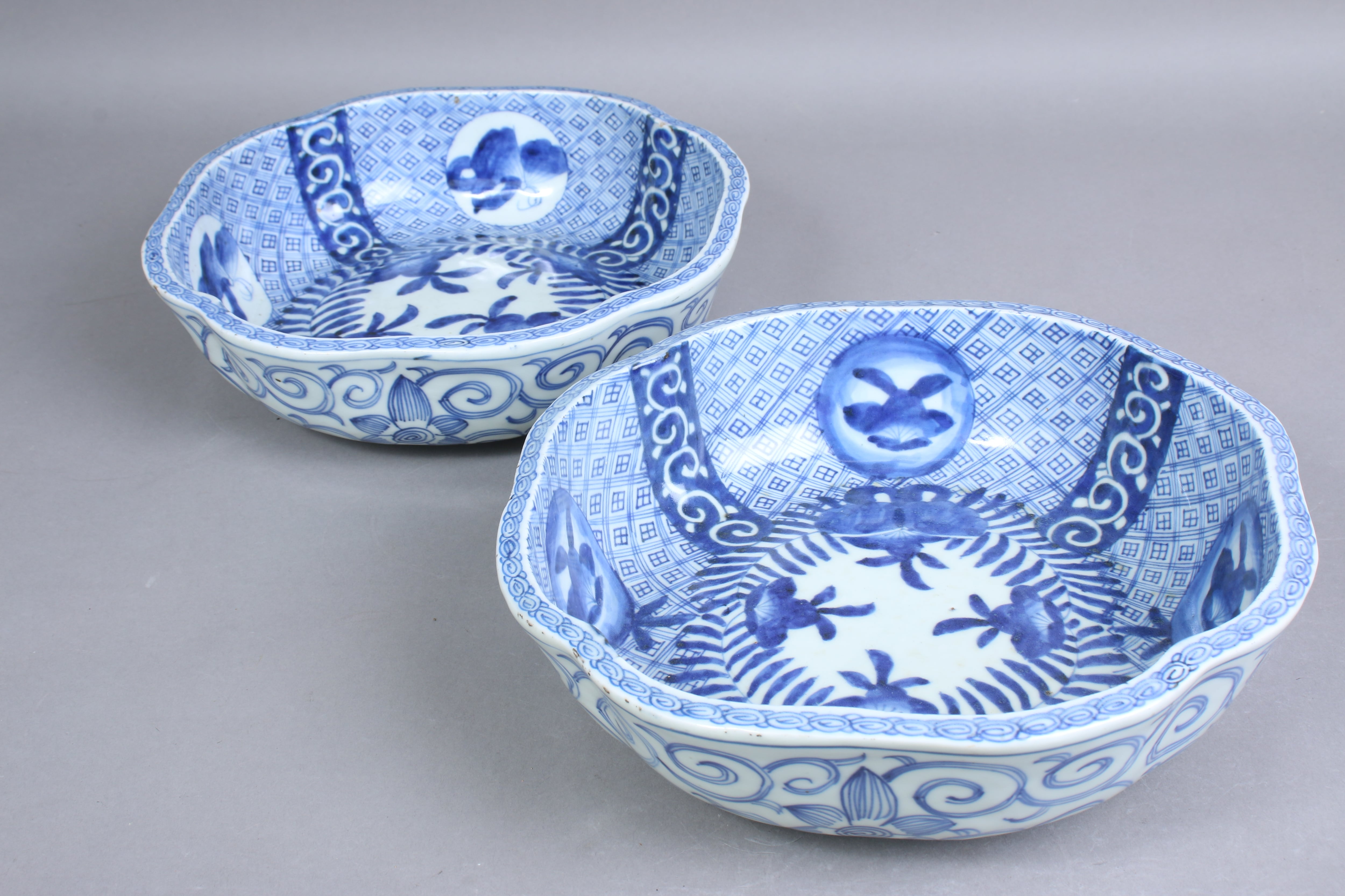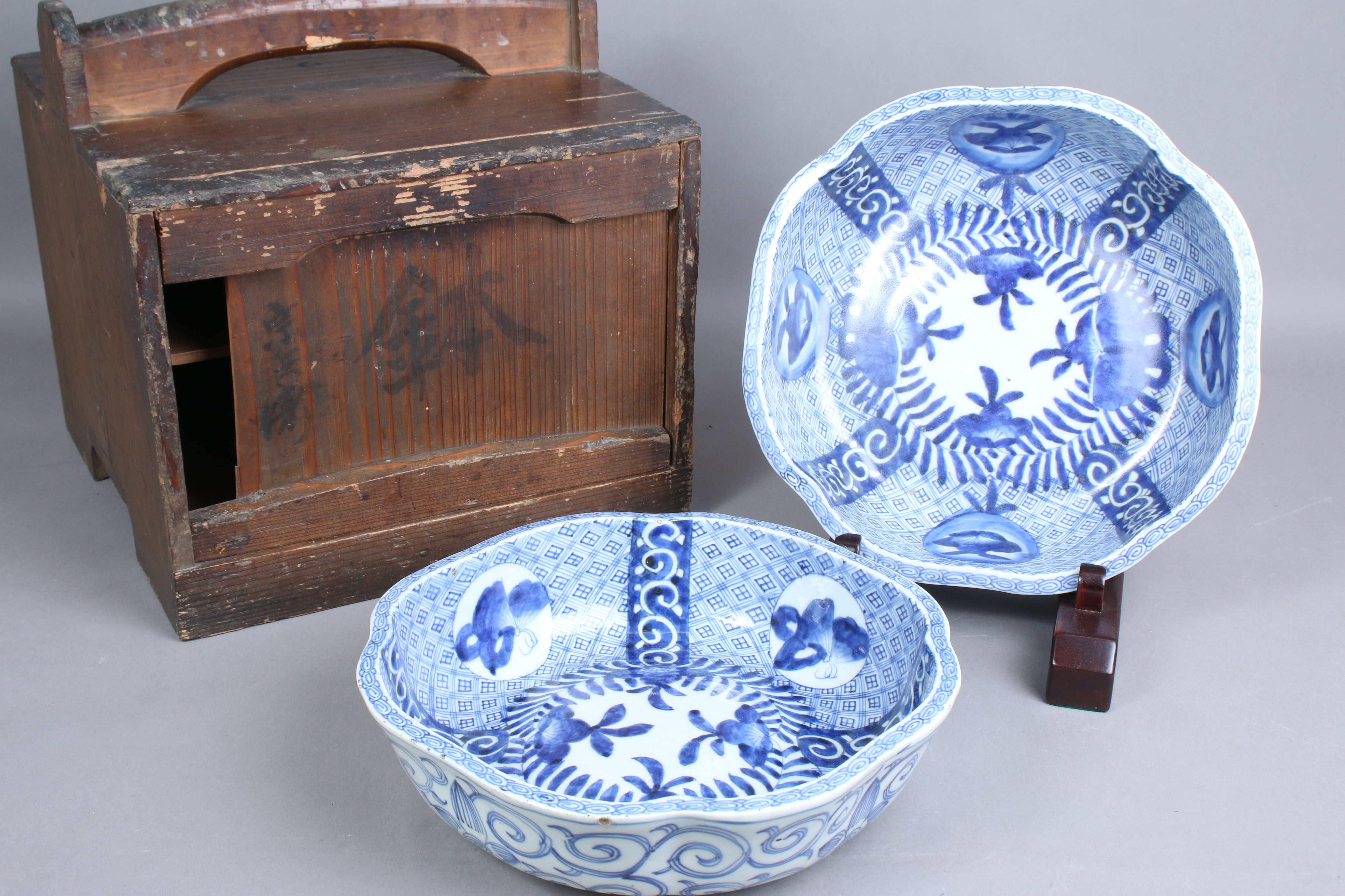 フチソゲ 伊万里焼 染付 花唐草文 二客組 鉢 共箱