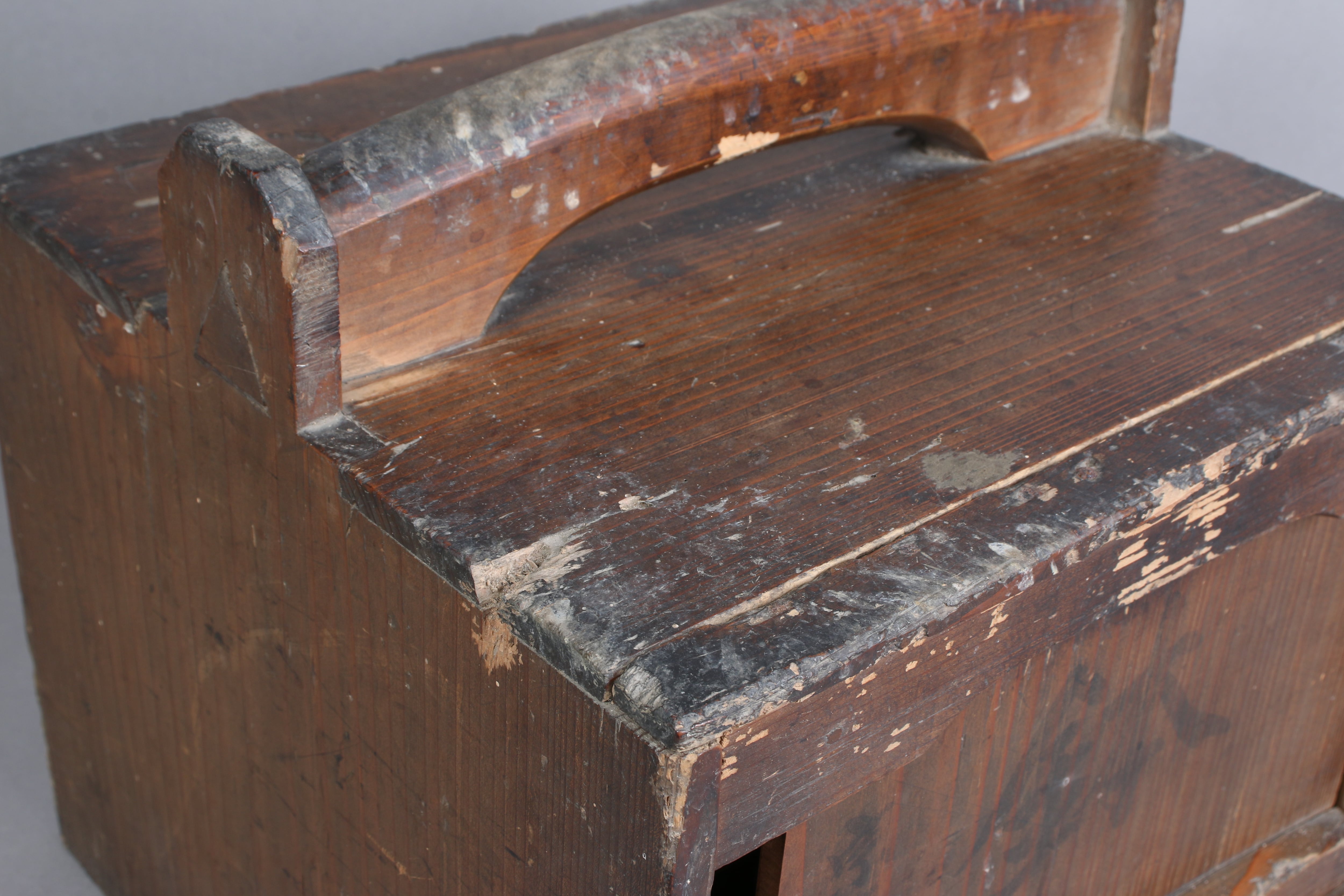 共箱の蓋の一部に破損がございます。そのため、1枚目の写真のとおり、蓋を閉めた状態でも隙間が生じております。また、箱の上部にも破損があり欠けている箇所がございます。