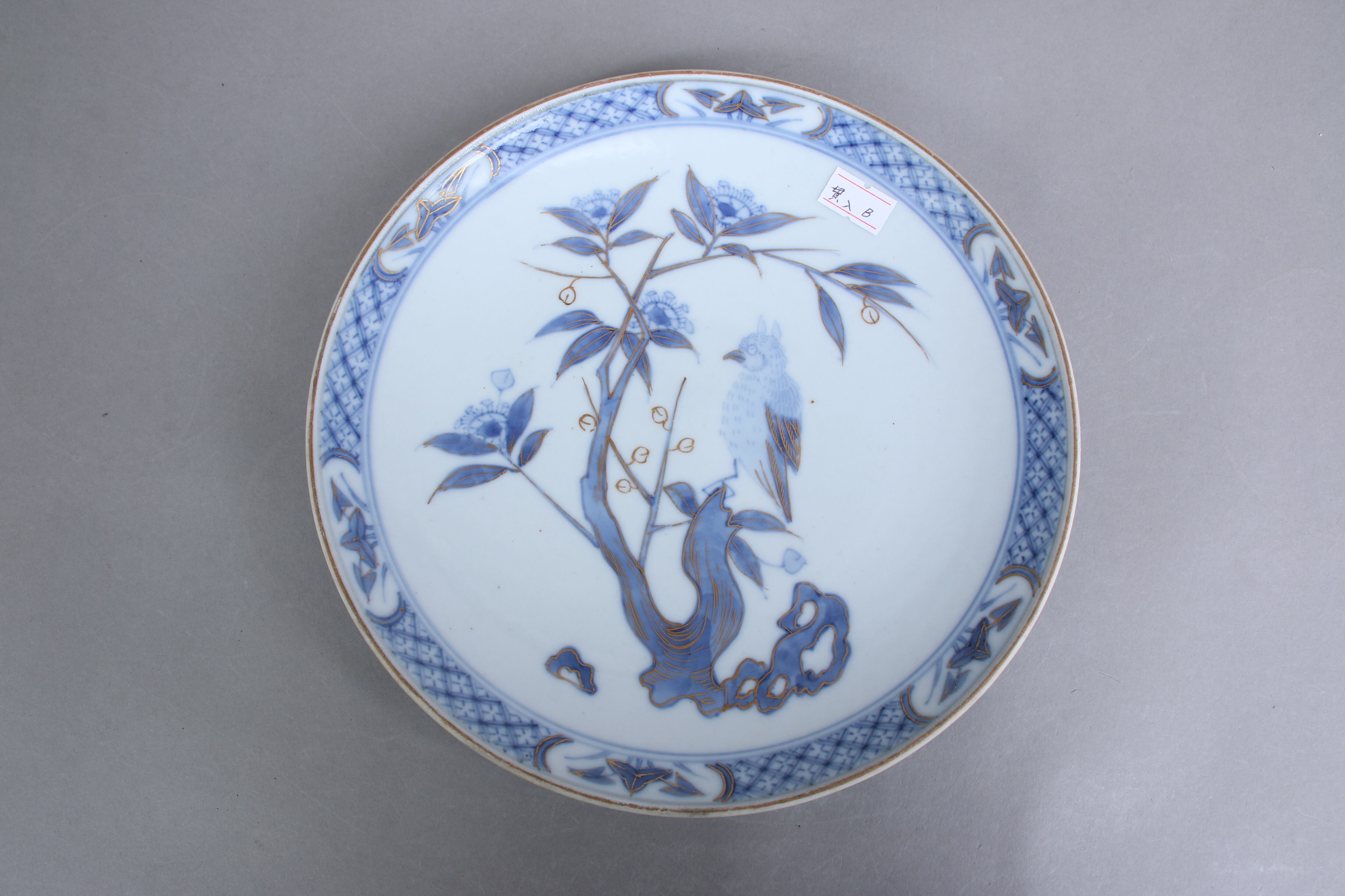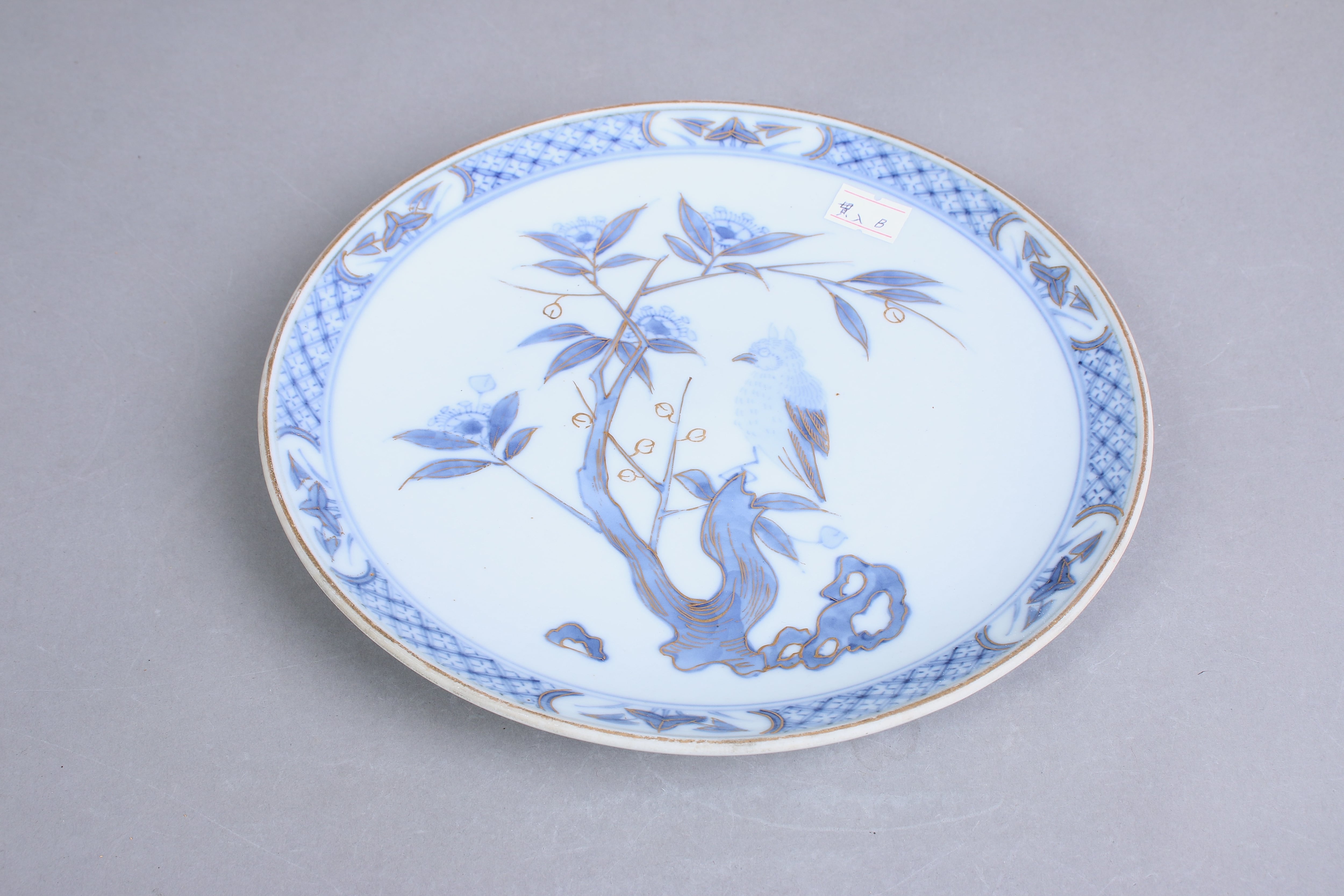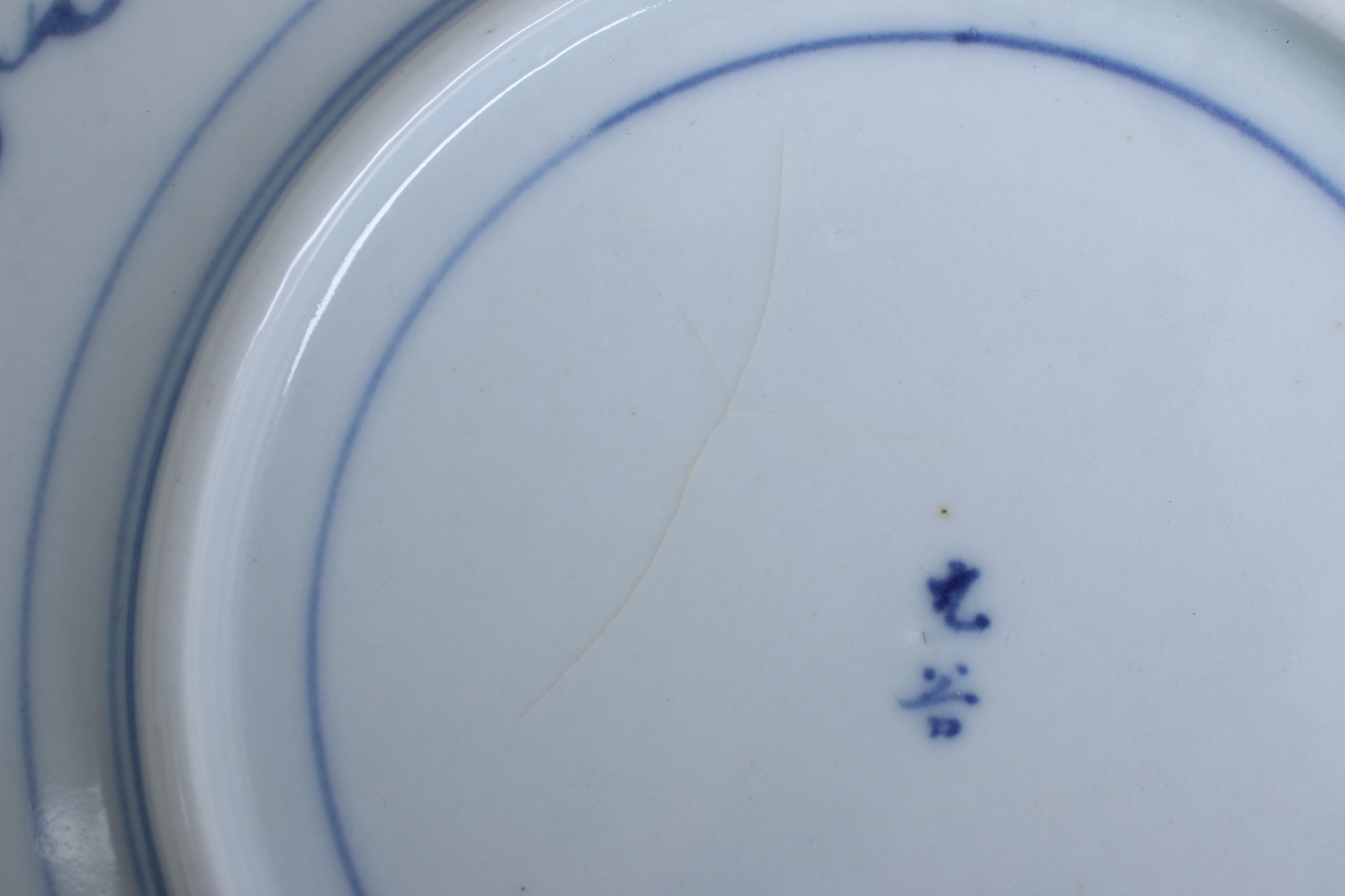 貫入B 九谷焼 染付 ふくろう文 中皿 七寸 アウトレット