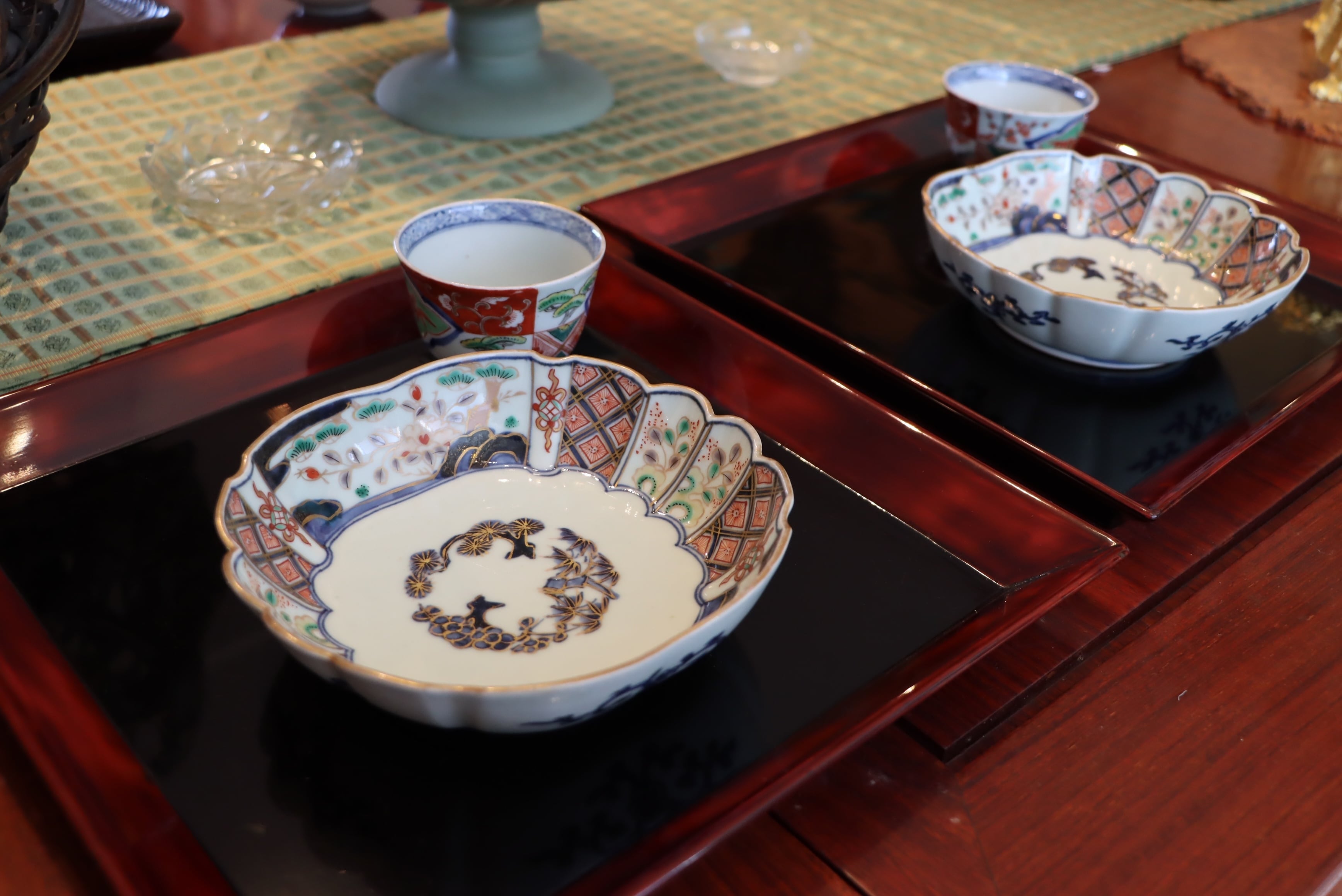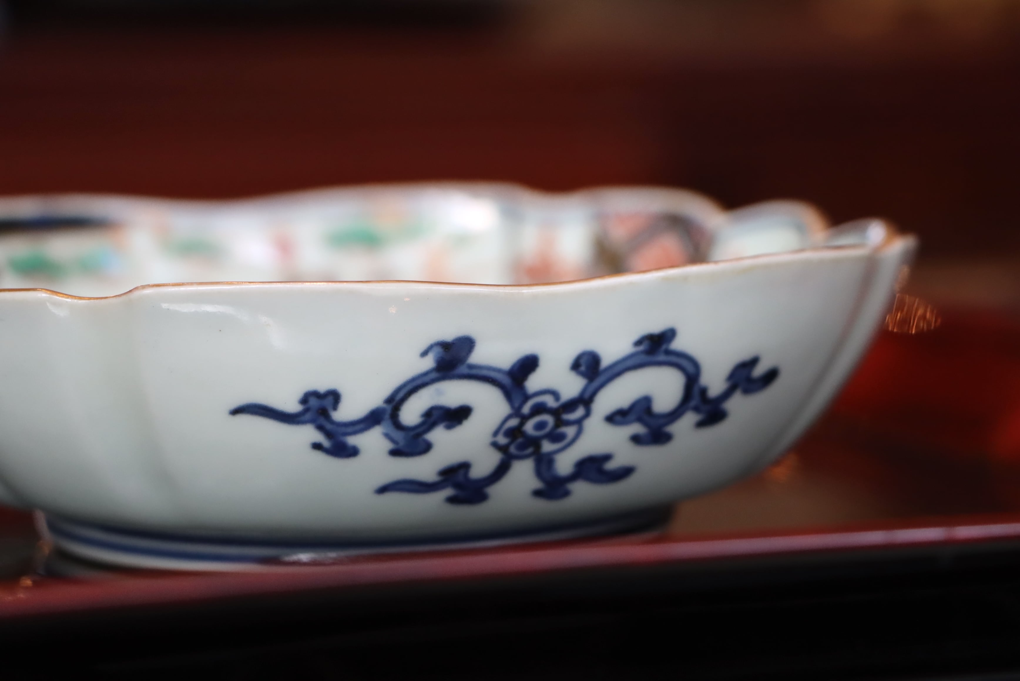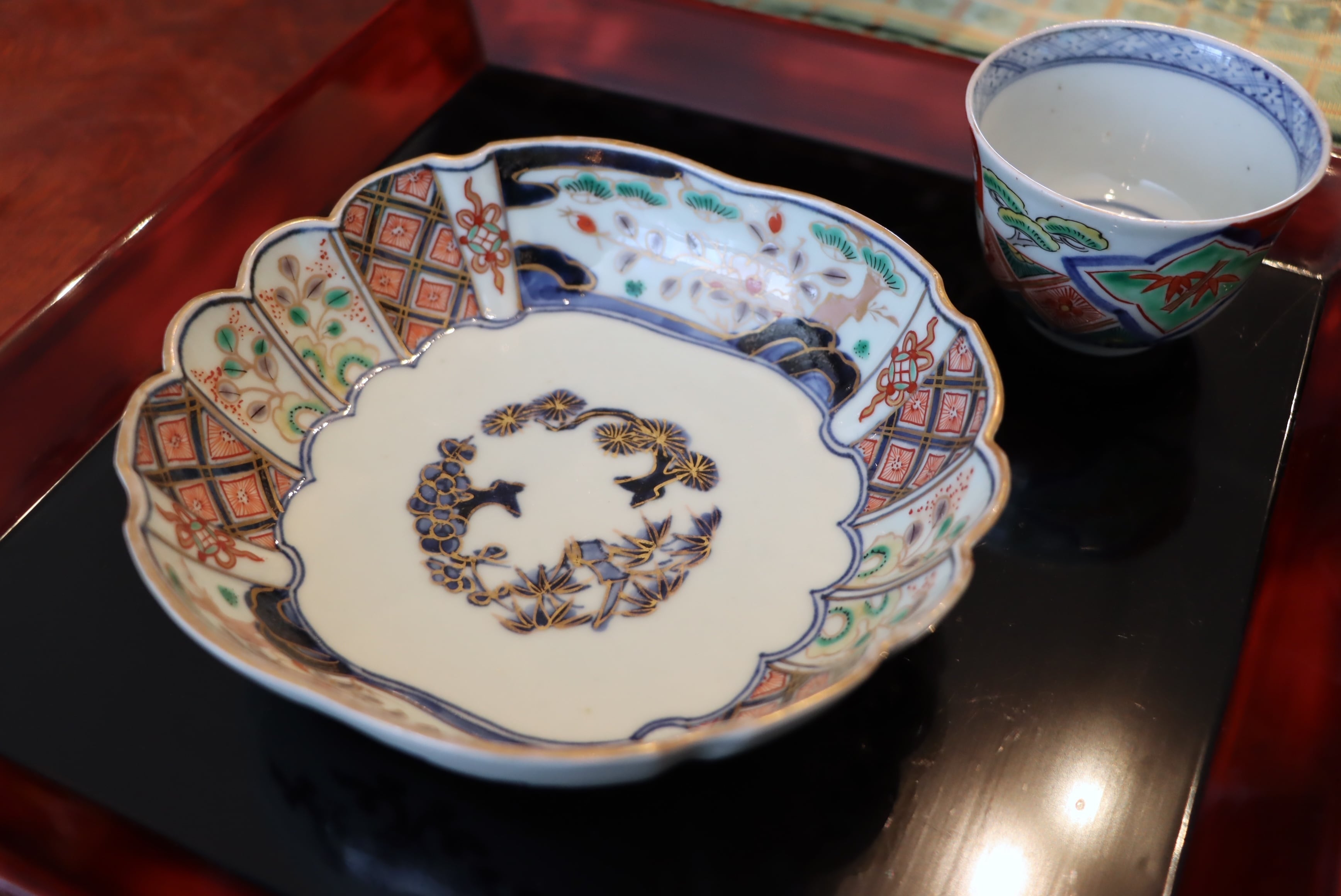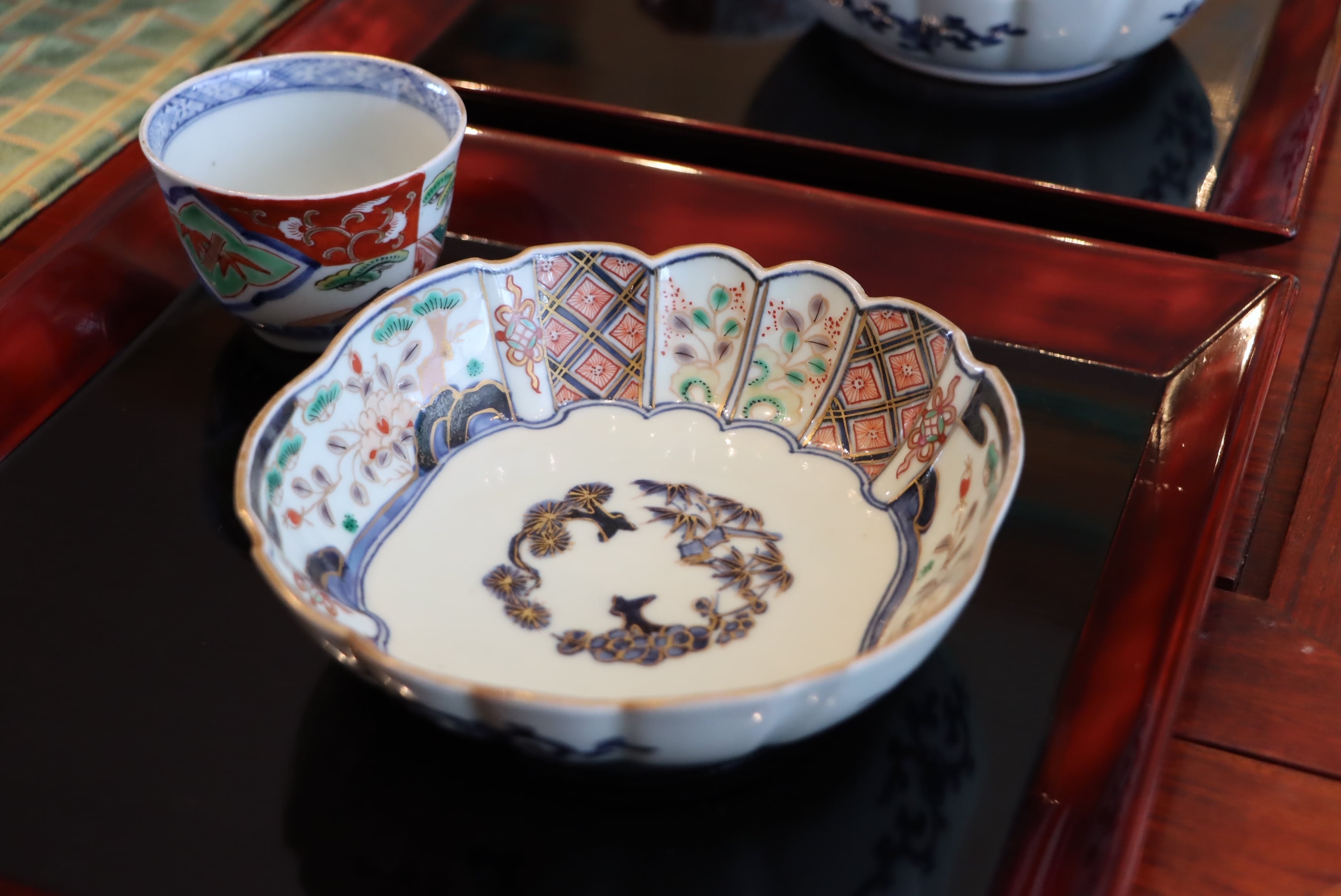 落ち着いた色絵の調和と余白の静けさが、品格を感じさせる一枚です。